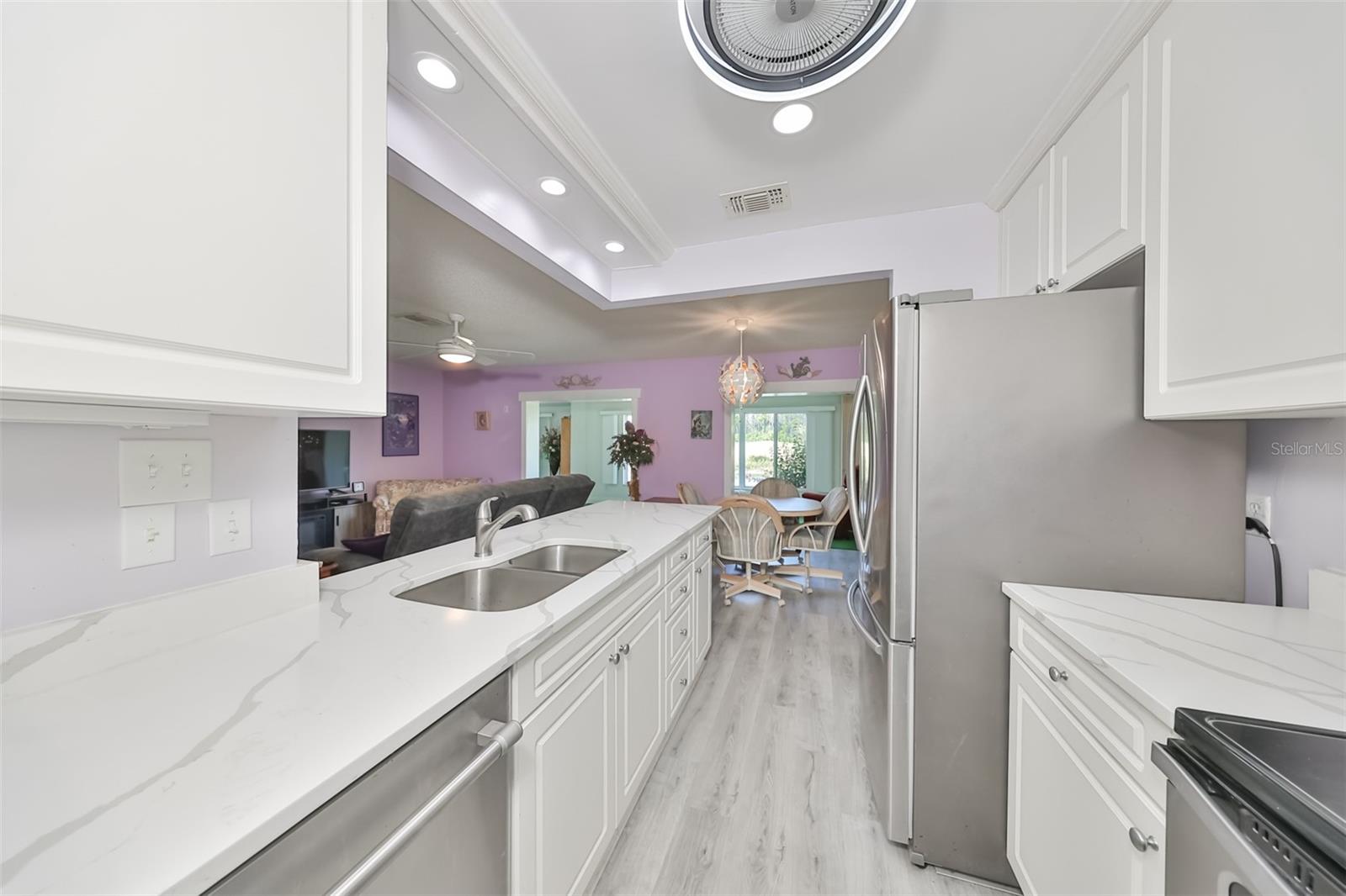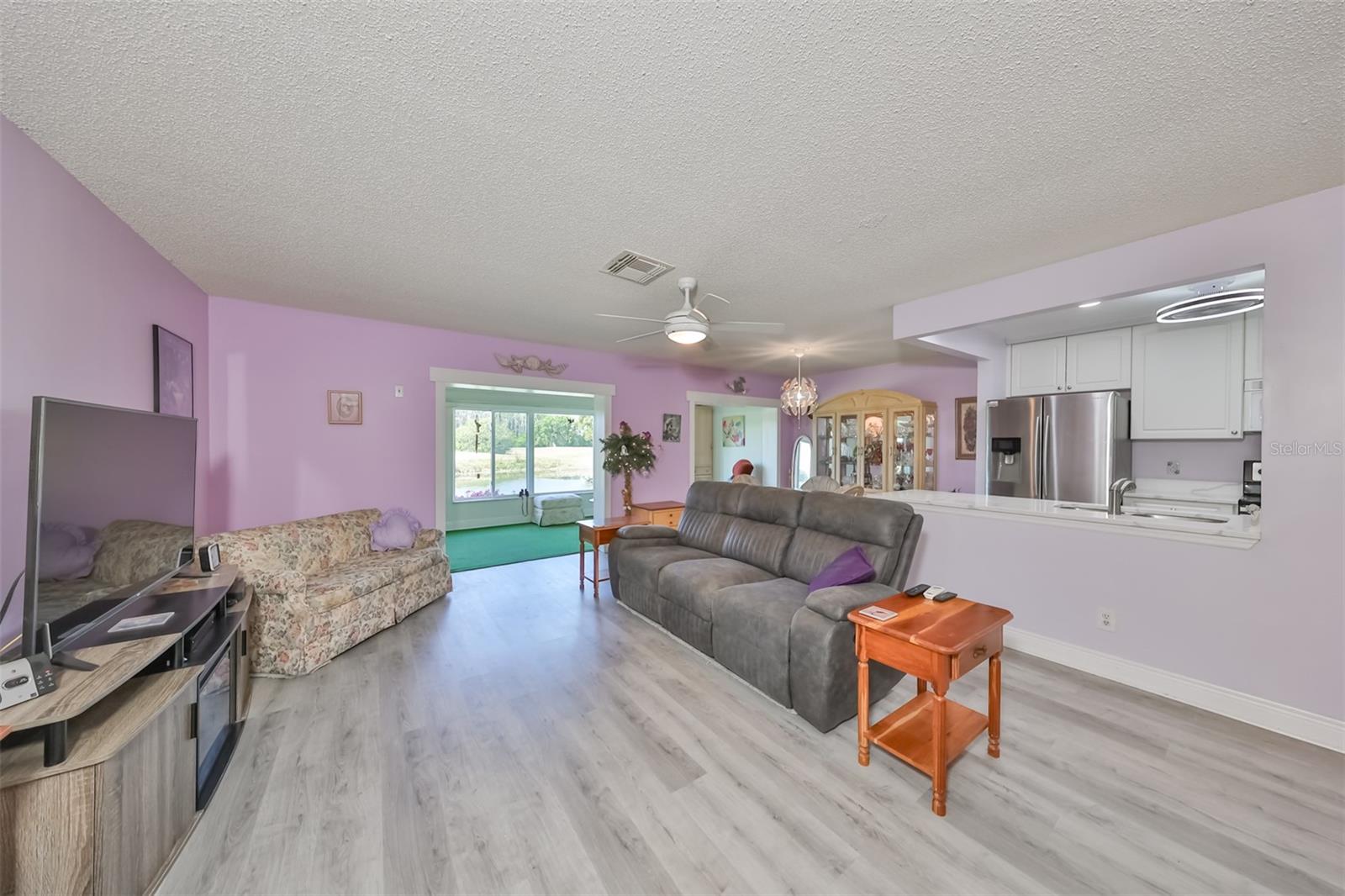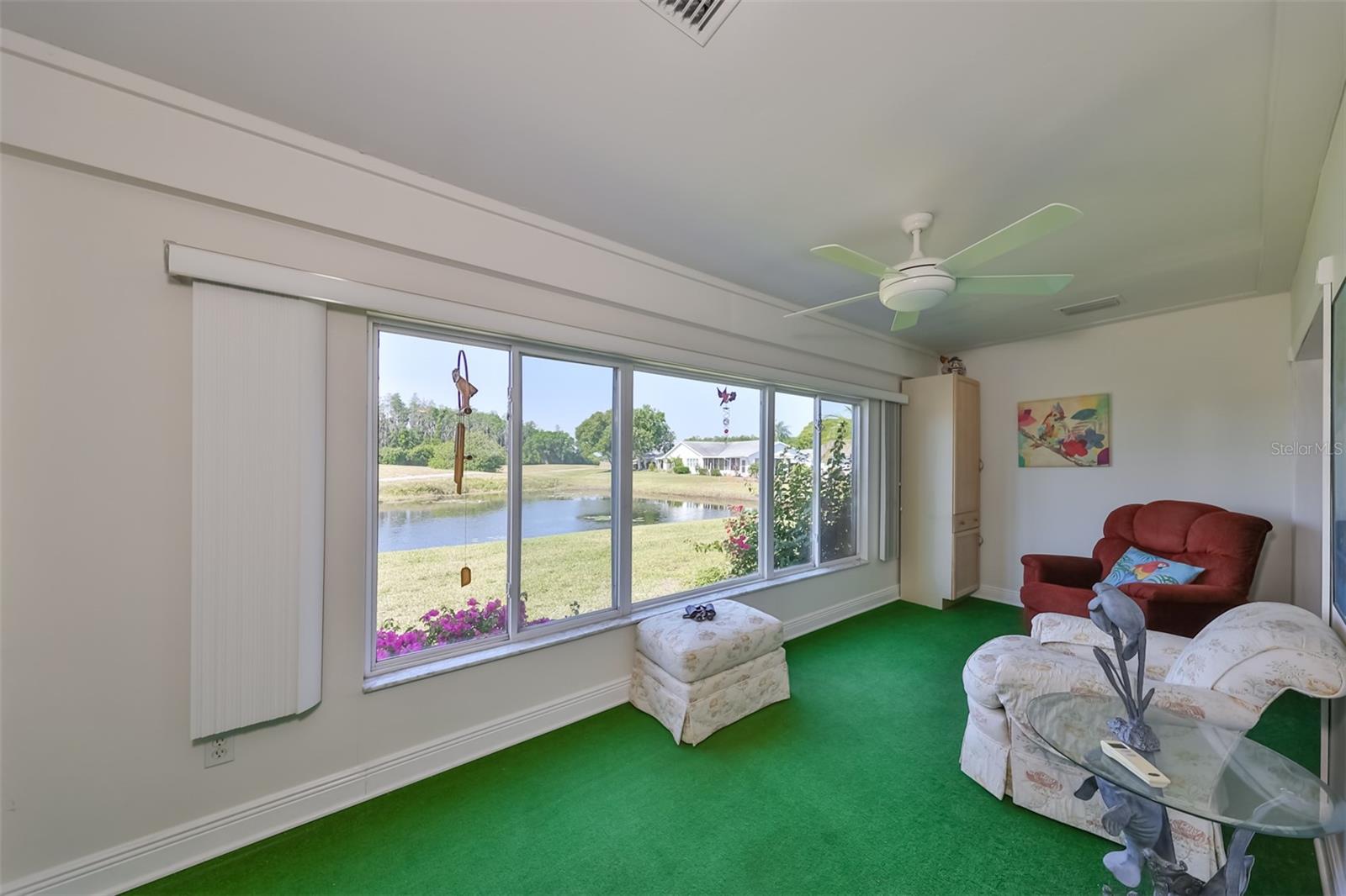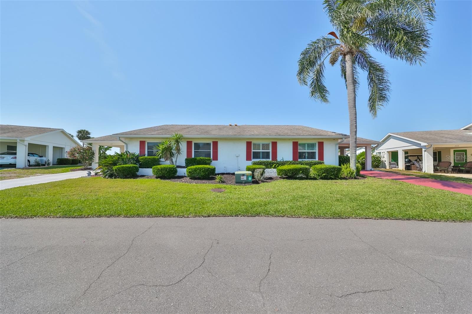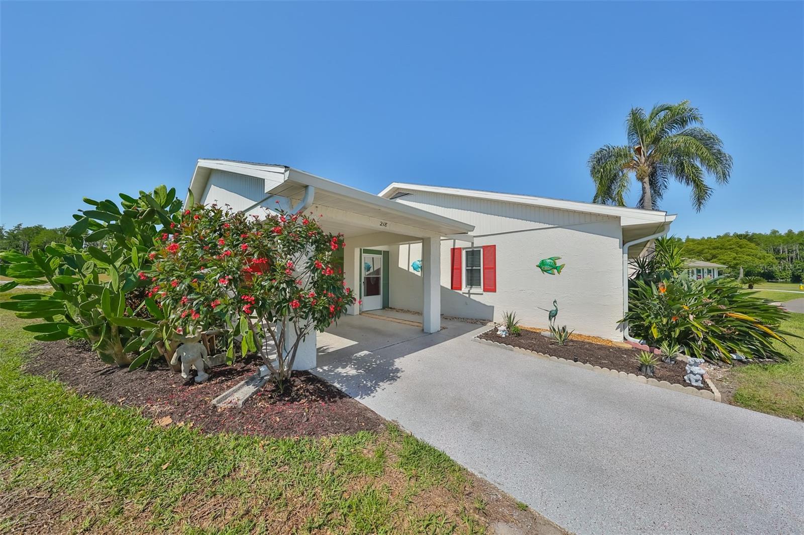 HUGE PRICE IMPROVEMENT! An incredible opportunity awaits! Dive into the vibrant lifestyle of the 55+ community in Kings Point, Sun City Center, proudly voted the 2024 #1 Retirement Community in America by Realtor.com and Travel and Leisure Magazine! Imagine waking up every morning to stunning views of water and lush green space from your 410 sq ft air-conditioned glass-enclosed Florida room, part of a generous 1418 sq ft living space. As you approach this charming Hampton home featuring 2 bedrooms and 2 baths, you'll notice the fresh exterior paint and distinctive red trim, complemented by an attached one-car carport and an epoxy-finished driveway. The side entrance is adorned with a screened entry and a beautiful leaded glass front door. Inside, the updated kitchen showcases white wood cabinets, quartz countertops, stainless steel appliances, recessed lighting, and a fanlight, perfect for culinary enthusiasts. Both bathrooms have been modernized with raised vanities, adding a touch of luxury. The home features laminate flooring throughout, with the Florida room and laundry area offering cozy carpeting. The laundry room is equipped with ample cabinets for storage, a new hot water heater, CPVC plumbing, and an upright freezer. For added peace of mind, the seller is offering to transfer SILVER KPW WARRANTY through 2/28/25 to the buyer. This home is being sold turn-key, with some personal items excluded, or they can be removed at the buyers request. Join the lively atmosphere in the gated golf community of Kings Point, where golf carts are the preferred mode of transport and state-of-the-art amenities abound. Enjoy both indoor and outdoor heated pools, fitness centers, computer labs, arts and crafts, an auditorium with seating for 800+, as well as tennis, pickleball, lawn bowling, and access to over 200 clubs and activities. Conveniently located near Tampa, Sarasota, St. Petersburg, Tampa International Airport, shopping, dining, beaches, theaters, and sporting events, don’t miss this chance to embrace a dynamic and active lifestyle!