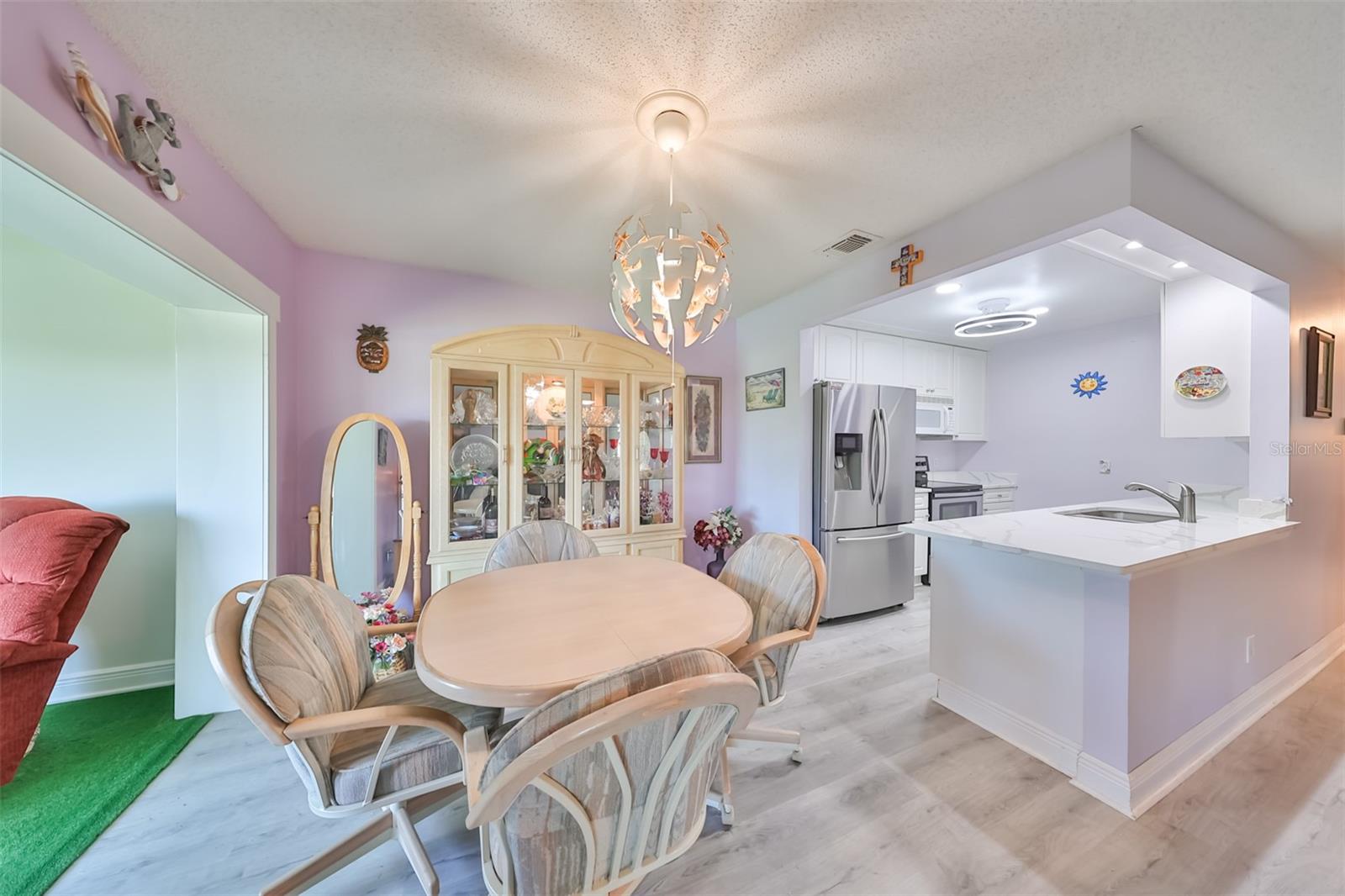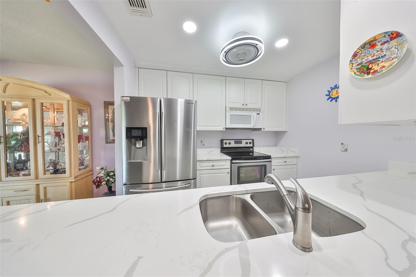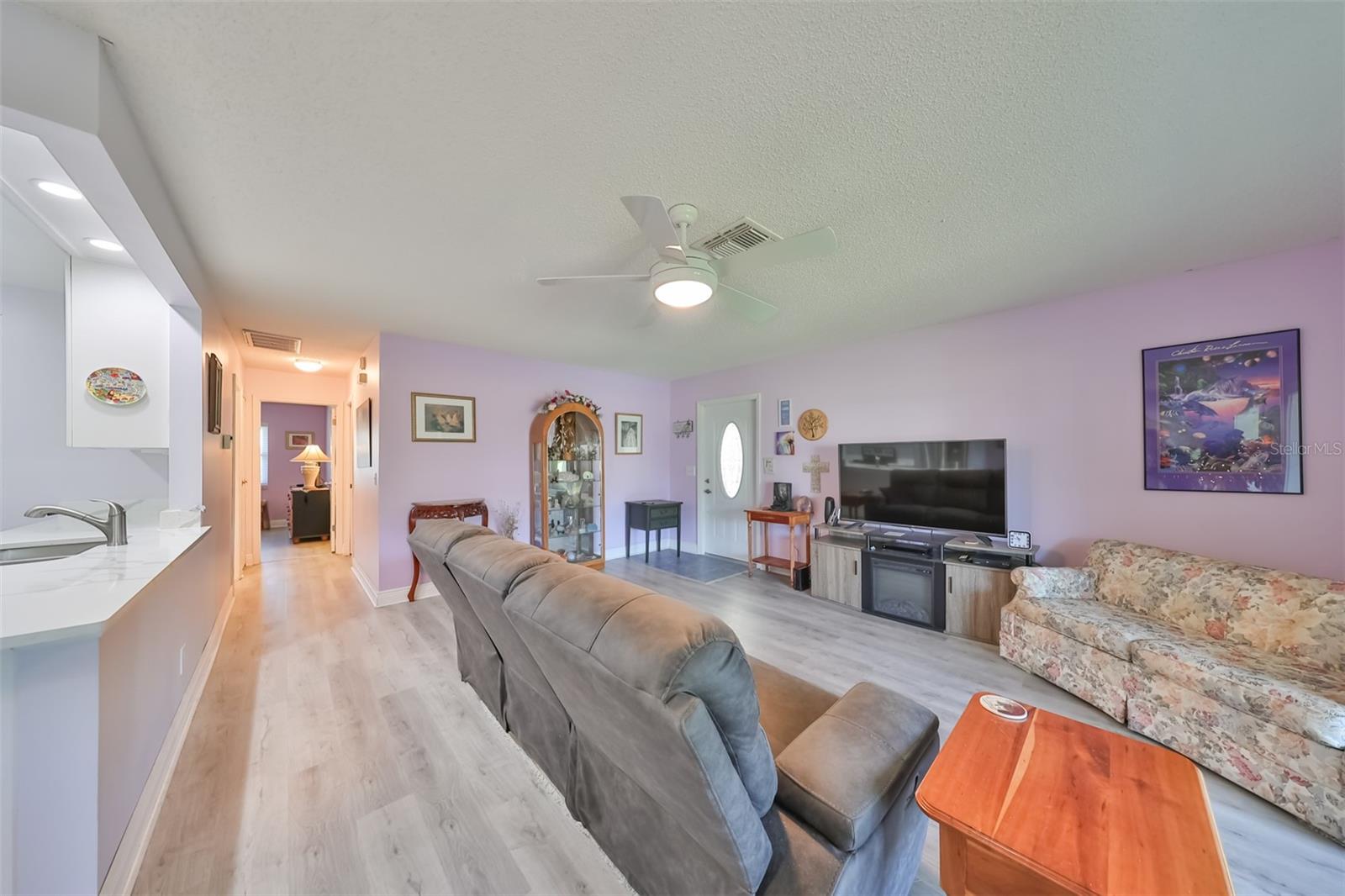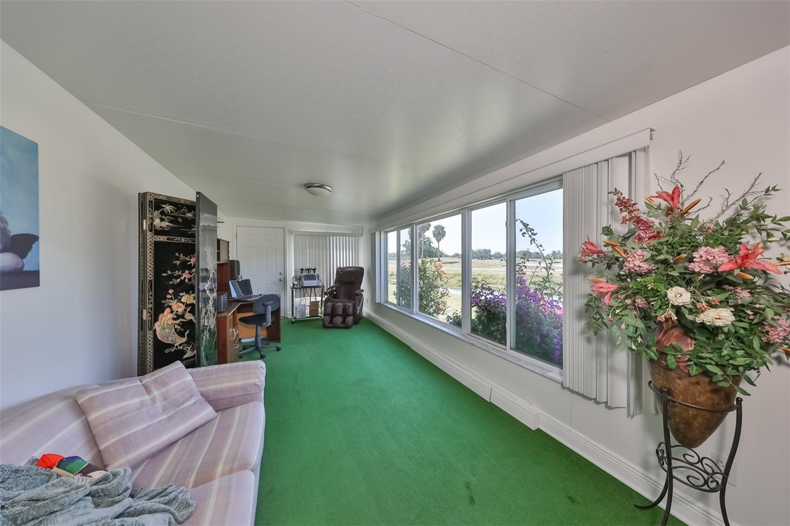HUGE PRICE IMPROVEMENT! An incredible opportunity awaits! Dive into the vibrant lifestyle of the 55+ community in Kings Point, Sun City Center, proudly voted the 2024 #1 Retirement Community in America by Realtor.com and Travel and Leisure Magazine! Imagine waking up every morning to stunning views of water and lush green space from your 410 sq ft air-conditioned glass-enclosed Florida room, part of a generous 1418 sq ft living space. As you approach this charming Hampton home featuring 2 bedrooms and 2 baths, you'll notice the fresh exterior paint and distinctive red trim, complemented by an attached one-car carport and an epoxy-finished driveway. The side entrance is adorned with a screened entry and a beautiful leaded glass front door. Inside, the updated kitchen showcases white wood cabinets, quartz countertops, stainless steel appliances, recessed lighting, and a fanlight, perfect for culinary enthusiasts. Both bathrooms have been modernized with raised vanities, adding a touch of luxury. The home features laminate flooring throughout, with the Florida room and laundry area offering cozy carpeting. The laundry room is equipped with ample cabinets for storage, a new hot water heater, CPVC plumbing, and an upright freezer. For added peace of mind, the seller is offering to transfer SILVER KPW WARRANTY through 2/28/25 to the buyer. This home is being sold turn-key, with some personal items excluded, or they can be removed at the buyers request. Join the lively atmosphere in the gated golf community of Kings Point, where golf carts are the preferred mode of transport and state-of-the-art amenities abound. Enjoy both indoor and outdoor heated pools, fitness centers, computer labs, arts and crafts, an auditorium with seating for 800+, as well as tennis, pickleball, lawn bowling, and access to over 200 clubs and activities. Conveniently located near Tampa, Sarasota, St. Petersburg, Tampa International Airport, shopping, dining, beaches, theaters, and sporting events, don’t miss this chance to embrace a dynamic and active lifestyle!