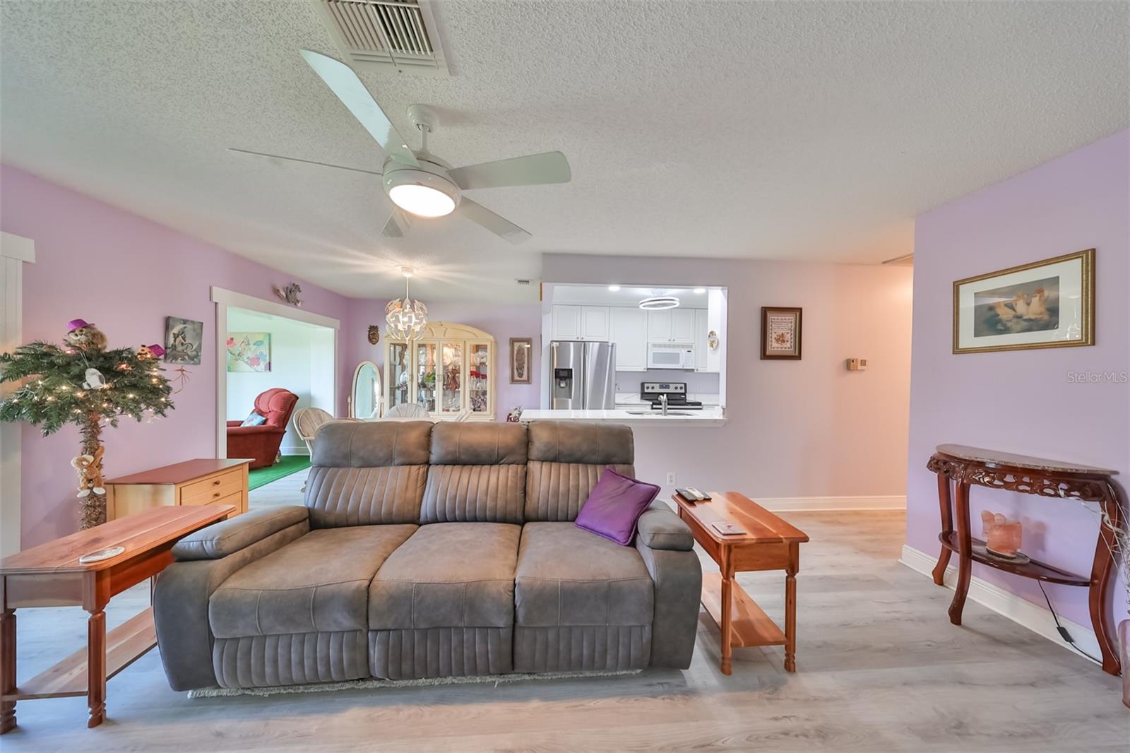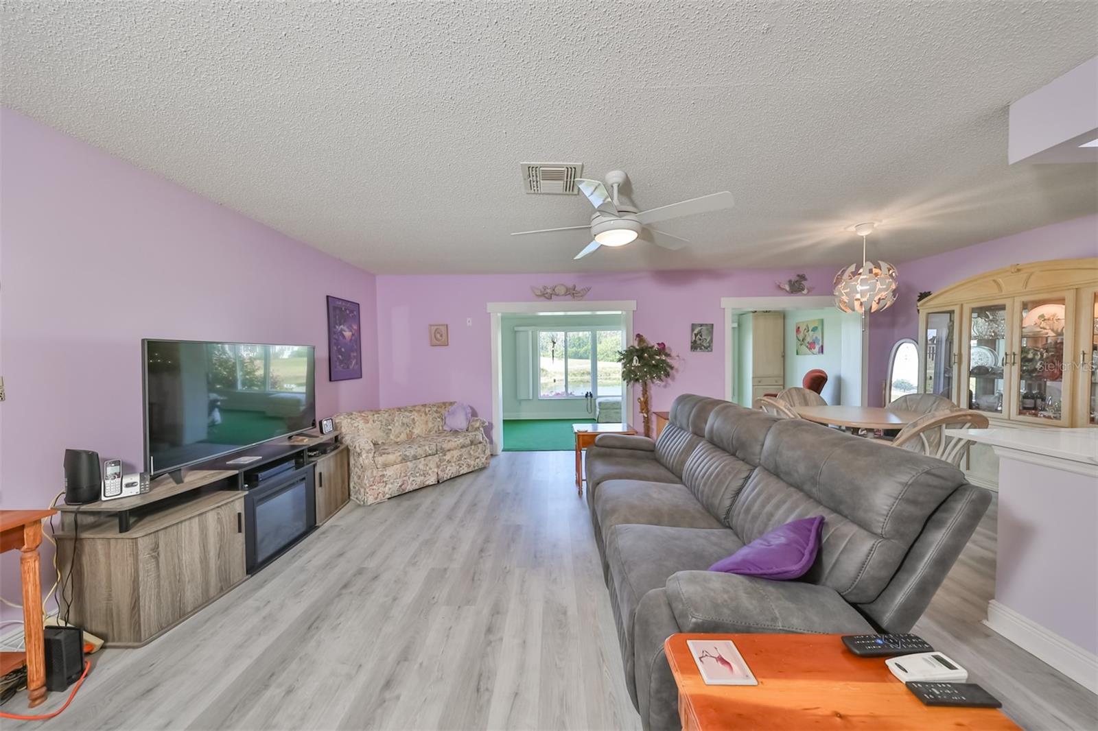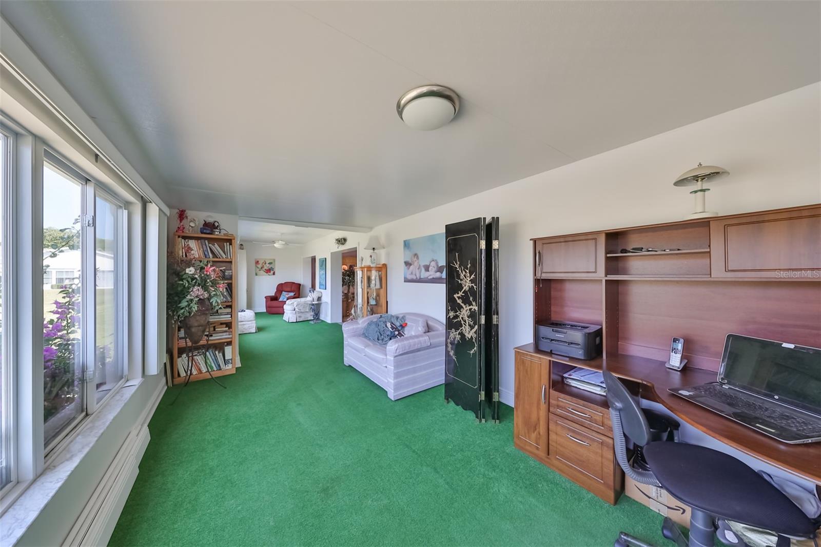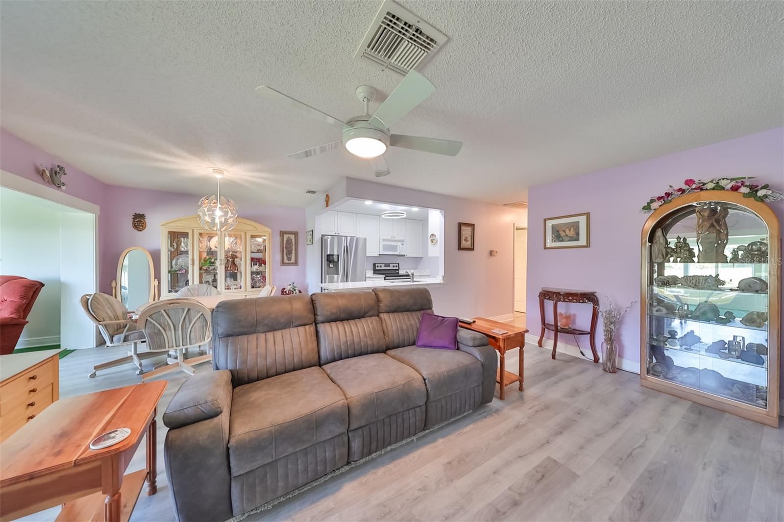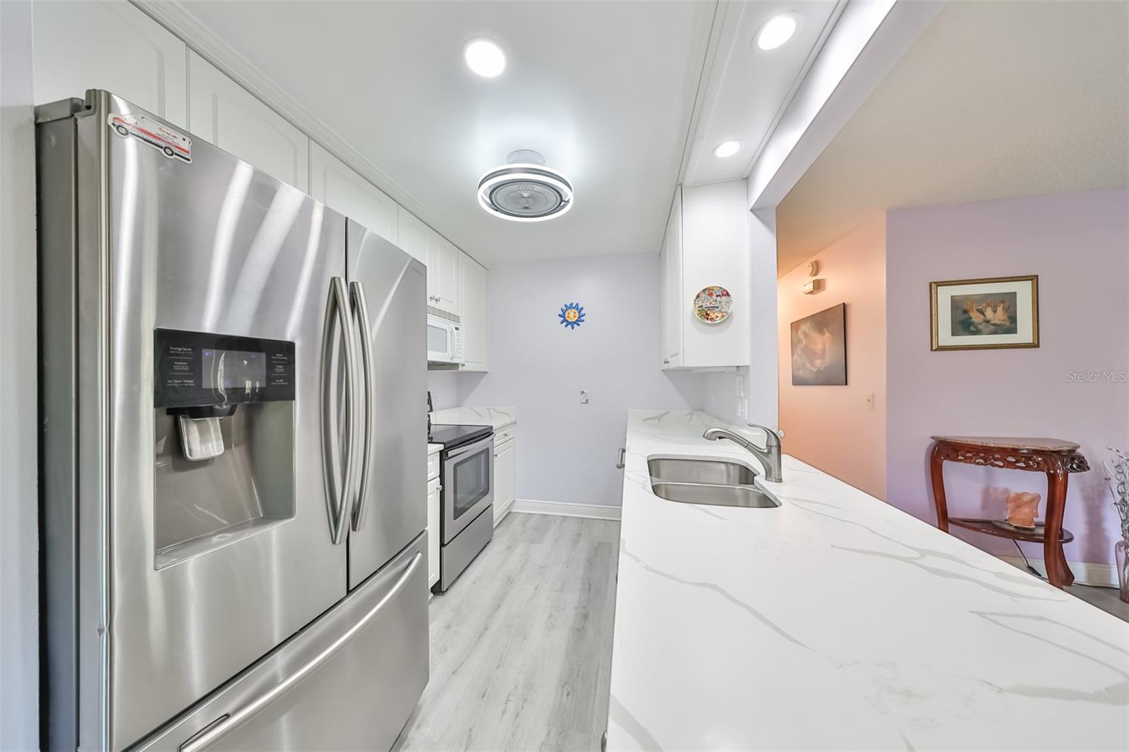 HUGE PRICE IMPROVEMENT! An incredible opportunity awaits! Dive into the vibrant lifestyle of the 55+ community in Kings Point, Sun City Center, proudly voted the 2024 #1 Retirement Community in America by Realtor.com and Travel and Leisure Magazine! Imagine waking up every morning to stunning views of water and lush green space from your 410 sq ft air-conditioned glass-enclosed Florida room, part of a generous 1418 sq ft living space. As you approach this charming Hampton home featuring 2 bedrooms and 2 baths, you'll notice the fresh exterior paint and distinctive red trim, complemented by an attached one-car carport and an epoxy-finished driveway. The side entrance is adorned with a screened entry and a beautiful leaded glass front door. Inside, the updated kitchen showcases white wood cabinets, quartz countertops, stainless steel appliances, recessed lighting, and a fanlight, perfect for culinary enthusiasts. Both bathrooms have been modernized with raised vanities, adding a touch of luxury. The home features laminate flooring throughout, with the Florida room and laundry area offering cozy carpeting. The laundry room is equipped with ample cabinets for storage, a new hot water heater, CPVC plumbing, and an upright freezer. For added peace of mind, the seller is offering to transfer SILVER KPW WARRANTY through 2/28/25 to the buyer. This home is being sold turn-key, with some personal items excluded, or they can be removed at the buyers request. Join the lively atmosphere in the gated golf community of Kings Point, where golf carts are the preferred mode of transport and state-of-the-art amenities abound. Enjoy both indoor and outdoor heated pools, fitness centers, computer labs, arts and crafts, an auditorium with seating for 800+, as well as tennis, pickleball, lawn bowling, and access to over 200 clubs and activities. Conveniently located near Tampa, Sarasota, St. Petersburg, Tampa International Airport, shopping, dining, beaches, theaters, and sporting events, don’t miss this chance to embrace a dynamic and active lifestyle!