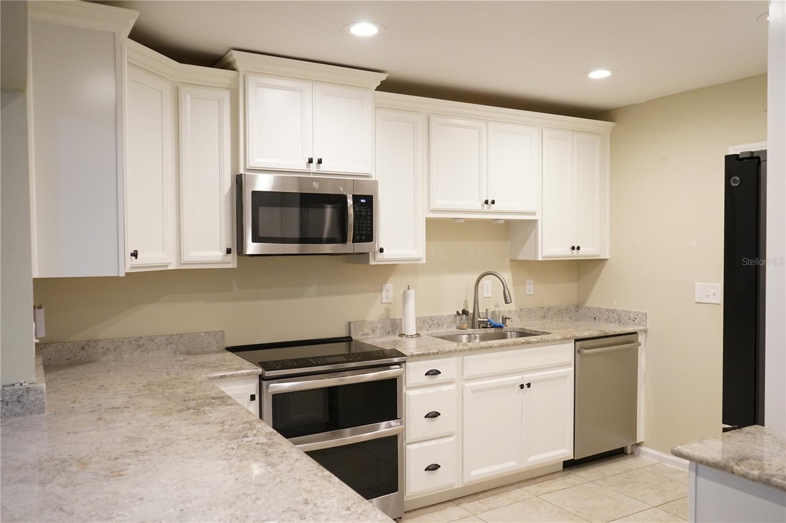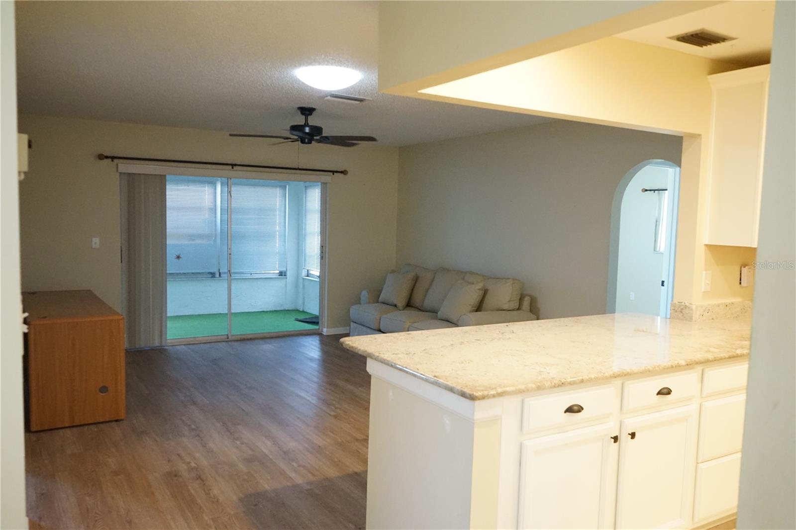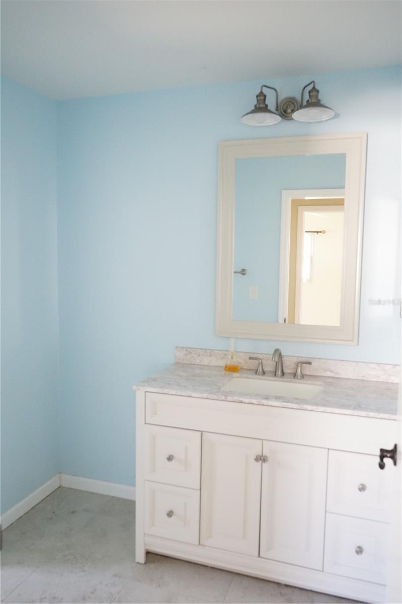 This popular Dedham floor plan has been redone and just needs your new paint color ! You'll have a large front porch to sit and watch the sunrise, then into the large living area with laminate floors here and the shared dining space. Next to this is the newer kitchen with rollouts, stainless appliances, lots of drawers, stone counters and a pantry for extra space. The roof is 2021, breakers 2023, ac 2011, copper pipes, water tank 2015. There's even an eating bar for a quick breakfast or lunch. The 2 bedrooms are on opposite sides and they each have their own full bath. The owners en suite has a large walk in shower and the guest is a tub/shower combo both with newer whit cabinets and the primary bedroom has 2 closets with custom shelving. There is a family room between them then you can go out through the slider to the glass enclosed lanai you can use as an office or hobby area. From there is a concrete pad for the grill too ! The 2 car garage is a little extra long and has a laundry room with a storage closet here too. The home has alLot to offer so come and take a look at this as is home today.
