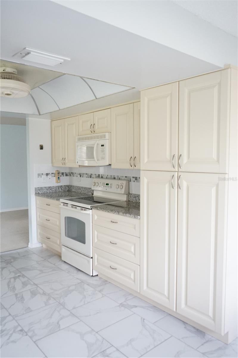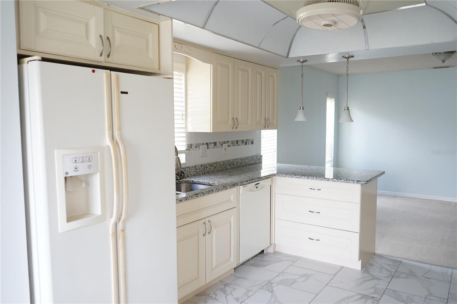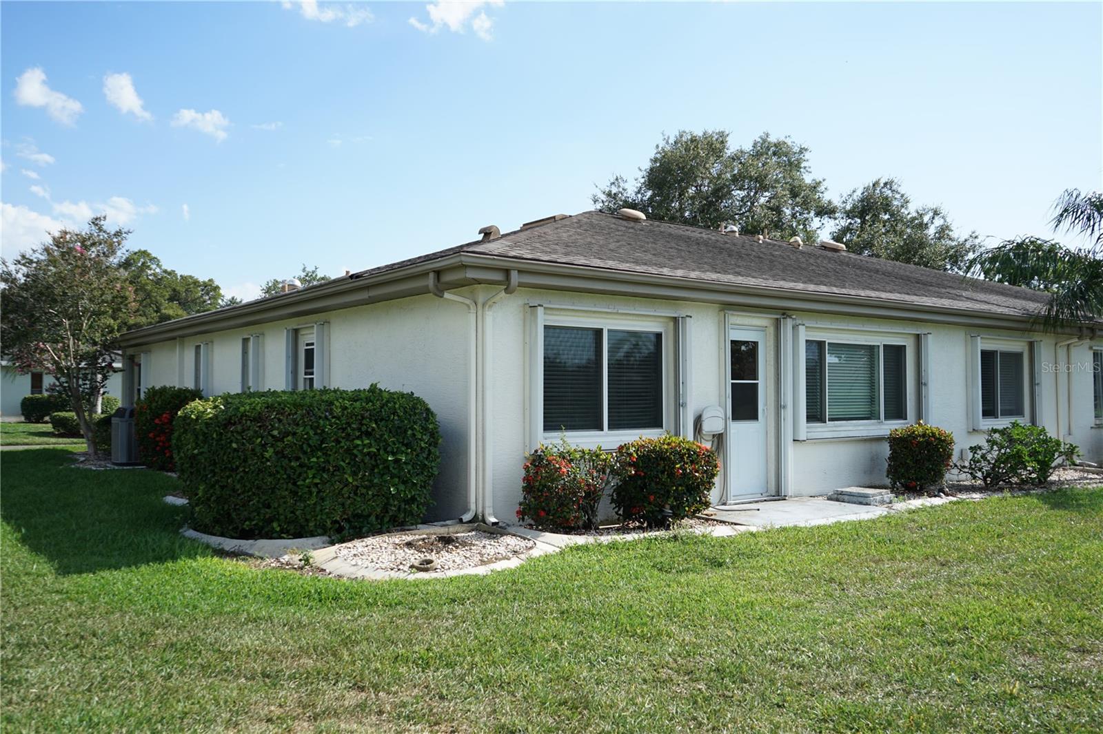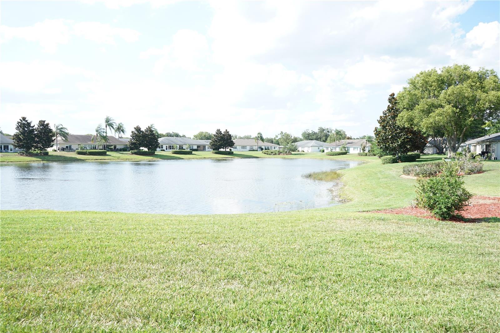 This Sunrise floor plan features split and bedrooms and a water view ! The monthly fee here includes cable tv, internet, water, sewer, trash, recreation, roofs, exterior painting and much more. The extended living space has been added to the square footage making this a perfect sitting area to enjoy the view. You have a screened entry and a foyer with a tile foyer bringing you into the home. The guest bedroom, linen closet, hall closet and full bath are at the front of the home. In the center is the dining room and living space with a door to the 2 car garage and laundry space. The kitchen has been redone since ownership with new counters too ! There is a breakfast area to enjoy the view or put a desk here for lots of light or use the bonus area for this too. The master bedroom is at the back with a walk in closet and en suite bath. The windows have hurricane shutters and the garage is a little bigger than normal. There are tile floors, solar tubes for extra light, laminate floors and a little carpet. cpvc pipes, challenger breakers, windows 2000, AC motor 2005, water tank 2021 This home is being offered as is.