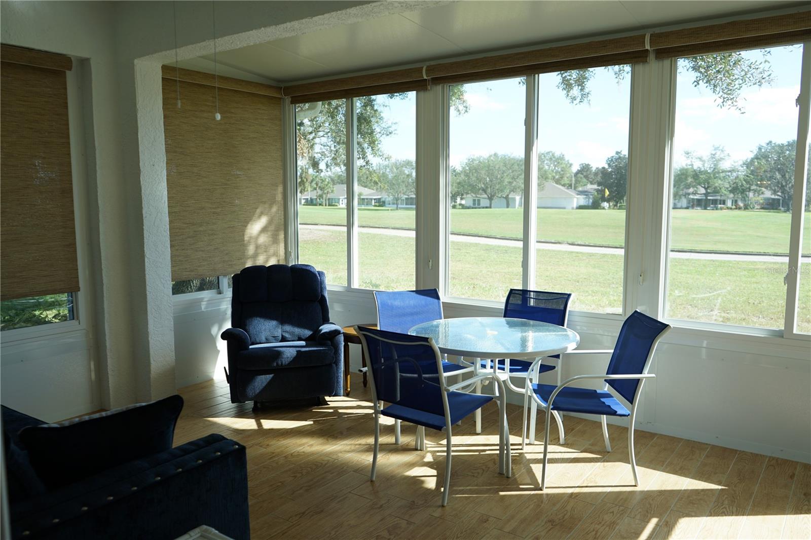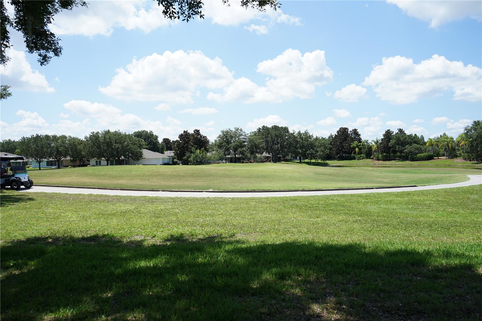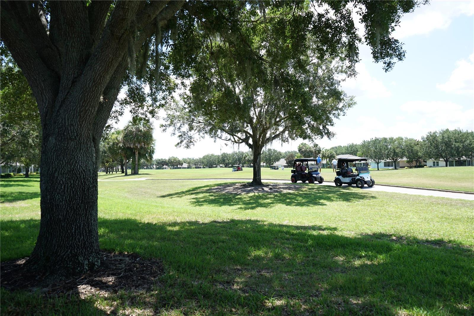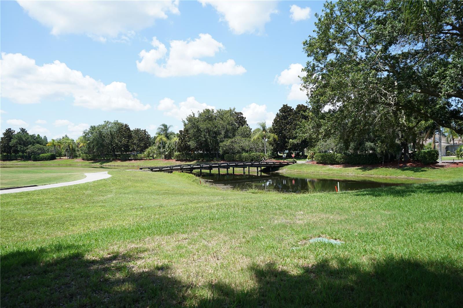 If you are looking for a peaceful view this is it ! The monthly fee here includes cable tv, internet, water, sewer, trash, recreation buildings, roofs, exterior painting and much more. This Westport floor plan features the primary bedroom at the back of the home and 2 bedrooms at the front for privacy. The screened entry brings you into the living room with beautiful floors and lots of light coming from the extended lanai overlooking golf and water behind you. The spacious kitchen also has the eating area with the laundry room and 2 closet pantry's taking you out to the 2 car garage. The EXTENDED Lanai is UNDER AIR adding to the square footage. The ceilings are high, the flooring is nice, the layout is great and the view is one of the best so don't miss this one ! Being sold as is, the home has cpvc pipes, siemens breakers, 2020 ac and an old water tank. The furniture can stay at no additional cost to buyer. Kings Point has plenty to do and we are less than an hour to 3 airports and multiple beaches.