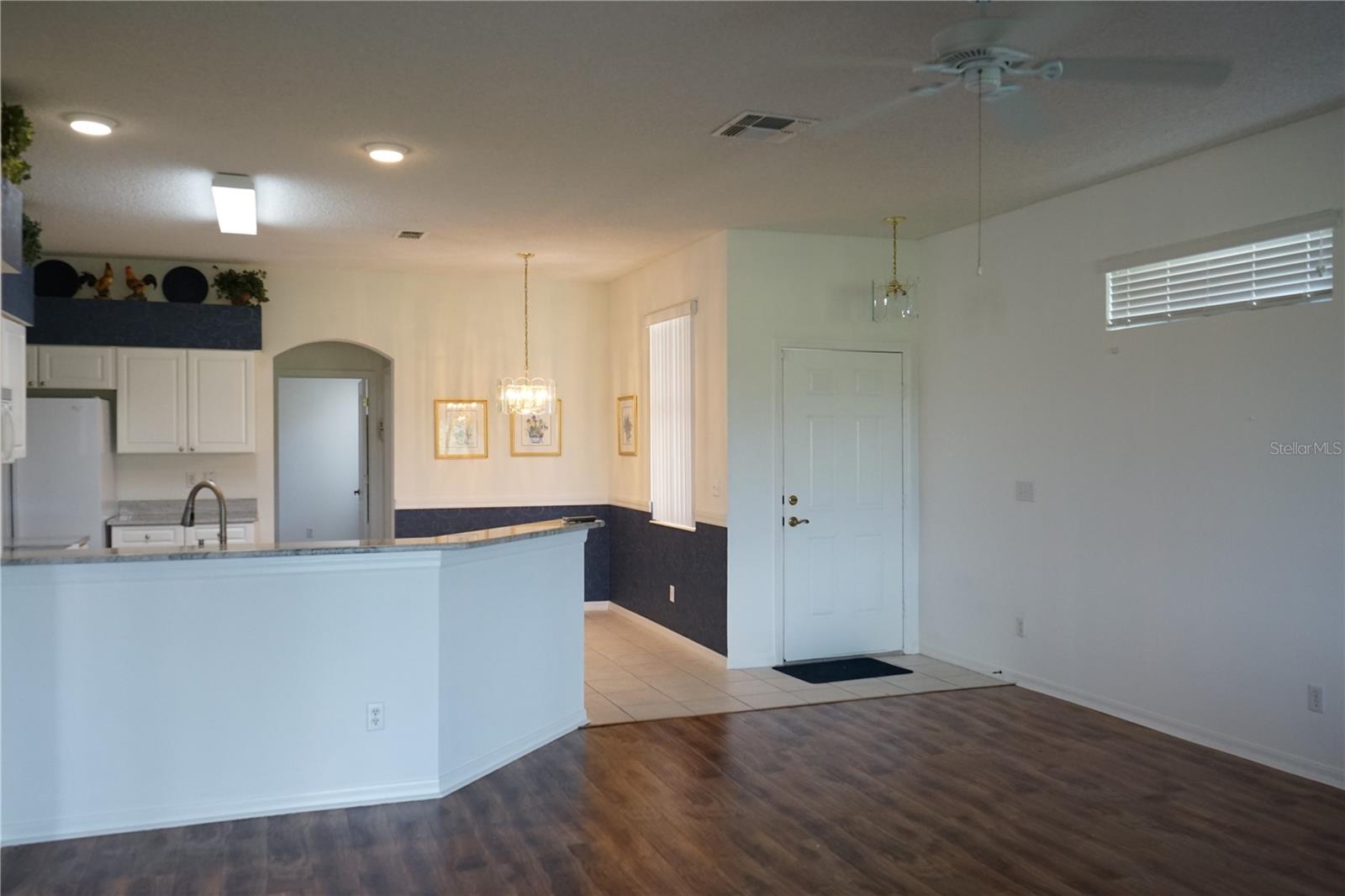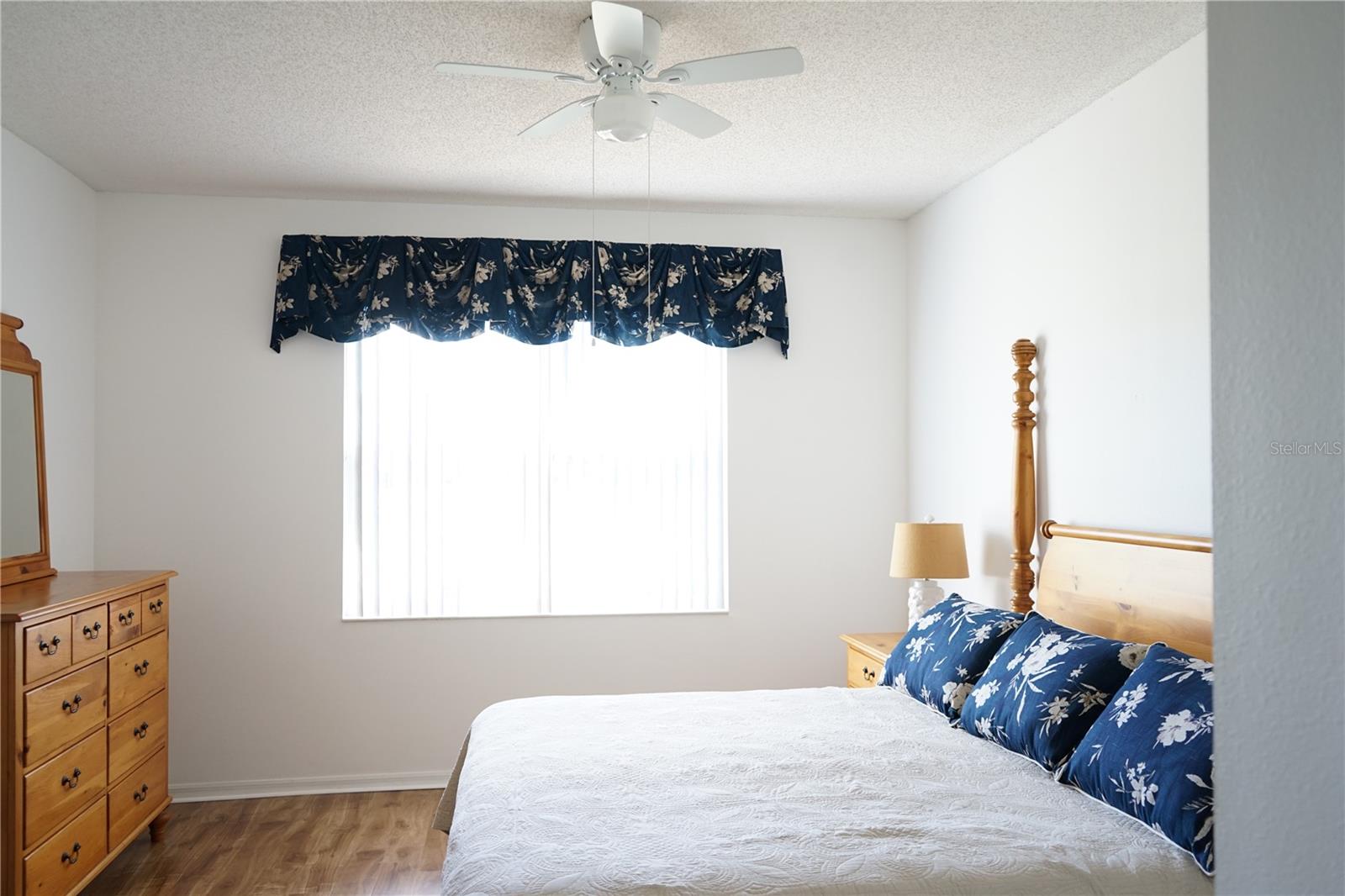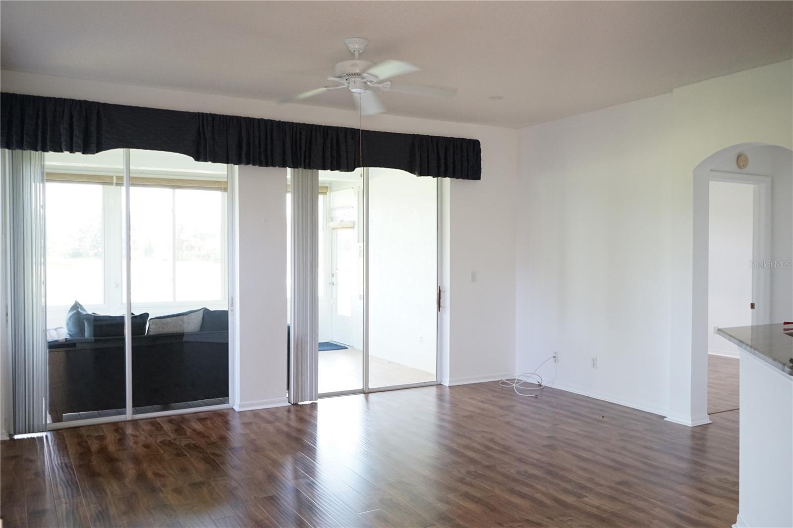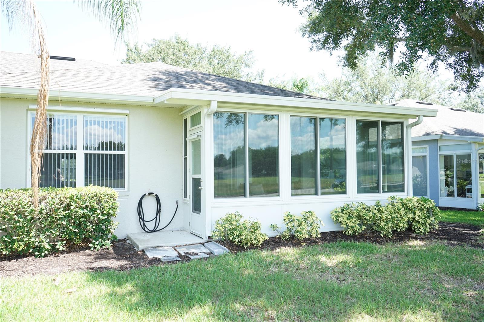 If you are looking for a peaceful view this is it ! The monthly fee here includes cable tv, internet, water, sewer, trash, recreation buildings, roofs, exterior painting and much more. This Westport floor plan features the primary bedroom at the back of the home and 2 bedrooms at the front for privacy. The screened entry brings you into the living room with beautiful floors and lots of light coming from the extended lanai overlooking golf and water behind you. The spacious kitchen also has the eating area with the laundry room and 2 closet pantry's taking you out to the 2 car garage. The EXTENDED Lanai is UNDER AIR adding to the square footage. The ceilings are high, the flooring is nice, the layout is great and the view is one of the best so don't miss this one ! Being sold as is, the home has cpvc pipes, siemens breakers, 2020 ac and an old water tank. The furniture can stay at no additional cost to buyer. Kings Point has plenty to do and we are less than an hour to 3 airports and multiple beaches.