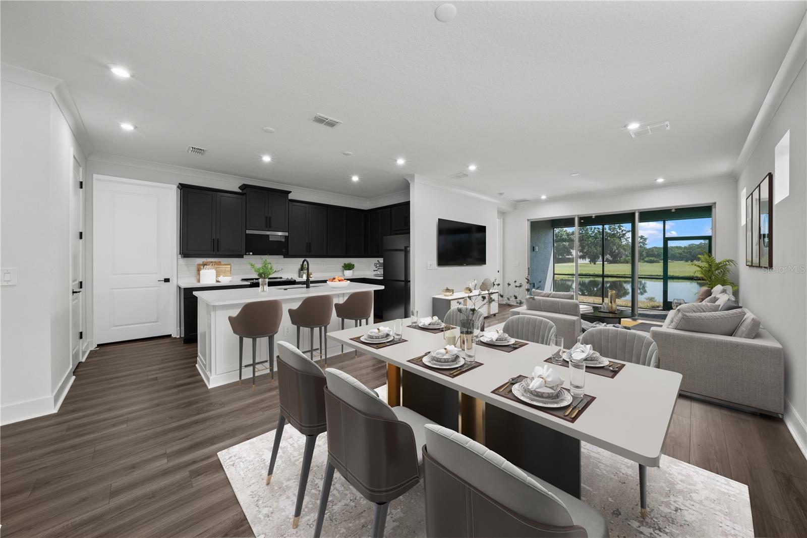 One or more photo(s) has been virtually staged. Welcome to your BRAND NEW, NEVER OCCUPIED home in The Preserve at La Paloma, a premier 55+ community where luxury and convenience blend seamlessly. Nestled on a serene pond with stunning golf course views, the home features a private screened-in patio, offering an idyllic setting for relaxation and entertainment. Embrace your new lifestyle without the hassle and wait of building. The owner selected the finest of materials and finishes reflective of an upscaled model home The interior boasts luxury vinyl plank flooring throughout, adding both beauty and durability. The highly upgraded kitchen is the heart of the home, featuring rich dark blue 42" wood cabinetry, quartz countertops, Whirlpool stainless steel appliances, and a spacious island perfect for entertaining or meal preparation. The den, enhanced with double glass French doors, is ideal for a home office, library, or cozy retreat. The bathrooms are elegantly appointed with decorative tiles and upgraded fixtures, adding a touch of sophistication to your daily routine. Stay connected and in control with state-of-the-art smart home features, including an Ecobee Smart Thermostat and a video doorbell. These technologies enhance your comfort and security, making home management a breeze. The Preserve at La Paloma offers an active and engaging lifestyle with amenities designed for relaxation and recreation. Perfect your game on the pickleball courts, stay fit in the lap pool, enjoy outdoor fun with cornhole sets and fire pits, or unwind in the community center’s hot tub. The scenic sidewalks throughout the community provide a beautiful setting for your daily strolls. Located within Sun City Center, this stunning residence is close to shopping and offers easy access to I-75, making it perfect for an active and connected lifestyle. This move-in-ready home offers the added convenience of lawn care included in the HOA. Schedule your private tour today and take the first step towards making this exquisite home your own.
