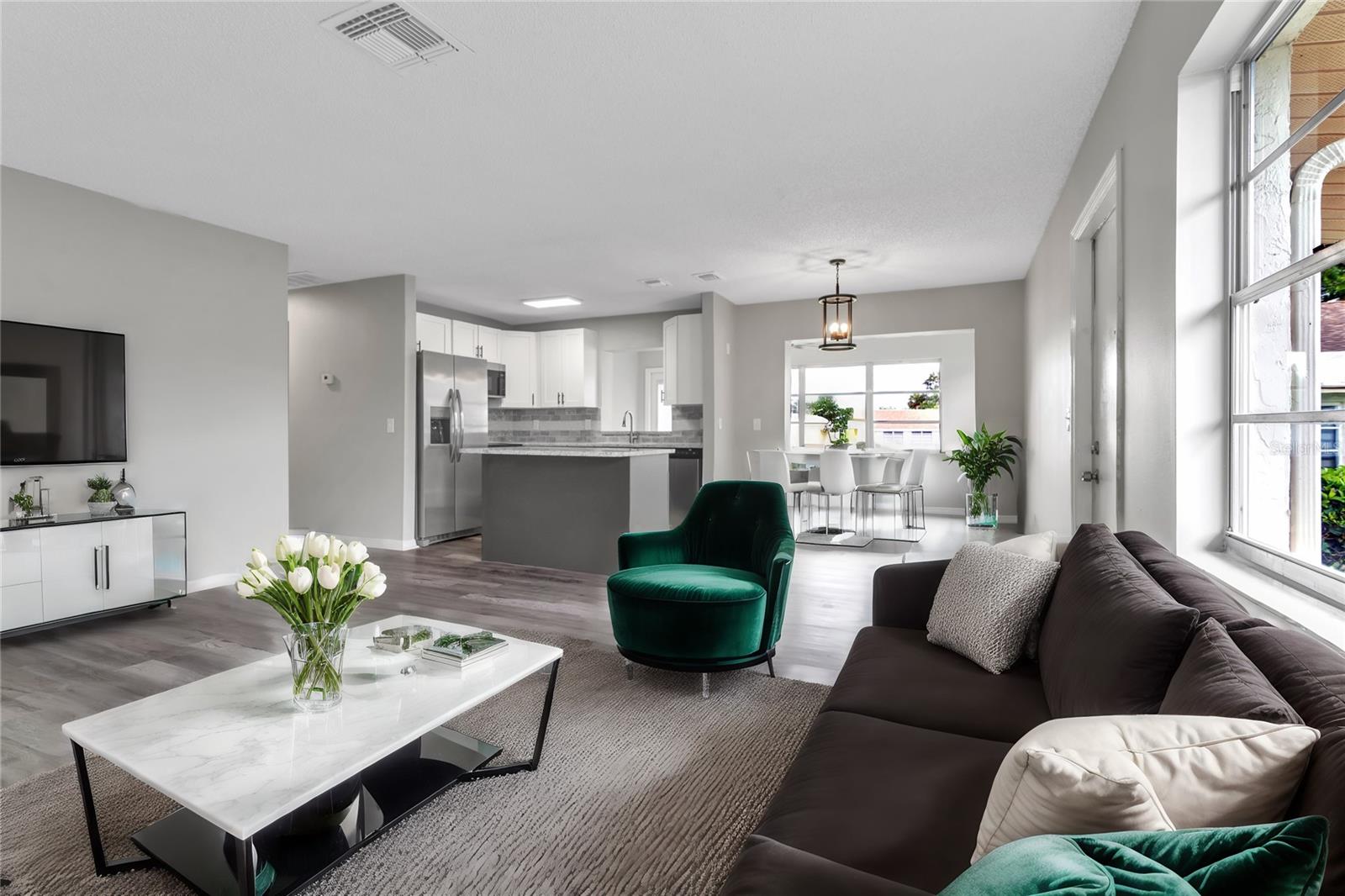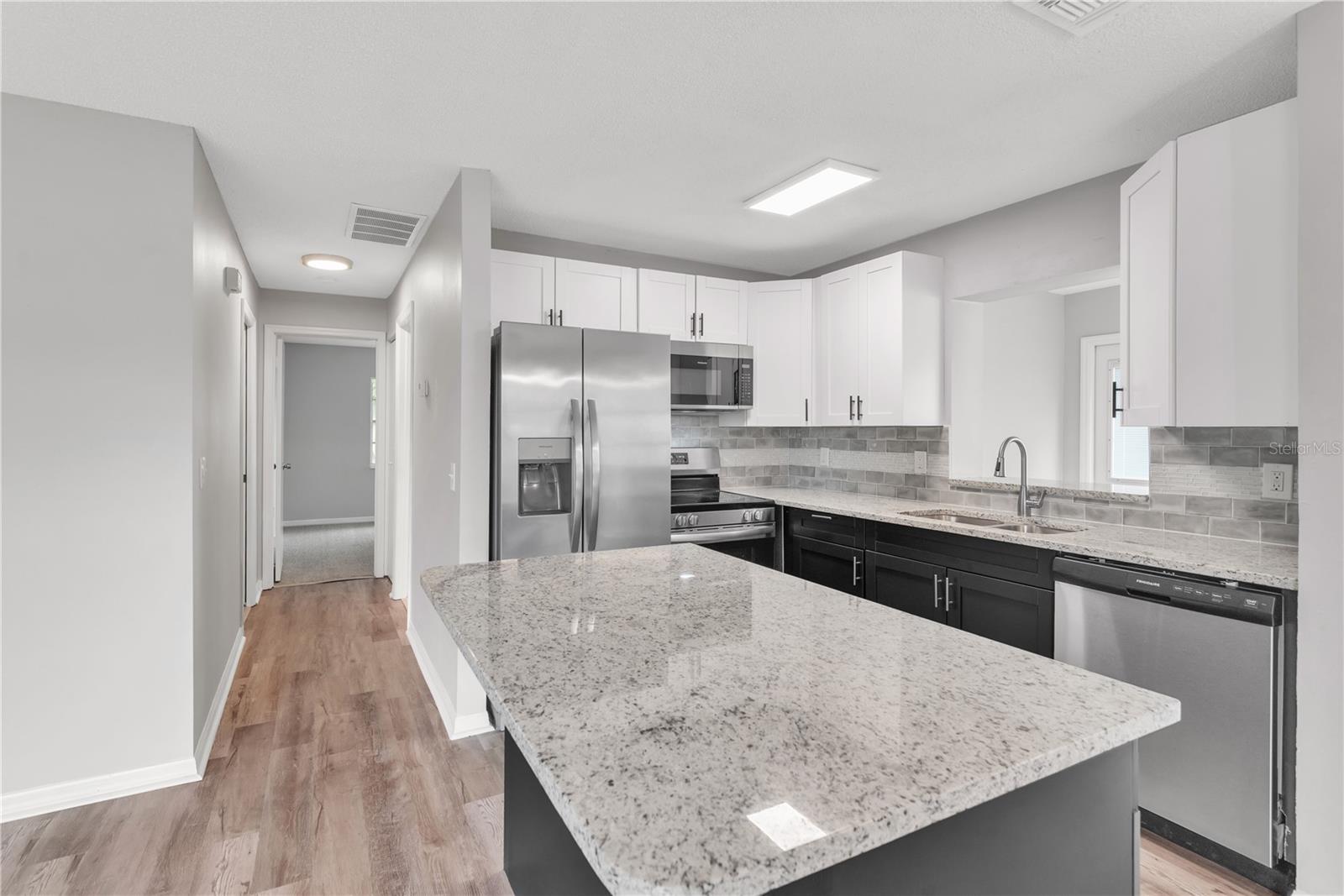 One or more photo(s) has been virtually staged. Every detail of this freshly painted 2 Bedroom, 2 Bath condo has been restored and is ready for buyers with high expectations! The interior features custom neutral paint. The kitchen includes brand new wood custom cabinets in two tone color, solid stone countertops with a ¾ inch finished edge, and new matching stainless steel appliances. The living areas have new laminate flooring, while the bedrooms boast new carpet. Updated light fixtures and decorative ceiling fans add a modern touch with energy efficiency. This home includes a new central heat & air system installed in 2024. If your buyers want hassle-free living, this is the home they have been looking for! The master suite includes a private bath and spacious closet space. Both bathrooms have been fully upgraded, including granite countertops. The condo offers washer/dryer hookups and space for them and a golf cart, as well as a carport for convenient parking. Enjoy one of the most affordable yet fully remodeled homes in the area. Ground floor for easy entrance this condo offers easy access and a comfortable living space. Prime location near restaurants, shopping, entertainment, and all that the area has to offer! HURRY it won't last long!