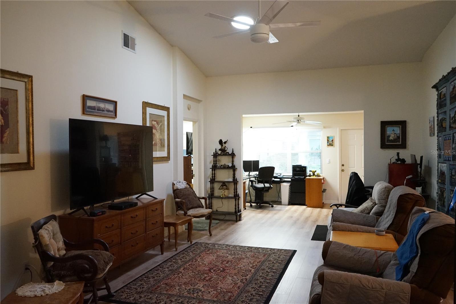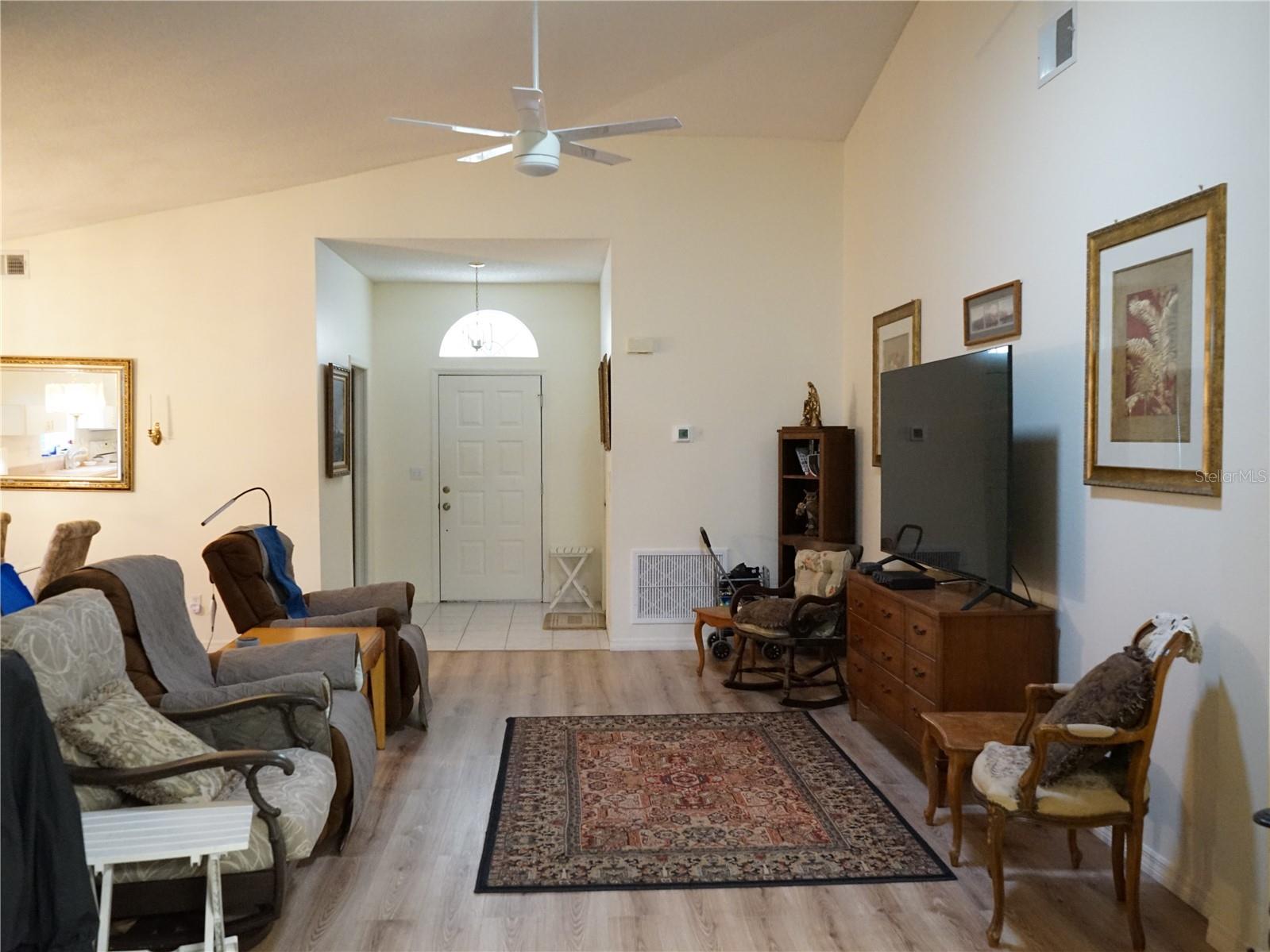 This well maintained Seabreeze model that stayed high and dry during tropical storm Debby. The home features a primary bedroom that can serve as a private suite that is large enough to accommodate a queen bed, desk, big screen TV, recliner and 2 dressers. It has two large closets, dual sinks, private shower, taller toilet and utility closet. Updates include: new A/C in 2024 with a 10 year warranty, newer Hot Water Heater, water softener, cpvc pipes and siemens breakers. Laminate flooring and carpeting are less than 2 years old. And the Living room is spacious and accommodates a 70 inch TV and a solar tube for added sunlight. The 2nd bedroom is located near the front entrance next to the 2nd bathroom. It has a tub/shower combination and a separate utility closet. The kitchen has lots of counter space and room for a full size upright freezer. This home is move-in ready so come and take a look.
