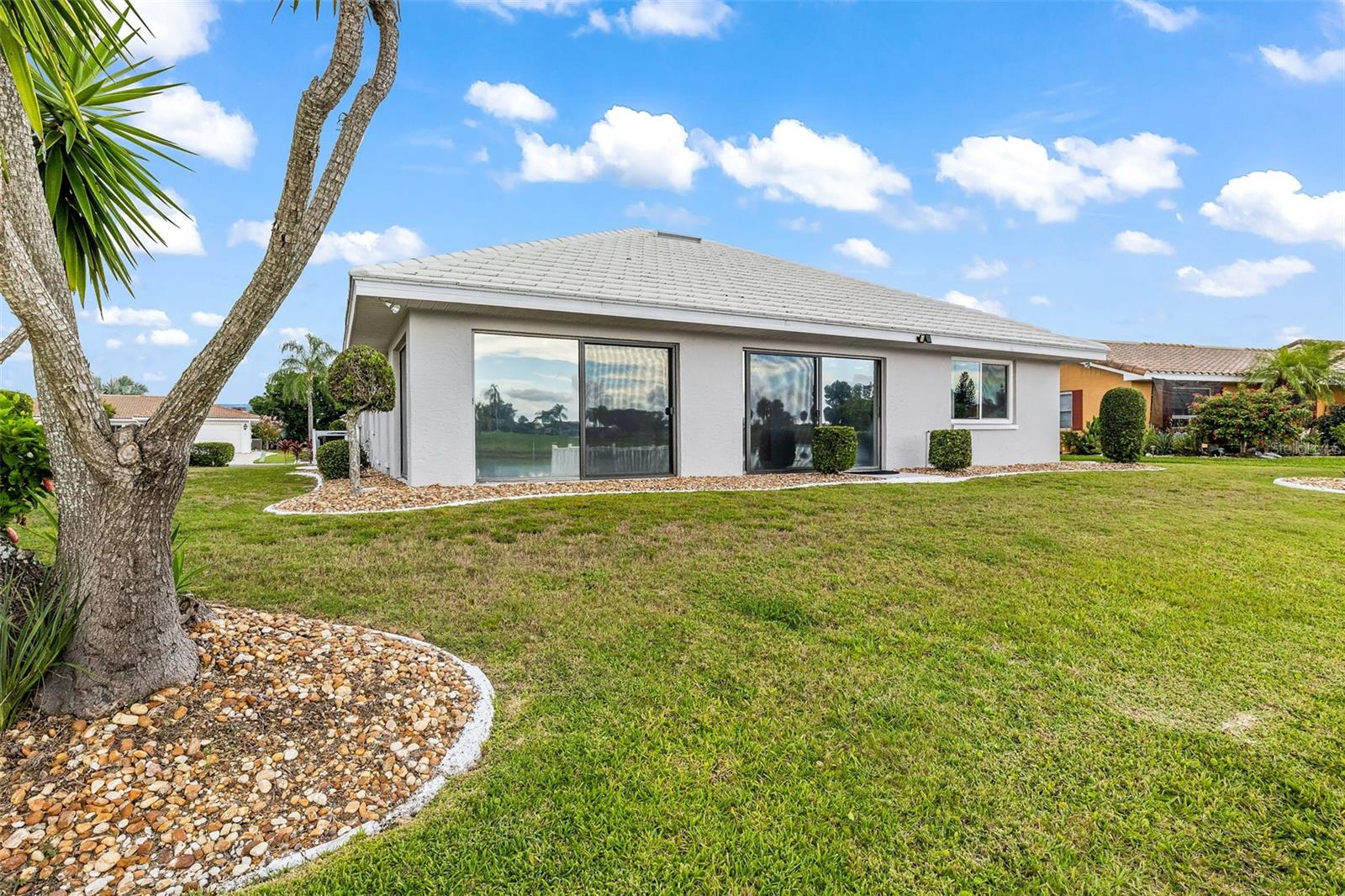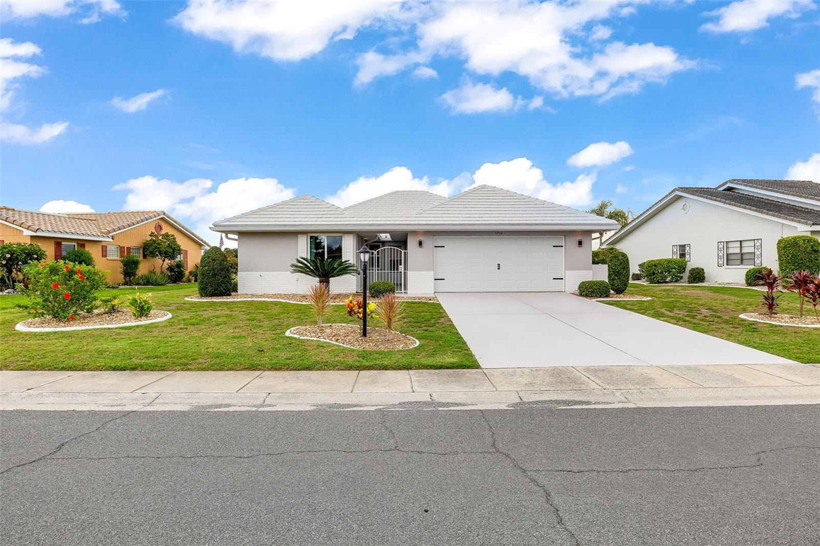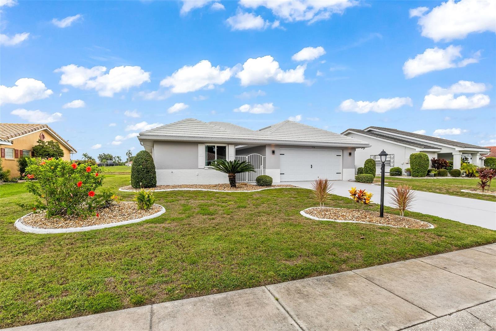 Christmas Special!! A surprise awaits! Call to find out what makes this home the perfect gift for the holidays! This home stayed high and dry through two major storms. Welcome to this stunning oasis in Greenbriar, Sun City’s vibrant over 55 community! This meticulously maintained 2-bedroom, 2-bath home offers serene pond and golf course views, perfect for enjoying peaceful mornings and stunning sunsets. Upon arrival, you'll notice the charming landscape, freshly painted exterior, and pristine tile roof. Step inside to discover a spacious interior flooded with natural light, highlighting the spotless floors with fresh paint throughout. The heart of this home is a chef's dream kitchen featuring stunning granite countertops, complemented by a stylish backsplash and upgraded stainless steel appliances. Every detail has been considered, from the modern lighting fixtures to the sleek sink and faucet. The split floor plan ensures privacy, with both bedrooms boasting luxury vinyl flooring and updated bathrooms featuring elegant marble countertops, new faucets, mirrors, and light fixtures. Cool feature about this home? Either bedroom can serve as an amazing primary! One bedroom is spacious with the pond view, the other is larger with room for an office set up. Unwind on the expansive back patio overlooking the tranquil water, perfect for entertaining or simply relaxing in the serene surroundings. This home is beautiful and equipped with numerous upgrades completed within the past 18 months: new hurricane-impact windows throughout (these came in VERY handy this past month), hurricane-impact garage door (same here), tall baseboards, AC vent covers, new irrigation system sourced from the pond and exterior security lighting. Key updates such as the 2019 roof & water heater and 2017 HVAC system with recent tune-up and air duct cleaning in 2023 ensure efficiency and comfort for years to come. Sun City is known for its great social life and endless calendar of events with 200+ clubs. Located between Tampa and Sarasota, you have easy access to I-75 bringing you to Airports, Shopping, Dining, Professional Sports, and Entertainment. Don’t forget about our world-class beaches! This is a great opportunity to own a piece of paradise.