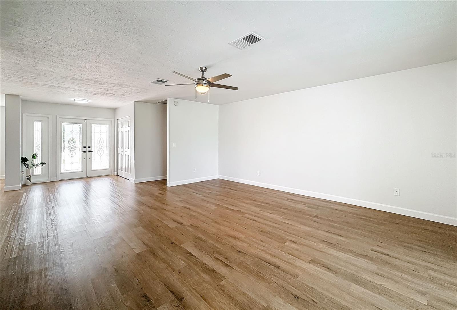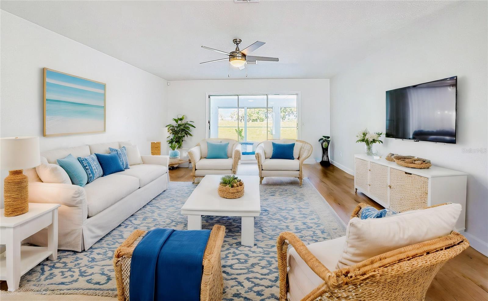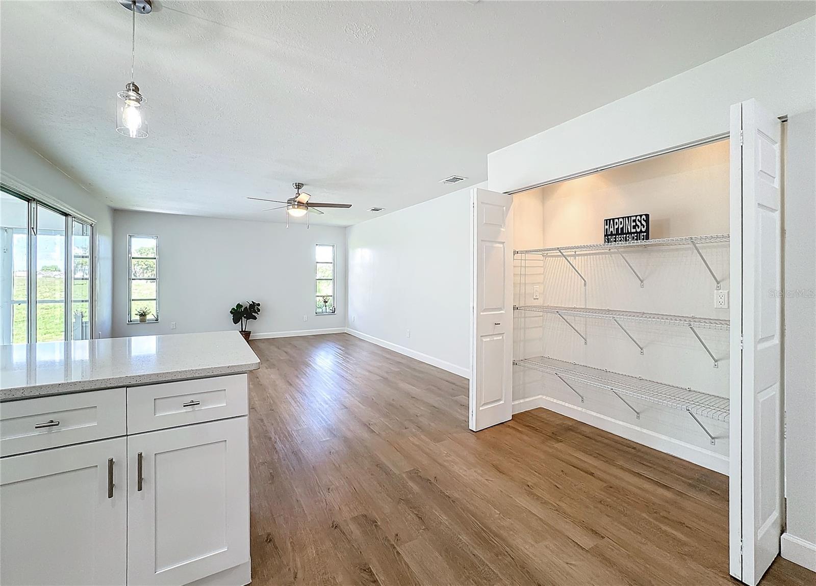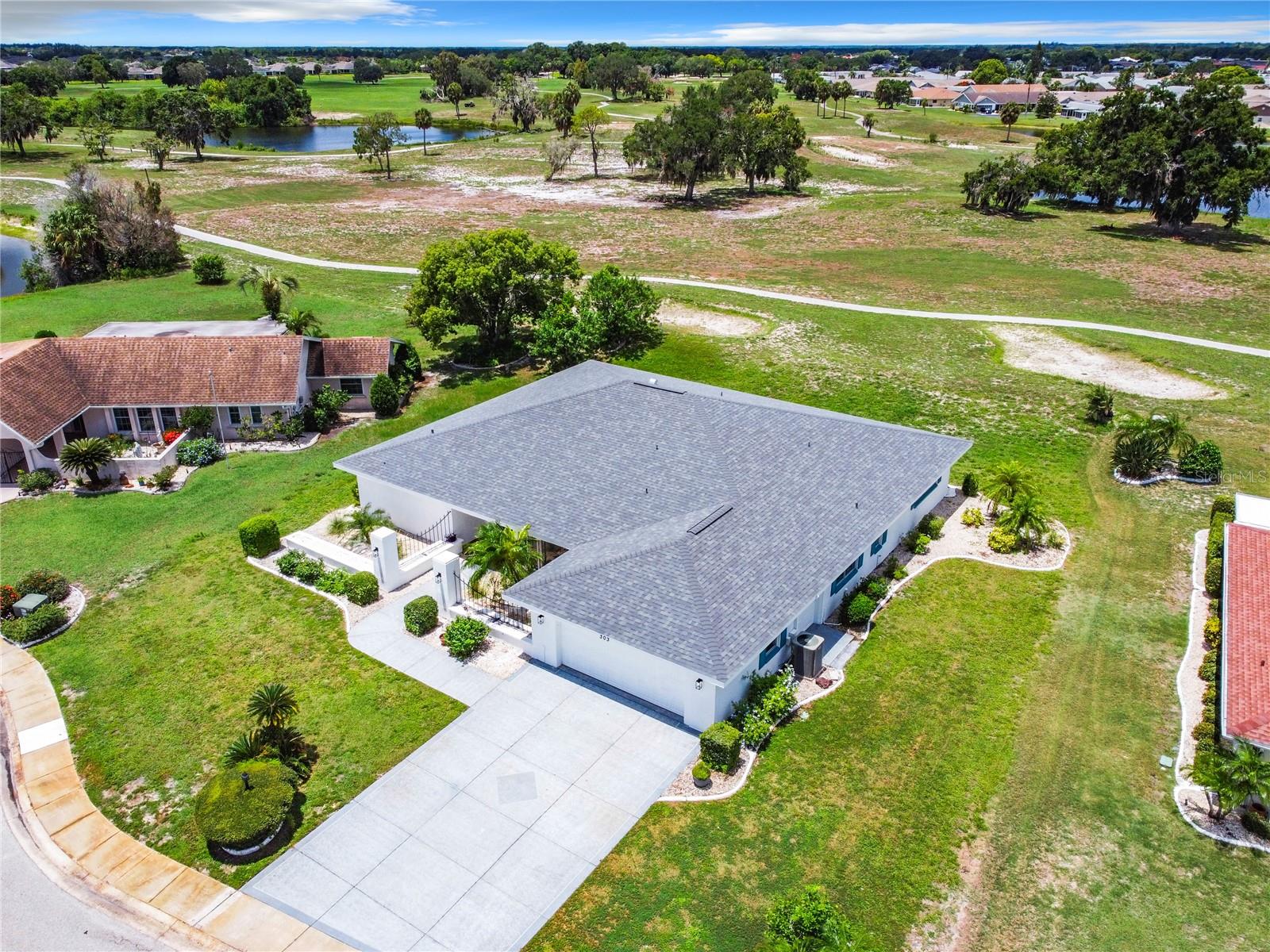 One or more photo(s) has been virtually staged. Come on over to your little piece of paradise with this spectacular newly renovated POOL HOME with a very private view, in the amenity rich community of Sun City Center! This wonderful 2500 sq.ft custom built home has it all! Roof replaced 2024, Pool resurfaced 2024, repipe in 2014 and the seller's are including a Home Warranty as well! The front door opens into the foyer, where you’ll be met with neutral color walls and new wood plank vinyl flooring, and an amazing view of the Sparkling pool and spa at the back of the home. White shaker cabinets and quartz countertops are the main attractions of the cook’s kitchen with large center island, new stainless-steel appliances, pantry and breakfast bar overlooking the dining area. In the light-filled Living room and dining area are an EXPANSIVE set of sliding patio doors that lead onto the beautiful lanai and pool. The spacious Master bedroom boasts 2 walk-in closets, along with an ensuite bathroom with dual sinks, quartz countertops, and a tiled walk-in shower. The split floorplan of this home provides privacy for guests, with two comfortable guest bedrooms and bathroom situated on the other side of the home. There is also a nice office/study with picture window of the landscaped courtyard. A good size indoor laundry room with washer and dryer hookups leads out to the 2-car garage with storage and golf cart door/access. Sun City Center is a 55+ community with 2 clubhouses, 3 pools, state-of-the-art fitness center, pickleball, Har-Tru tennis, over 200 clubs and activities and so much more!