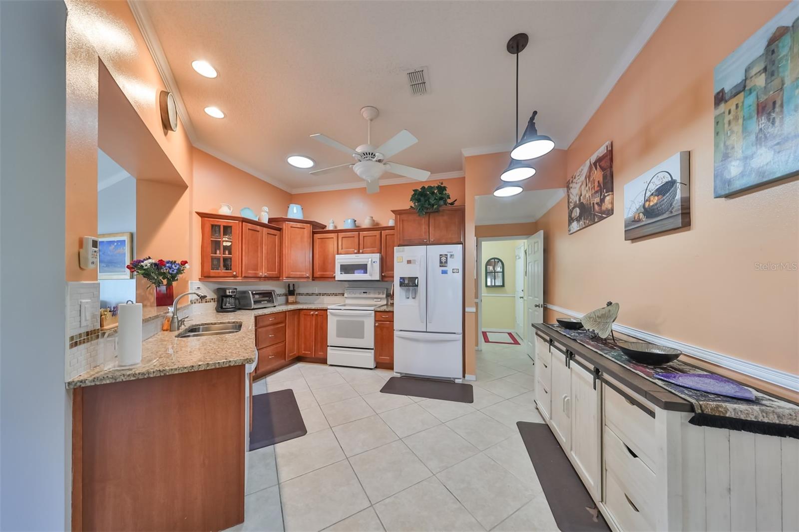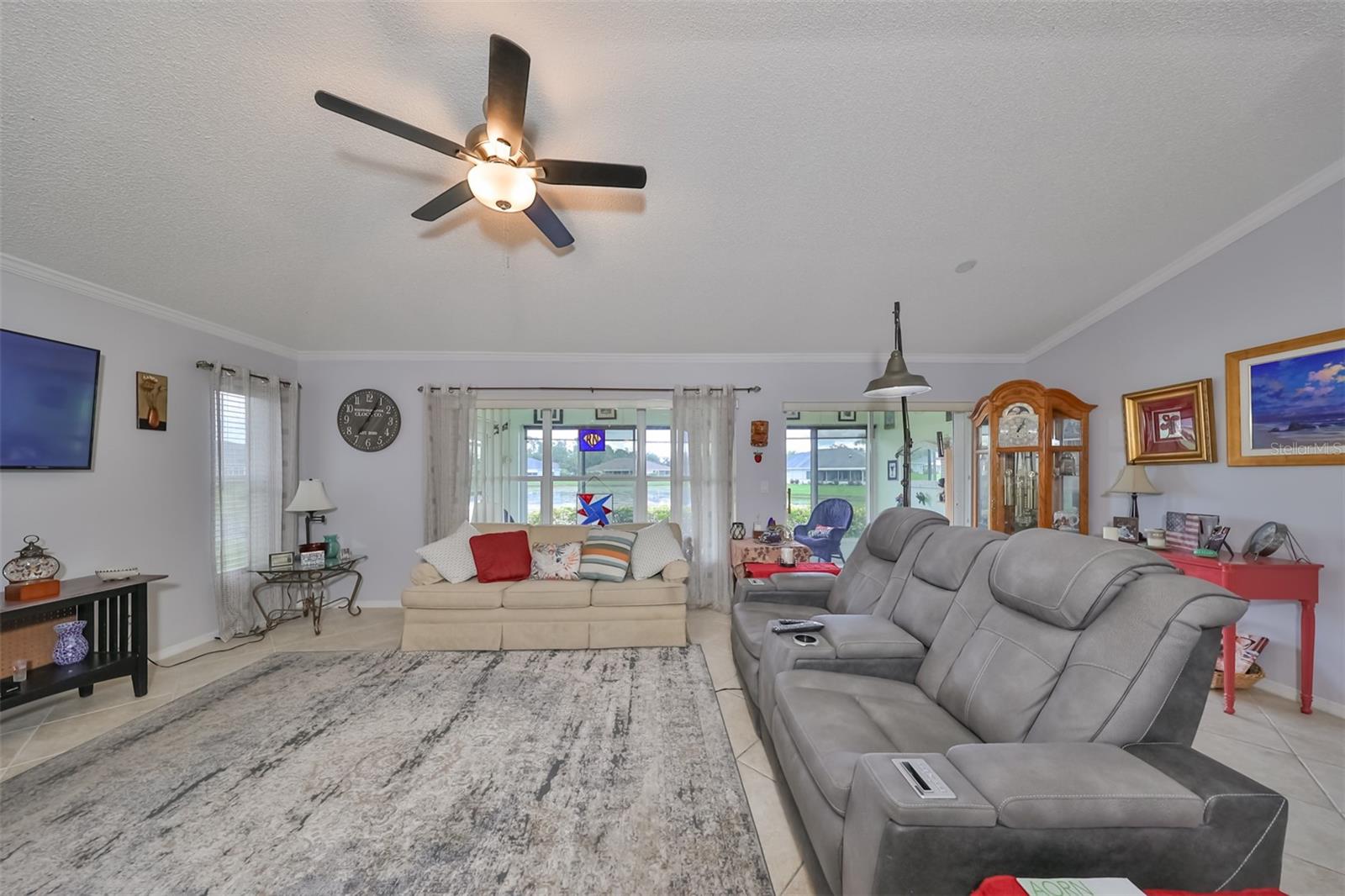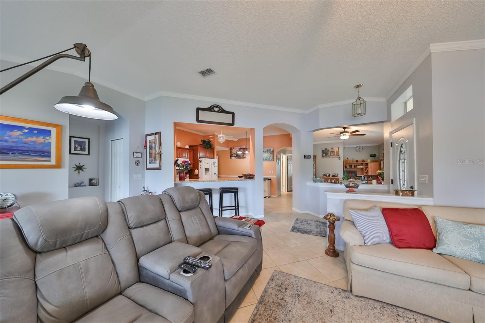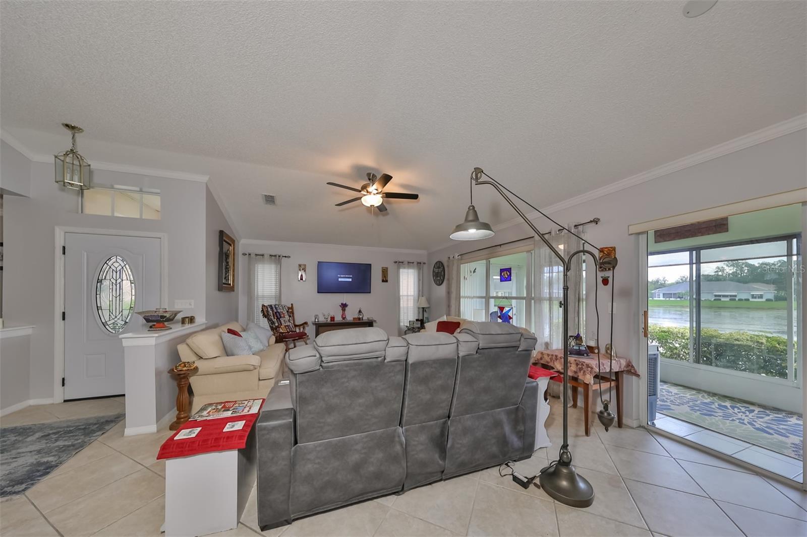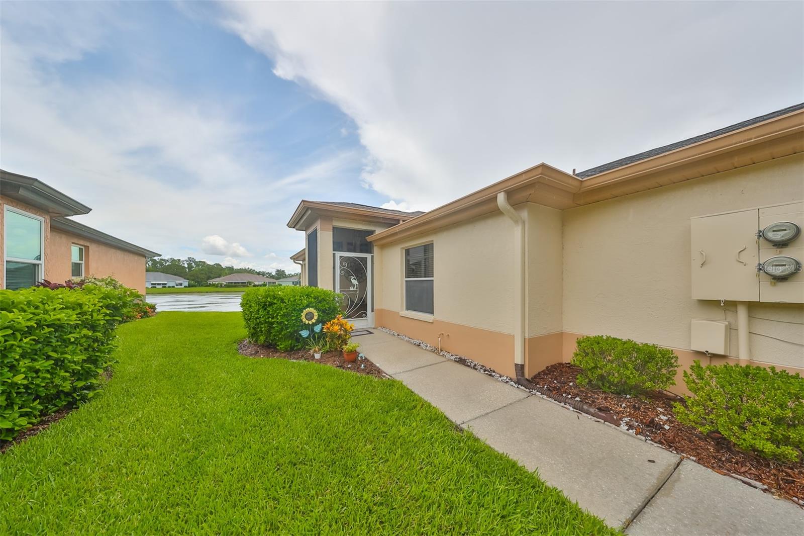 Don’t miss this stunning, well-maintained home in Kings Point that boasts a beautiful water view, providing you with a peaceful oasis to call your own. This 2bd/2ba charmer has a convenient open floor plan with split bedrooms that allows you to enjoy the water view from four different vantage points within the home. Flooring is tile and wood laminate throughout, with no carpet. The kitchen is complete with wood cabinetry, granite countertops, a breakfast bar and dinette area. The spacious living room has a vaulted ceiling, giving the home a bright, airy feel. The Florida room, which gives a full view of the water, is a relaxing space in which to start or end your day with your coffee while taking in the sunrise or sunset. A flex-space to the right of the entry provides versatility to the home. The Master Bedroom has a large, walk-in closet and is large enough to accommodate a king-sized bedroom suit. Recent updates include: New paint & crown molding throughout New stained glass entry door New dishwasher, refrigerator & microwave New ceiling fans in 5 rooms Waterproof seal to driveway/sidewalk New epoxy floor in garage Kings Point offers an active, maintenance-free retirement lifestyle for 55+ residents, with many utilities included as well as exterior maintenance of the home. Some of the accommodations the community provides include social and sports clubs, indoor and outdoor pools, tennis courts, golf course, a fitness center, two clubhouses, a theater, and more! Owner has the Kings Point platinum warranty which can be transferred at closing. Sun City Center is situated conveniently between Tampa and Sarasota, with easy access to shopping, beaches, and some of Florida’s most notable attractions. Make your appointment today to see this dreamy slice of paradise!