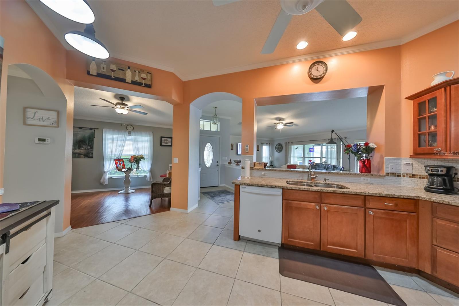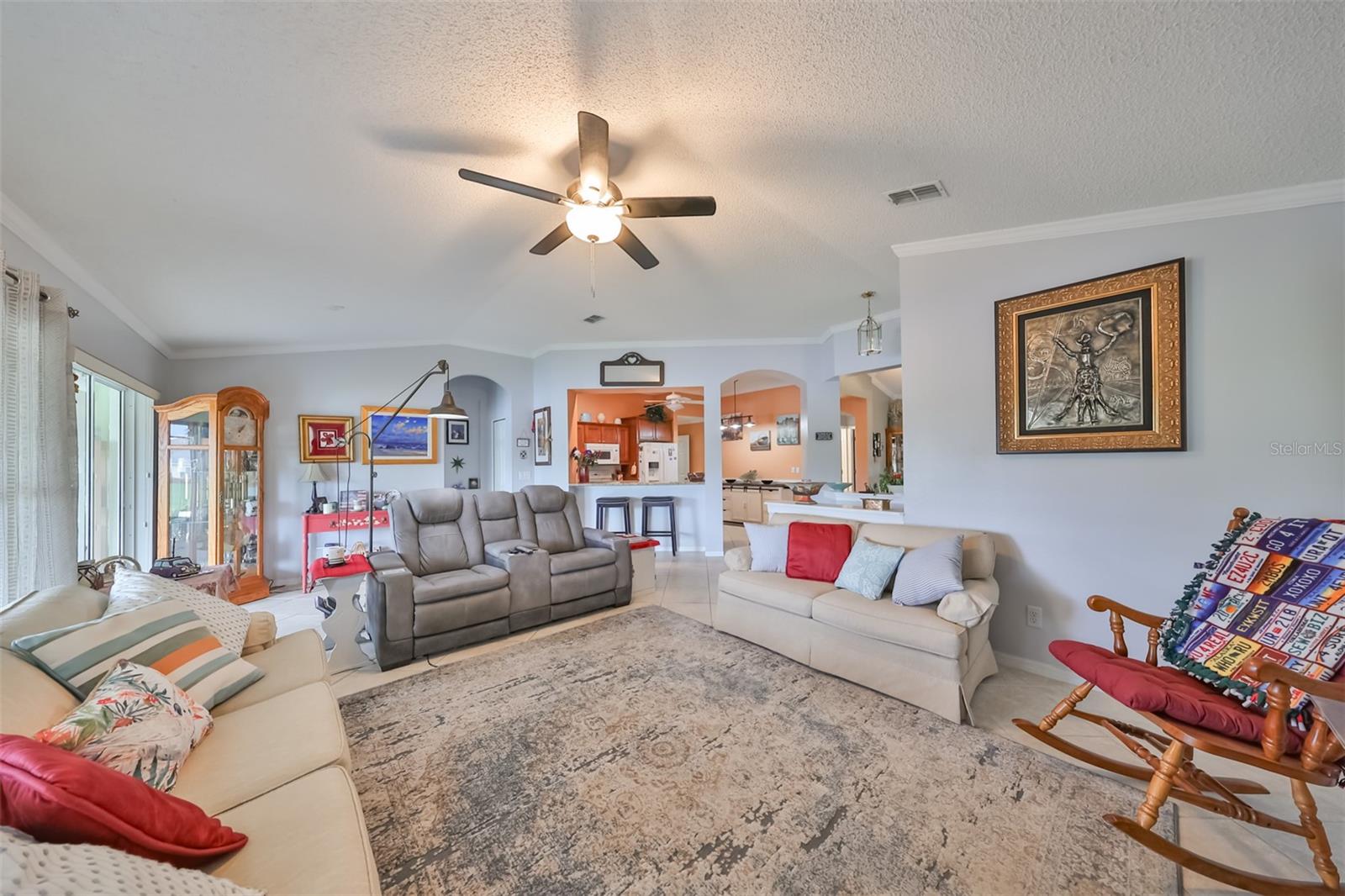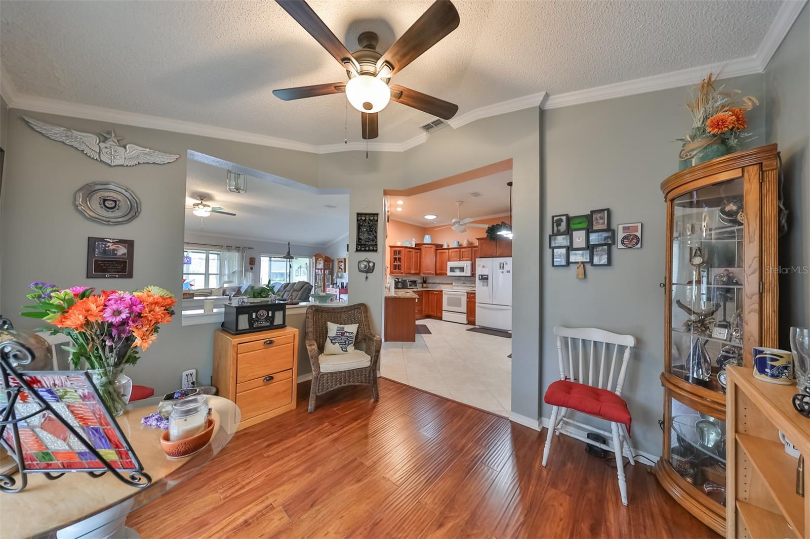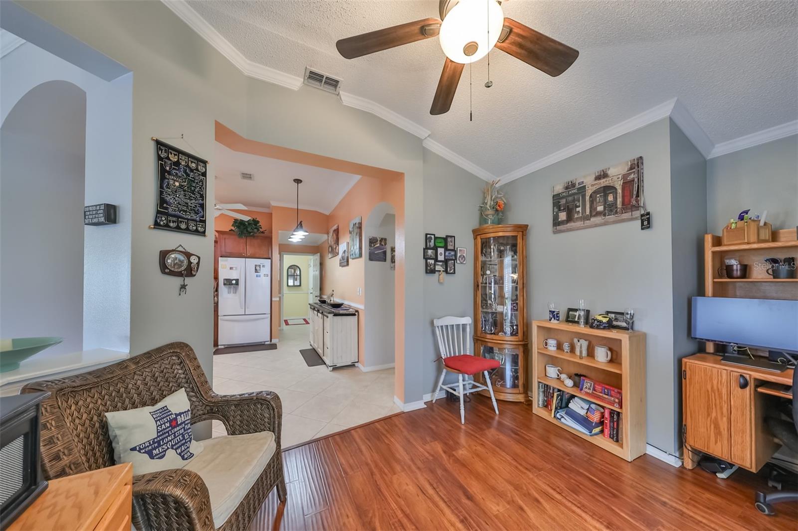 Don’t miss this stunning, well-maintained home in Kings Point that boasts a beautiful water view, providing you with a peaceful oasis to call your own. This 2bd/2ba charmer has a convenient open floor plan with split bedrooms that allows you to enjoy the water view from four different vantage points within the home. Flooring is tile and wood laminate throughout, with no carpet. The kitchen is complete with wood cabinetry, granite countertops, a breakfast bar and dinette area. The spacious living room has a vaulted ceiling, giving the home a bright, airy feel. The Florida room, which gives a full view of the water, is a relaxing space in which to start or end your day with your coffee while taking in the sunrise or sunset. A flex-space to the right of the entry provides versatility to the home. The Master Bedroom has a large, walk-in closet and is large enough to accommodate a king-sized bedroom suit. Recent updates include: New paint & crown molding throughout New stained glass entry door New dishwasher, refrigerator & microwave New ceiling fans in 5 rooms Waterproof seal to driveway/sidewalk New epoxy floor in garage Kings Point offers an active, maintenance-free retirement lifestyle for 55+ residents, with many utilities included as well as exterior maintenance of the home. Some of the accommodations the community provides include social and sports clubs, indoor and outdoor pools, tennis courts, golf course, a fitness center, two clubhouses, a theater, and more! Owner has the Kings Point platinum warranty which can be transferred at closing. Sun City Center is situated conveniently between Tampa and Sarasota, with easy access to shopping, beaches, and some of Florida’s most notable attractions. Make your appointment today to see this dreamy slice of paradise!