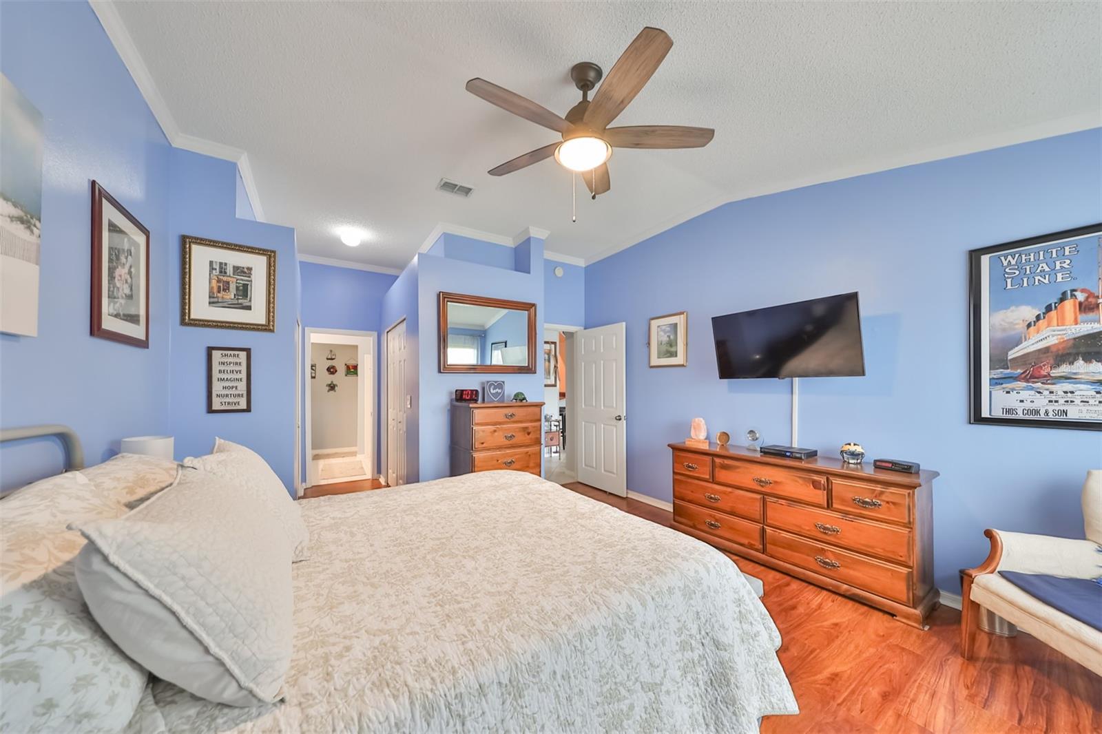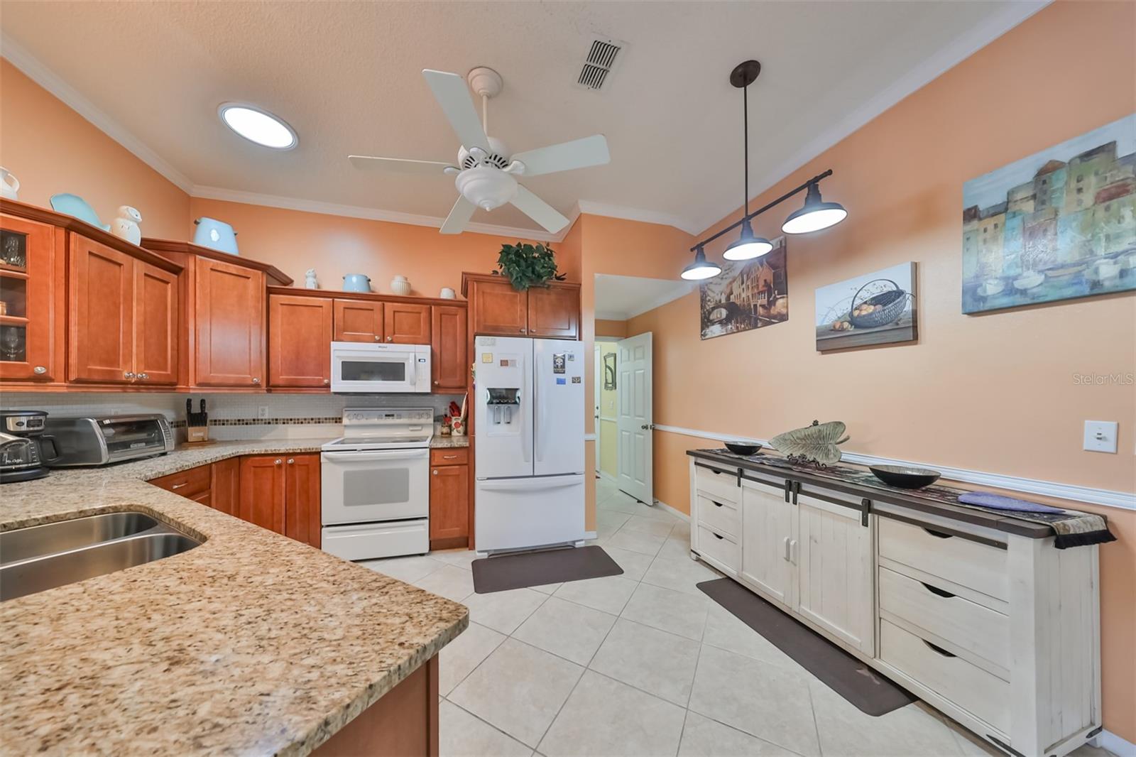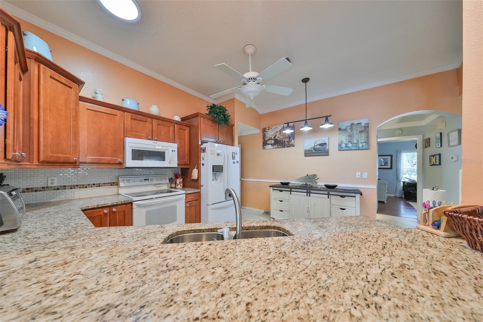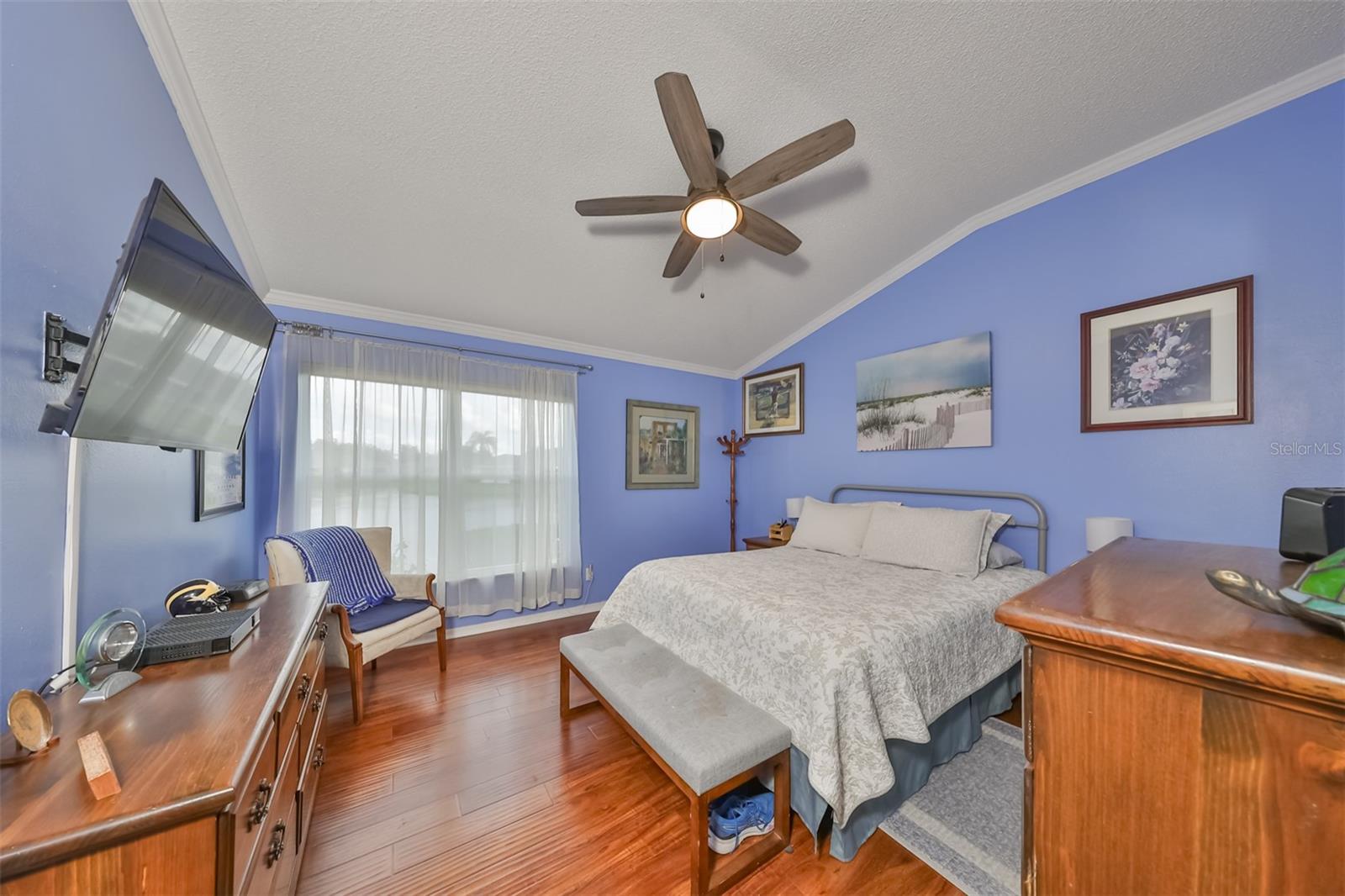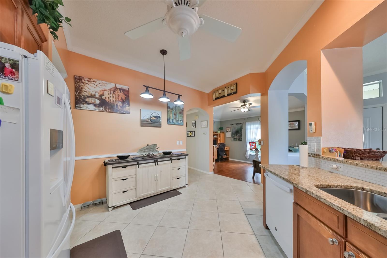 Don’t miss this stunning, well-maintained home in Kings Point that boasts a beautiful water view, providing you with a peaceful oasis to call your own. This 2bd/2ba charmer has a convenient open floor plan with split bedrooms that allows you to enjoy the water view from four different vantage points within the home. Flooring is tile and wood laminate throughout, with no carpet. The kitchen is complete with wood cabinetry, granite countertops, a breakfast bar and dinette area. The spacious living room has a vaulted ceiling, giving the home a bright, airy feel. The Florida room, which gives a full view of the water, is a relaxing space in which to start or end your day with your coffee while taking in the sunrise or sunset. A flex-space to the right of the entry provides versatility to the home. The Master Bedroom has a large, walk-in closet and is large enough to accommodate a king-sized bedroom suit. Recent updates include: New paint & crown molding throughout New stained glass entry door New dishwasher, refrigerator & microwave New ceiling fans in 5 rooms Waterproof seal to driveway/sidewalk New epoxy floor in garage Kings Point offers an active, maintenance-free retirement lifestyle for 55+ residents, with many utilities included as well as exterior maintenance of the home. Some of the accommodations the community provides include social and sports clubs, indoor and outdoor pools, tennis courts, golf course, a fitness center, two clubhouses, a theater, and more! Owner has the Kings Point platinum warranty which can be transferred at closing. Sun City Center is situated conveniently between Tampa and Sarasota, with easy access to shopping, beaches, and some of Florida’s most notable attractions. Make your appointment today to see this dreamy slice of paradise!