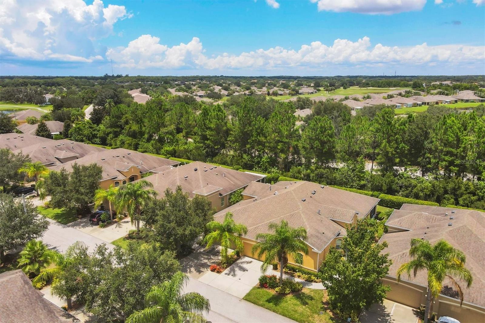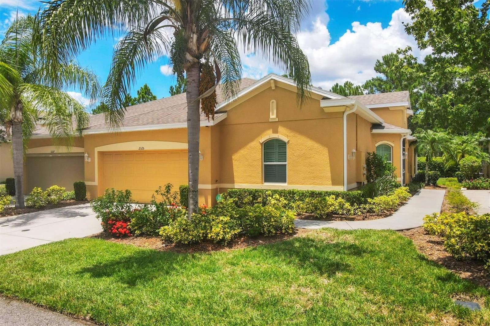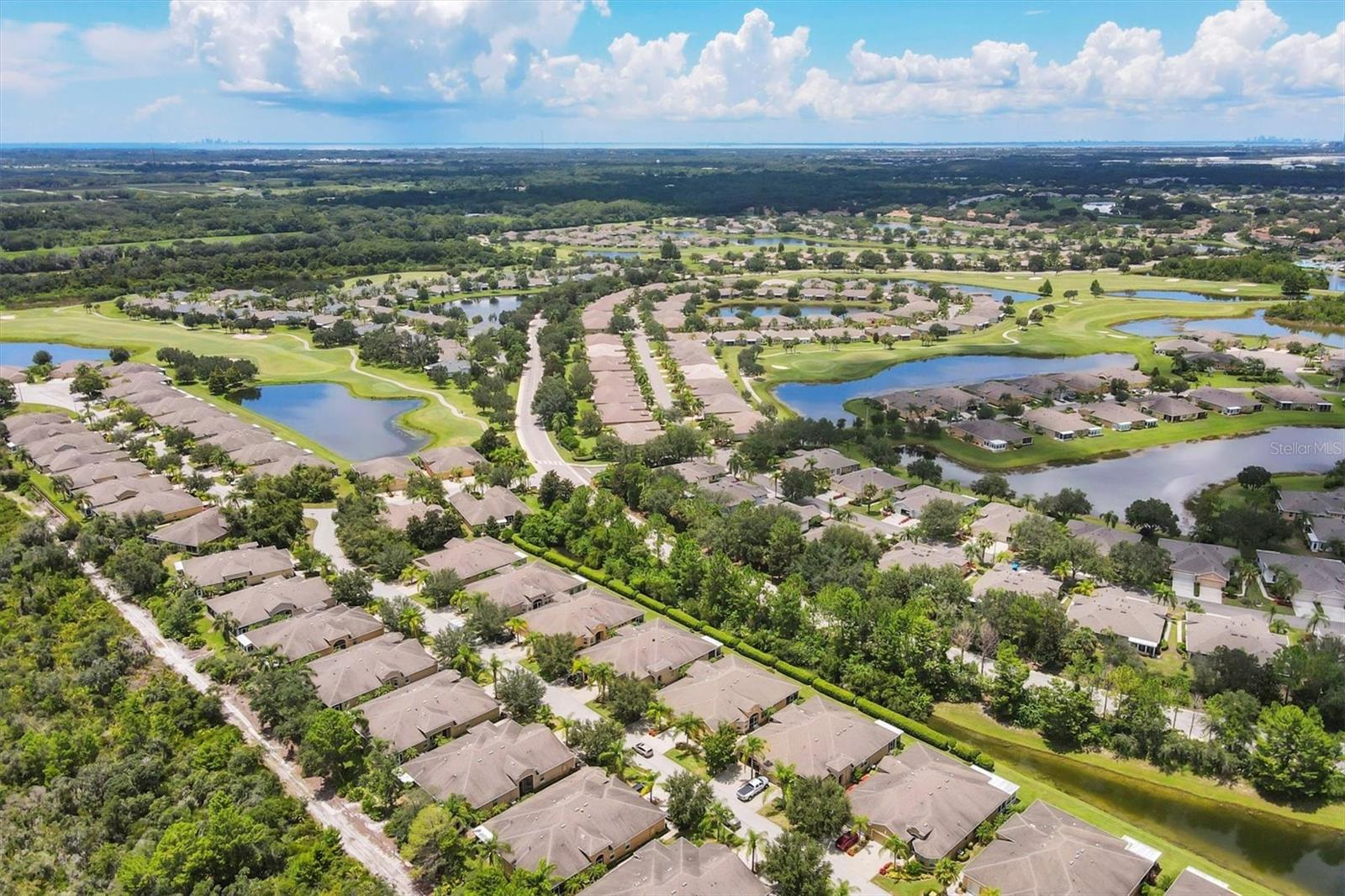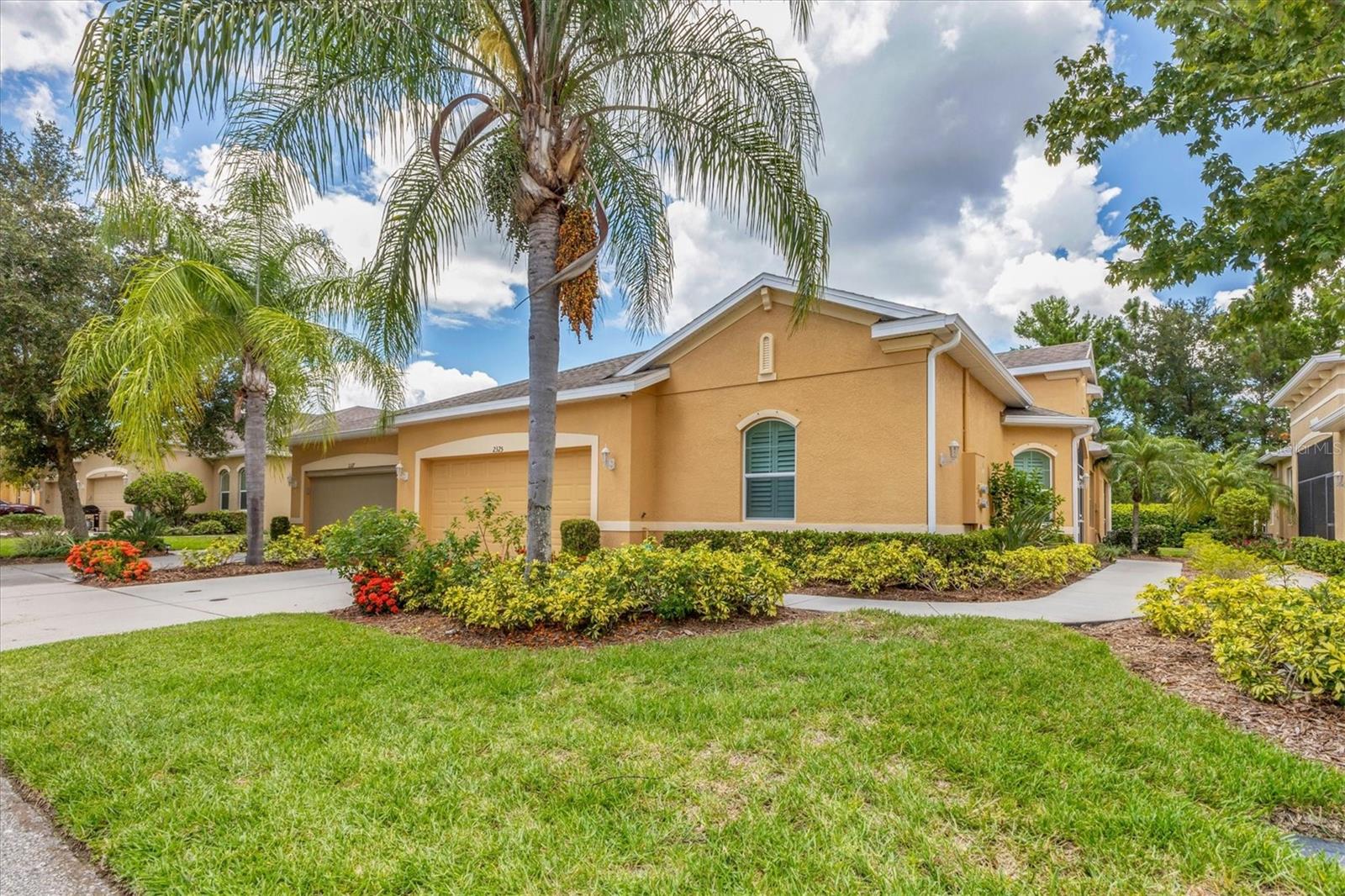 Beautiful 3 bed, 2 full bath, 2+ car plus room for a golf cart garage Kings Point 55+ condo! This Banyan floorplan features split bedrooms and an open kitchen/dining/living room layout and a new roof! Tile floors are on the diagonal throughout the living space while cozy carpet covers the bedroom floors. The kitchen has newer stainless appliances (2021), tall 42" cabinets with undermount lighting, lower cabinets with pull outs, granite countertops, and an island equipped with outlets. The large primary bedroom has a tray ceiling and fan and slatted blinds for the window. The ensuite bathroom has split vanities with granite tops, water closet, walk-in shower, and walk-in closet. The second bedroom could be another private suite since the second bath has a second door into the bedroom! Unique! The second bath has a brand new walk-in show with tile surround. The third bedroom has a built in closet, ceiling fan, and an arched window with slatted blinds. The living room is airy and has a triple slider which opens to the screened lanai. The view from the spacious lanai is green and calm. This laundry room is very large and equipped with plenty of cabinetry, newer washer and dryer (2021), and a functional utility sink. The garage has enough room for two cars PLUS golf cart storage. Since the home was built in 2013, the roof, A/C, electric panel, and water pipes are all original and up to code. Hurricane shutters for all windows and sliders come with this unit as well. Located in the very back of the community near the Manatee State Park, on a cul-de-sac, this street is quiet. One monthly fee covers all exterior maintenance, roof reserves, exterior structure insurance, lawn care, tree trimming, irrigation, water, basic cable tv, internet, all Kings Point facilities and common areas, private roads and security. You only pay your other bills for electric, interior insurance, and property tax. Kings Point is an active 55+ community with two beautiful clubhouses, auditorium, restaurant, bistro, pools, gym, pickleball courts, art facilities, library, and clubs galore to join or explore! Take a minibus tour to see a show or a ballgame. Sun poolside and listen to live music. Play a round of golf (Scepter is a Clublink owned course). Learn a new craft or develop a hobby. Ride your bike or walk the trails. Play cornhole. Whatever your interest, it's here! Golf carts are a main mode of transportation in the community and surrounding areas. Golf carts can access local shopping centers, banks, groceries, medical facilities and doctors offices, and houses of worship. Located just east of I-75 and between Hwy 41 and 301, vehicle travel is convenient. Tampa is just to the north west. Sarasota with its world-class beaches is to the south. Disney is less than 90 miles away. Little Manatee State Park borders Sun City Center to the south. E.G Simmons Park along the Bay is 10 miles west. So much to do here! So affordable! Enjoy 55+ life on your terms starting today!