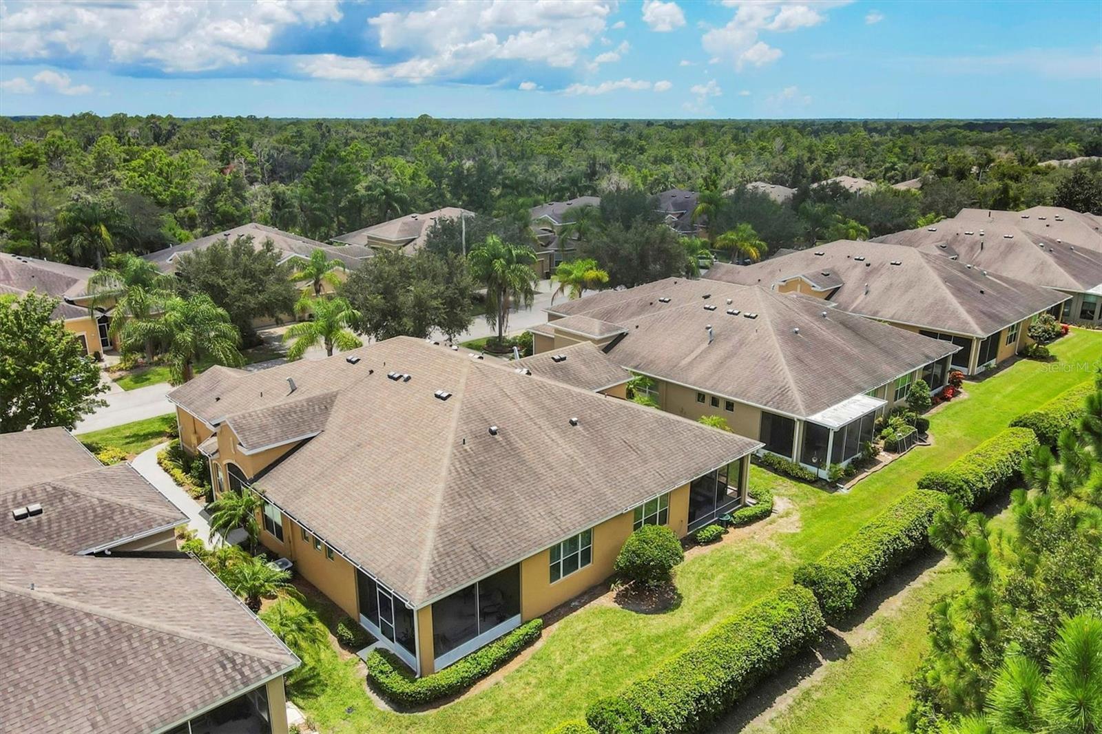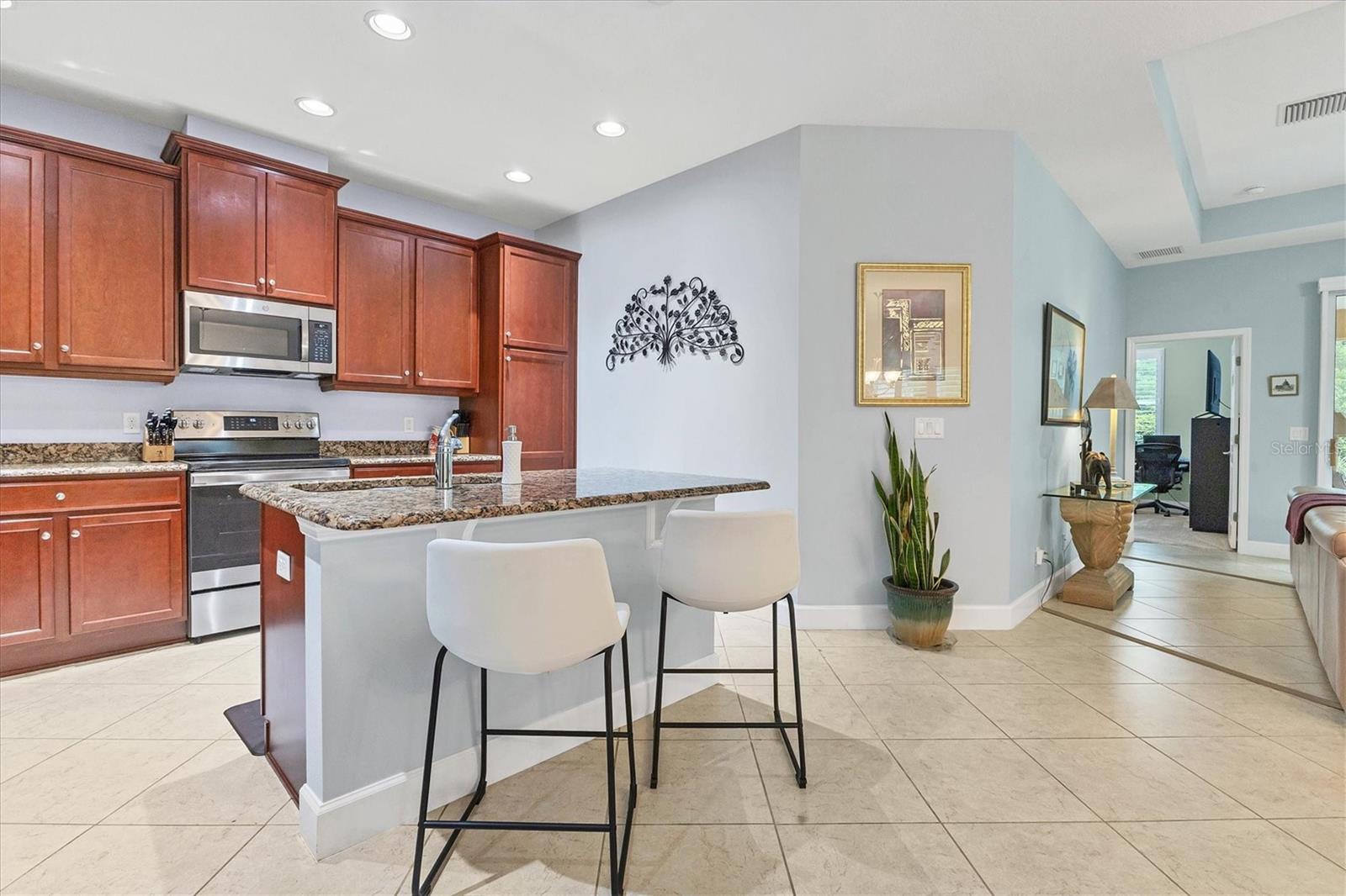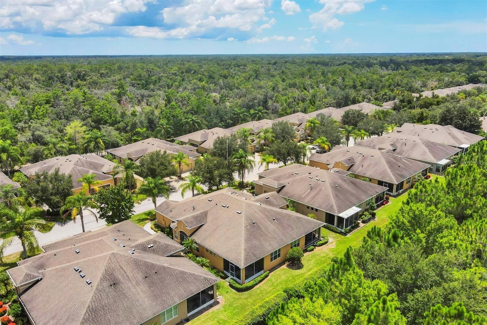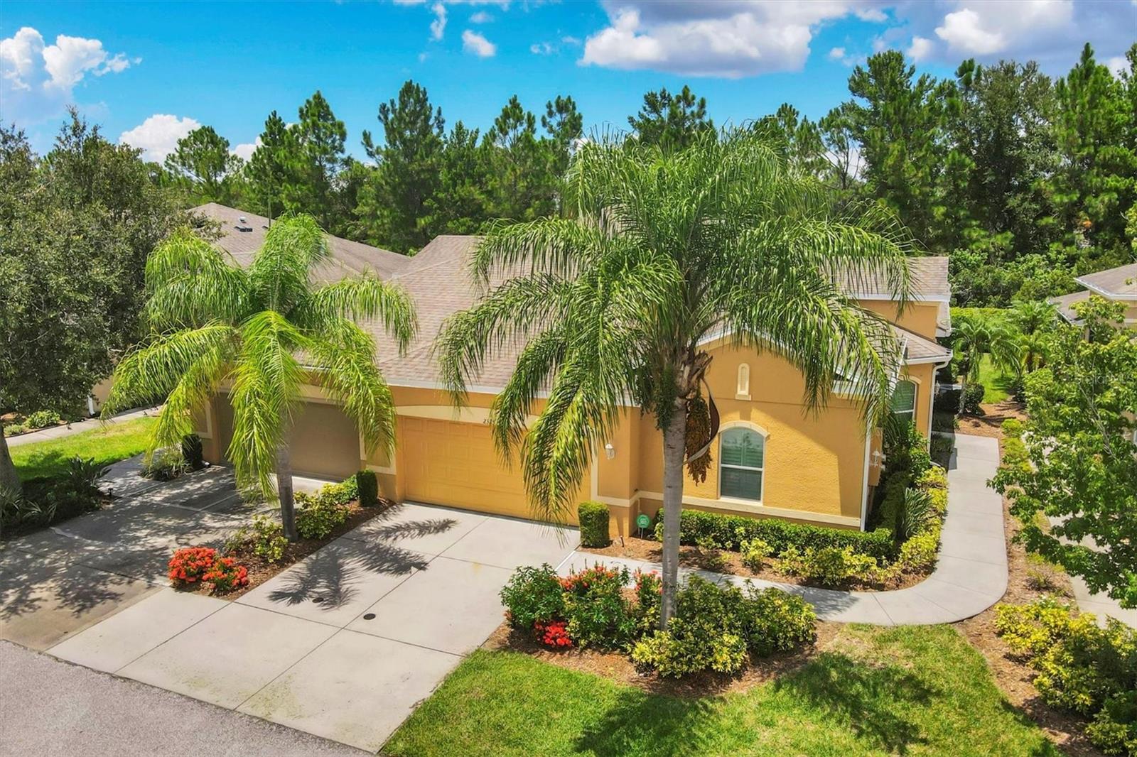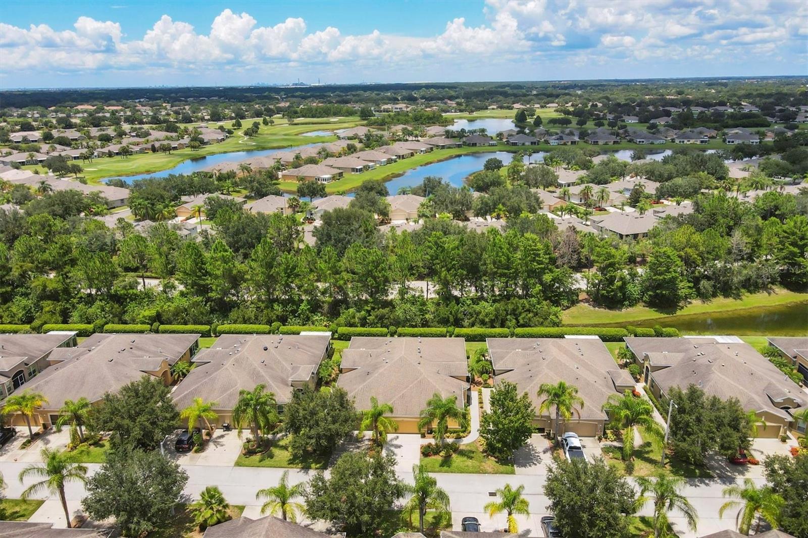Beautiful 3 bed, 2 full bath, 2+ car plus room for a golf cart garage Kings Point 55+ condo! This Banyan floorplan features split bedrooms and an open kitchen/dining/living room layout and a new roof! Tile floors are on the diagonal throughout the living space while cozy carpet covers the bedroom floors. The kitchen has newer stainless appliances (2021), tall 42" cabinets with undermount lighting, lower cabinets with pull outs, granite countertops, and an island equipped with outlets. The large primary bedroom has a tray ceiling and fan and slatted blinds for the window. The ensuite bathroom has split vanities with granite tops, water closet, walk-in shower, and walk-in closet. The second bedroom could be another private suite since the second bath has a second door into the bedroom! Unique! The second bath has a brand new walk-in show with tile surround. The third bedroom has a built in closet, ceiling fan, and an arched window with slatted blinds. The living room is airy and has a triple slider which opens to the screened lanai. The view from the spacious lanai is green and calm. This laundry room is very large and equipped with plenty of cabinetry, newer washer and dryer (2021), and a functional utility sink. The garage has enough room for two cars PLUS golf cart storage. Since the home was built in 2013, the roof, A/C, electric panel, and water pipes are all original and up to code. Hurricane shutters for all windows and sliders come with this unit as well. Located in the very back of the community near the Manatee State Park, on a cul-de-sac, this street is quiet. One monthly fee covers all exterior maintenance, roof reserves, exterior structure insurance, lawn care, tree trimming, irrigation, water, basic cable tv, internet, all Kings Point facilities and common areas, private roads and security. You only pay your other bills for electric, interior insurance, and property tax. Kings Point is an active 55+ community with two beautiful clubhouses, auditorium, restaurant, bistro, pools, gym, pickleball courts, art facilities, library, and clubs galore to join or explore! Take a minibus tour to see a show or a ballgame. Sun poolside and listen to live music. Play a round of golf (Scepter is a Clublink owned course). Learn a new craft or develop a hobby. Ride your bike or walk the trails. Play cornhole. Whatever your interest, it's here! Golf carts are a main mode of transportation in the community and surrounding areas. Golf carts can access local shopping centers, banks, groceries, medical facilities and doctors offices, and houses of worship. Located just east of I-75 and between Hwy 41 and 301, vehicle travel is convenient. Tampa is just to the north west. Sarasota with its world-class beaches is to the south. Disney is less than 90 miles away. Little Manatee State Park borders Sun City Center to the south. E.G Simmons Park along the Bay is 10 miles west. So much to do here! So affordable! Enjoy 55+ life on your terms starting today!