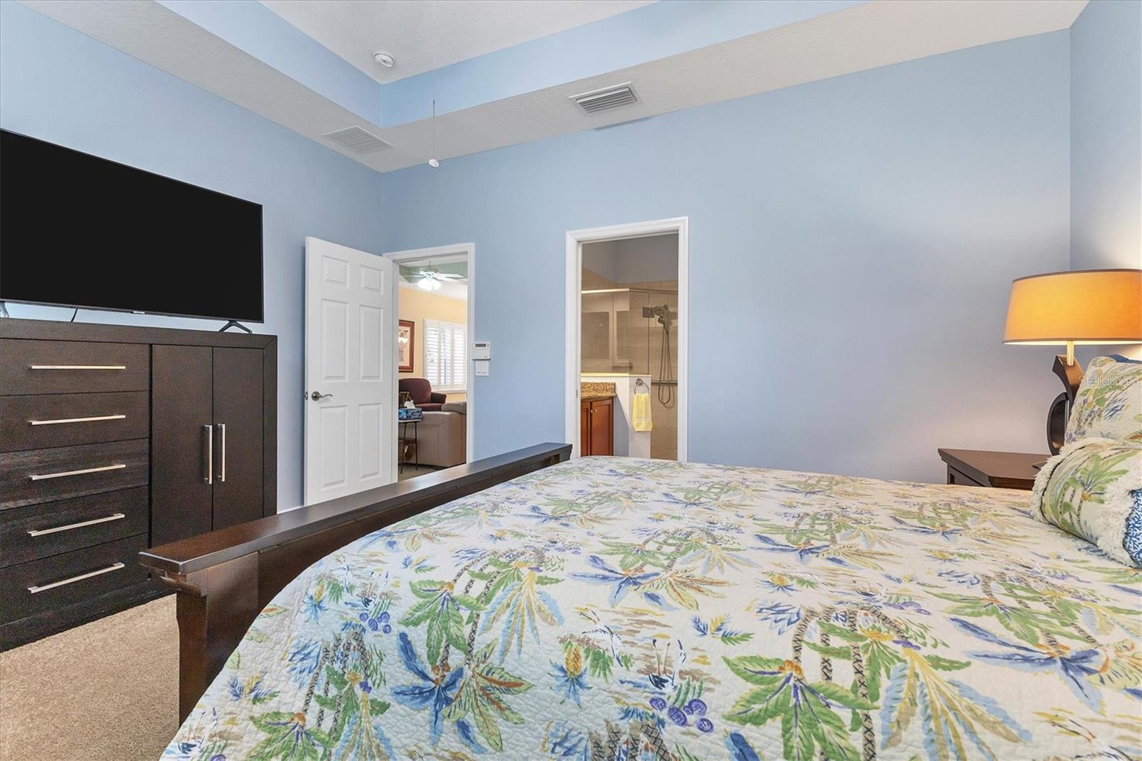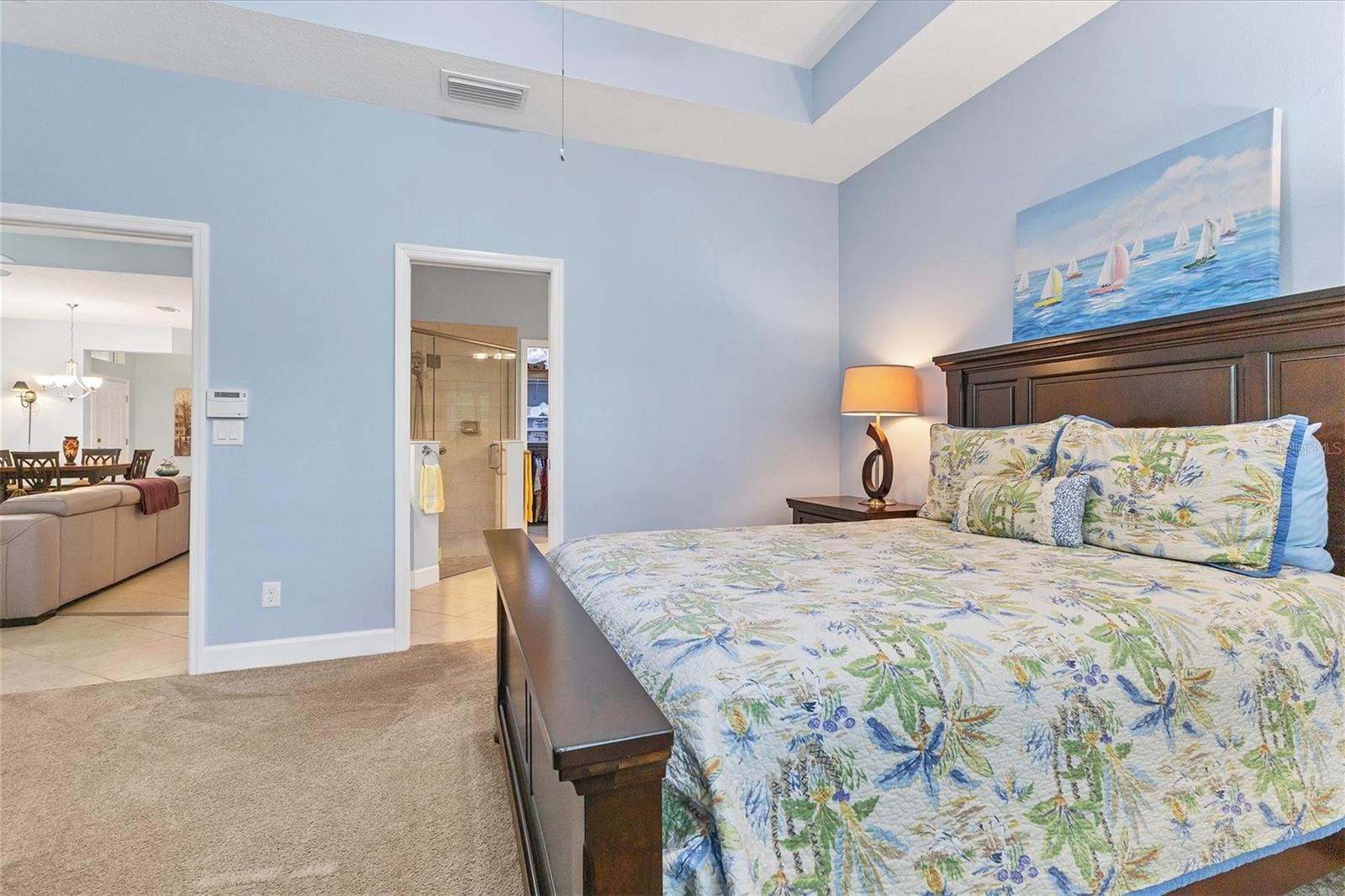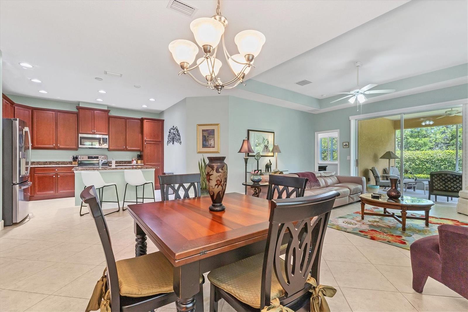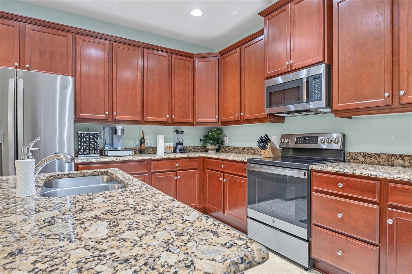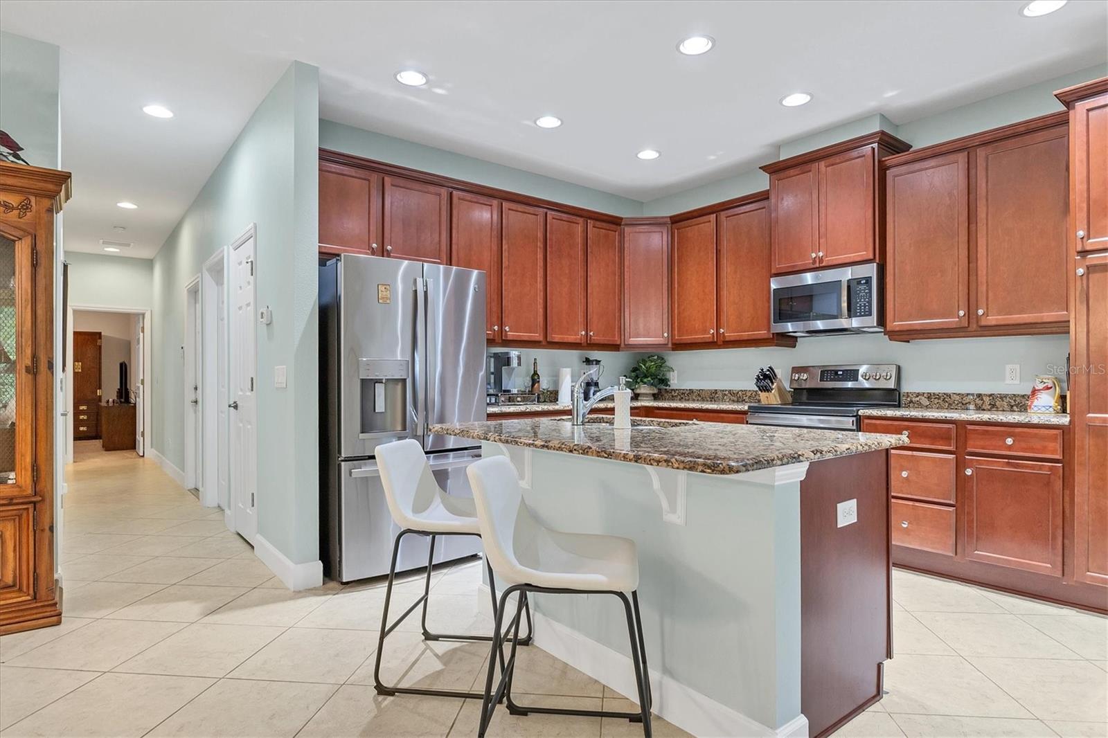 Beautiful 3 bed, 2 full bath, 2+ car plus room for a golf cart garage Kings Point 55+ condo! This Banyan floorplan features split bedrooms and an open kitchen/dining/living room layout and a new roof! Tile floors are on the diagonal throughout the living space while cozy carpet covers the bedroom floors. The kitchen has newer stainless appliances (2021), tall 42" cabinets with undermount lighting, lower cabinets with pull outs, granite countertops, and an island equipped with outlets. The large primary bedroom has a tray ceiling and fan and slatted blinds for the window. The ensuite bathroom has split vanities with granite tops, water closet, walk-in shower, and walk-in closet. The second bedroom could be another private suite since the second bath has a second door into the bedroom! Unique! The second bath has a brand new walk-in show with tile surround. The third bedroom has a built in closet, ceiling fan, and an arched window with slatted blinds. The living room is airy and has a triple slider which opens to the screened lanai. The view from the spacious lanai is green and calm. This laundry room is very large and equipped with plenty of cabinetry, newer washer and dryer (2021), and a functional utility sink. The garage has enough room for two cars PLUS golf cart storage. Since the home was built in 2013, the roof, A/C, electric panel, and water pipes are all original and up to code. Hurricane shutters for all windows and sliders come with this unit as well. Located in the very back of the community near the Manatee State Park, on a cul-de-sac, this street is quiet. One monthly fee covers all exterior maintenance, roof reserves, exterior structure insurance, lawn care, tree trimming, irrigation, water, basic cable tv, internet, all Kings Point facilities and common areas, private roads and security. You only pay your other bills for electric, interior insurance, and property tax. Kings Point is an active 55+ community with two beautiful clubhouses, auditorium, restaurant, bistro, pools, gym, pickleball courts, art facilities, library, and clubs galore to join or explore! Take a minibus tour to see a show or a ballgame. Sun poolside and listen to live music. Play a round of golf (Scepter is a Clublink owned course). Learn a new craft or develop a hobby. Ride your bike or walk the trails. Play cornhole. Whatever your interest, it's here! Golf carts are a main mode of transportation in the community and surrounding areas. Golf carts can access local shopping centers, banks, groceries, medical facilities and doctors offices, and houses of worship. Located just east of I-75 and between Hwy 41 and 301, vehicle travel is convenient. Tampa is just to the north west. Sarasota with its world-class beaches is to the south. Disney is less than 90 miles away. Little Manatee State Park borders Sun City Center to the south. E.G Simmons Park along the Bay is 10 miles west. So much to do here! So affordable! Enjoy 55+ life on your terms starting today!