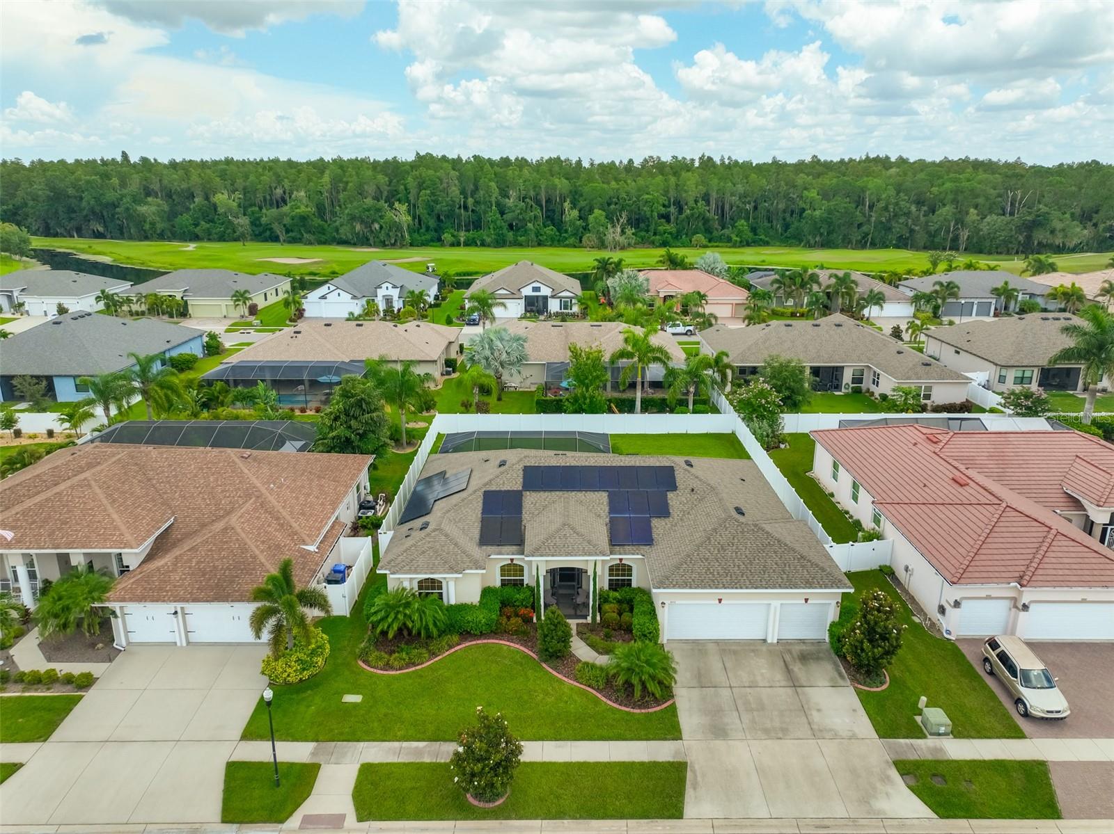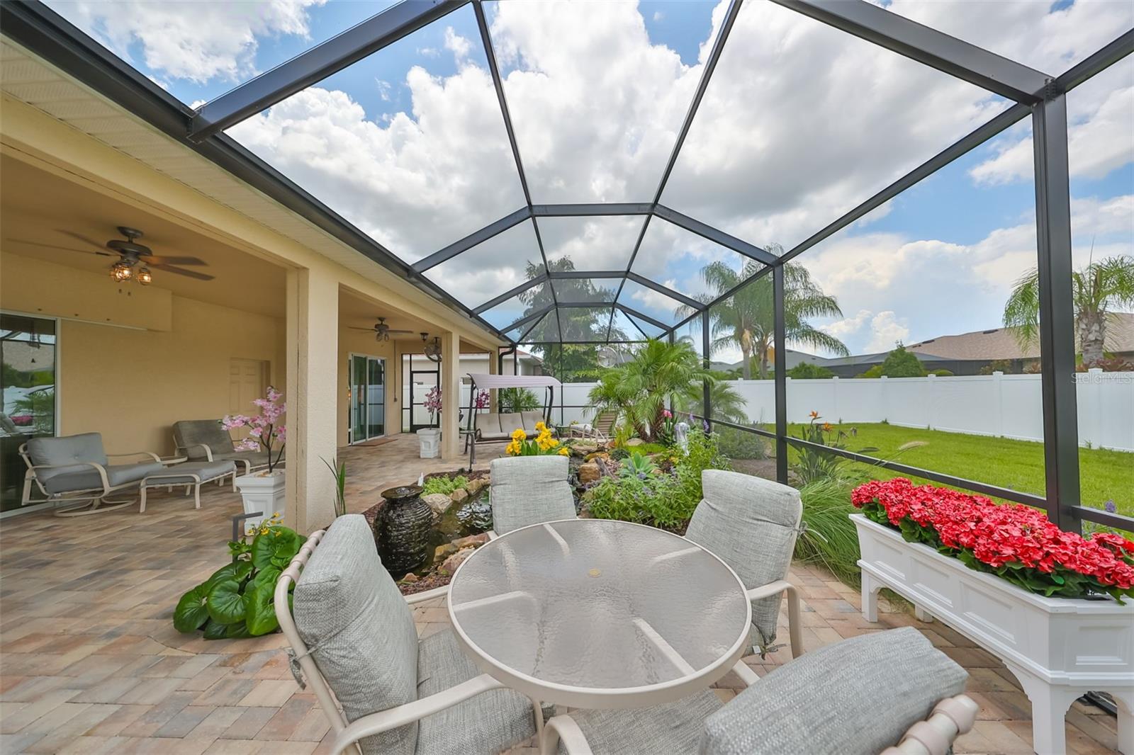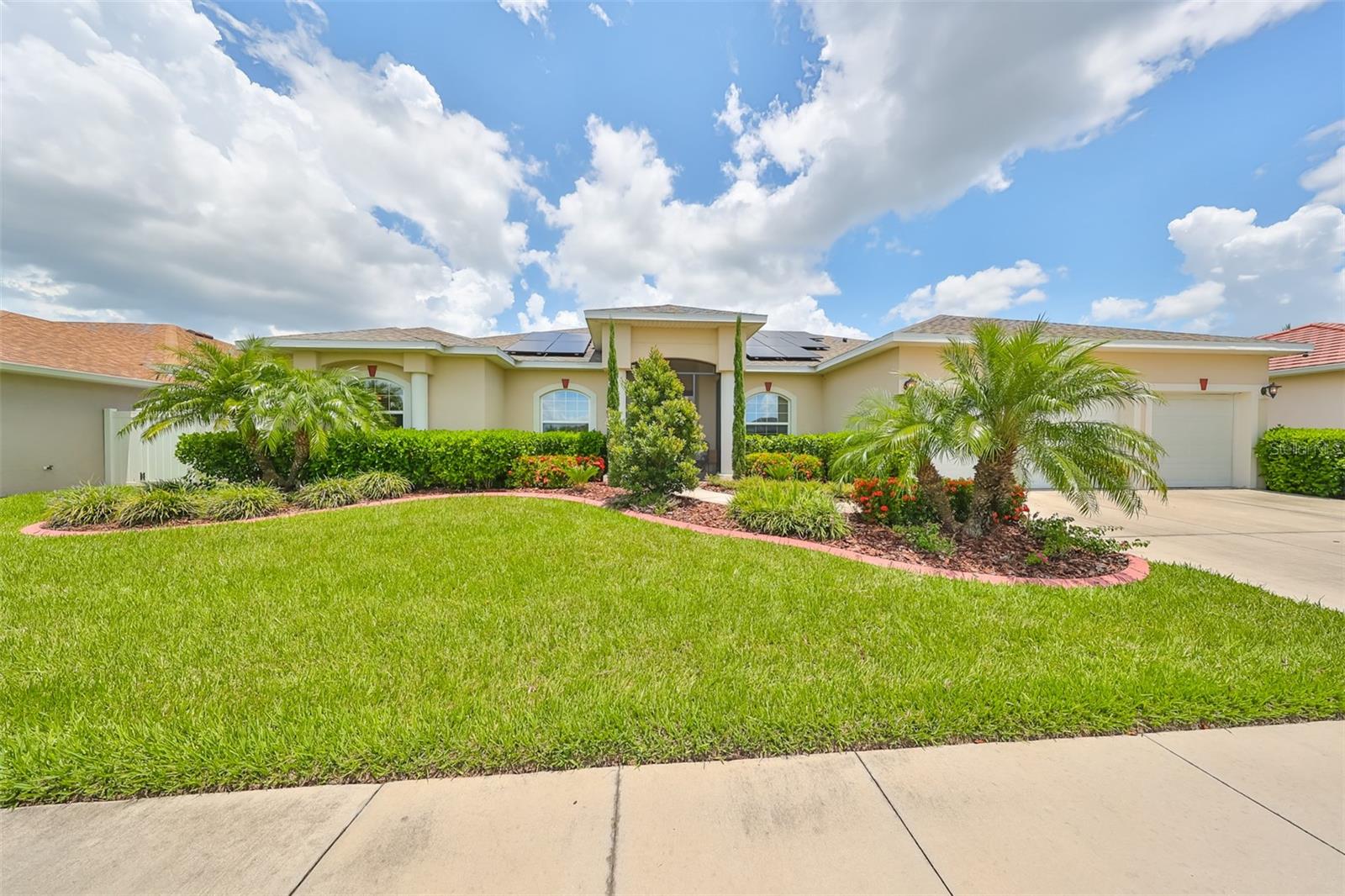 Located in the sought-after La Paloma neighborhood within the Villages of Cypress Creek just South of Tampa. This residence offers a 10.3KW SOLAR system with battery back-up, 3 bedrooms, 3 bathrooms, and a 4th room that can be used as an office, den, or bedroom with a spacious three-car garage, on a huge lot. OUTSIDE you will find a GORGEOUS lanai with a waterfall and KOI pond with a FULLY fenced yard. The Solar will be fully PAID at closing so the new buyer may enjoy utility bills as LOW as $25 per month! The home was built for easy and seamless outdoor and indoor living. The kitchen features stainless steel appliances, elegant granite countertops, solid wood cabinets, and a walk-in pantry closet. Enjoy your mornings in the bright sunlit breakfast nook with sliders and a large window. This eat-in area also features more built-in cabinets for storage and a high-end counter-height fridge/freezer. Use it as you prefer, the temperature can be adjusted to be a refrigerator or a freezer. Through the great room with a trey ceiling, step outside through the numerous sliding, stackable doors to the spacious lanai (29.5x38), complete with a large covered area, a relaxing Koi pond with waterfall, and fan misters installed on every corner to keep you cool in the summer. Relax and enjoy your oasis year round listening to the gentle sounds of the water. Back inside, the main bedroom features two walk-in closets paired with a luxurious en suite bathroom. Here you will find a large glass walk-in shower, dual sinks with custom cabinets, and a Thera-Tub walk-in bathtub with the lowest step through-door on the market, and therapeutic air and water jets, aroma therapy, and Micro Bubbles. The two additional bedrooms on the other side of the house provide ample space for family or guests and share a full bathroom, which features a combo tub and shower. There are also two additional storage closets in the hallway. The additional 4th room has double doors and can be used as a bedroom, office, or den. Staying in this room is a gorgeous built-in Murphy bed with plenty of sliding shelves. The third FULL bathroom is close by with a glass walk-in shower and a door that leads out to the lanai. Additional highlights include a NEW energy efficient hot water heater/heat pump, a professionally maintained A/C, and a water filtration system. NO CDD and LOW HOA. Close to restaurants, stores, and medical facilities. The community of La Paloma is only minutes away from the I-75 and Hwy 301 providing easy access to shopping and world-famous beaches in Sarasota, St Petersburg, and Tampa. ASSUMABLE LOAN AVAILABLE.