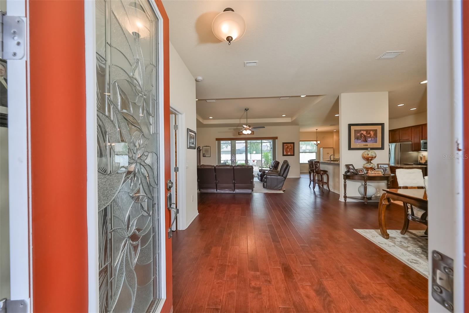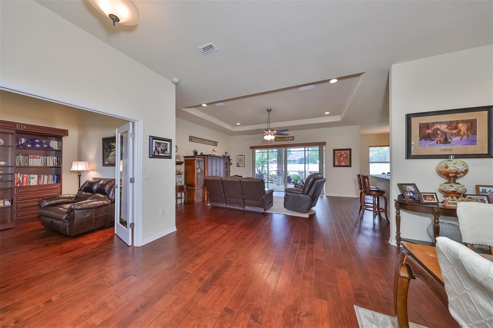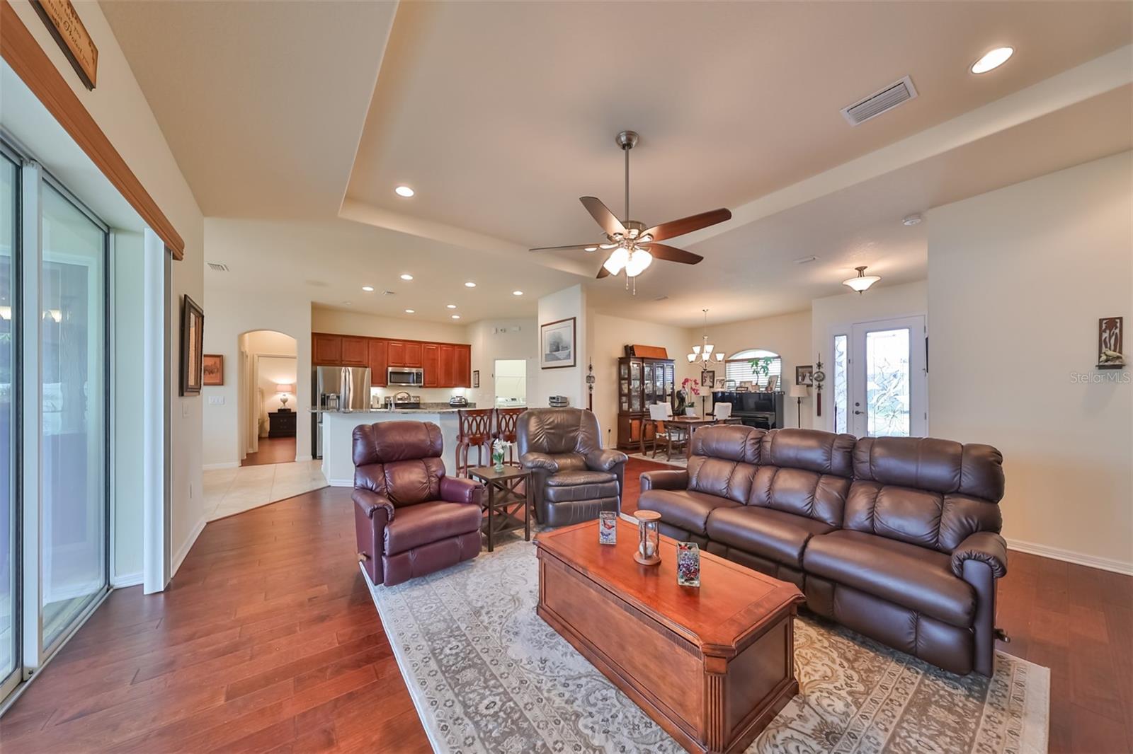 Located in the sought-after La Paloma neighborhood within the Villages of Cypress Creek just South of Tampa. This residence offers a 10.3KW SOLAR system with battery back-up, 3 bedrooms, 3 bathrooms, and a 4th room that can be used as an office, den, or bedroom with a spacious three-car garage, on a huge lot. OUTSIDE you will find a GORGEOUS lanai with a waterfall and KOI pond with a FULLY fenced yard. The Solar will be fully PAID at closing so the new buyer may enjoy utility bills as LOW as $25 per month! The home was built for easy and seamless outdoor and indoor living. The kitchen features stainless steel appliances, elegant granite countertops, solid wood cabinets, and a walk-in pantry closet. Enjoy your mornings in the bright sunlit breakfast nook with sliders and a large window. This eat-in area also features more built-in cabinets for storage and a high-end counter-height fridge/freezer. Use it as you prefer, the temperature can be adjusted to be a refrigerator or a freezer. Through the great room with a trey ceiling, step outside through the numerous sliding, stackable doors to the spacious lanai (29.5x38), complete with a large covered area, a relaxing Koi pond with waterfall, and fan misters installed on every corner to keep you cool in the summer. Relax and enjoy your oasis year round listening to the gentle sounds of the water. Back inside, the main bedroom features two walk-in closets paired with a luxurious en suite bathroom. Here you will find a large glass walk-in shower, dual sinks with custom cabinets, and a Thera-Tub walk-in bathtub with the lowest step through-door on the market, and therapeutic air and water jets, aroma therapy, and Micro Bubbles. The two additional bedrooms on the other side of the house provide ample space for family or guests and share a full bathroom, which features a combo tub and shower. There are also two additional storage closets in the hallway. The additional 4th room has double doors and can be used as a bedroom, office, or den. Staying in this room is a gorgeous built-in Murphy bed with plenty of sliding shelves. The third FULL bathroom is close by with a glass walk-in shower and a door that leads out to the lanai. Additional highlights include a NEW energy efficient hot water heater/heat pump, a professionally maintained A/C, and a water filtration system. NO CDD and LOW HOA. Close to restaurants, stores, and medical facilities. The community of La Paloma is only minutes away from the I-75 and Hwy 301 providing easy access to shopping and world-famous beaches in Sarasota, St Petersburg, and Tampa. ASSUMABLE LOAN AVAILABLE.