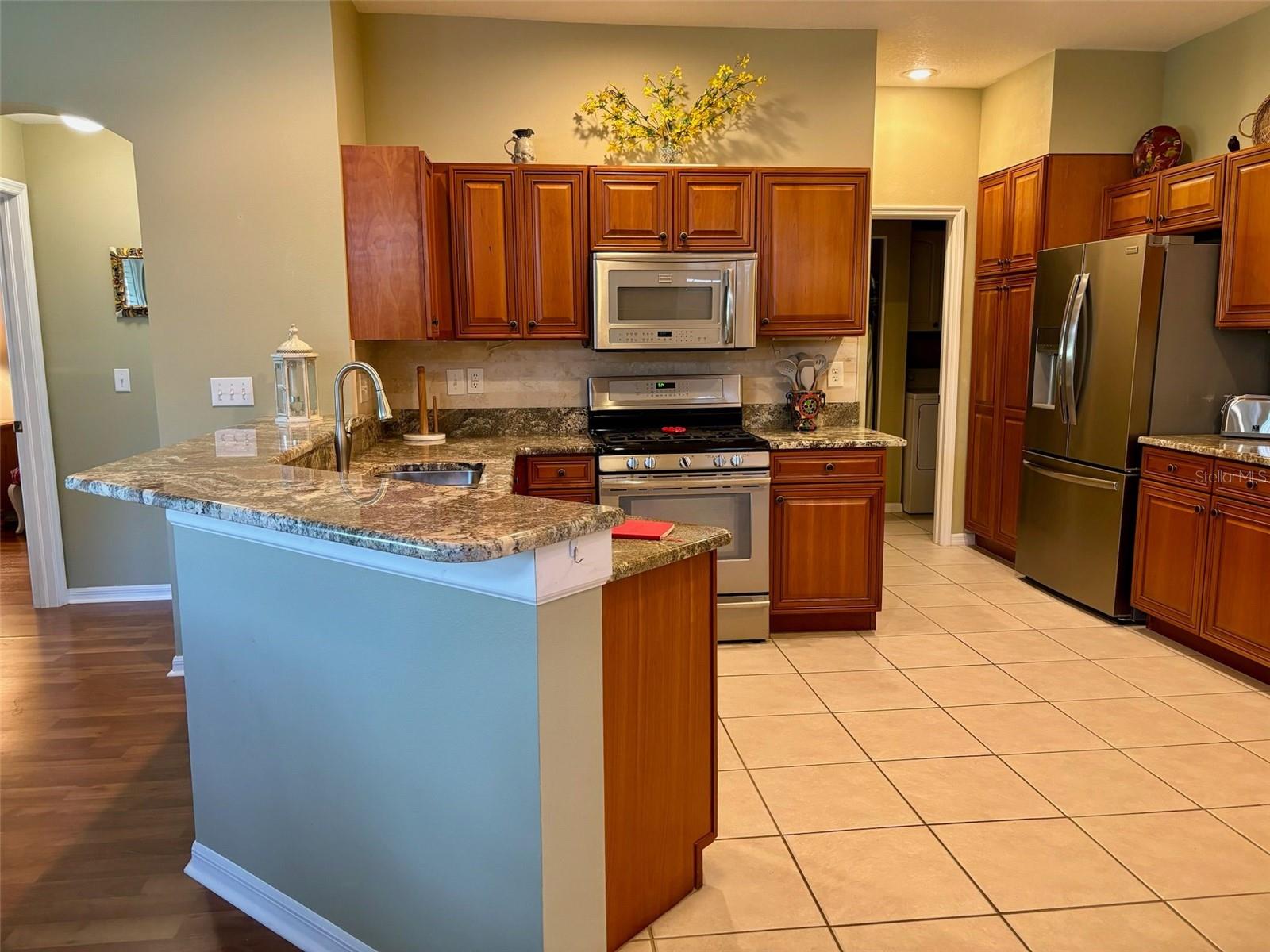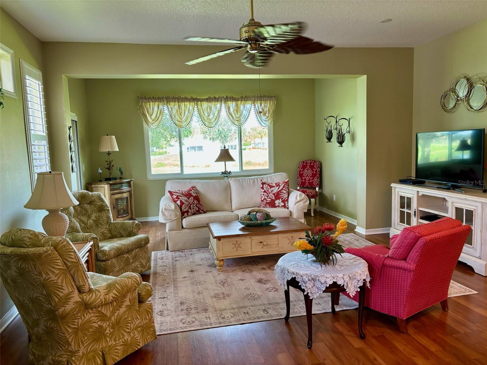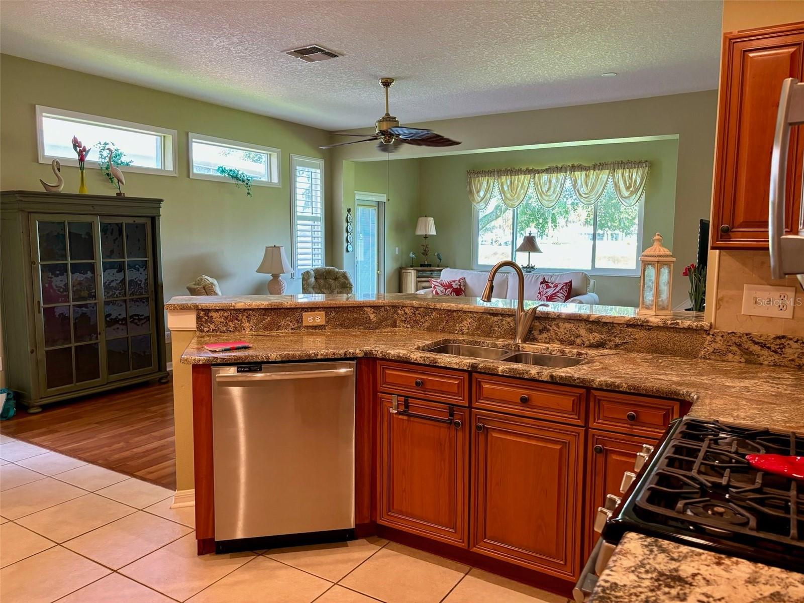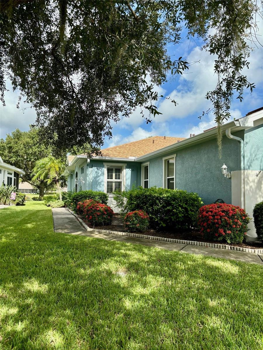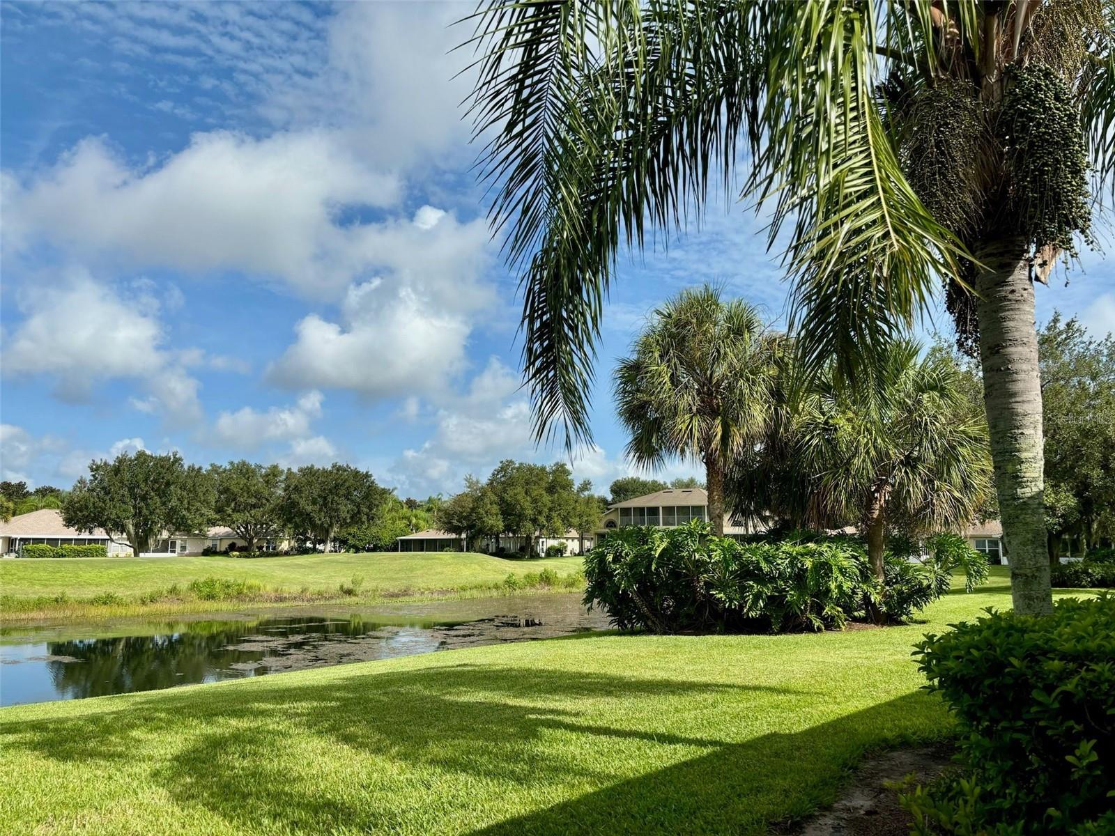 PRICE JUST REDUCED on this FURNISHED move-in ready condo on a QUIET CUL-DE-SAC in the friendly Huntington Greens neighborhood. Enter through the decorative glass front door into the enhanced living area with the HURRICANE IMPACT PICTURE WINDOW providing you with an artistic water view and Scepter Golf Course. This SPLIT PLAN presents THREE BEDROOMS and two bathrooms, and the great room is open to the kitchen. The kitchen offers GRANITE countertops, STAINLESS appliances, new refrigerator, cabinets with pull-out drawers, gas stove, pantry with entry to the laundry room and is adjacent to the dining area. Flooring is laminate and home has LACE CEILINGS throughout as well as PLANTATION SHUTTERS for added beauty. The master suite is designed with a walk-in closet and a walk-in shower. There is also a hurricane impact back door. The laundry room houses a washer, gas dryer, sink and cabinets for your convenience. Extras features for you are the water softener, irrigation system, gutters and screen with the 2-car garage door. There is also a pull-down ladder to the attic. The exterior of the home has recently been painted and the roof is less than 2 years old. The water heater and heat are also natural gas. The best is yet to come. This meticulous condo is offered FURNISHED AND WITH GOLF CART with new batteries. This ONE-OWNER condo has a KP WARRANTY paid until February 2025 and is also transferable at no cost to the new owner. Don't miss visiting this lovely home. Kings Point is a gated golf cart community, and the HOA includes water inside and out, irrigation system, basic cable, lawn care, pest control, escrow for roof replacement. This monthly fee also includes all the amenities and activities such as tennis, pickle ball, fitness center, enticing pools inside and out, arts, crafts and so much more. TRAVEL AND LEISURE voted Sun City Center as the TOP RANKING RETIREMENT TOWN. There is an excellent restaurant/bar in the south club and a snack bar and get-together area in the north club. Sun City Center is just off I75 and within one hour of three international airports, cruise port, professional sports, amusement parks, and easily accessible to some of Florida’s finest sandy beaches. Don’t miss this opportunity to move right in and start enjoying the fun in the sun!