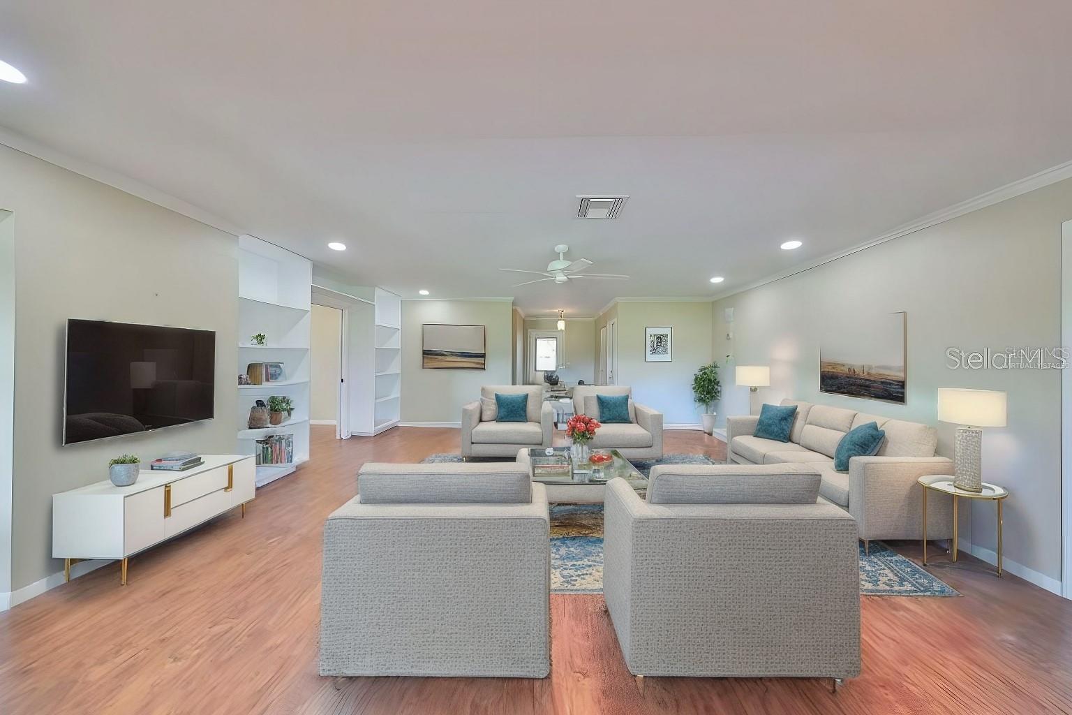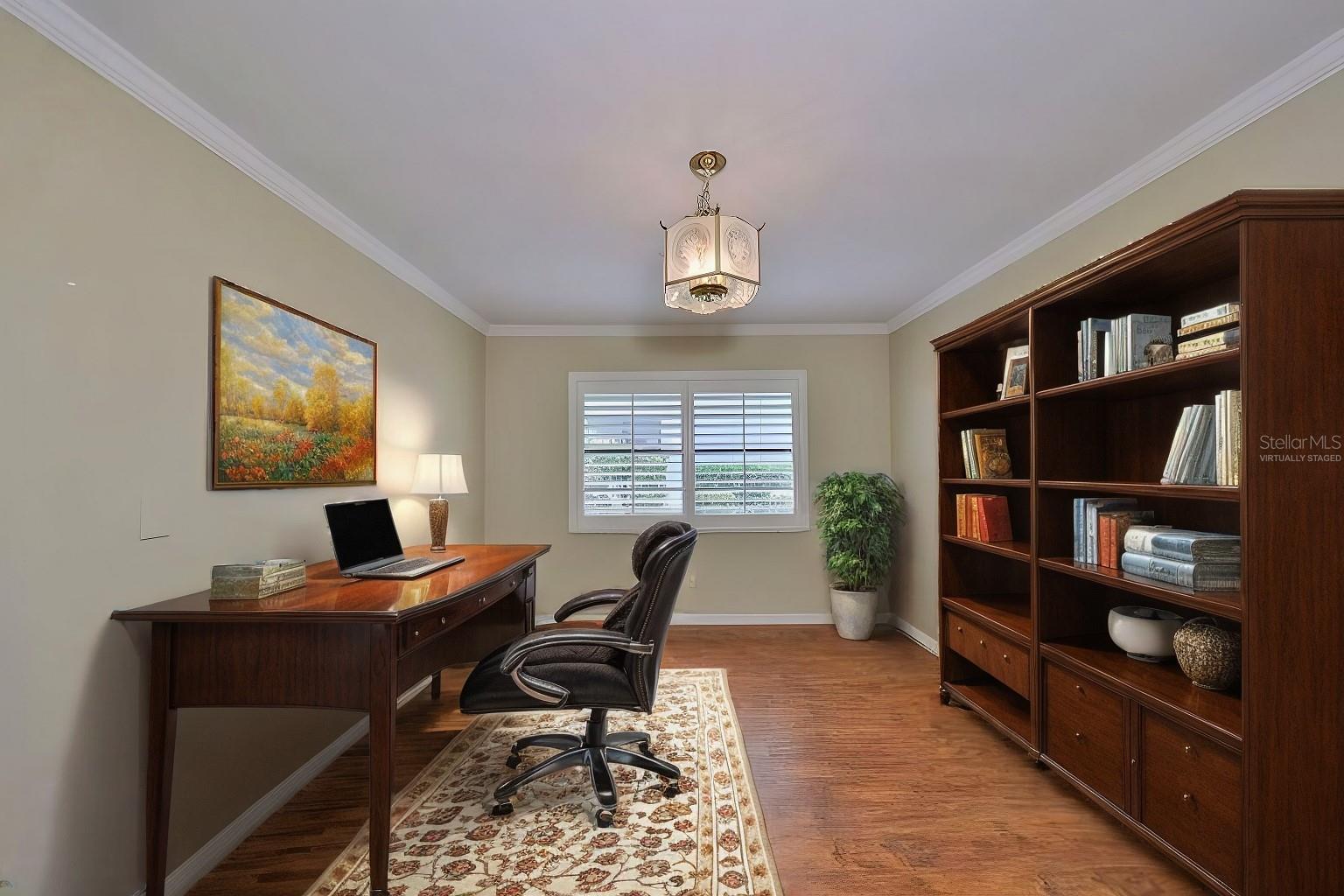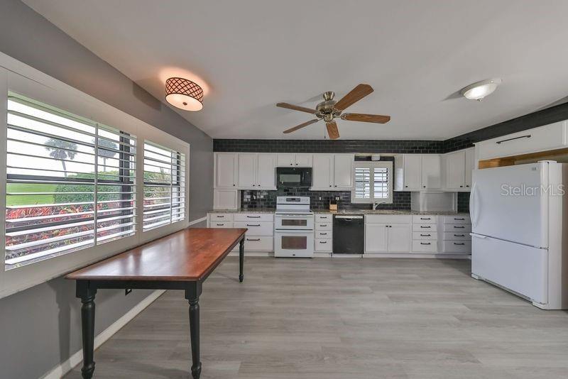 One or more photo(s) has been virtually staged. Welcome to this spacious and updated 2 Bedroom, PLUS Den/Study, 2 Bathroom home with gorgeous Golf Course view! You are greeted with an open floorplan, lots of natural light, and a split bedroom layout which provides a great amount of space in each room. The study/den was recently added, along with built-in shelving, which is a great addition. The many features throughout include: Plantation Shutters, Crown Molding, Granite Counters and Tile Backsplash in Kitchen, Luxury Vinyl Flooring, Updated Lighting, New Electrical Panel (2021), and New Roof. The oversized 2 car garage offers added cabinetry for storage. This home is move in ready with the ability to make it your own! Located in the desirable community of Kings Pointe – a premiere 55+ active community that offers TONS of activities that cater to most interests and hobbies! Enjoy a game of Pickleball or Tennis, or spend time in the resort style Pools, walking trails, play Bingo, Watch a show in Veteran’s Theatre, or join the woodworking, pottery, or card clubs - just to name a few! Located close to shopping, highways, dining, stunning gulf beaches and ALL that beautiful Tampa Bay has to offer!