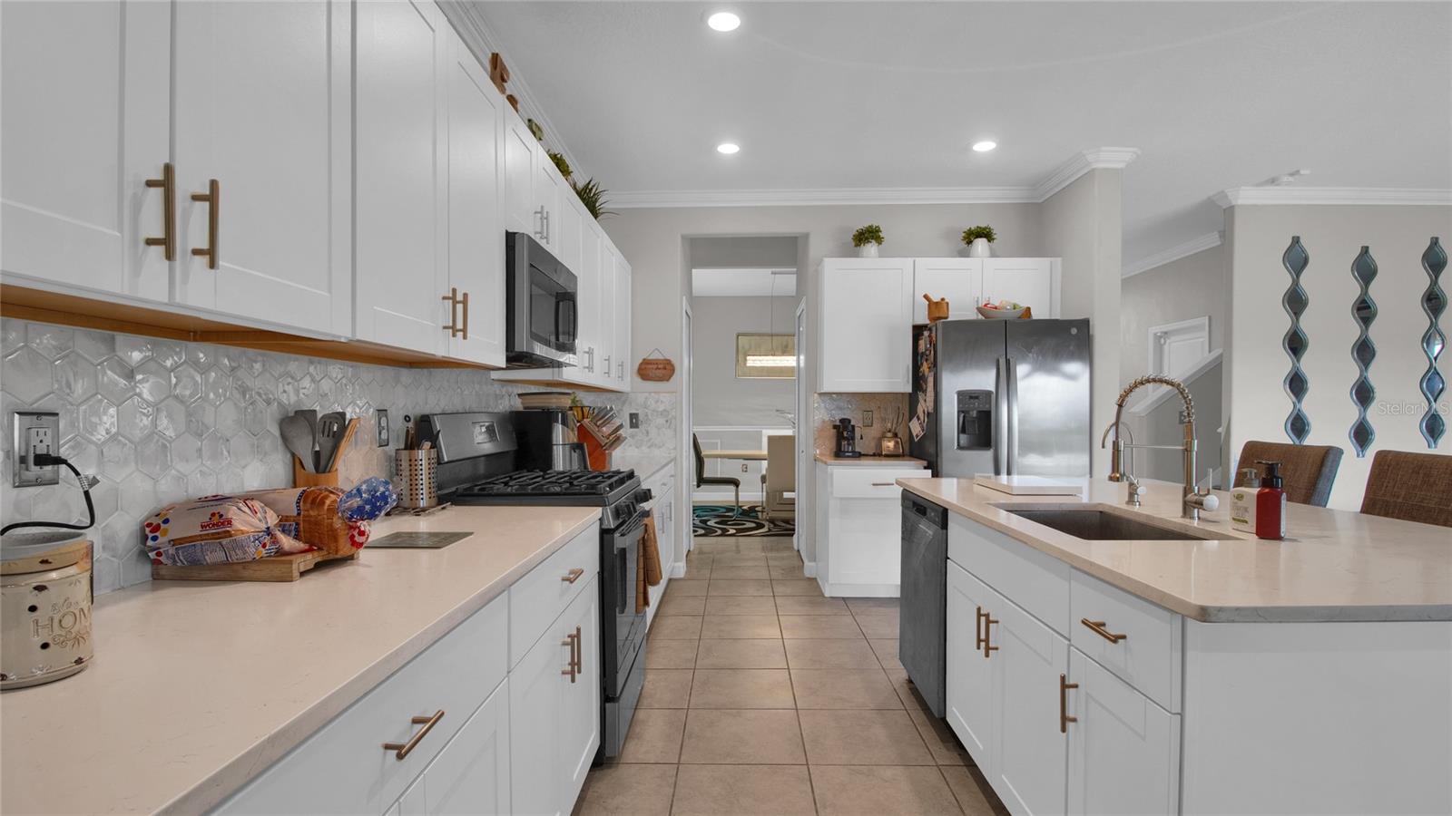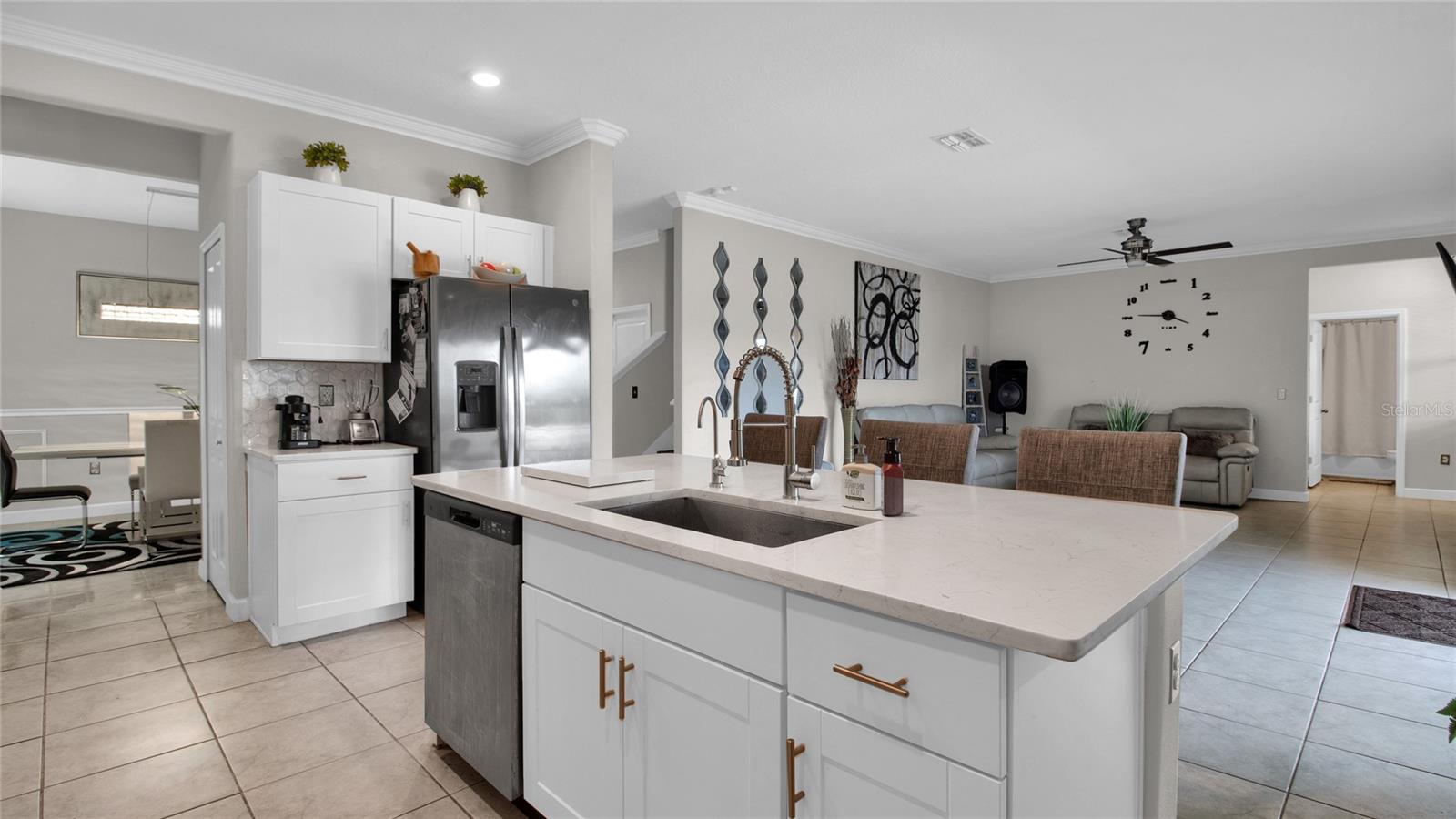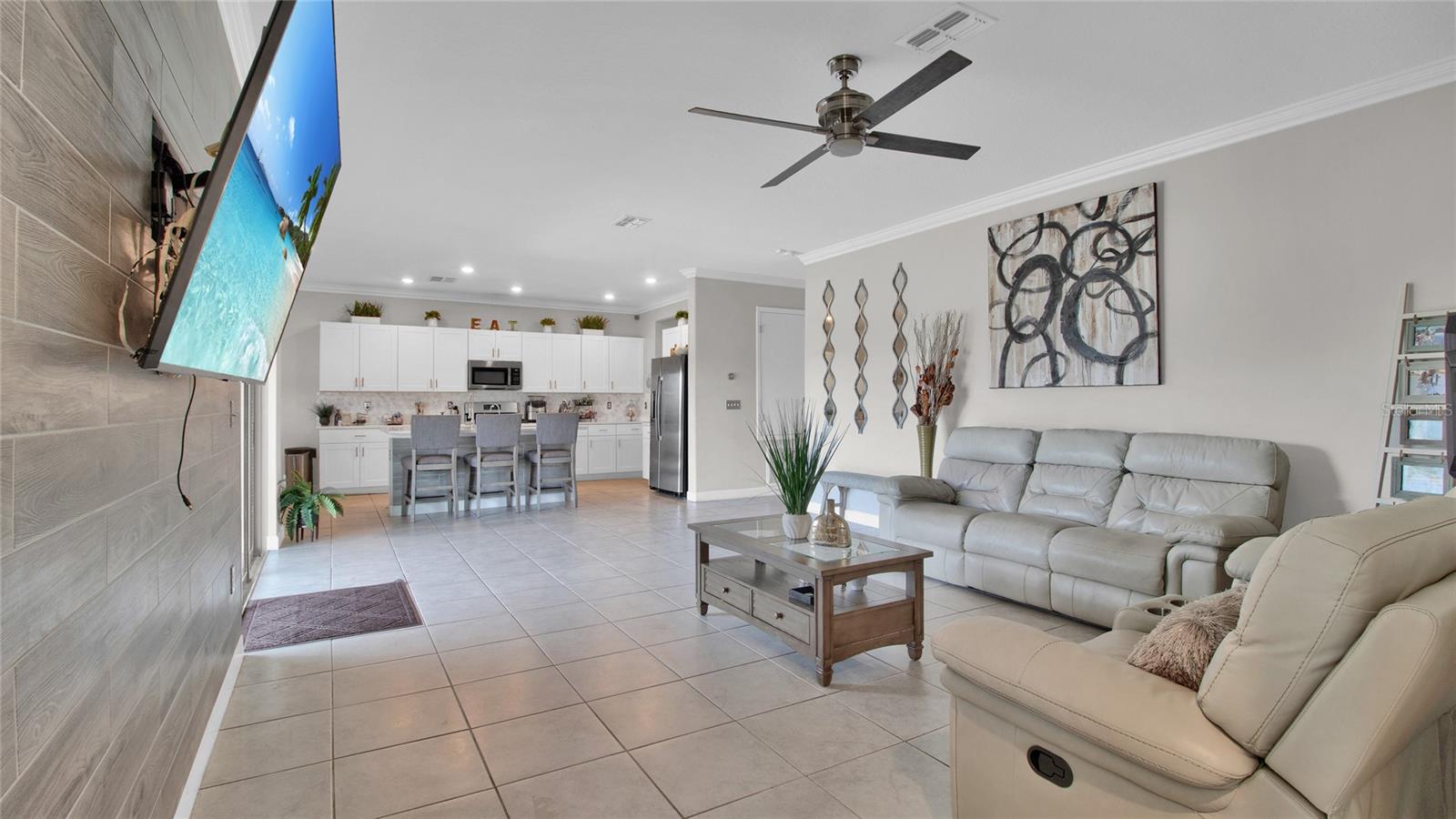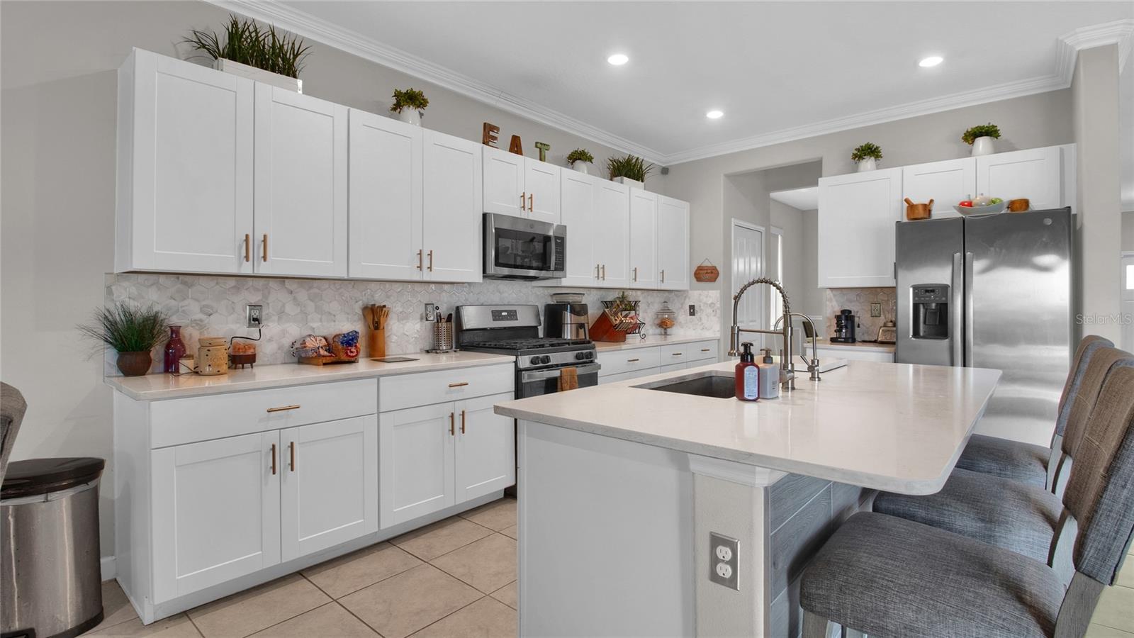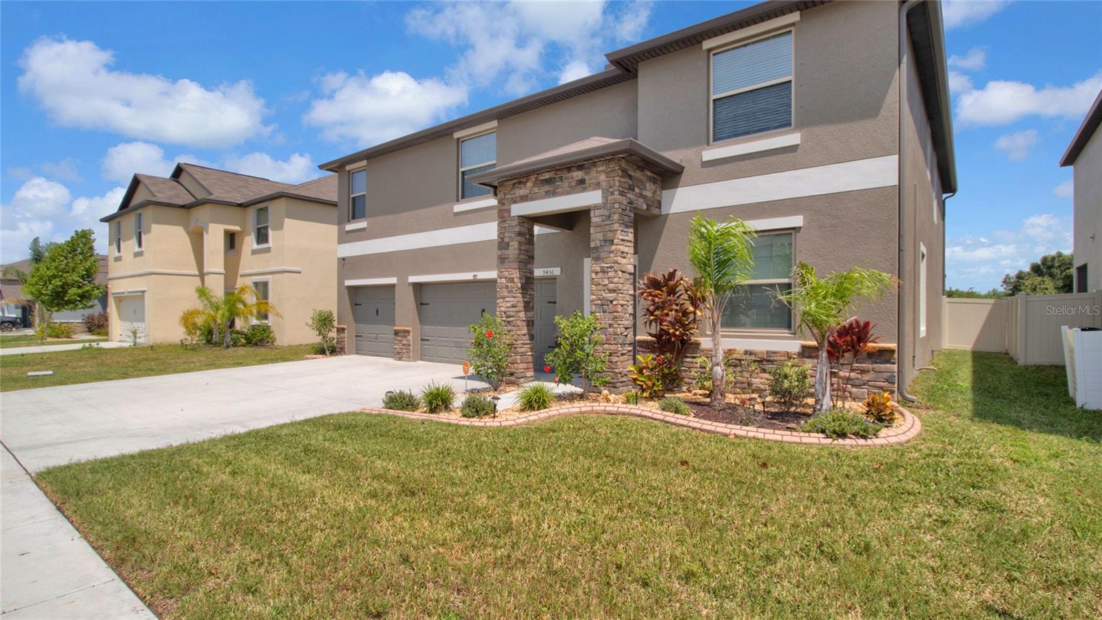 Unique and beautiful. This 7 bedrooms 4 full baths with 3 car garage is located in the desirable Belmont community in Apollo Beach. Separate living room and dinning room. Kitchen- Family room combo with a separate Nook. The kitchen is equipped with Stainless steel appliances package that includes a gas range, a microwave, a dishwasher and a refrigerator. Backsplash with Quarz counter tops and Reverse osmosis system. All ceramic tile flooring on the first floor and Luxury vinyl floors on the second floor. The master bedroom is located on the 2nd floor with 2 separate walking closet, 2 separate vanities, shower and Hotub. Laundry room with washer and dryer. Many extras to include a Tesla charging station, water softener, motorized window blinds, a Gym room and much more. Enjoy the fence backyard with a 17x40 paved- screen in lanai, and a Jacuzzi spa with massage jets overlooking the beautiful pond with no backyard neighbors. Home sits on a 70' lot. The community has a pool, kiddie pool, 1/2 basketball court, tennis courts, playground and Walking trails. Easy access Near 246 Apollo Beach exit.