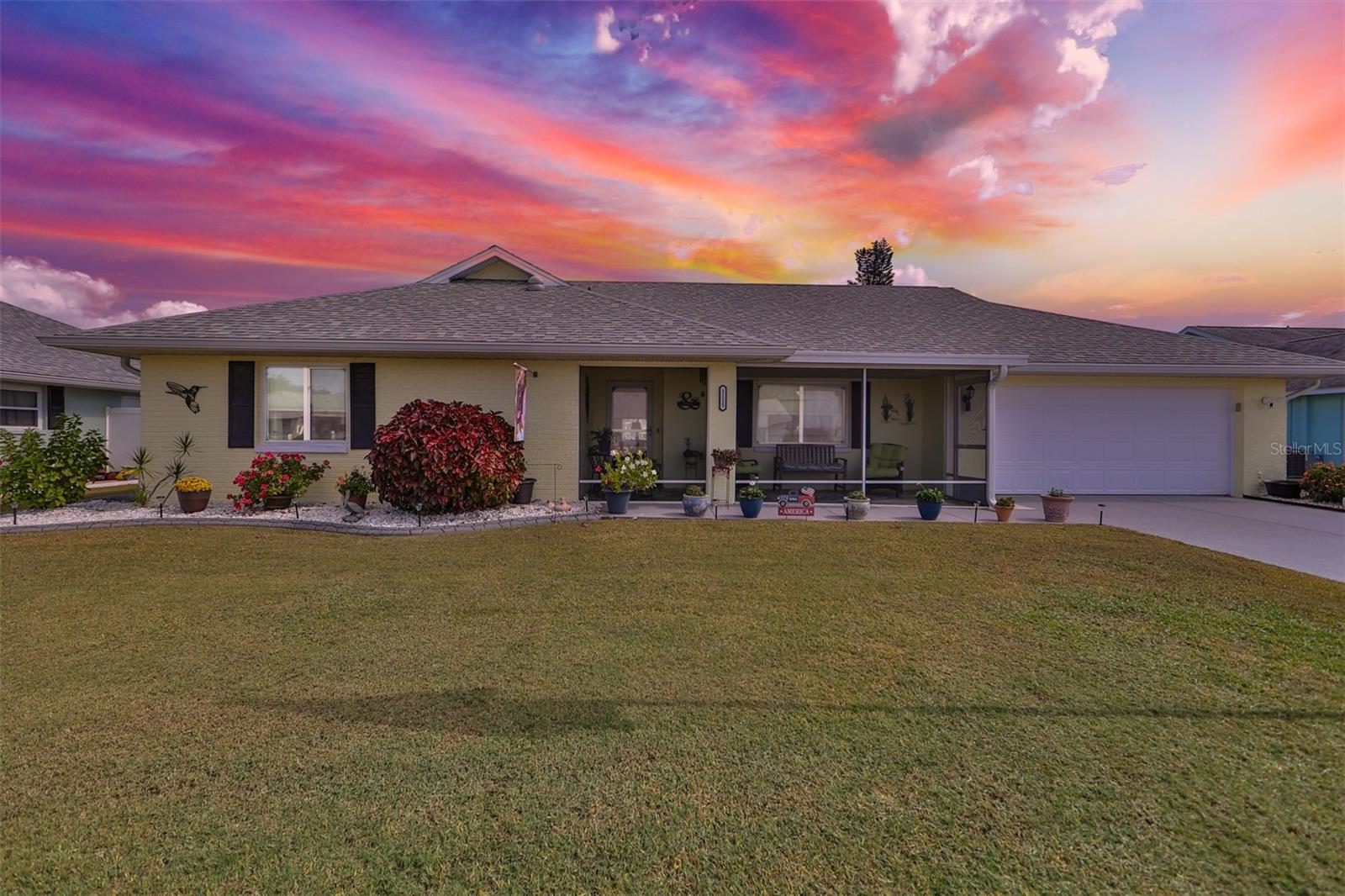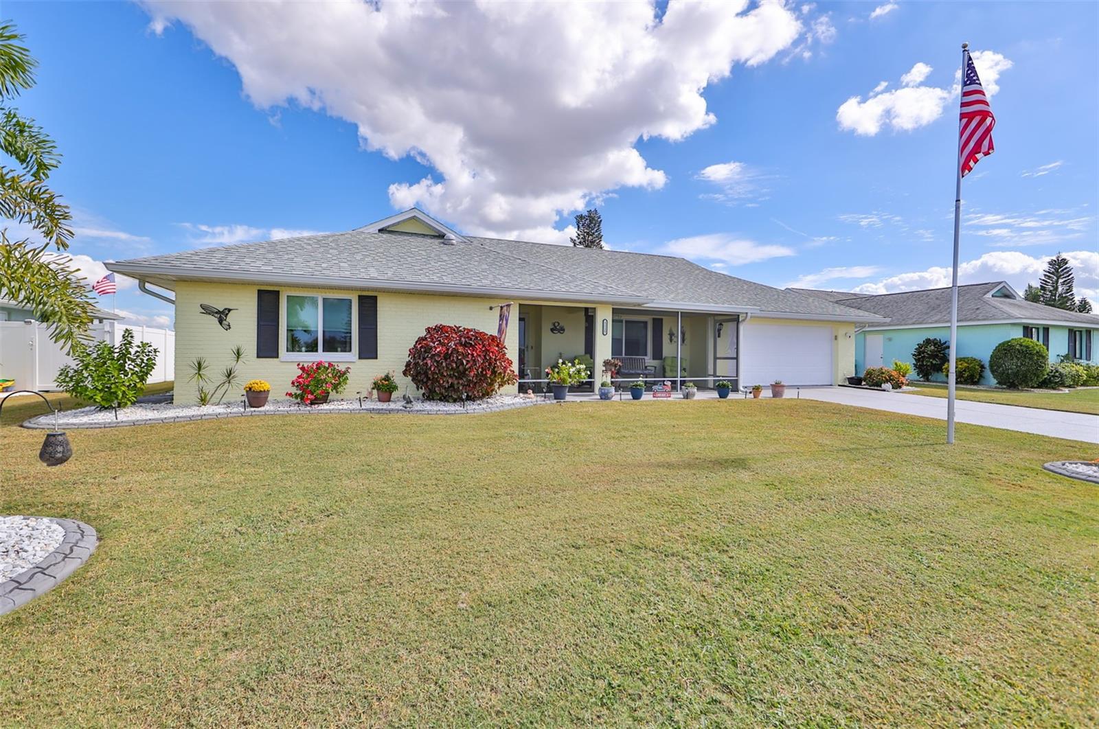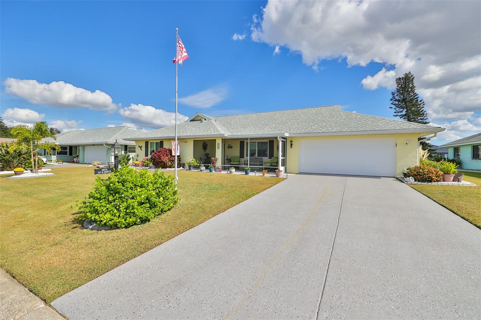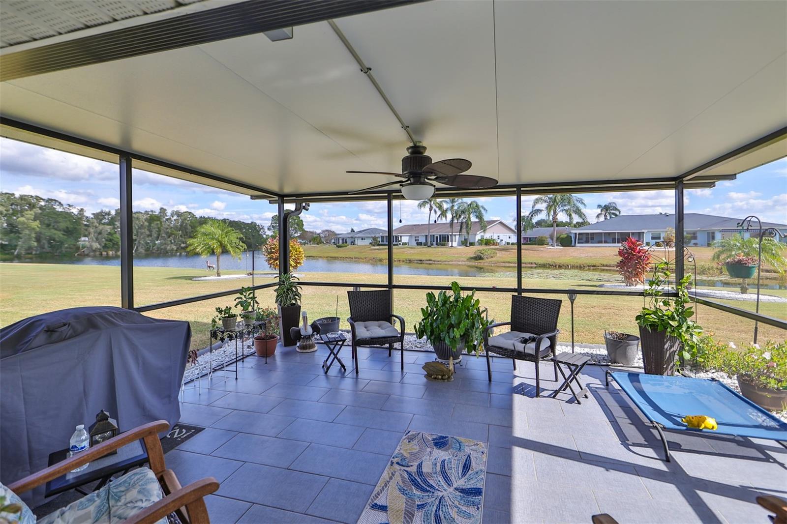 Beautiful, Immaculate home featuring 2 bedrooms, 2 bathrooms, Living, Florida, and Dining Rooms. Plus, it has a laundry room that is big enough for an office, craft room or whatever you fancy. Enjoy Florida living in your tiled lanai that overlooks Lake Acacia Il. This home also has a screened-in tiled front porch, which was added in 2022. The roof was replaced in 2015, installation of hurricane windows in 2021, A/C system in 2018, Water heater in 2022, Rain gutters 2022, new Outside paint & landscape curbing in 2022. Plumbing and electrical panels are up to date. Home also includes an owned water softener. The Florida Room can be closed to convert it to a 3rd bedroom. Conveniently located to the Community Amenities, grocery, banks, churches, and other much-needed businesses that can be reached by golf cart. Sun City Center is a premier 55 and over community which includes a fitness center, indoor and outdoor swimming pools, pickleball courts, softball, golf, tennis and many other sports activities. Stay as busy as you like, participating in the 100 + clubs the community has to offer. Tampa, Sarasota & Orlando airports are easily accessible. The Tampa Bay area is host to Buccaneer football, Lightning hockey, soccer, and baseball teams' winter here.