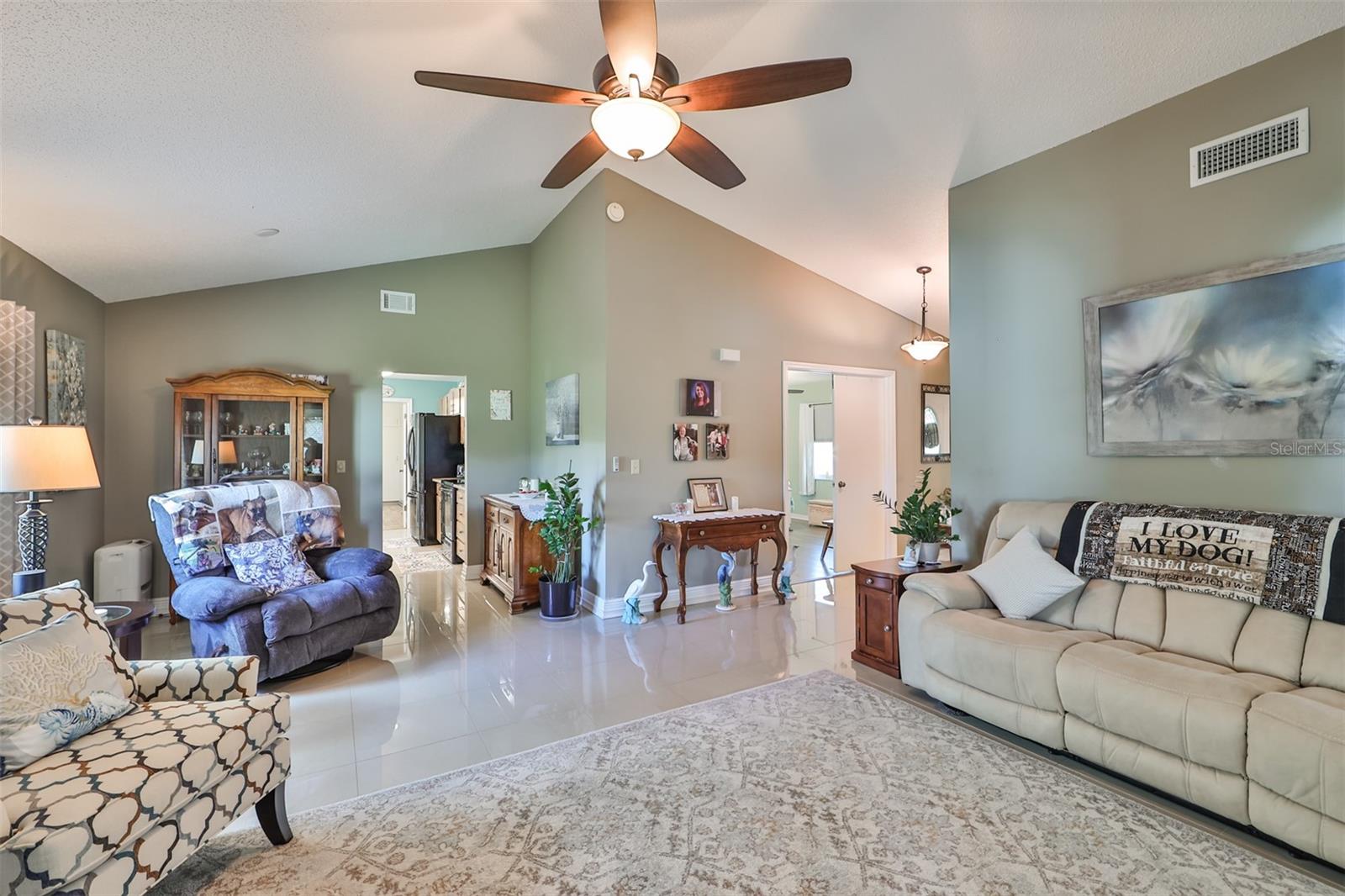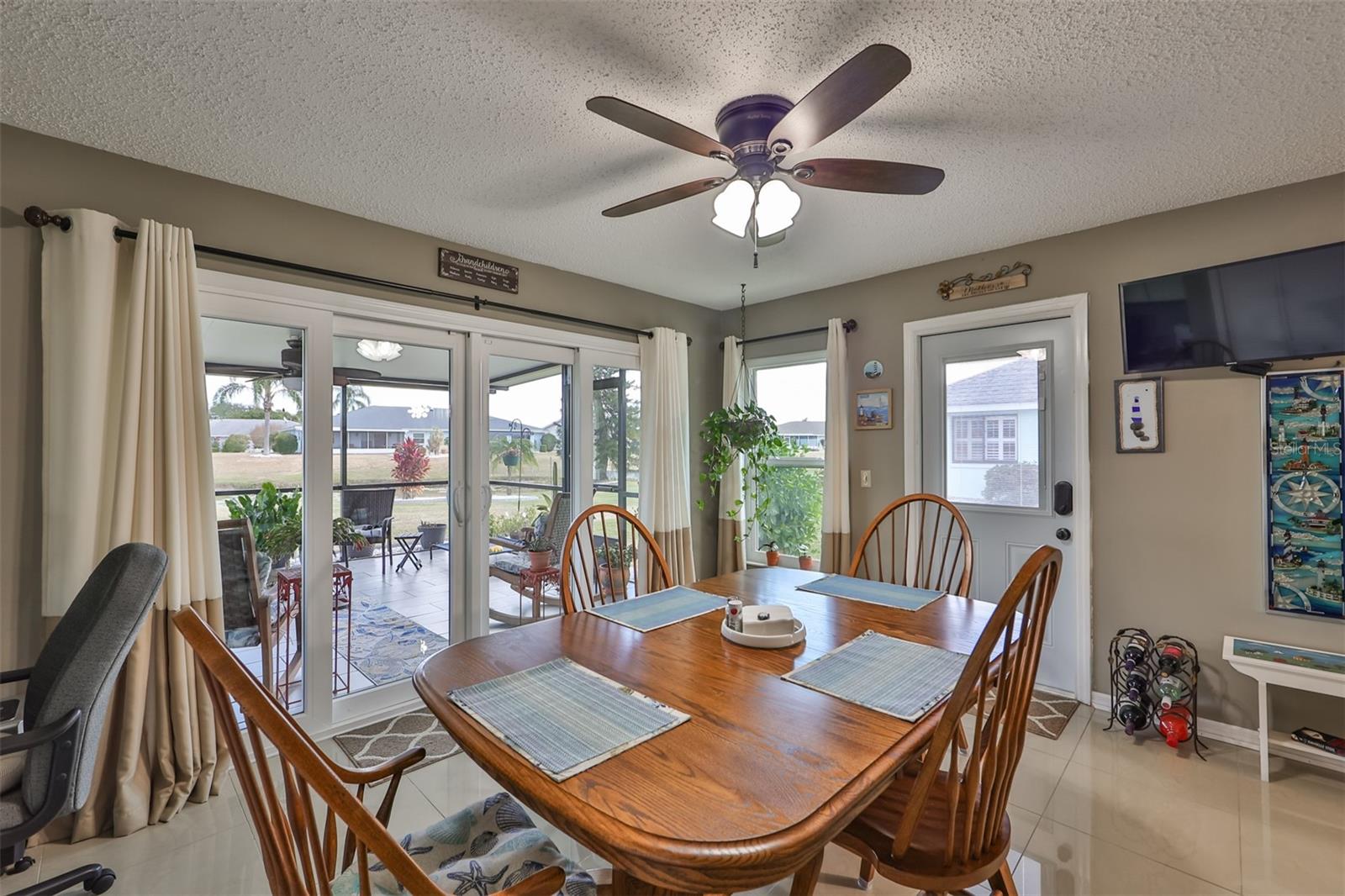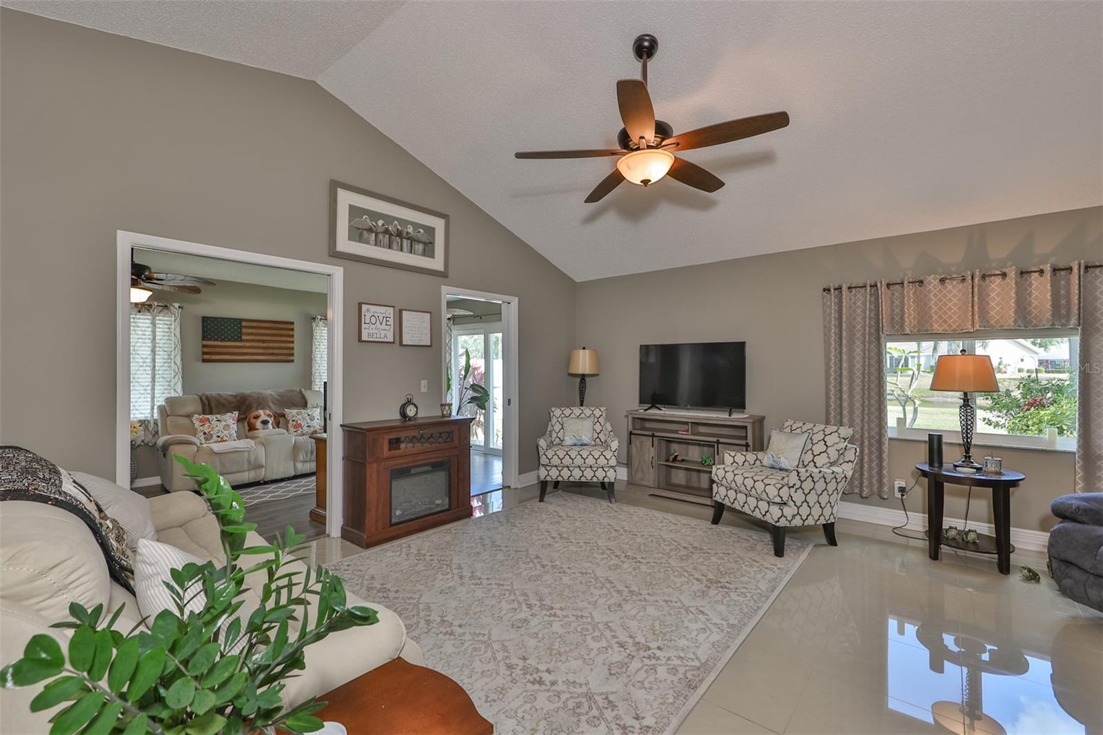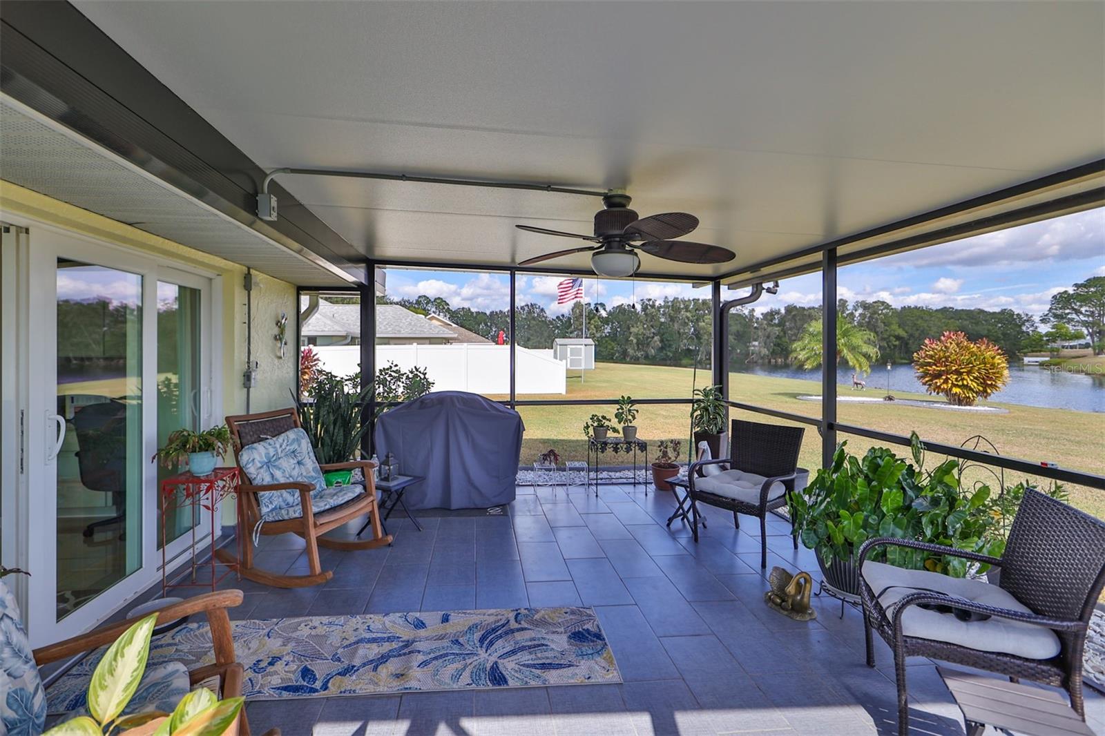 Beautiful, Immaculate home featuring 2 bedrooms, 2 bathrooms, Living, Florida, and Dining Rooms. Plus, it has a laundry room that is big enough for an office, craft room or whatever you fancy. Enjoy Florida living in your tiled lanai that overlooks Lake Acacia Il. This home also has a screened-in tiled front porch, which was added in 2022. The roof was replaced in 2015, installation of hurricane windows in 2021, A/C system in 2018, Water heater in 2022, Rain gutters 2022, new Outside paint & landscape curbing in 2022. Plumbing and electrical panels are up to date. Home also includes an owned water softener. The Florida Room can be closed to convert it to a 3rd bedroom. Conveniently located to the Community Amenities, grocery, banks, churches, and other much-needed businesses that can be reached by golf cart. Sun City Center is a premier 55 and over community which includes a fitness center, indoor and outdoor swimming pools, pickleball courts, softball, golf, tennis and many other sports activities. Stay as busy as you like, participating in the 100 + clubs the community has to offer. Tampa, Sarasota & Orlando airports are easily accessible. The Tampa Bay area is host to Buccaneer football, Lightning hockey, soccer, and baseball teams' winter here.