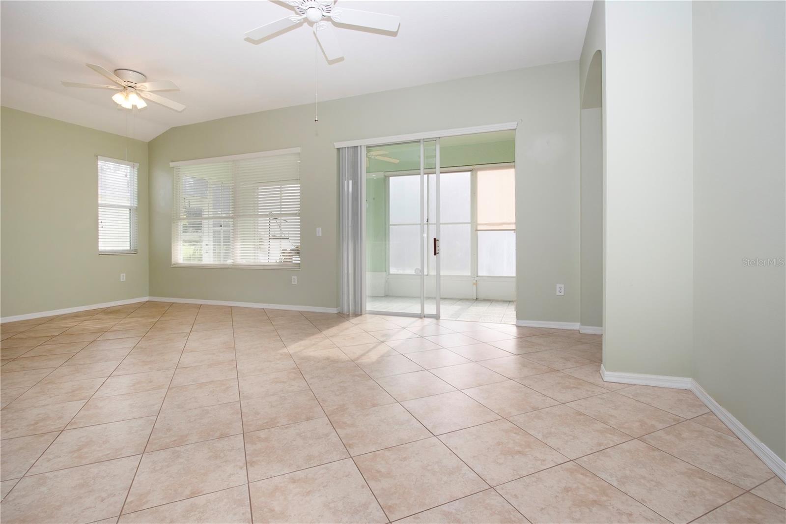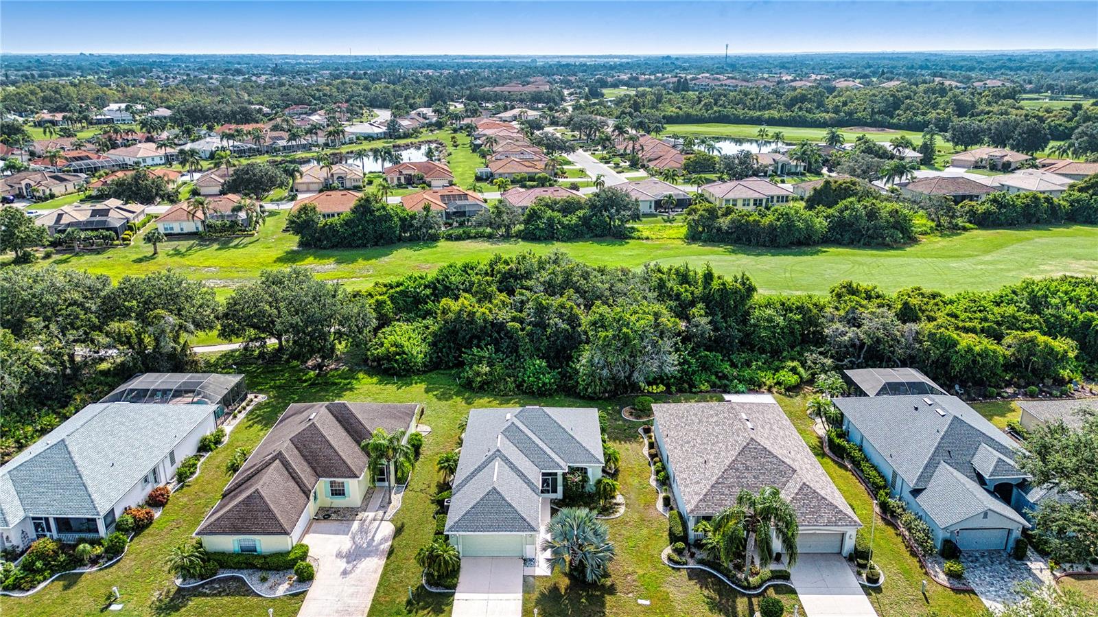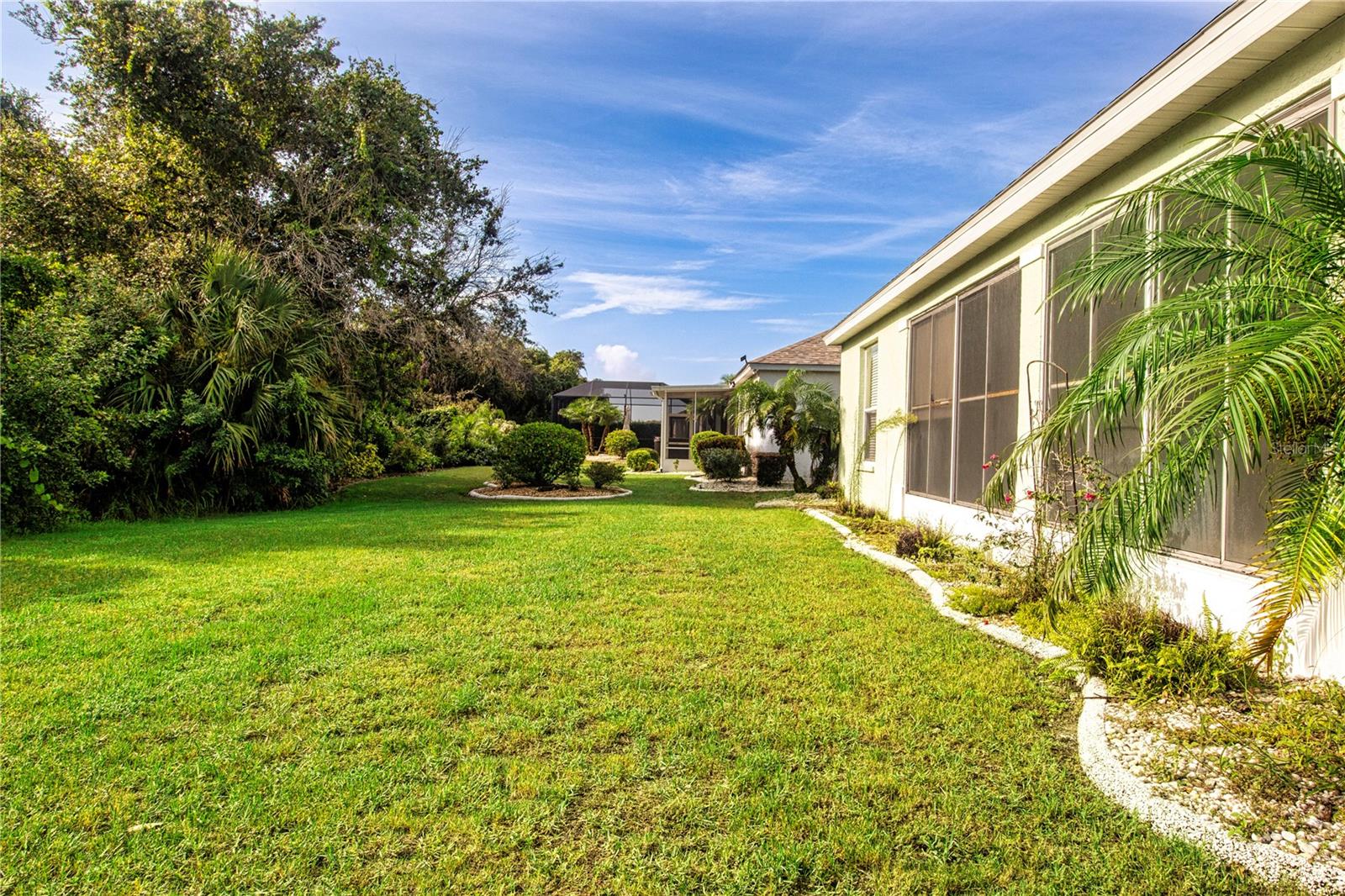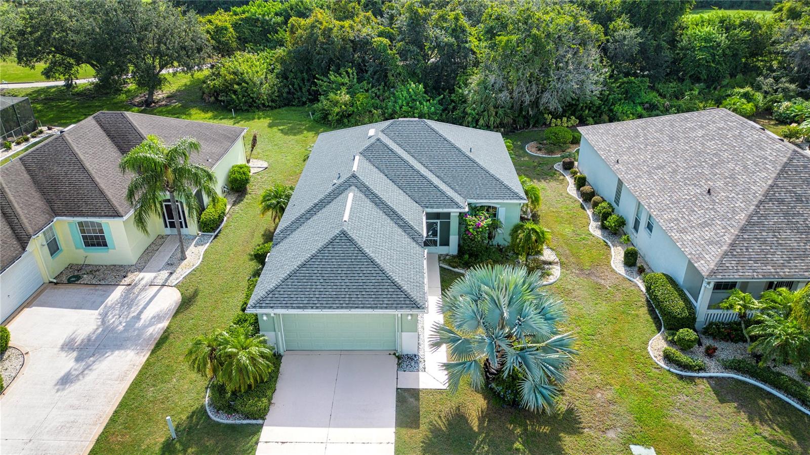 One or more photo(s) has been virtually staged. Welcome to this meticulously cared for 2 bedroom, 2 bath home with a den/study. This home offers a beautiful view with lovely foliage and no backyard neighbors! Behind the trees the home backs up to a very highly rated golf course! This efficiently laid out Aruba floor plan gives you a large sense of space and a very open feel due to the vaulted ceilings and neutral decor. There is tile and newer laminate flooring throughout. Your chef's delight kitchen is open to the great room and features recessed lighting, solid stone countertops and beautiful cabinets. There is even an additional work area with beautiful very attractive cabinets complete with pull out shelves and an additional granite counter workspace. Your inside utility room is right off the kitchen and features new cabinets also with pull out shelves and a hanging area for newly laundered clothes. Your master suite features a large walk in closet and an ensuite bath. There is a walk in shower with new doors, double sinks and a new vanity and newer tile. Your guests will be comfortable in their bedroom complete with a double closet and a hurricane shuttered window. You will appreciate your large den/study where you can study, or enjoy your hobbies. Your roof is only 3 years old, and the A/C is only 5 years old. You will enjoy watching the Florida wildlife from your large air conditioned lanai. Since this home is located on a non thru street, it offers privacy and a relaxing peaceful setting. This community offers over 200 clubs and organizations including the very popular sport of pickleball along with softball, tennis, horse shoes, lawn bowling, several arts and craft clubs, card groups and several water activities. You can be as active and busy, or as calm and relaxed as you choose to be! Come visit this home and see what this wonderful Florida lifestyle can provide for you! Call for an appointment to visit this home today!