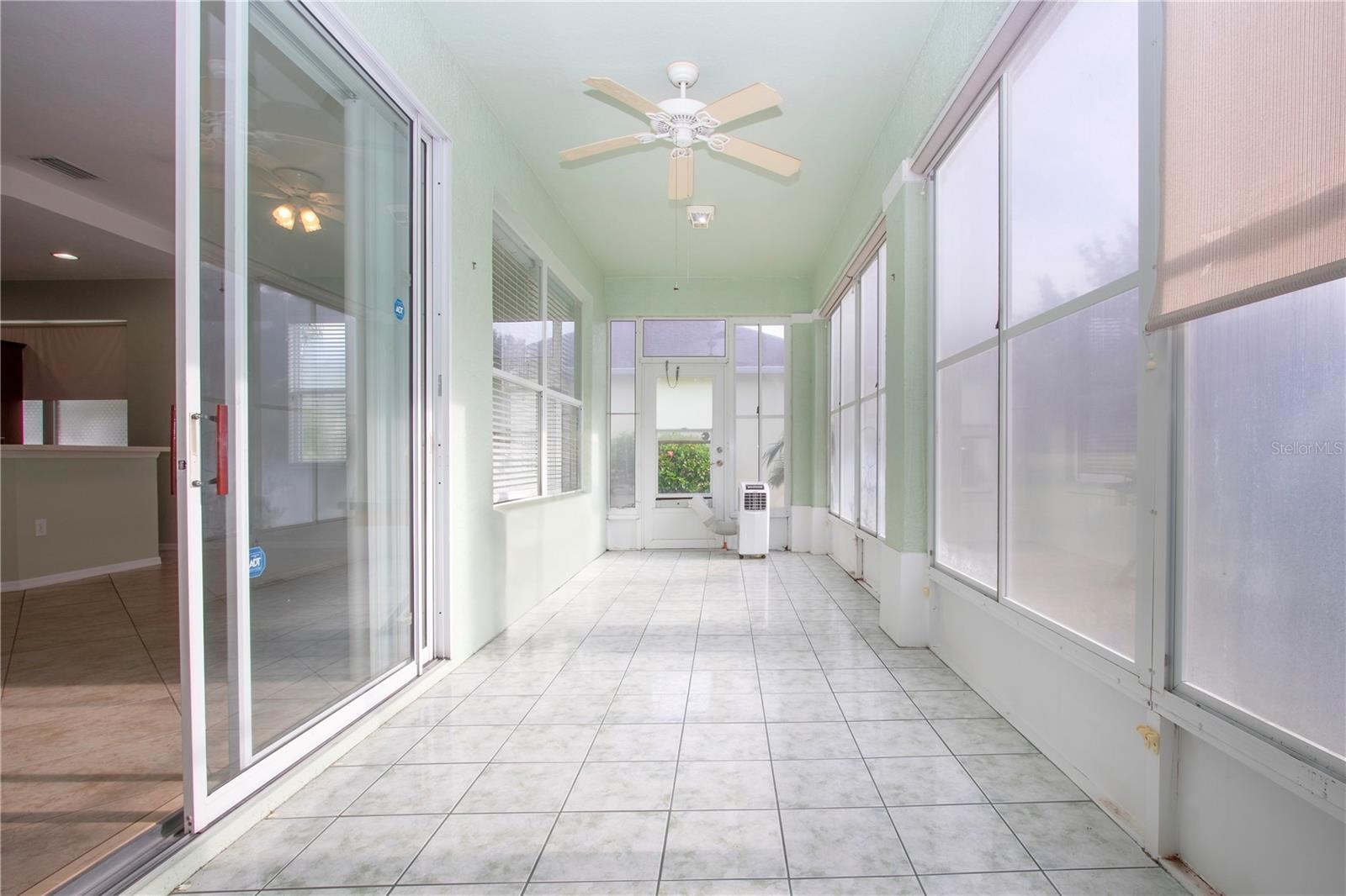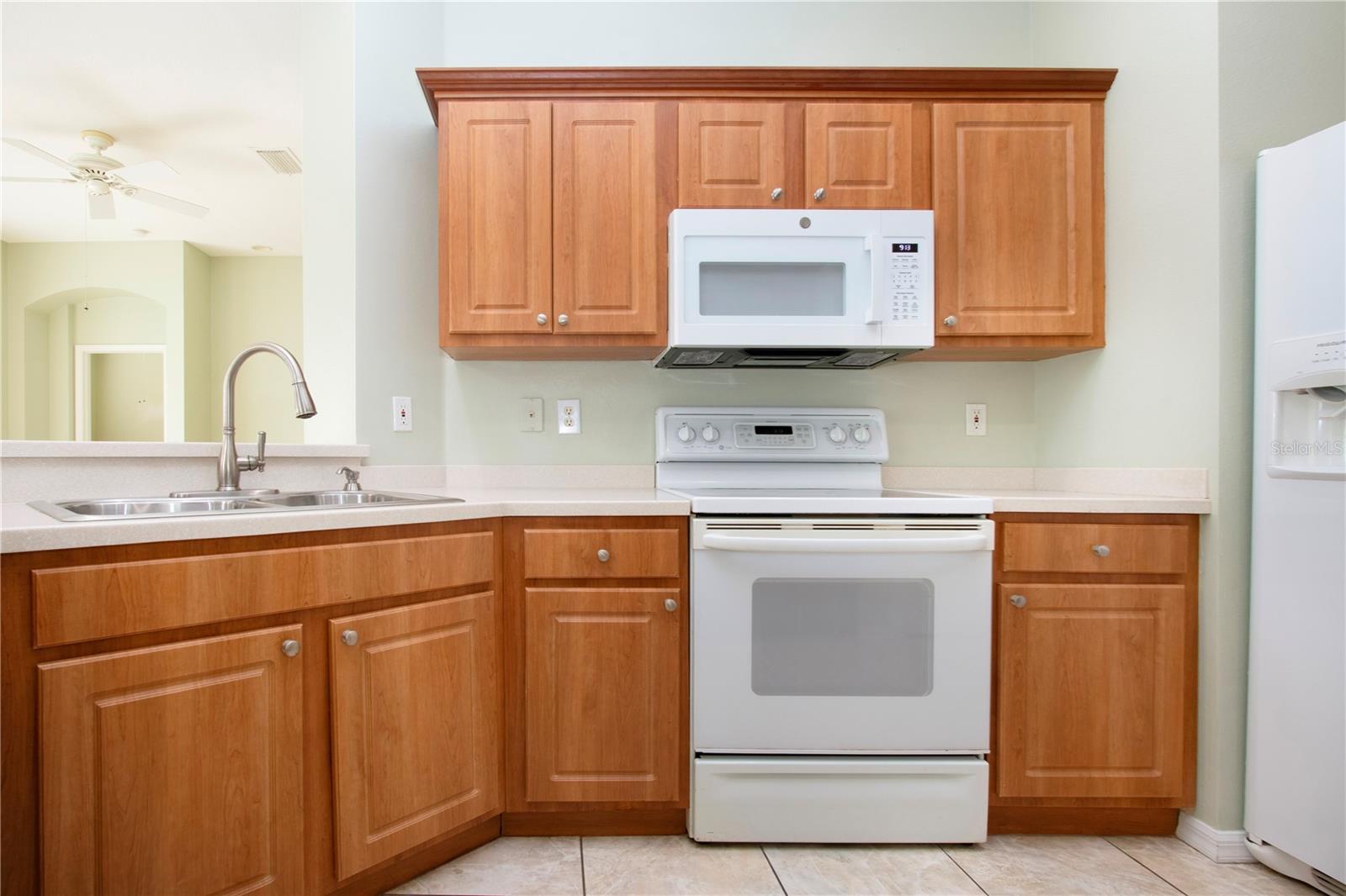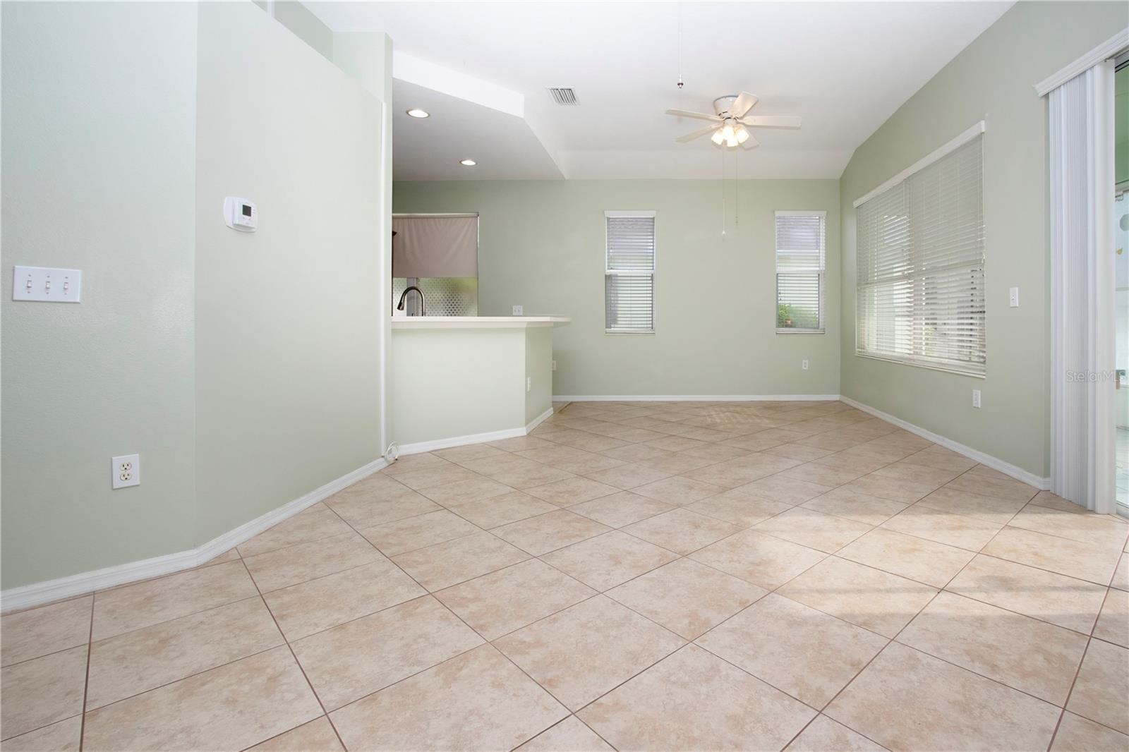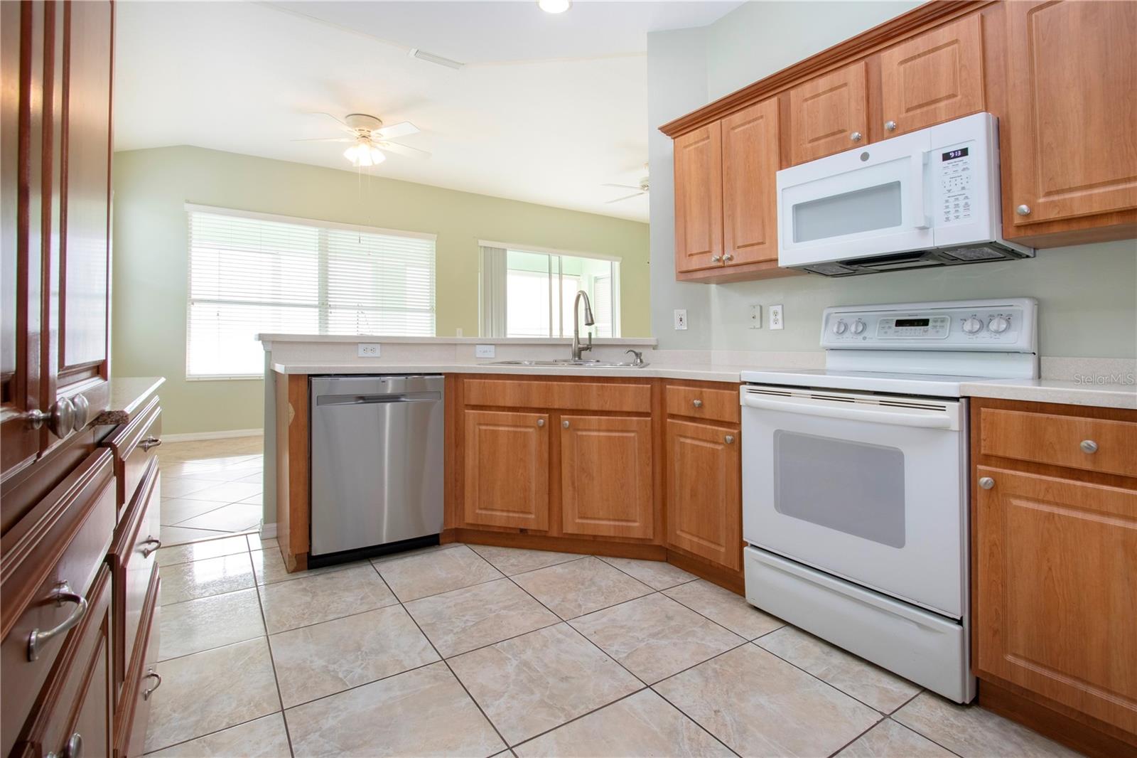 One or more photo(s) has been virtually staged. Welcome to this meticulously cared for 2 bedroom, 2 bath home with a den/study. This home offers a beautiful view with lovely foliage and no backyard neighbors! Behind the trees the home backs up to a very highly rated golf course! This efficiently laid out Aruba floor plan gives you a large sense of space and a very open feel due to the vaulted ceilings and neutral decor. There is tile and newer laminate flooring throughout. Your chef's delight kitchen is open to the great room and features recessed lighting, solid stone countertops and beautiful cabinets. There is even an additional work area with beautiful very attractive cabinets complete with pull out shelves and an additional granite counter workspace. Your inside utility room is right off the kitchen and features new cabinets also with pull out shelves and a hanging area for newly laundered clothes. Your master suite features a large walk in closet and an ensuite bath. There is a walk in shower with new doors, double sinks and a new vanity and newer tile. Your guests will be comfortable in their bedroom complete with a double closet and a hurricane shuttered window. You will appreciate your large den/study where you can study, or enjoy your hobbies. Your roof is only 3 years old, and the A/C is only 5 years old. You will enjoy watching the Florida wildlife from your large air conditioned lanai. Since this home is located on a non thru street, it offers privacy and a relaxing peaceful setting. This community offers over 200 clubs and organizations including the very popular sport of pickleball along with softball, tennis, horse shoes, lawn bowling, several arts and craft clubs, card groups and several water activities. You can be as active and busy, or as calm and relaxed as you choose to be! Come visit this home and see what this wonderful Florida lifestyle can provide for you! Call for an appointment to visit this home today!