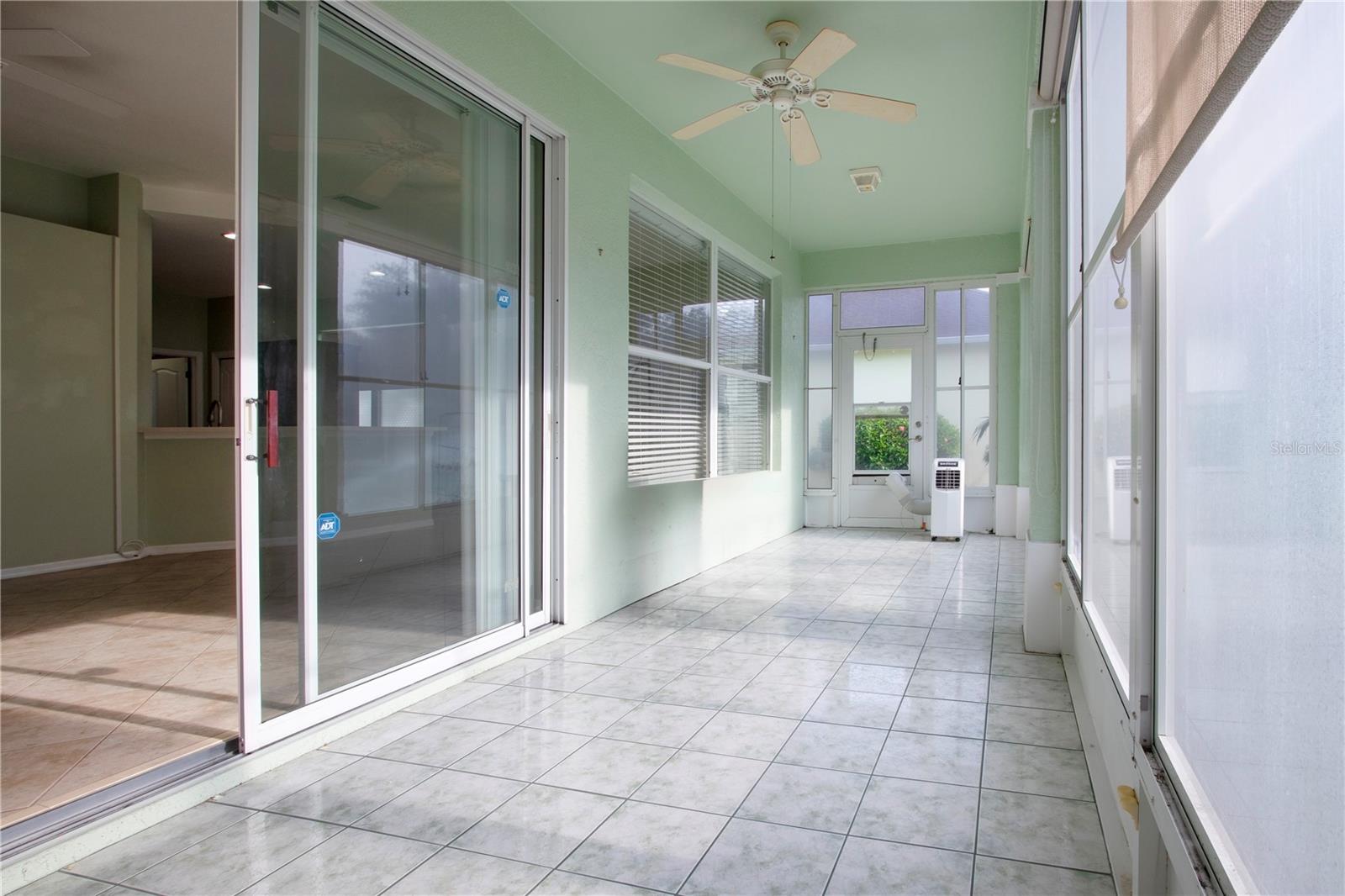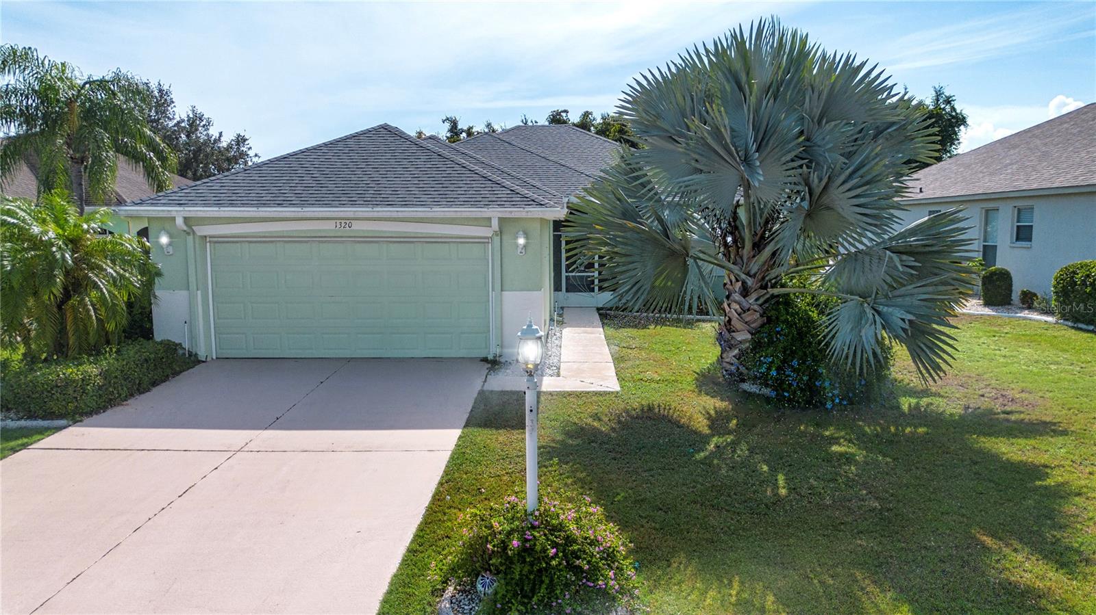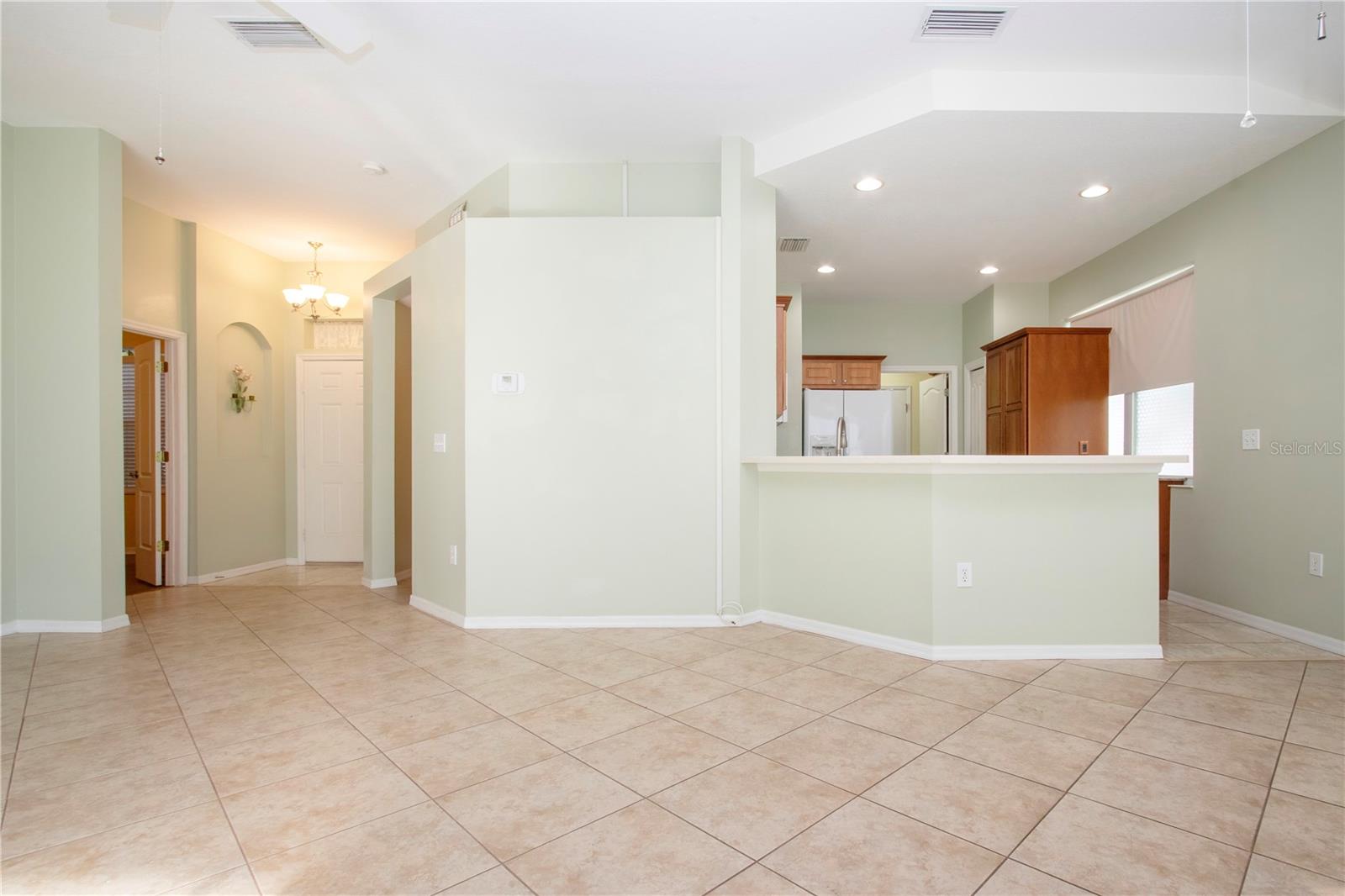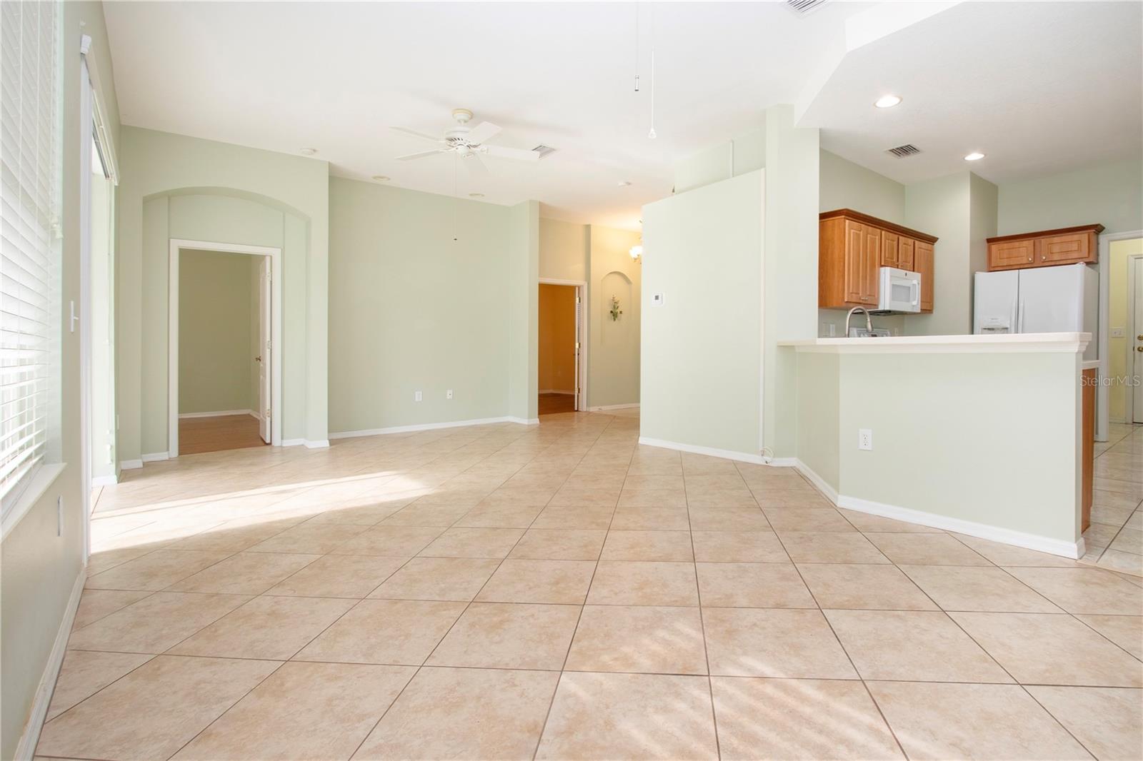 One or more photo(s) has been virtually staged. Welcome to this meticulously cared for 2 bedroom, 2 bath home with a den/study. This home offers a beautiful view with lovely foliage and no backyard neighbors! Behind the trees the home backs up to a very highly rated golf course! This efficiently laid out Aruba floor plan gives you a large sense of space and a very open feel due to the vaulted ceilings and neutral decor. There is tile and newer laminate flooring throughout. Your chef's delight kitchen is open to the great room and features recessed lighting, solid stone countertops and beautiful cabinets. There is even an additional work area with beautiful very attractive cabinets complete with pull out shelves and an additional granite counter workspace. Your inside utility room is right off the kitchen and features new cabinets also with pull out shelves and a hanging area for newly laundered clothes. Your master suite features a large walk in closet and an ensuite bath. There is a walk in shower with new doors, double sinks and a new vanity and newer tile. Your guests will be comfortable in their bedroom complete with a double closet and a hurricane shuttered window. You will appreciate your large den/study where you can study, or enjoy your hobbies. Your roof is only 3 years old, and the A/C is only 5 years old. You will enjoy watching the Florida wildlife from your large air conditioned lanai. Since this home is located on a non thru street, it offers privacy and a relaxing peaceful setting. This community offers over 200 clubs and organizations including the very popular sport of pickleball along with softball, tennis, horse shoes, lawn bowling, several arts and craft clubs, card groups and several water activities. You can be as active and busy, or as calm and relaxed as you choose to be! Come visit this home and see what this wonderful Florida lifestyle can provide for you! Call for an appointment to visit this home today!