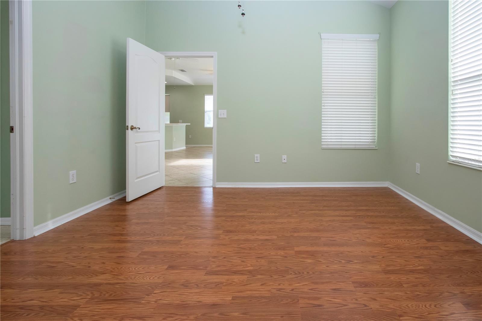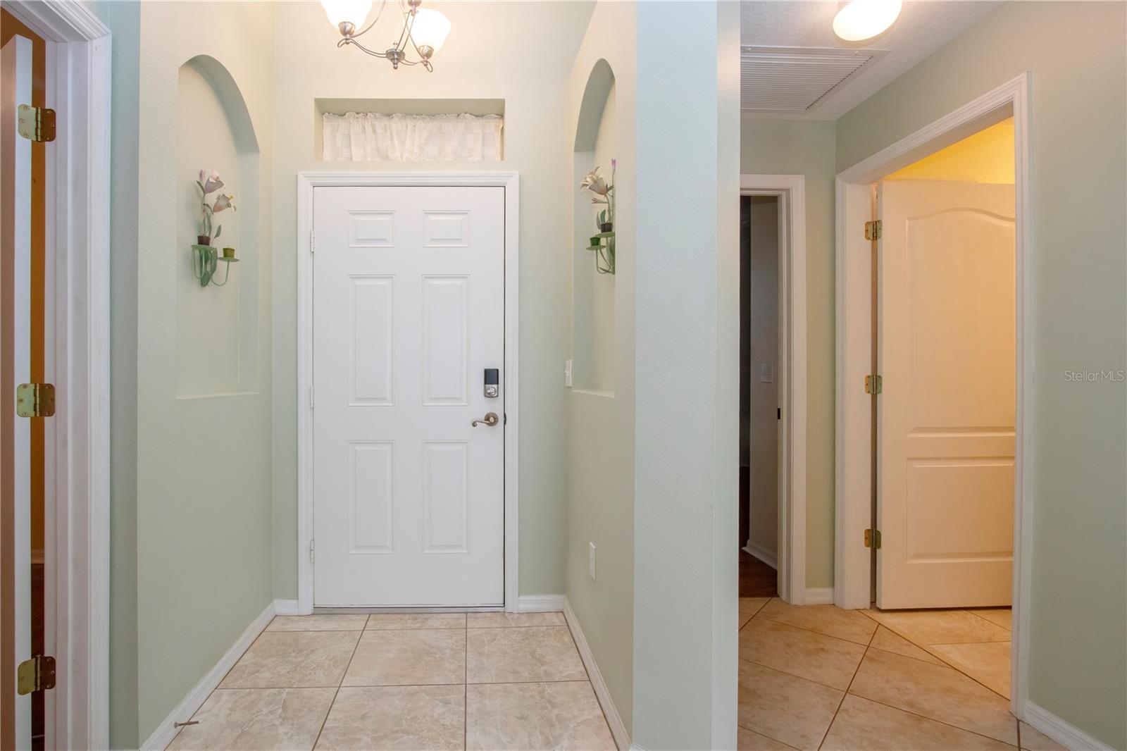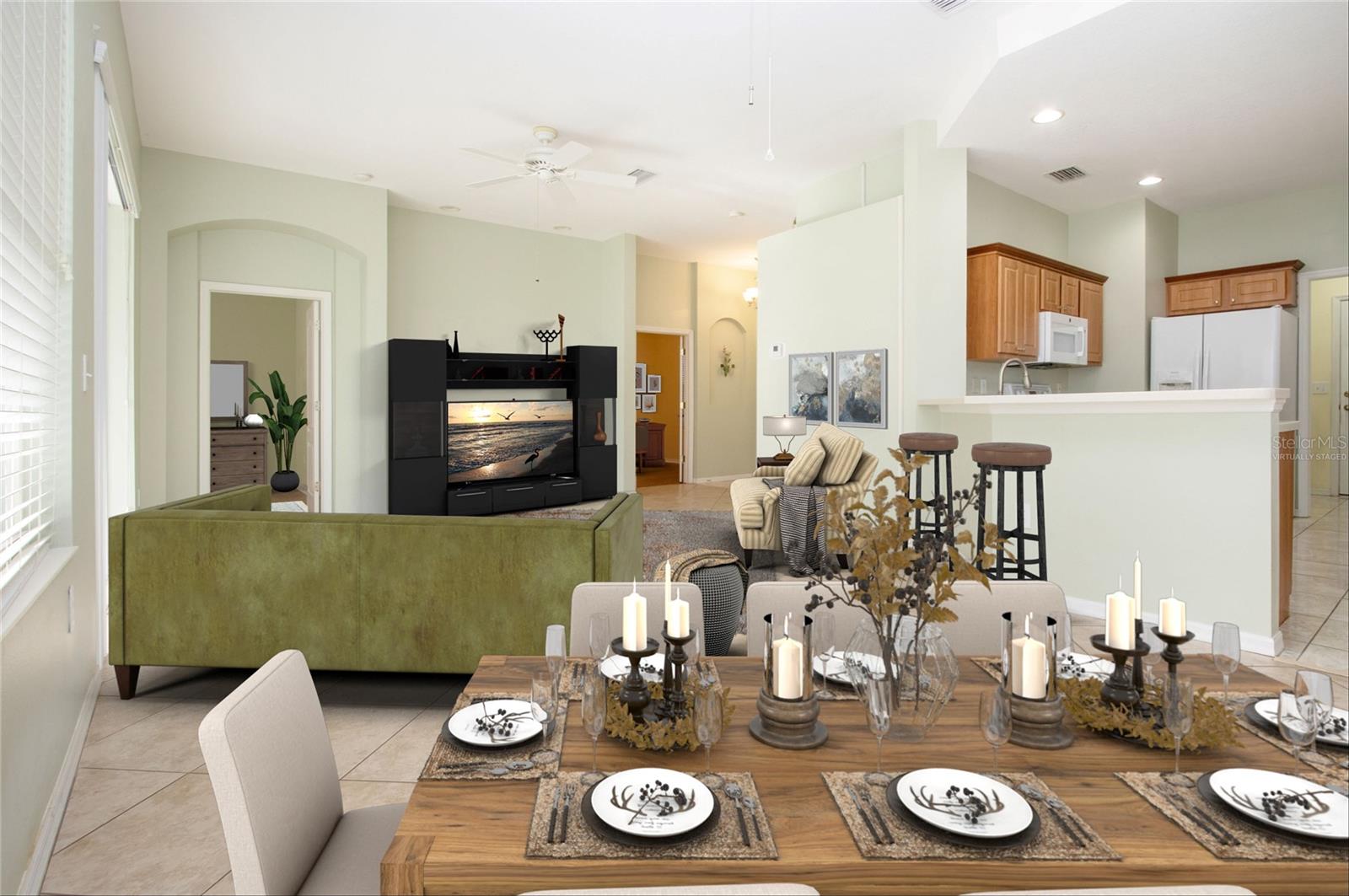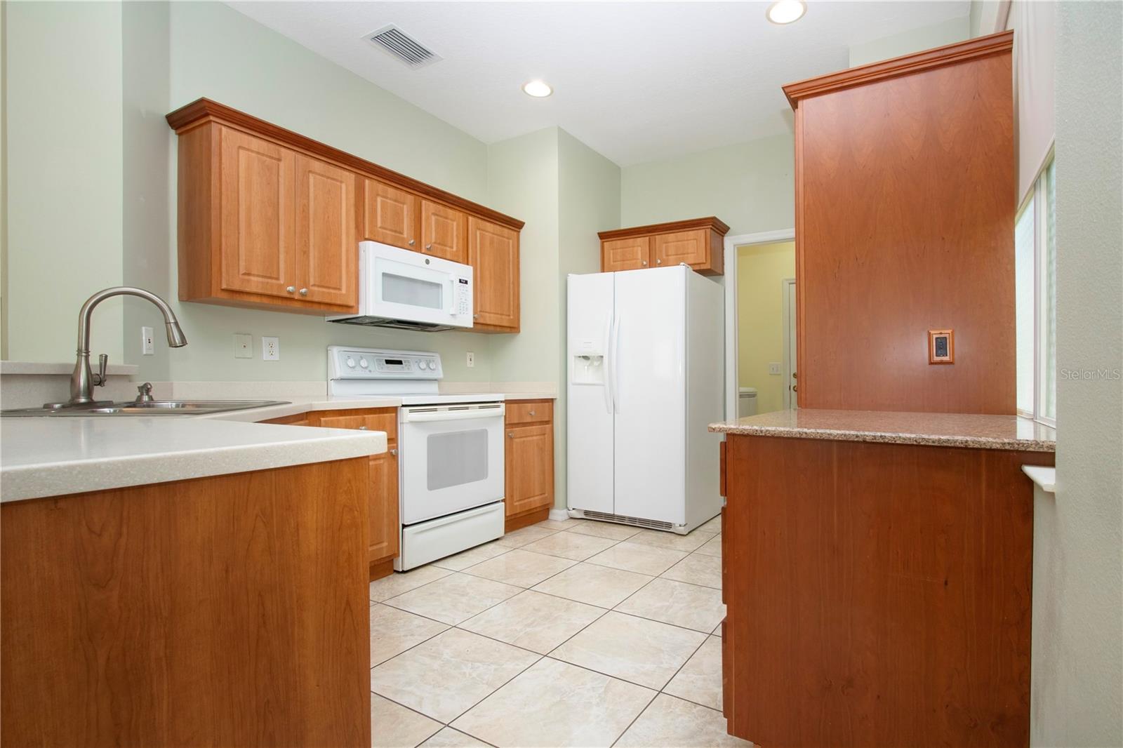 One or more photo(s) has been virtually staged. Welcome to this meticulously cared for 2 bedroom, 2 bath home with a den/study. This home offers a beautiful view with lovely foliage and no backyard neighbors! Behind the trees the home backs up to a very highly rated golf course! This efficiently laid out Aruba floor plan gives you a large sense of space and a very open feel due to the vaulted ceilings and neutral decor. There is tile and newer laminate flooring throughout. Your chef's delight kitchen is open to the great room and features recessed lighting, solid stone countertops and beautiful cabinets. There is even an additional work area with beautiful very attractive cabinets complete with pull out shelves and an additional granite counter workspace. Your inside utility room is right off the kitchen and features new cabinets also with pull out shelves and a hanging area for newly laundered clothes. Your master suite features a large walk in closet and an ensuite bath. There is a walk in shower with new doors, double sinks and a new vanity and newer tile. Your guests will be comfortable in their bedroom complete with a double closet and a hurricane shuttered window. You will appreciate your large den/study where you can study, or enjoy your hobbies. Your roof is only 3 years old, and the A/C is only 5 years old. You will enjoy watching the Florida wildlife from your large air conditioned lanai. Since this home is located on a non thru street, it offers privacy and a relaxing peaceful setting. This community offers over 200 clubs and organizations including the very popular sport of pickleball along with softball, tennis, horse shoes, lawn bowling, several arts and craft clubs, card groups and several water activities. You can be as active and busy, or as calm and relaxed as you choose to be! Come visit this home and see what this wonderful Florida lifestyle can provide for you! Call for an appointment to visit this home today!