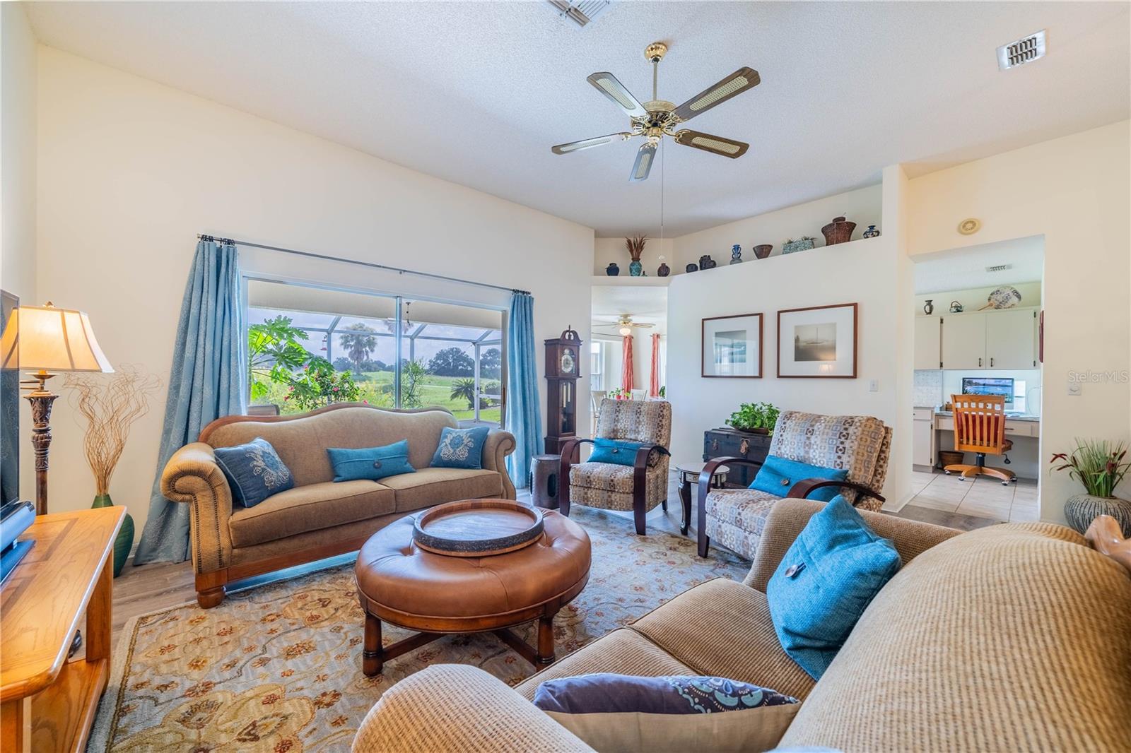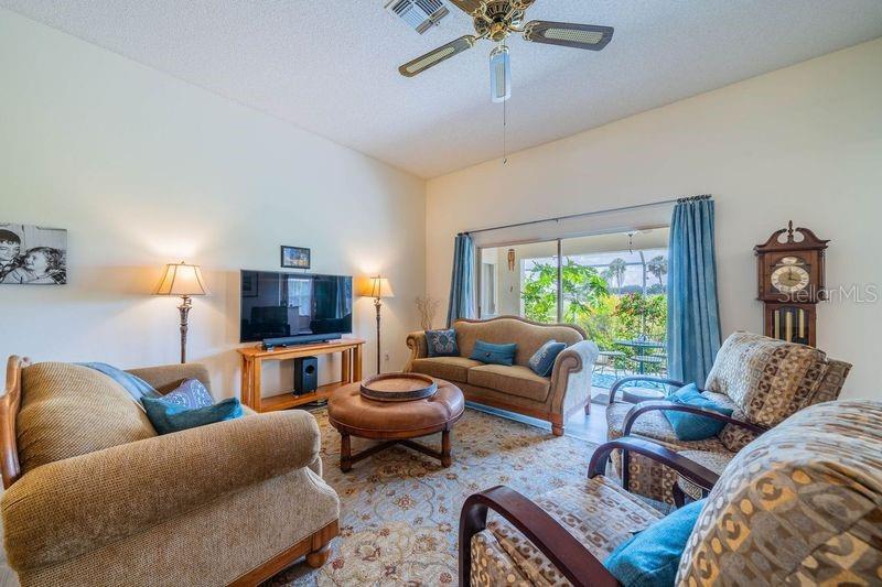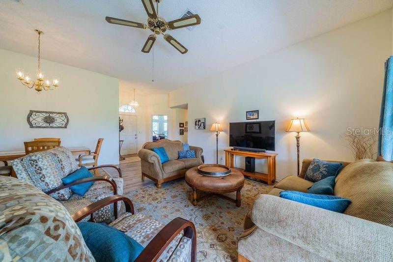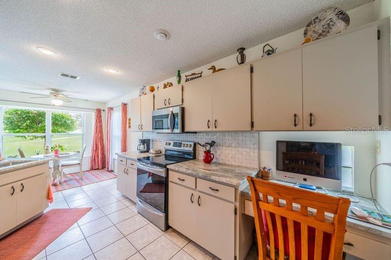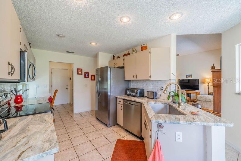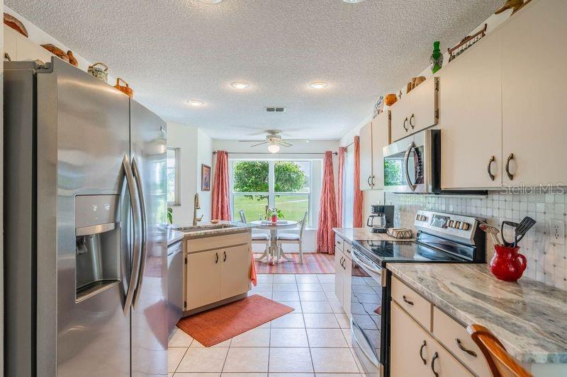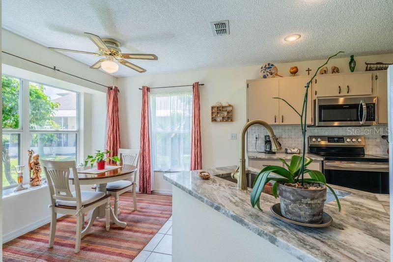 LOCATION LOCATION LOCATION. Sellers offering $4000 toward closing costs! This GORGEOUS home has it all! Beautiful home just across from the NEIGHBORHOOD POOL where your neighbors get together for sun and fun. Check out the curb appeal of the EXTRA LONG PAVED DRIVEWAY under picturesque shade trees. Enter through the screened porch into this pristine home with vinyl plank flooring and tile throughout. The bright living/dining area with sliders out to the SCREENED LANAI has a plush view of the greenery and trails from the old golf course. The kitchen has GRANITE COUNTERTOPS plus new sink and STAINLESS appliances. There is an awesome view of the wildlife from the eat-in area. From your lanai, you can enjoy the trails or just relax and enjoy the birds and wildlife. The laundry room just outside the kitchen INCLUDES WASHER/DRYER, sink, and a large pantry. The master bedroom has a big walk-in closet plus an additional built-in closet. Enjoy your evening on the quiet lanai through the sliders from your bedroom. The master bath includes dual sinks, garden tub and walk-in shower. Home also has a WATER SOFTENER and a large garage with shelving, cabinets, work bench, and a pull down ladder to the attic. Your HOA fees cover water (inside and out), pest control, basic cable, roof (repair/replace) irrigation system, lawn care and landscaping. Fee also covers clubs, pools, fitness center, tennis, pickle ball, arts/crafts, and so much more. TRAVEL AND LEISURE voted Sun City Center as the "TOP RANKING RETIREMENT TOWN." Kings Point is a gated golf cart community with 24-hour security, bar/restaurant, entertainment. It’s a great place to live—and the sunshine is free! BONUS: ASK FOR $3,000 TOWARD CLOSING COSTS!