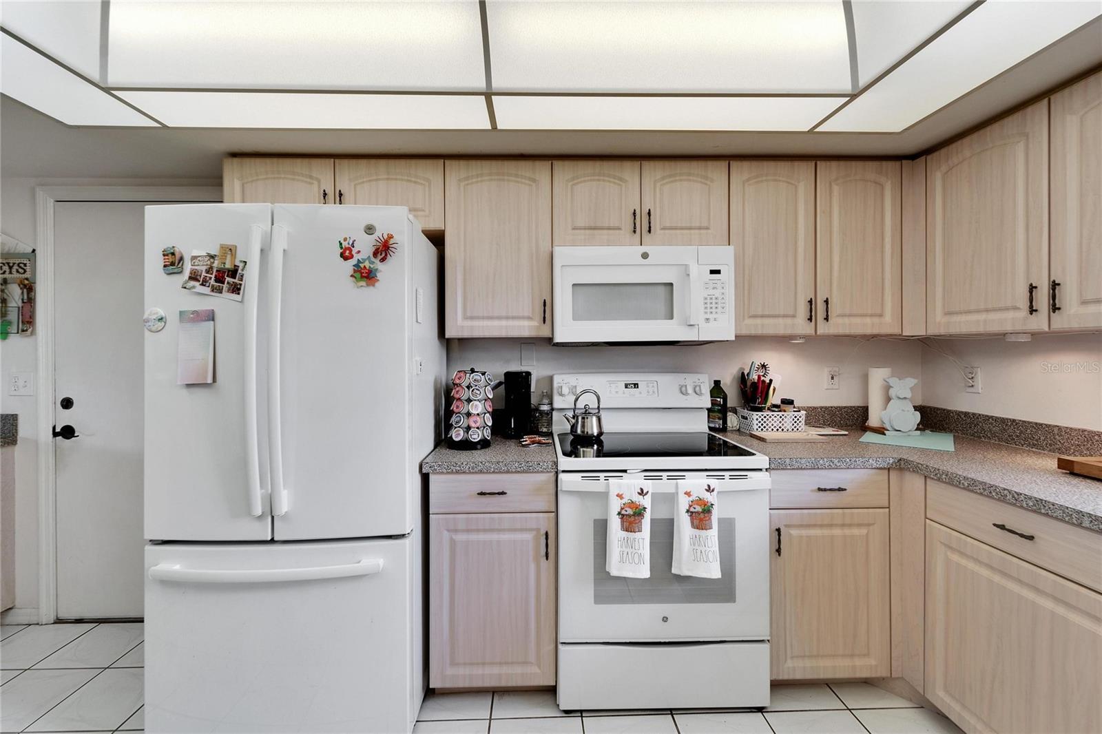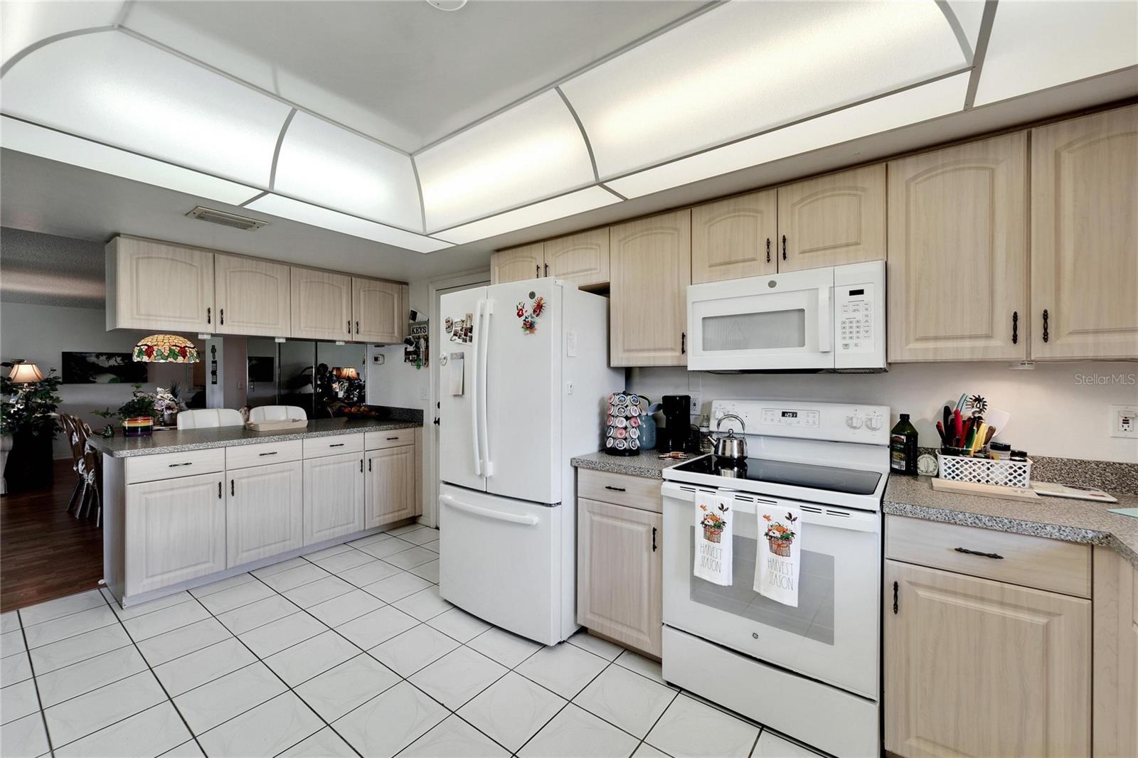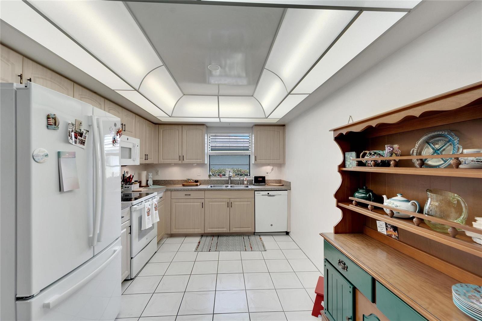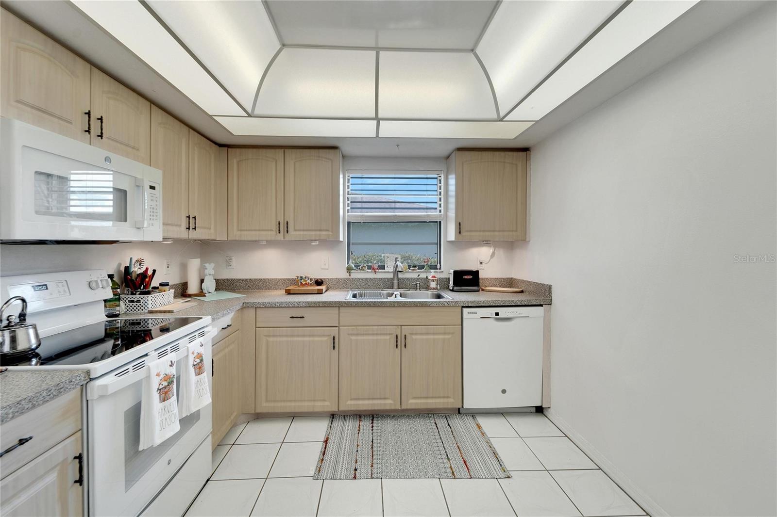 WELCOME TO YOUR DESIRABLE MAINTENANCE FREE HOME! This updated & exceptionally well cared for Sunsetter II split floor plan unit is in a lovely & serene area of Kings Point. It has a peaceful open rear green space view that makes your enclosed Lanai the perfect place to sit & sip your coffee while you contemplate & plan your day. As you drive up to this charmer, you will love its curb appeal and soon to be installed brick paver driveway. Walk thru the lovely, screened porch & step thru the decorative glass beveled front door and you will be delighted by its great Florida vibes, the open living/dining room, neutral color scheme, upgraded fans & fixtures, and roomy kitchen that is large enough for an island workspace. The kitchen boasts foiled grain cabinets, breakfast bar, under the counter lighting, & newer appliances. The primary bedroom has walk in closet and leads to your ensuite bath that has a seamless shower door. Another great feature of this home is the spacious enclosed rear lanai with even tile flooring & the removal of the Primary bedroom slider that was replaced with an interior wall, giving the room more usable space. There is still an ample amount of windows for basking in the sunlight or enjoying warm seasonal breezes. The rear exterior door leads you to your cozy garden area and the expansive public green space behind this unit. Your 2-car garage has multiple storage cabinets which provide you with extra storage space and has a handy an electric roll down screen. Because this home has the ideal amount of space to live comfortably and truly has “form & function” you won't be overwhelmed with household chores or home maintenance; allowing more time to spend with family & friends as you engage in all the fun Kings Point happenings enjoying social activities, join clubs, or participate in any of the many recreational pursuits that may be of interest and help keep you fit. Your condo fees include internet/cable, water, pest management, outside maintenance, & depending on the KP maintenance plan, all inside maintenance can be cared for too…truly stress-free living. Kings Point is a highly sought after active 55+ golf & golf cart community which offers a North & South Clubhouse, resort style pools/spas, fitness center, restaurant, bar & café, a huge array of arts, crafts, clubs, and an array of indoor & outdoor sports with exceptional Pickleball courts. Whether you visit their spectacular Clubhouse, dine at their tasty restaurant, or quench your thirst in their friendly bar. You will love socializing & making new friends! Start living & loving Retirement & Kings Point Living. Kings Point is close to beaches, shopping, & big city activities & entertainment. Don't wait, schedule your showing…You don’t want to miss your opportunity to call this lovely gem home.....The only thing missing is you!