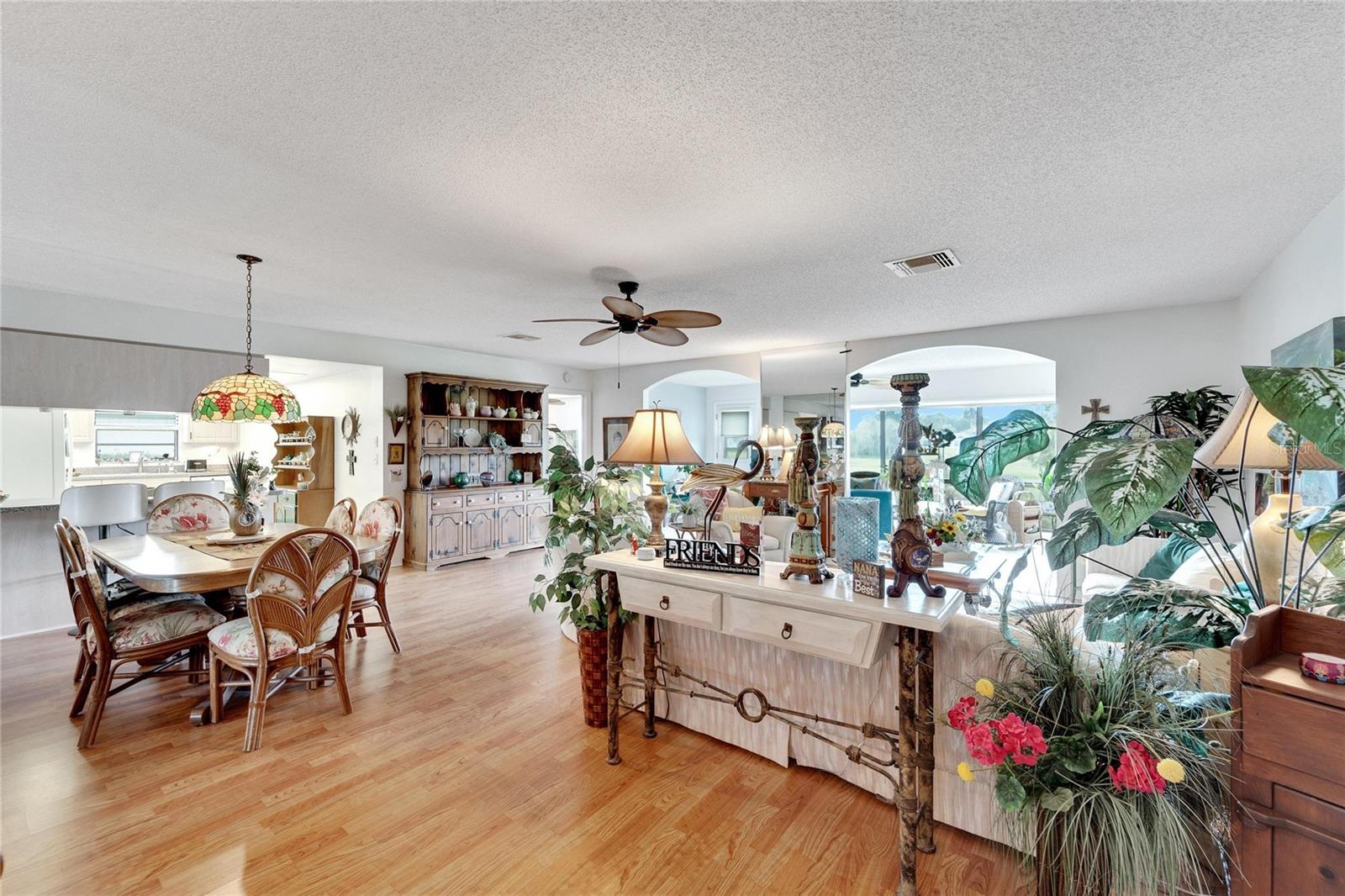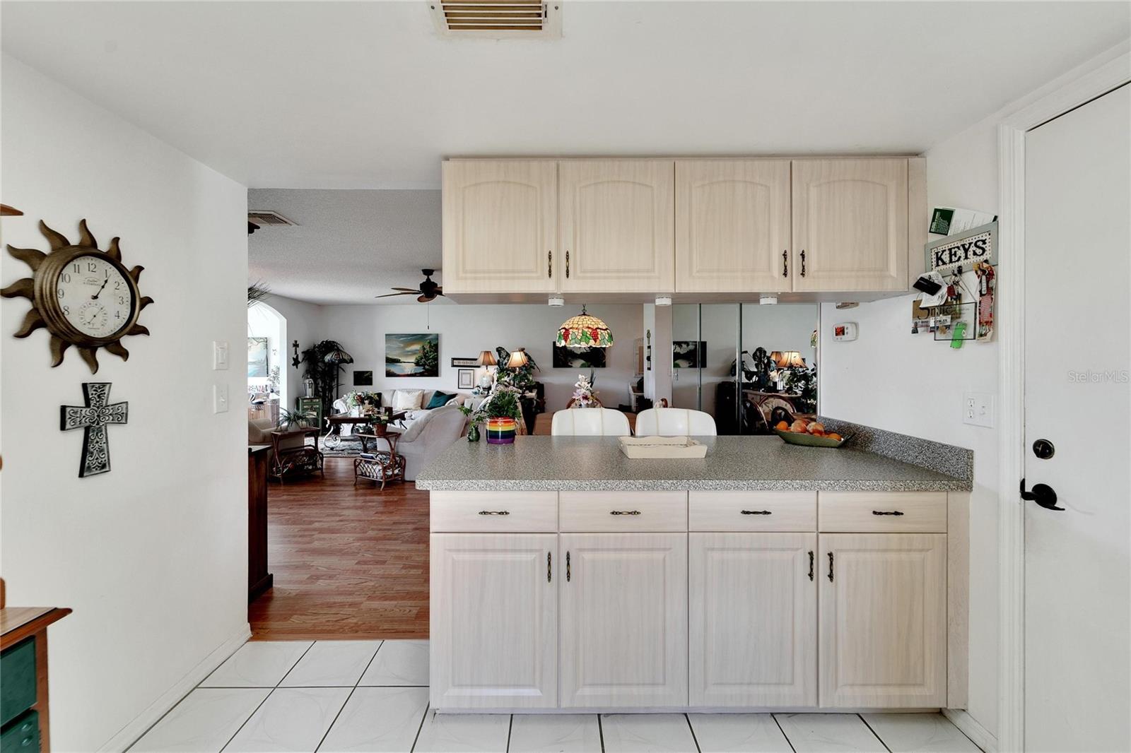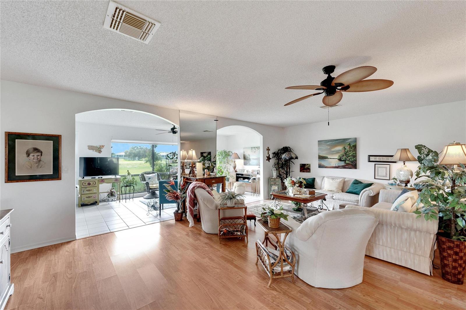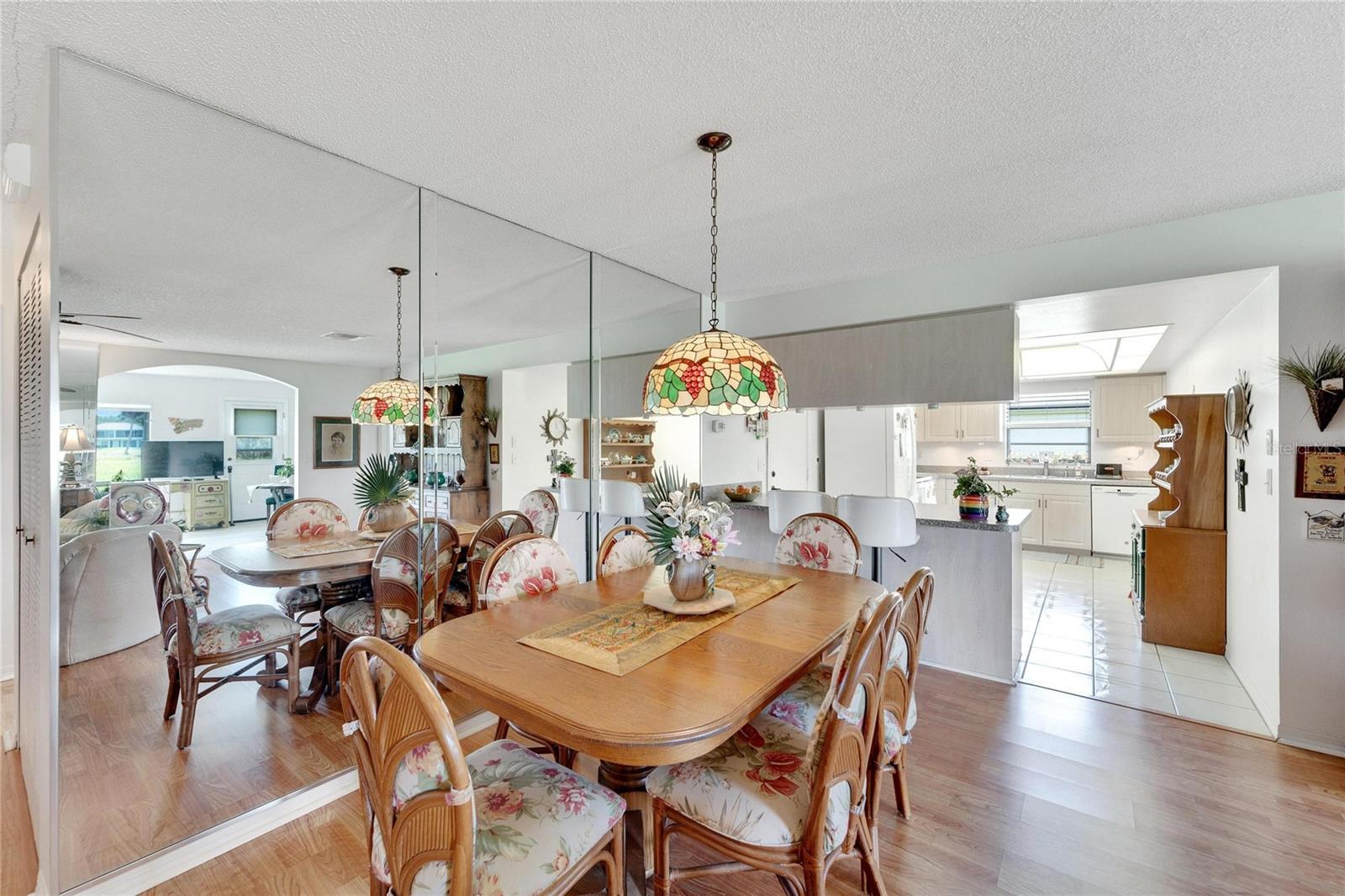 WELCOME TO YOUR DESIRABLE MAINTENANCE FREE HOME! This updated & exceptionally well cared for Sunsetter II split floor plan unit is in a lovely & serene area of Kings Point. It has a peaceful open rear green space view that makes your enclosed Lanai the perfect place to sit & sip your coffee while you contemplate & plan your day. As you drive up to this charmer, you will love its curb appeal and soon to be installed brick paver driveway. Walk thru the lovely, screened porch & step thru the decorative glass beveled front door and you will be delighted by its great Florida vibes, the open living/dining room, neutral color scheme, upgraded fans & fixtures, and roomy kitchen that is large enough for an island workspace. The kitchen boasts foiled grain cabinets, breakfast bar, under the counter lighting, & newer appliances. The primary bedroom has walk in closet and leads to your ensuite bath that has a seamless shower door. Another great feature of this home is the spacious enclosed rear lanai with even tile flooring & the removal of the Primary bedroom slider that was replaced with an interior wall, giving the room more usable space. There is still an ample amount of windows for basking in the sunlight or enjoying warm seasonal breezes. The rear exterior door leads you to your cozy garden area and the expansive public green space behind this unit. Your 2-car garage has multiple storage cabinets which provide you with extra storage space and has a handy an electric roll down screen. Because this home has the ideal amount of space to live comfortably and truly has “form & function” you won't be overwhelmed with household chores or home maintenance; allowing more time to spend with family & friends as you engage in all the fun Kings Point happenings enjoying social activities, join clubs, or participate in any of the many recreational pursuits that may be of interest and help keep you fit. Your condo fees include internet/cable, water, pest management, outside maintenance, & depending on the KP maintenance plan, all inside maintenance can be cared for too…truly stress-free living. Kings Point is a highly sought after active 55+ golf & golf cart community which offers a North & South Clubhouse, resort style pools/spas, fitness center, restaurant, bar & café, a huge array of arts, crafts, clubs, and an array of indoor & outdoor sports with exceptional Pickleball courts. Whether you visit their spectacular Clubhouse, dine at their tasty restaurant, or quench your thirst in their friendly bar. You will love socializing & making new friends! Start living & loving Retirement & Kings Point Living. Kings Point is close to beaches, shopping, & big city activities & entertainment. Don't wait, schedule your showing…You don’t want to miss your opportunity to call this lovely gem home.....The only thing missing is you!