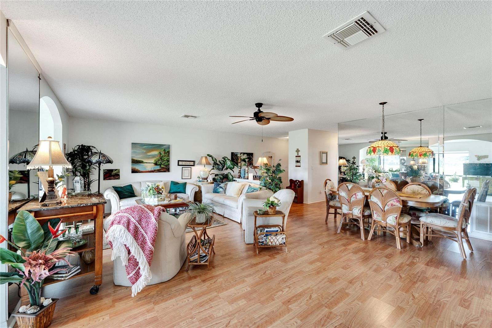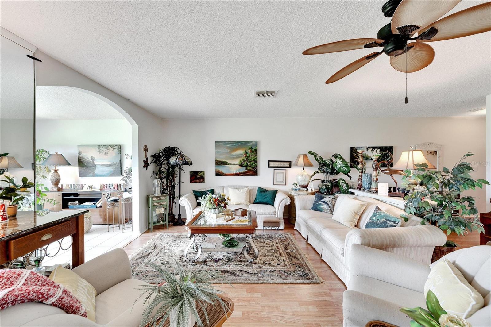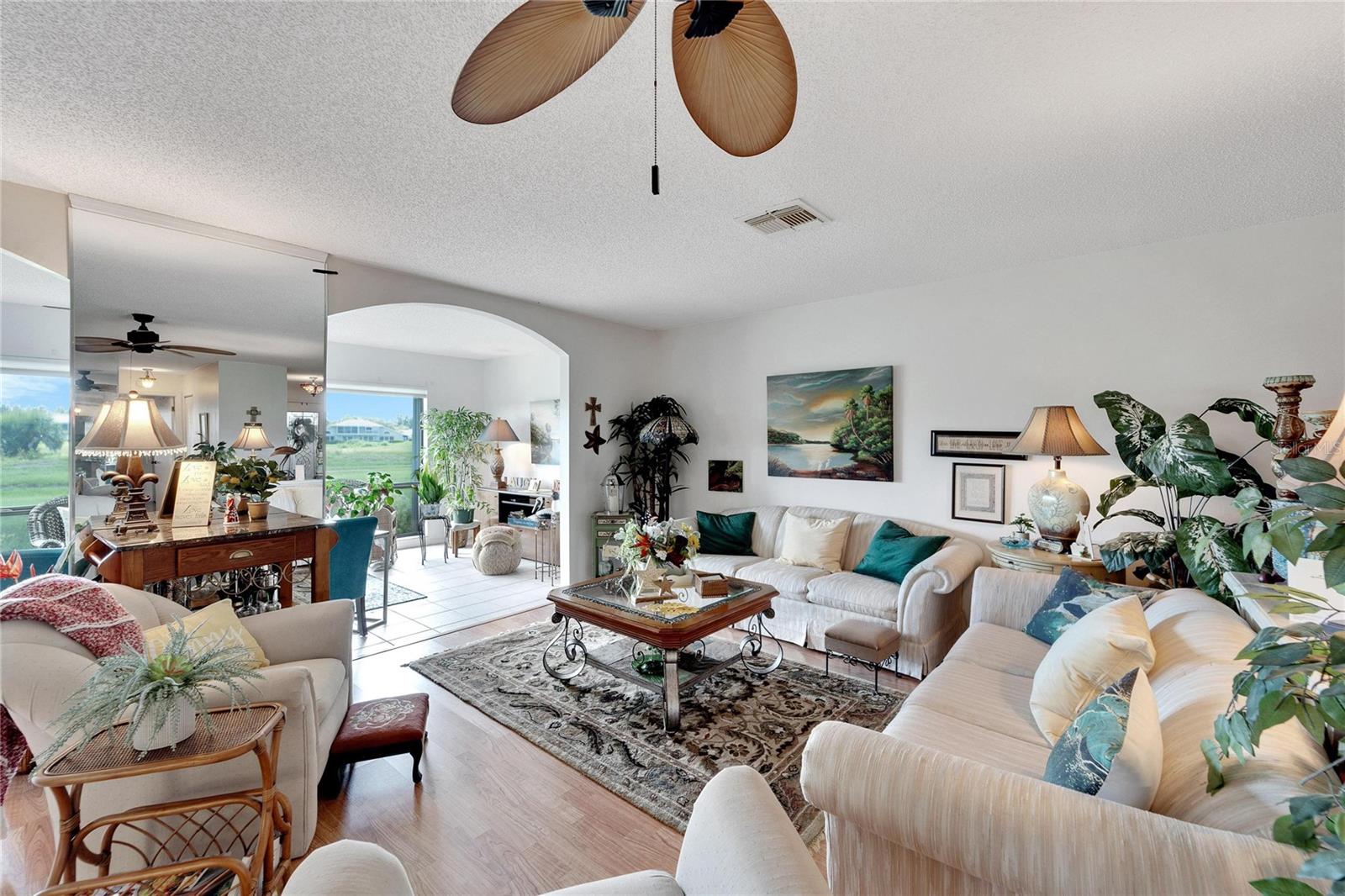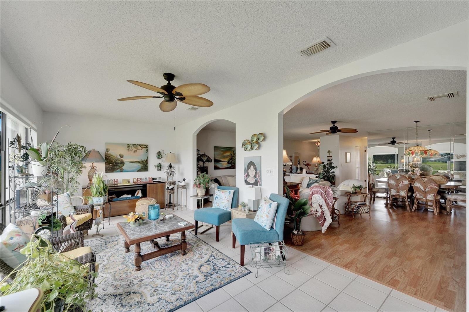 WELCOME TO YOUR DESIRABLE MAINTENANCE FREE HOME! This updated & exceptionally well cared for Sunsetter II split floor plan unit is in a lovely & serene area of Kings Point. It has a peaceful open rear green space view that makes your enclosed Lanai the perfect place to sit & sip your coffee while you contemplate & plan your day. As you drive up to this charmer, you will love its curb appeal and soon to be installed brick paver driveway. Walk thru the lovely, screened porch & step thru the decorative glass beveled front door and you will be delighted by its great Florida vibes, the open living/dining room, neutral color scheme, upgraded fans & fixtures, and roomy kitchen that is large enough for an island workspace. The kitchen boasts foiled grain cabinets, breakfast bar, under the counter lighting, & newer appliances. The primary bedroom has walk in closet and leads to your ensuite bath that has a seamless shower door. Another great feature of this home is the spacious enclosed rear lanai with even tile flooring & the removal of the Primary bedroom slider that was replaced with an interior wall, giving the room more usable space. There is still an ample amount of windows for basking in the sunlight or enjoying warm seasonal breezes. The rear exterior door leads you to your cozy garden area and the expansive public green space behind this unit. Your 2-car garage has multiple storage cabinets which provide you with extra storage space and has a handy an electric roll down screen. Because this home has the ideal amount of space to live comfortably and truly has “form & function” you won't be overwhelmed with household chores or home maintenance; allowing more time to spend with family & friends as you engage in all the fun Kings Point happenings enjoying social activities, join clubs, or participate in any of the many recreational pursuits that may be of interest and help keep you fit. Your condo fees include internet/cable, water, pest management, outside maintenance, & depending on the KP maintenance plan, all inside maintenance can be cared for too…truly stress-free living. Kings Point is a highly sought after active 55+ golf & golf cart community which offers a North & South Clubhouse, resort style pools/spas, fitness center, restaurant, bar & café, a huge array of arts, crafts, clubs, and an array of indoor & outdoor sports with exceptional Pickleball courts. Whether you visit their spectacular Clubhouse, dine at their tasty restaurant, or quench your thirst in their friendly bar. You will love socializing & making new friends! Start living & loving Retirement & Kings Point Living. Kings Point is close to beaches, shopping, & big city activities & entertainment. Don't wait, schedule your showing…You don’t want to miss your opportunity to call this lovely gem home.....The only thing missing is you!
