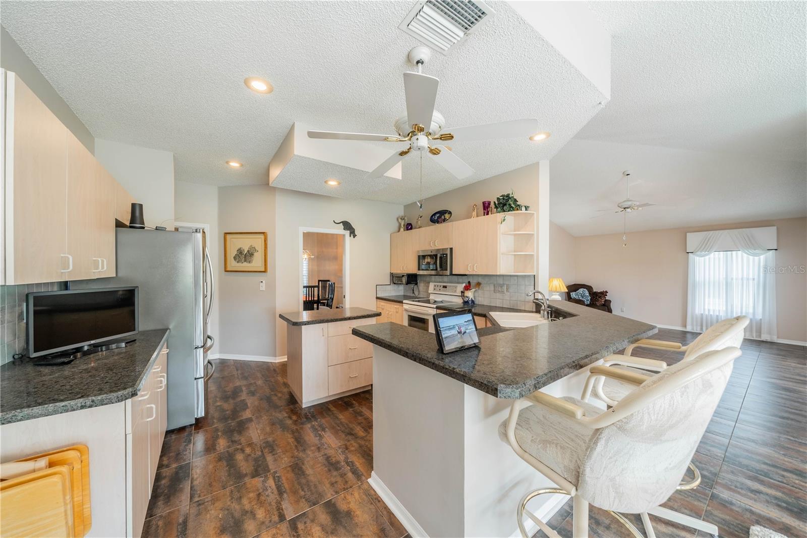 PRICE REDUCED to under value, so make an appointment to see the PRETTIEST HOME on Winterbrooke Way. THIS POPULAR ST. THOMAS MODEL with three bedrooms, two bathrooms, split plan, and loads of extras could be yours. Take a brochure to see how it was originally furnished, or use your own creativity to make it a model home once more. As you enter, look beyond the great room to the tiled lanai and the peaceful CONSERVATION AND POND view. The home has vaulted ceilings, PLANTATION SHUTTERS, tile in the wet areas and carpet in the bedrooms. The large master bedroom has two walk-in closets, garden tub, walk-in shower and double sinks. The guest bathroom has just been renovated with a NEW walk-in shower. The third bedroom (or office) has TWO CLOSETS. The spacious chef’s kitchen includes stainless appliances, an abundance of cabinets with pull-outs, an eat-in area, cushioned window bench seat with a wildlife and pond view. The kitchen also includes a handy island and is adjacent to the dining room. Some of the interior has been newly painted. Master bedroom includes an adjustable KING bed. The laundry room with sink INCLUDES WASHER/DRYER. Drive by and note the curb appeal of the BRICK PAVERS and colorful landscape. The spacious screened front porch invites you to add your own personal touch. The back windows have HURRICANE SHUTTERS, and the WATER for the irrigation system comes FROM THE POND. Enjoy the FABULOUS TILED LANAI for entertaining or simply relax and enjoy the great outdoors. The EXTENDED 2-car garage has storage cabinets, a pull-down ladder to the attic, screen and keypad. Newer FREEZER in garage INCLUDED. This extraordinary home is located in the quiet, sought-after CALOOSA NEIGHBORHOOD. For only $174 A SQ. FT., this spacious home could be yours to enjoy. Sun City Center is a golf cart community with hundreds of clubs and activities including pools, fitness center, tennis, pickle ball, arts and crafts, woodworking, and so much more. TRAVEL AND LEISURE voted Sun City Center as the TOP RANKING RETIREMENT TOWN. Come visit us for a tour, and you will be amazed. Sun City Center is located between Tampa and Sarasota and is near three international airports, beaches, amusement parks, and professional sports teams.