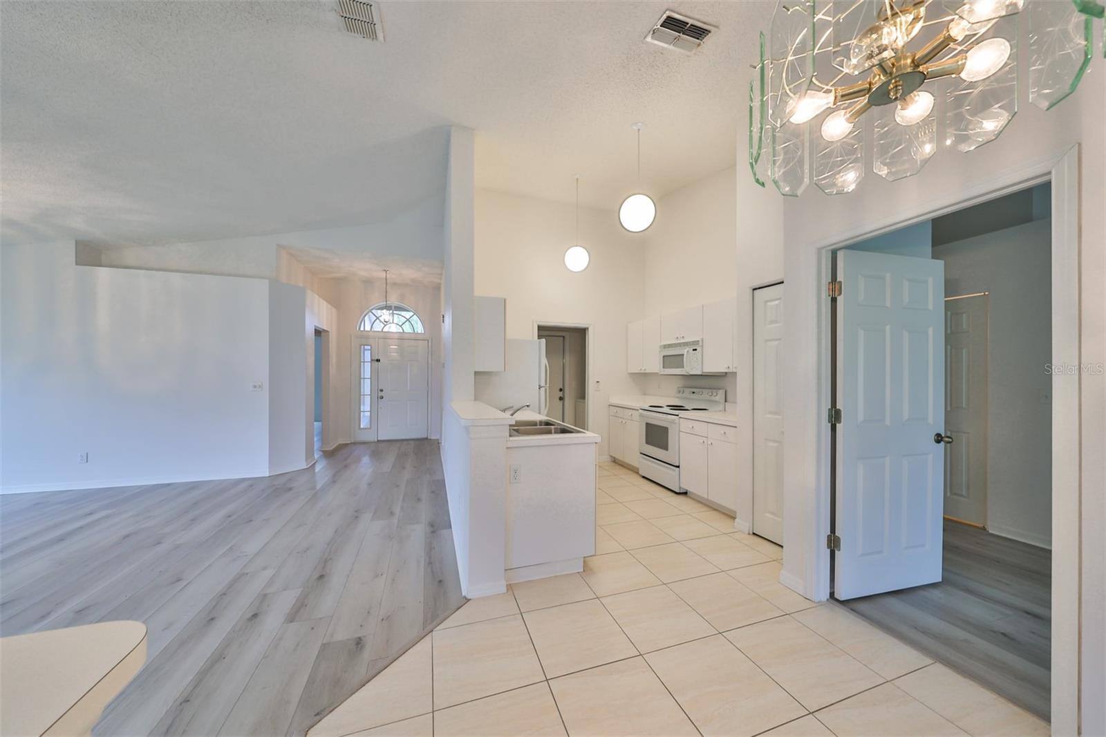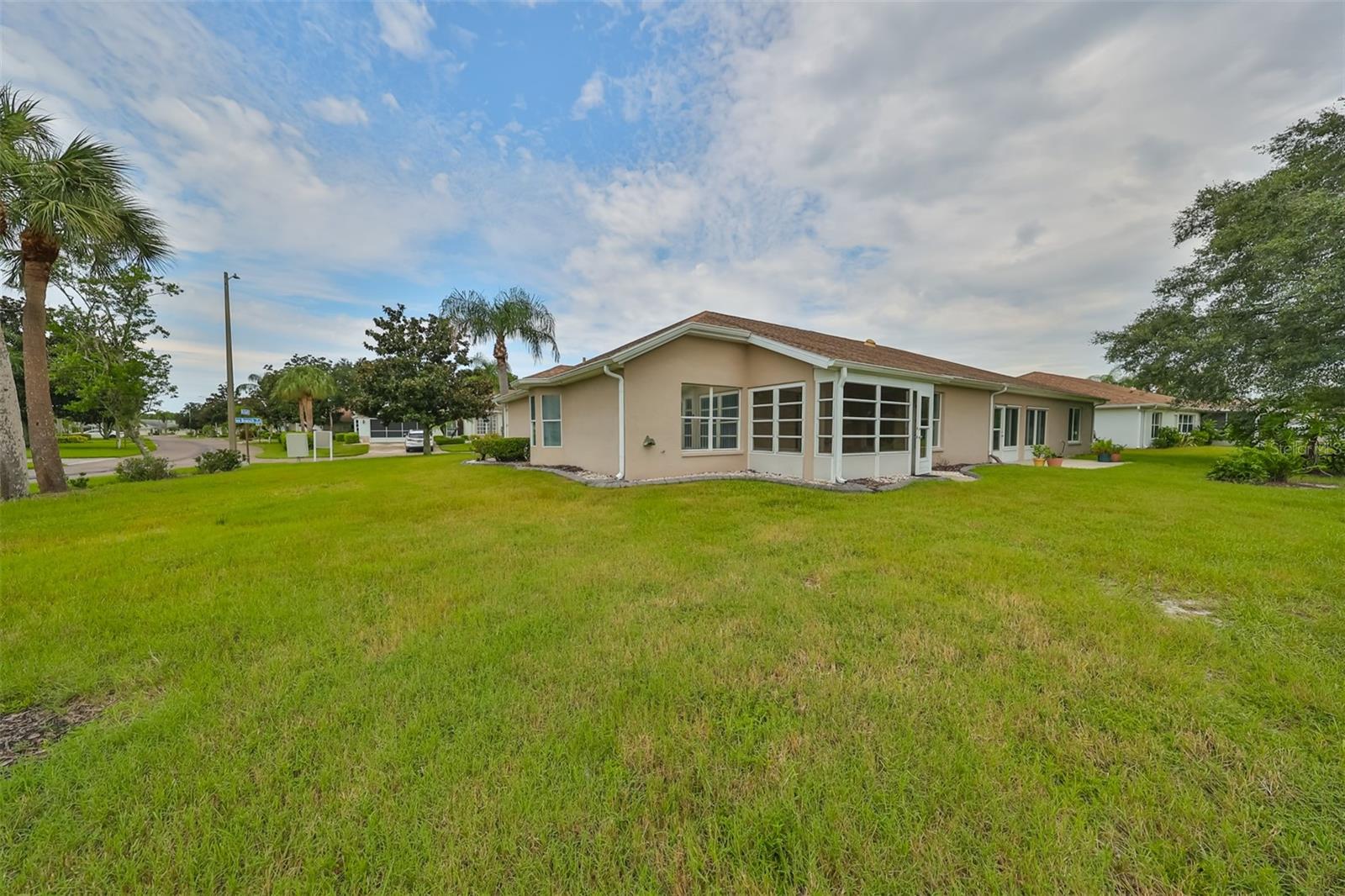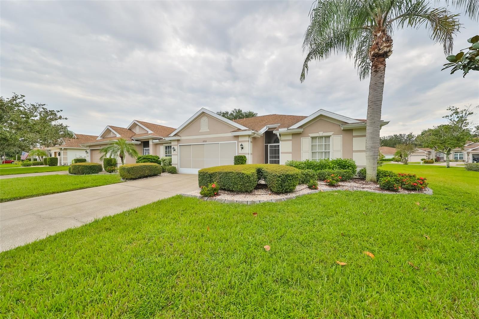 One or more photo(s) has been virtually staged. CHARMING CONDO ON A LARGE CORNER LOT! Treat yourself to maintenance free living in the active and gated 55+ community of Kings Point in Sun City Center, FL. This 2 bedroom/2 bathroom & 2 car garage condo boasts almost 1300 square feet of open living space. Step through the inviting entryway and be wowed by the soaring high ceilings, newer laminate flooring throughout plus plenty of windows that provide tons of natural light. The large open living room/dining room combo is the perfect space for all your entertainment needs. The eat-in kitchen is open to the living area and has a slider that leads to the lanai. The inside laundry room is easily accessible just off the kitchen. The spacious master suite has more soaring ceilings, a large walk-in closet and a nice walk-in shower. The 2nd bedroom and full bathroom are at the opposite end of the condo, which offers extra privacy for guests. The relaxing living space continues into the lanai, and the windows make it enjoyable year round. Kings Point has fabulous amenities such as indoor/outdoor pools, 2 clubhouses, 2 casual eating areas, numerous social clubs, pickleball & tennis, gym, live theater and so much more, all accessible by golf cart. Kings Point is also conveniently located to local shopping, restaurants, doctors, banking, major highways. airports, award winning beaches, Tampa & Sarasota. So come and visit this condo today and see why you'll want to call it home!