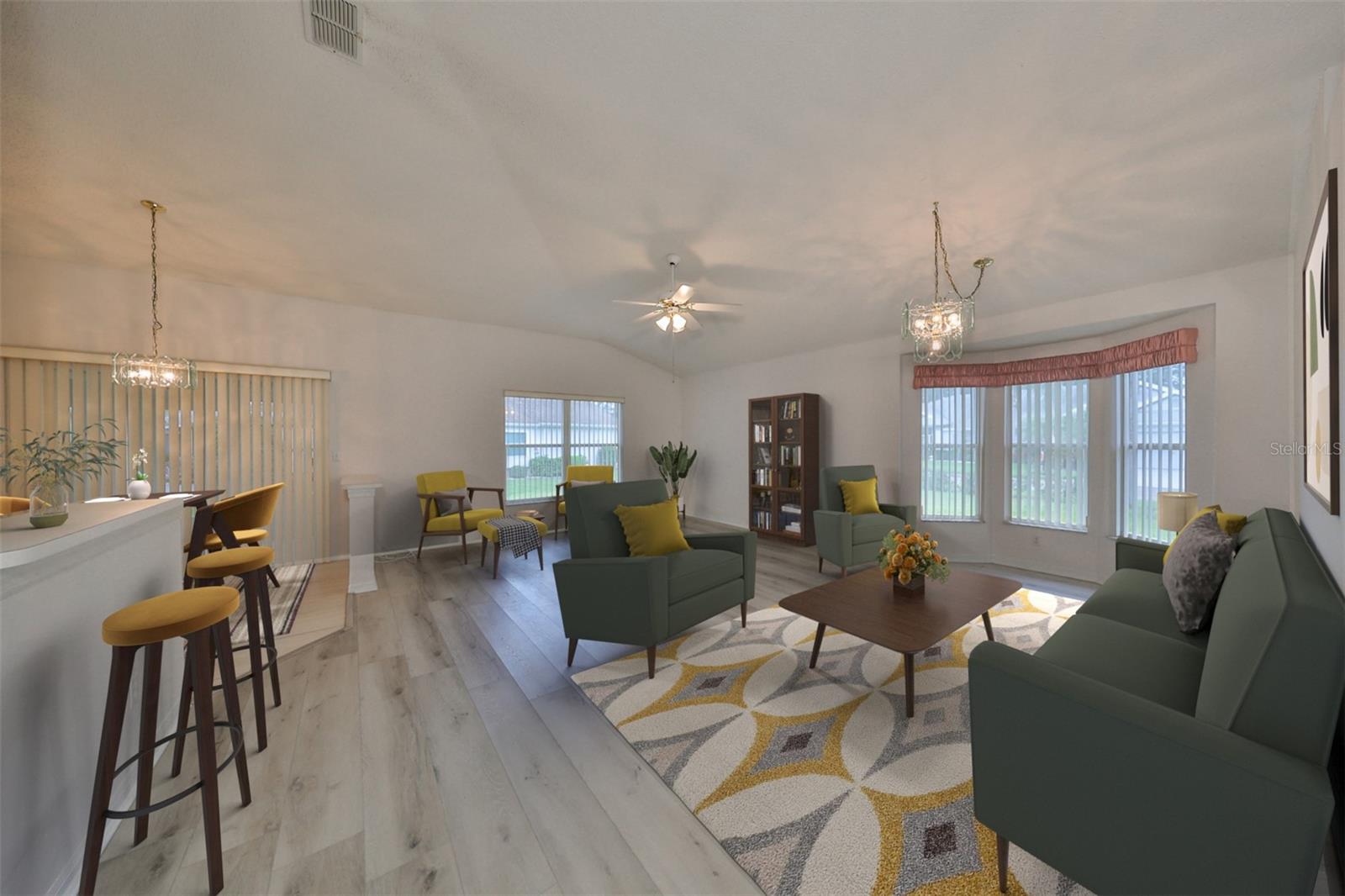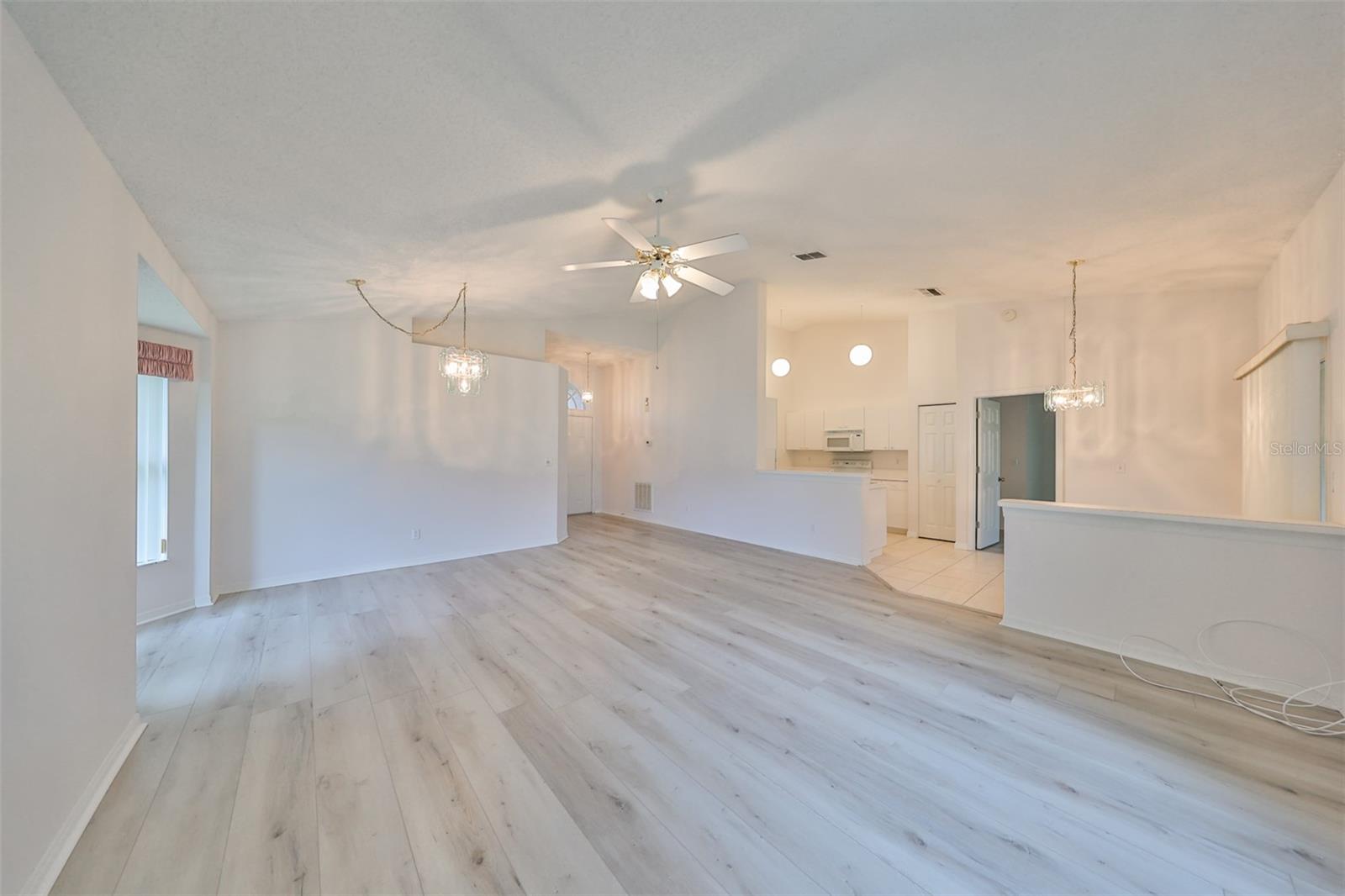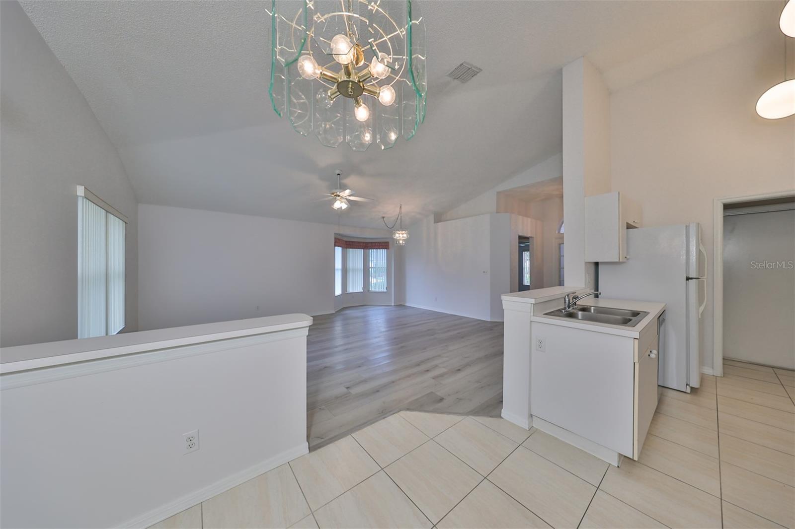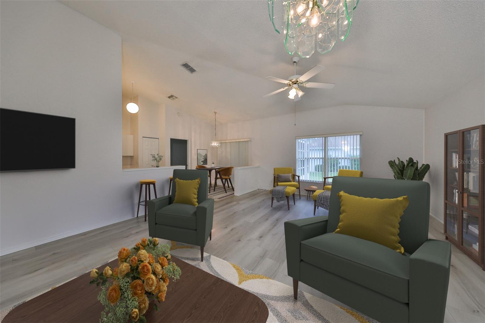 One or more photo(s) has been virtually staged. CHARMING CONDO ON A LARGE CORNER LOT! Treat yourself to maintenance free living in the active and gated 55+ community of Kings Point in Sun City Center, FL. This 2 bedroom/2 bathroom & 2 car garage condo boasts almost 1300 square feet of open living space. Step through the inviting entryway and be wowed by the soaring high ceilings, newer laminate flooring throughout plus plenty of windows that provide tons of natural light. The large open living room/dining room combo is the perfect space for all your entertainment needs. The eat-in kitchen is open to the living area and has a slider that leads to the lanai. The inside laundry room is easily accessible just off the kitchen. The spacious master suite has more soaring ceilings, a large walk-in closet and a nice walk-in shower. The 2nd bedroom and full bathroom are at the opposite end of the condo, which offers extra privacy for guests. The relaxing living space continues into the lanai, and the windows make it enjoyable year round. Kings Point has fabulous amenities such as indoor/outdoor pools, 2 clubhouses, 2 casual eating areas, numerous social clubs, pickleball & tennis, gym, live theater and so much more, all accessible by golf cart. Kings Point is also conveniently located to local shopping, restaurants, doctors, banking, major highways. airports, award winning beaches, Tampa & Sarasota. So come and visit this condo today and see why you'll want to call it home!