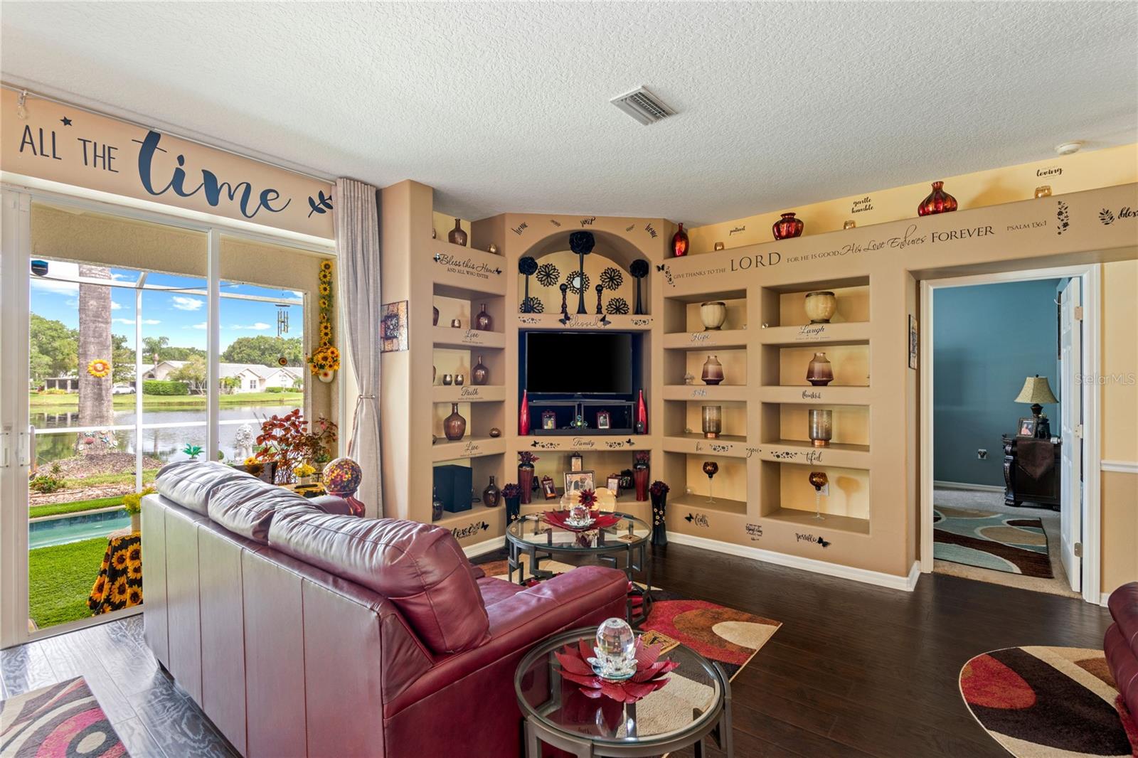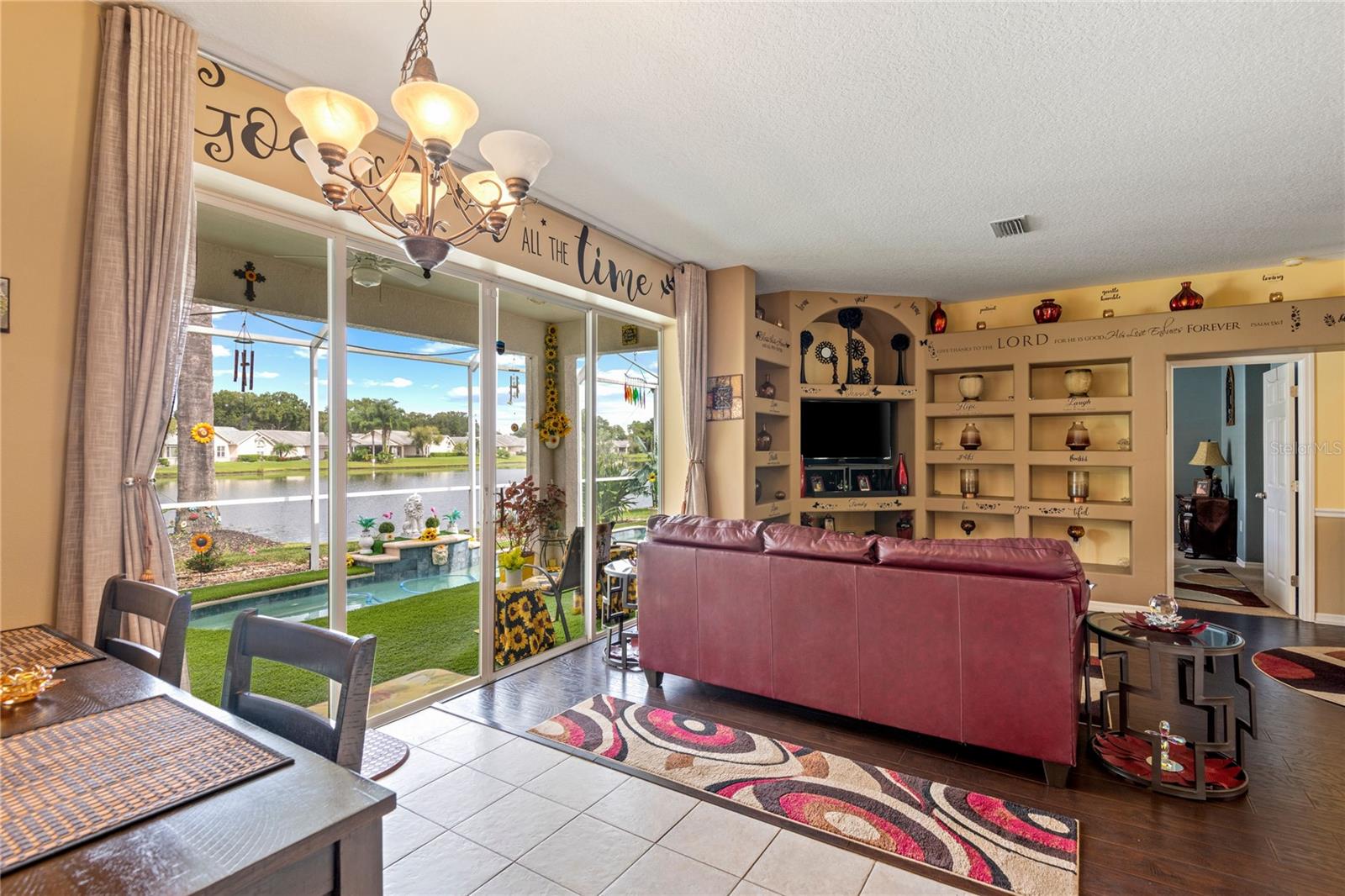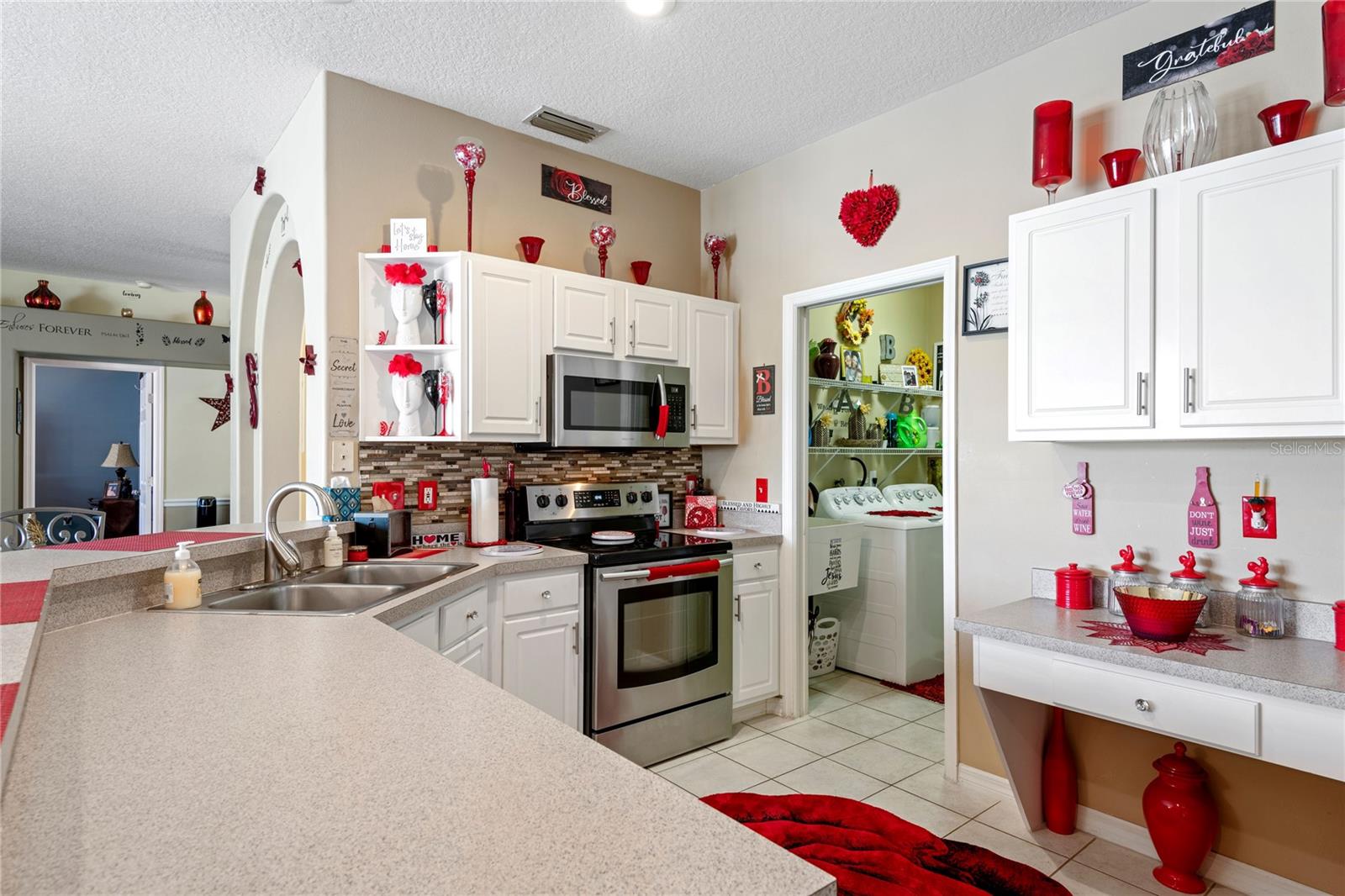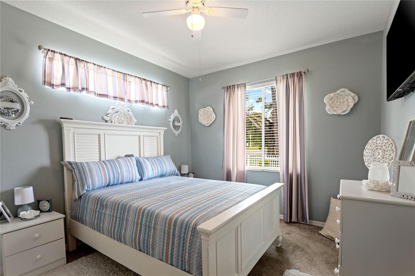 NO CDD AND VERY LOW HOA! This home is situated on a lovely corner lot, nearly 1/4 acre, at the end of a quiet cul-de-sac with only 12 homes. It's a peaceful neighborhood, perfect for walking, biking, and golfing. The golf course is just a few streets away, and the pro shop is a short golf cart ride from the home. The master suite features dual sinks, a Roman tub, a walk-in shower with a built-in seat, and two walk-in closets. The split floor plan with a pocket door offers privacy for guests and other rooms, while the guest bath conveniently opens to the lanai. This home has been meticulously cared for and maintained. It features new top-of-the-line carpet and padding in the bedrooms, engineered wood, and tile flooring in the main areas. The kitchen boasts stainless steel appliances, and there’s an irrigation timer for the beautiful bedding plants with drip lines. The guest wing includes a pocket door for privacy from the main living areas, with a guest bath that opens to the lanai and pool. The home has been freshly painted and is move-in ready—just bring your swimsuit and relax by the screened-in pool. There’s also a separate entrance into the garage with parking for your golf cart. Additionally, the home features a separate laundry room with a laundry tub. This property is minutes from shopping, dining, golf courses, and beaches, all while being located on a street with only 12 homes, low HOA fees, and no CDD.