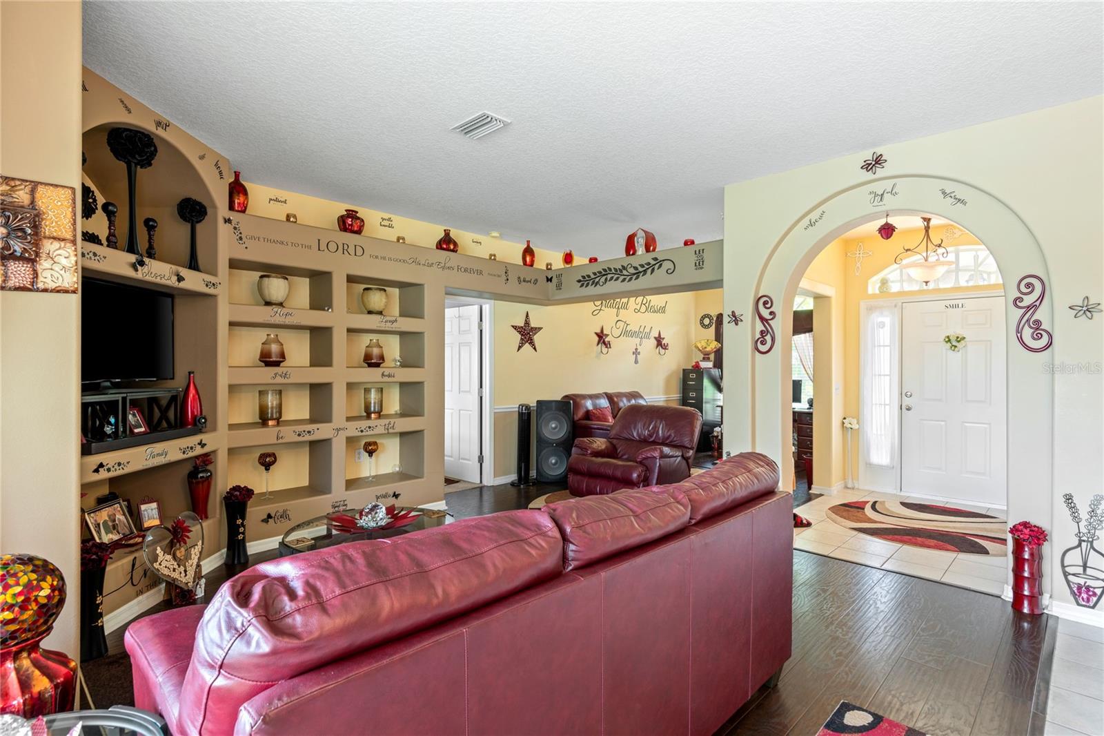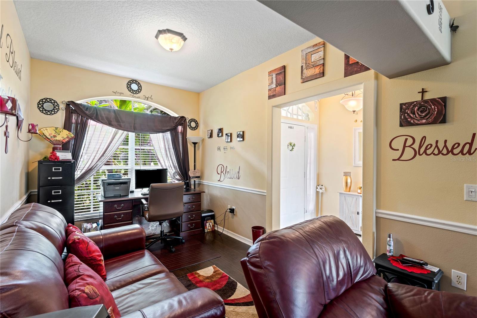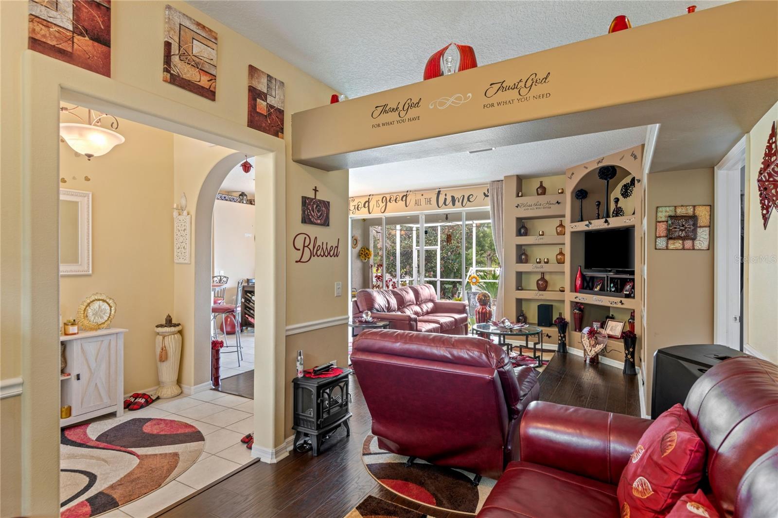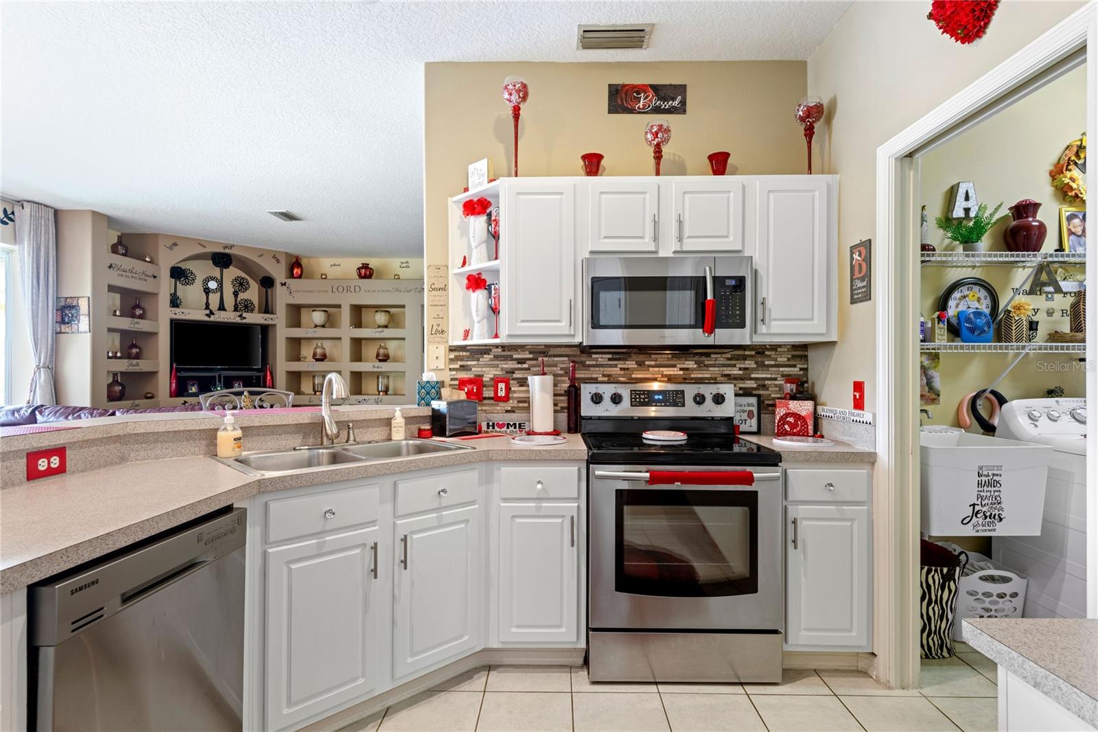 NO CDD AND VERY LOW HOA! This home is situated on a lovely corner lot, nearly 1/4 acre, at the end of a quiet cul-de-sac with only 12 homes. It's a peaceful neighborhood, perfect for walking, biking, and golfing. The golf course is just a few streets away, and the pro shop is a short golf cart ride from the home. The master suite features dual sinks, a Roman tub, a walk-in shower with a built-in seat, and two walk-in closets. The split floor plan with a pocket door offers privacy for guests and other rooms, while the guest bath conveniently opens to the lanai. This home has been meticulously cared for and maintained. It features new top-of-the-line carpet and padding in the bedrooms, engineered wood, and tile flooring in the main areas. The kitchen boasts stainless steel appliances, and there’s an irrigation timer for the beautiful bedding plants with drip lines. The guest wing includes a pocket door for privacy from the main living areas, with a guest bath that opens to the lanai and pool. The home has been freshly painted and is move-in ready—just bring your swimsuit and relax by the screened-in pool. There’s also a separate entrance into the garage with parking for your golf cart. Additionally, the home features a separate laundry room with a laundry tub. This property is minutes from shopping, dining, golf courses, and beaches, all while being located on a street with only 12 homes, low HOA fees, and no CDD.