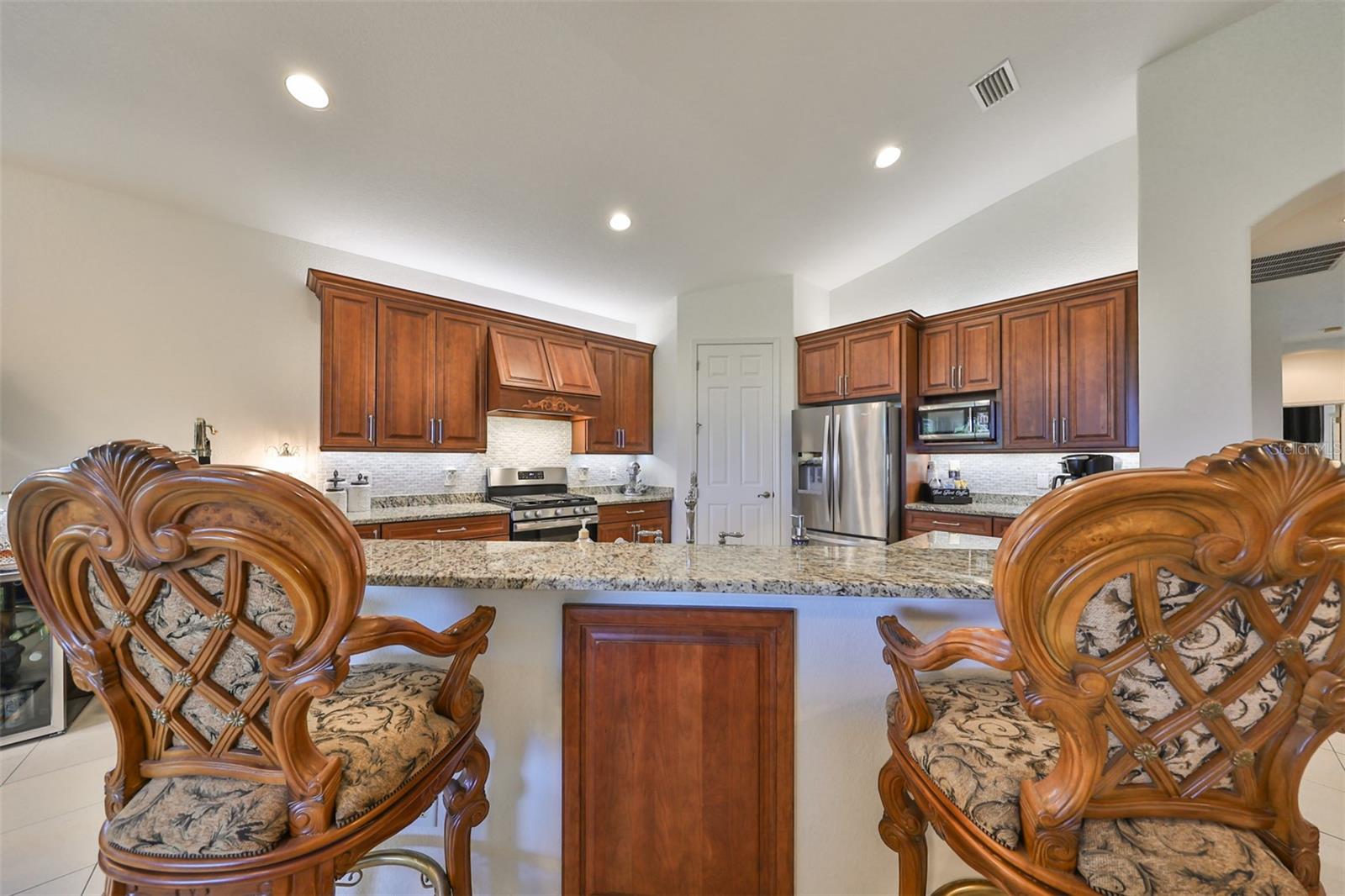 *CLICK ON INTERACTIVE 3d TOUR* MOTIVATED SELLER - TRIFECTA VIEW! WATERFRONT/GOLF COURSE/CLUBHOUSE VIEW, UPDATED within the last 18 months (Over $100K), TOP FLOOR , MAINTENANCE FREE, condo nestled in highly desirable Toscana community of Renaissance! A piece of paradise offering one of the best WATER/GOLF COURSE VIEWS. OPEN FLOOR PLAN has almost 2500 sq.ft. of living space & is accessed via a WIDE CURVING ALL WOOD STAIRCASE or YOUR OWN PRIVATE ELEVATOR that is maintained by the association. WATER/GOLF COURSE/CLUBHOUSE view from the covered, screened & PRIVATE lanai are immediate once you enter the great room. Open floor plan makes it IDEAL for entertaining. High-end CUSTOM KITCHEN updates are just part of the many updates that have been incorporated in this unit. CUSTOM AMOROSO Cabinetry (Craft Maid), ALL WOOD, raised panel cabinetry, under mount lighting, panel end caps & PULL-OUT SHELVING. GRANITE countertops with a soft modern pattern & a backsplash made of STONE compliment the space. The island boasts of multiple WOOD PANELS and a LARGE SURFACE counter with seating for six, perfect for family gatherings. STAINLESS STEEL APPLIANCES incl. GAS RANGE are all part of the beautiful upgrades. The great room has a spectacular water/golf course/clubhouse view, which accommodates both an intimate dining area & breakfast area for those informal meals. Primary bedroom has large windows and sliding doors onto the lanai with magnificent views of the water/golf course and clubhouse & tropical landscaping! UPDATED EN-SUITE bathroom has a WALK-IN shower with seamless glass, linear drain. The vanity has dual Kohler undermount sinks, granite counters & storage incl shared & individual drawers. Newer light fixtures and hardware complete the design while adding functionality. The WALK-IN CLOSET is spacious and lots of shelving. The split plan offers ULITMATE PRIVACY with larger, secondary bedrooms that boast natural light, new flooring & generous closet space. UPDATED second bathroom will impress with MODERN wood cabinetry, GRANITE countertop & Kohler undermount sink. The OFFICE/DEN has NEW flooring along with large windows so that NATURAL SUNSHINE can filter into the room. Laundry room offers shelving and cabinetry. Even the garage has been updated with storage cabinetry. Additional features/updates include tray ceilings, 8’ doors & arched entries, custom light fixtures throughout and natural gas! Renaissance Country Club has an expansive golf shop, restaurant, pool, fitness including an indoor walk/jogging track & a full-service day spa/wellness center. You have access to Sun City Center amenities that has over 100 clubs & organizations to choose from. There are activities to suit virtually every interest! Amenities include community pools (indoor & outdoor), fitness, shuffleboard, softball, lawn bowling, pickleball, lapidary, art & more! Golf carts are a primary source of transportation including grocery shopping, salons, banks, a hospital/doctors, shopping & restaurants! Located close to beaches, 35 minutes to Tampa International Airport & close to Sarasota shops. NOTE: All measurements considered accurate but must be verified by buyer. Roof, Exterior Building, Exterior Water & Landscaping all maintained by the Condo Association. A/C & Gas Furnace 2023; Appliances 2023. This condo has been PET FREE AND SMOKE FREE. VOTED #1 Retirement Community in the USA by Realtor.com & Travel & Leisure.____________