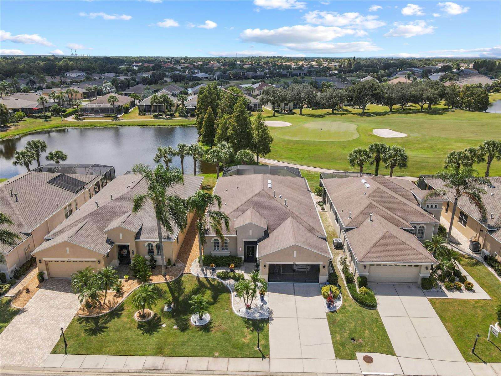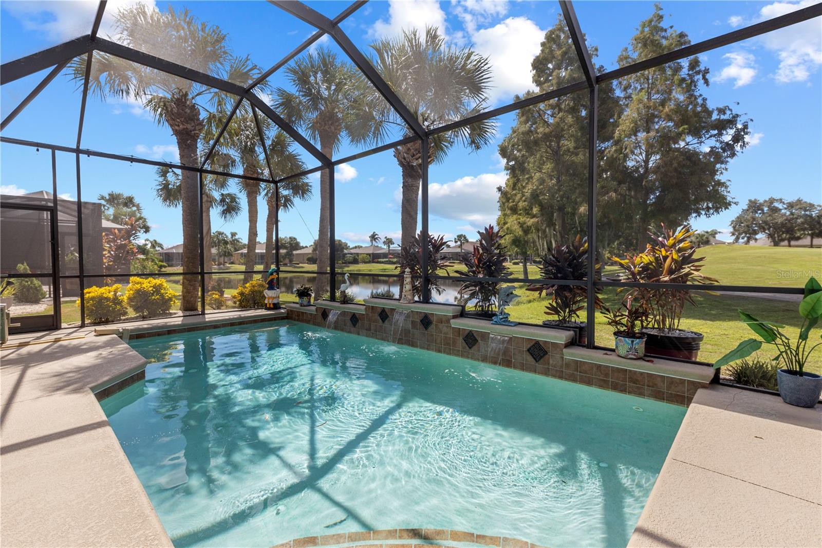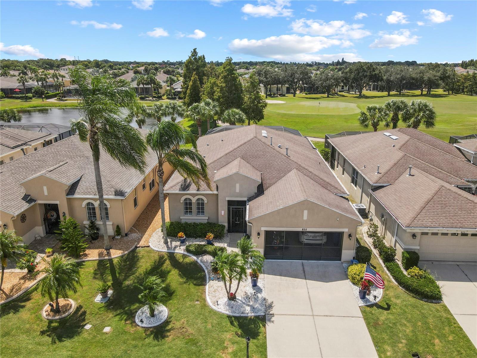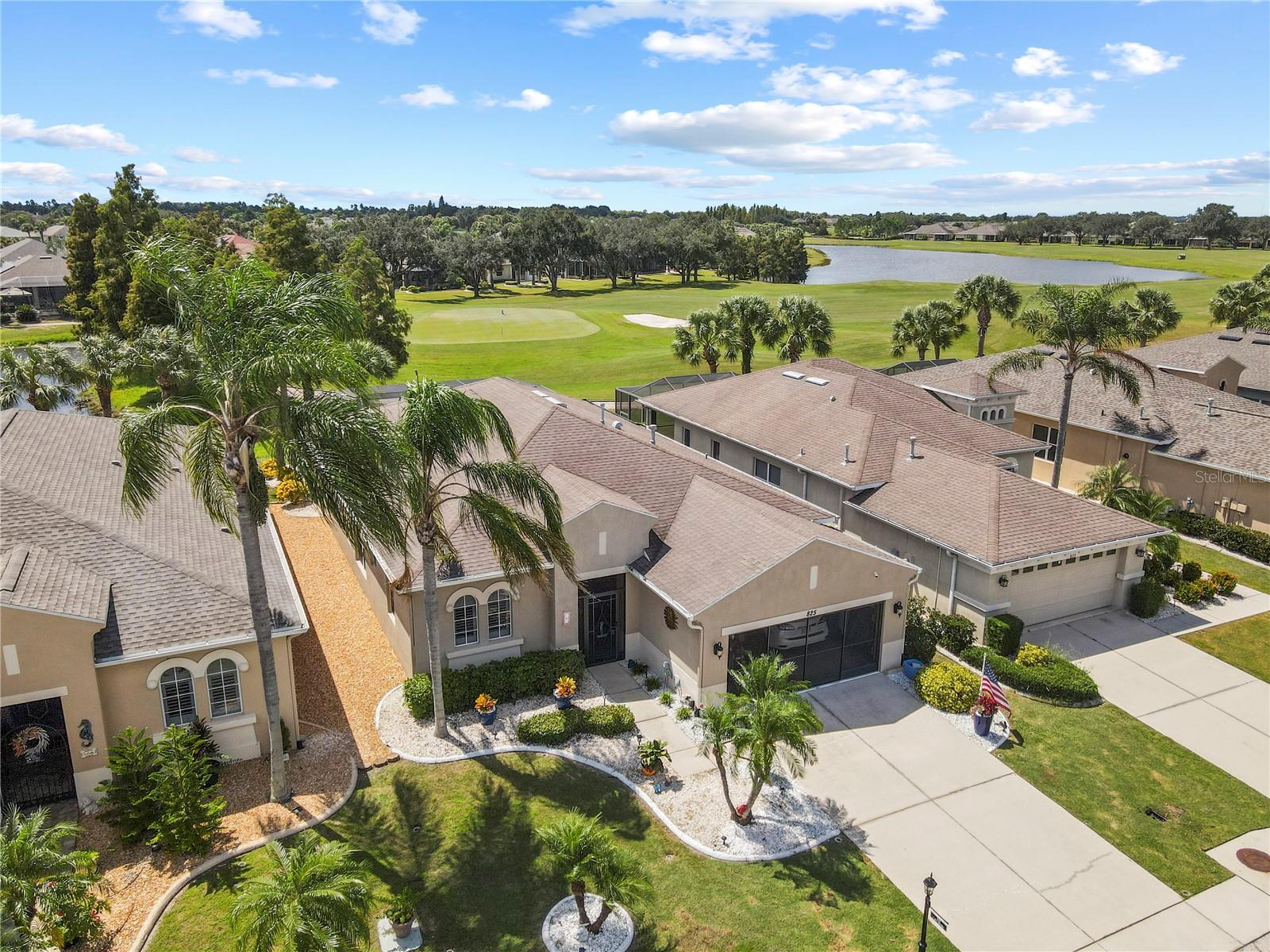 NEW ROOF with 150 MPH hurricane Shingles!! Absolutely pristine pool home with breathtaking GOLF COURSE and POND VIEWS in the exclusive Renaissance at Sun City Center, one of Florida’s top golf cart communities. This elegant 2-bedroom, 2-bathroom home with an oversized office/den sits on a PREMIUM LOT and embodies the best of Florida living. The expansive great room is a blend of thoughtful design and refined details, featuring 7-INCH CROWN MOLDING, PLANTATION SHUTTERS, and HIGH CEILINGS. POCKET SLIDERS lead to a HEATED SALTWATER POOL and lanai with PANORAMIC VIEWS of the golf course and pond, creating a seamless indoor-outdoor experience. Recent updates include a 2024 ELECTRIC POOL HEATER (93,000 BTU), POOL PUMP, CONTROL PANEL, and SALT GENERATOR (2020), ensuring low-maintenance operation. The chef’s kitchen boasts GRANITE COUNTERTOPS, 42-INCH CABINETRY, CUSTOM TILE ACCENTS, and a LARGE ISLAND, ideal for hosting gatherings or enjoying casual meals in the light-filled nook overlooking tranquil water views. The home is also PIPED FOR NATURAL GAS, offering energy-efficient options throughout. The primary suite is a serene retreat, featuring a BAY WINDOW with pond views, a WALK-IN CLOSET, and a SPA-LIKE ENSUITE with DOUBLE VANITIES, a HYDRO SPA/MASSAGE TUB, and a WALK-IN SHOWER. Guests will enjoy their own well-appointed bedroom, while the OVERSIZED OFFICE/DEN, easily converted into a third bedroom, is conveniently located near the guest bathroom. This home also includes SURGE PROTECTION, a living room TRAY CEILING with REMOTE-CONTROLLED RECESSED LIGHTING, BOSE SURROUND SOUND, and OUTDOOR PATIO SPEAKERS. NEUTRAL CERAMIC TILE FLOORING runs throughout, while a 6-YEAR-OLD HVAC SYSTEM with GAS HEATING ensures year-round comfort. The TANDEM GARAGE comes equipped with a SCREEN SHADE for added storage or golf cart parking, and the property features a GUARDIAN SECURITY SYSTEM with cameras and a 4-ZONE SPRINKLER SYSTEM to maintain the beautifully landscaped yard. As a Renaissance resident, you’ll enjoy exclusive access to CLUB RENAISSANCE, a Mediterranean-style clubhouse offering a RESORT-STYLE POOL, FULL-SERVICE SPA, FITNESS CENTER, and FINE DINING. This golf cart-friendly community promotes an active, social lifestyle with shopping, dining, heated pools, sports complexes, and over 150 social clubs just a short ride away. Whether relocating from out of state or seeking the perfect Florida home, this property offers unmatched convenience, comfort, and resort-style living. Located minutes from TAMPA, SARASOTA, and ST. PETERSBURG, you'll have easy access to Florida’s best beaches, entertainment, and cultural attractions. Schedule your private tour today and experience the lifestyle of Renaissance at Sun City Center.