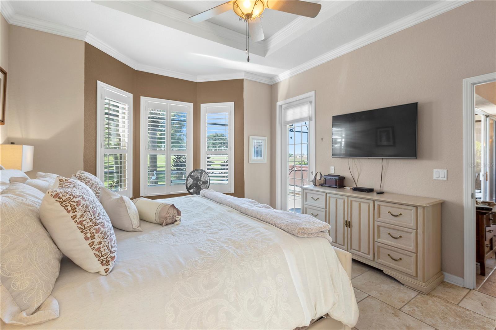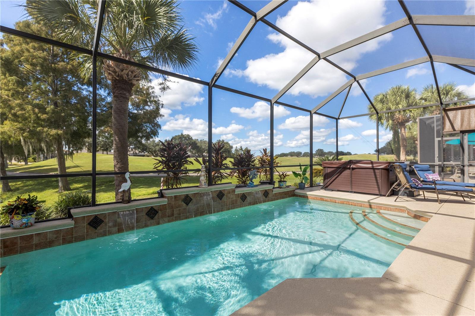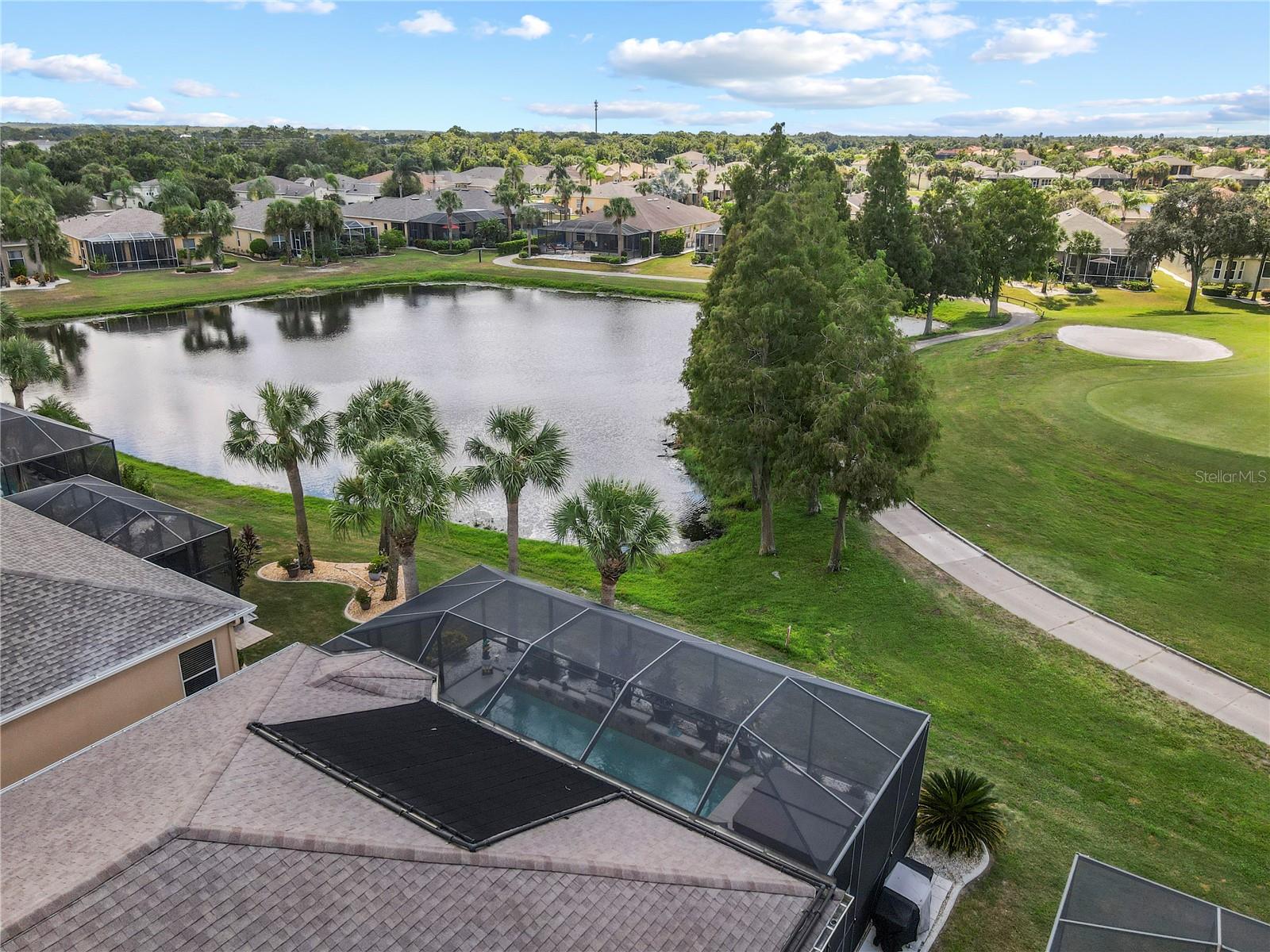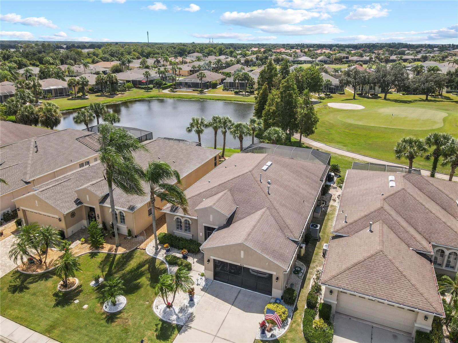 NEW ROOF with 150 MPH hurricane Shingles!! Absolutely pristine pool home with breathtaking GOLF COURSE and POND VIEWS in the exclusive Renaissance at Sun City Center, one of Florida’s top golf cart communities. This elegant 2-bedroom, 2-bathroom home with an oversized office/den sits on a PREMIUM LOT and embodies the best of Florida living. The expansive great room is a blend of thoughtful design and refined details, featuring 7-INCH CROWN MOLDING, PLANTATION SHUTTERS, and HIGH CEILINGS. POCKET SLIDERS lead to a HEATED SALTWATER POOL and lanai with PANORAMIC VIEWS of the golf course and pond, creating a seamless indoor-outdoor experience. Recent updates include a 2024 ELECTRIC POOL HEATER (93,000 BTU), POOL PUMP, CONTROL PANEL, and SALT GENERATOR (2020), ensuring low-maintenance operation. The chef’s kitchen boasts GRANITE COUNTERTOPS, 42-INCH CABINETRY, CUSTOM TILE ACCENTS, and a LARGE ISLAND, ideal for hosting gatherings or enjoying casual meals in the light-filled nook overlooking tranquil water views. The home is also PIPED FOR NATURAL GAS, offering energy-efficient options throughout. The primary suite is a serene retreat, featuring a BAY WINDOW with pond views, a WALK-IN CLOSET, and a SPA-LIKE ENSUITE with DOUBLE VANITIES, a HYDRO SPA/MASSAGE TUB, and a WALK-IN SHOWER. Guests will enjoy their own well-appointed bedroom, while the OVERSIZED OFFICE/DEN, easily converted into a third bedroom, is conveniently located near the guest bathroom. This home also includes SURGE PROTECTION, a living room TRAY CEILING with REMOTE-CONTROLLED RECESSED LIGHTING, BOSE SURROUND SOUND, and OUTDOOR PATIO SPEAKERS. NEUTRAL CERAMIC TILE FLOORING runs throughout, while a 6-YEAR-OLD HVAC SYSTEM with GAS HEATING ensures year-round comfort. The TANDEM GARAGE comes equipped with a SCREEN SHADE for added storage or golf cart parking, and the property features a GUARDIAN SECURITY SYSTEM with cameras and a 4-ZONE SPRINKLER SYSTEM to maintain the beautifully landscaped yard. As a Renaissance resident, you’ll enjoy exclusive access to CLUB RENAISSANCE, a Mediterranean-style clubhouse offering a RESORT-STYLE POOL, FULL-SERVICE SPA, FITNESS CENTER, and FINE DINING. This golf cart-friendly community promotes an active, social lifestyle with shopping, dining, heated pools, sports complexes, and over 150 social clubs just a short ride away. Whether relocating from out of state or seeking the perfect Florida home, this property offers unmatched convenience, comfort, and resort-style living. Located minutes from TAMPA, SARASOTA, and ST. PETERSBURG, you'll have easy access to Florida’s best beaches, entertainment, and cultural attractions. Schedule your private tour today and experience the lifestyle of Renaissance at Sun City Center.