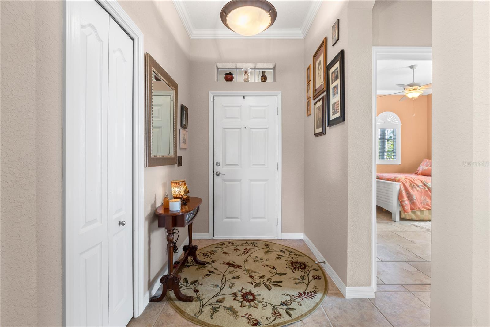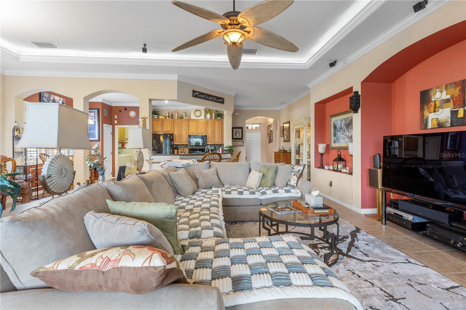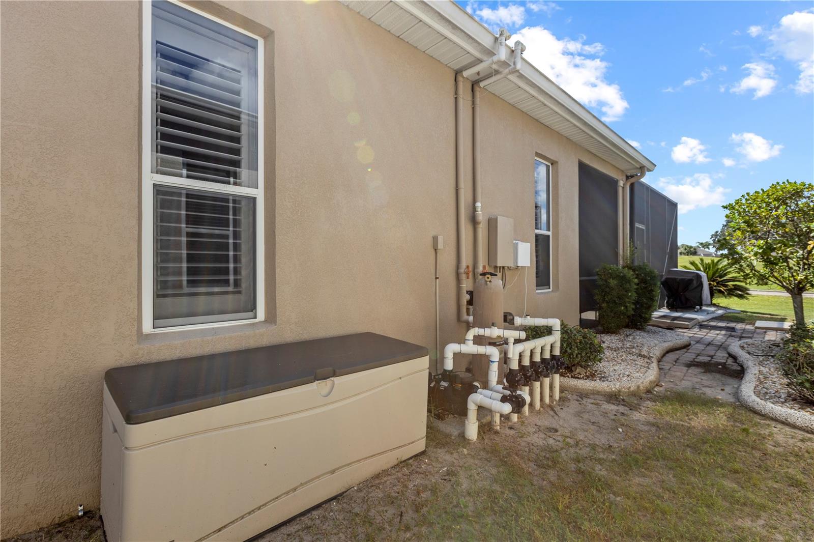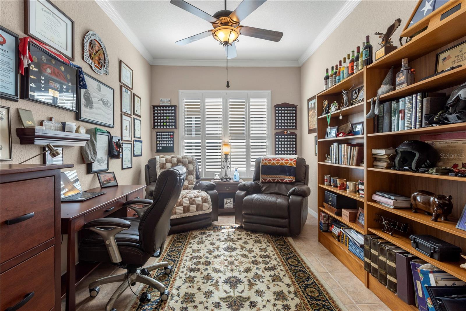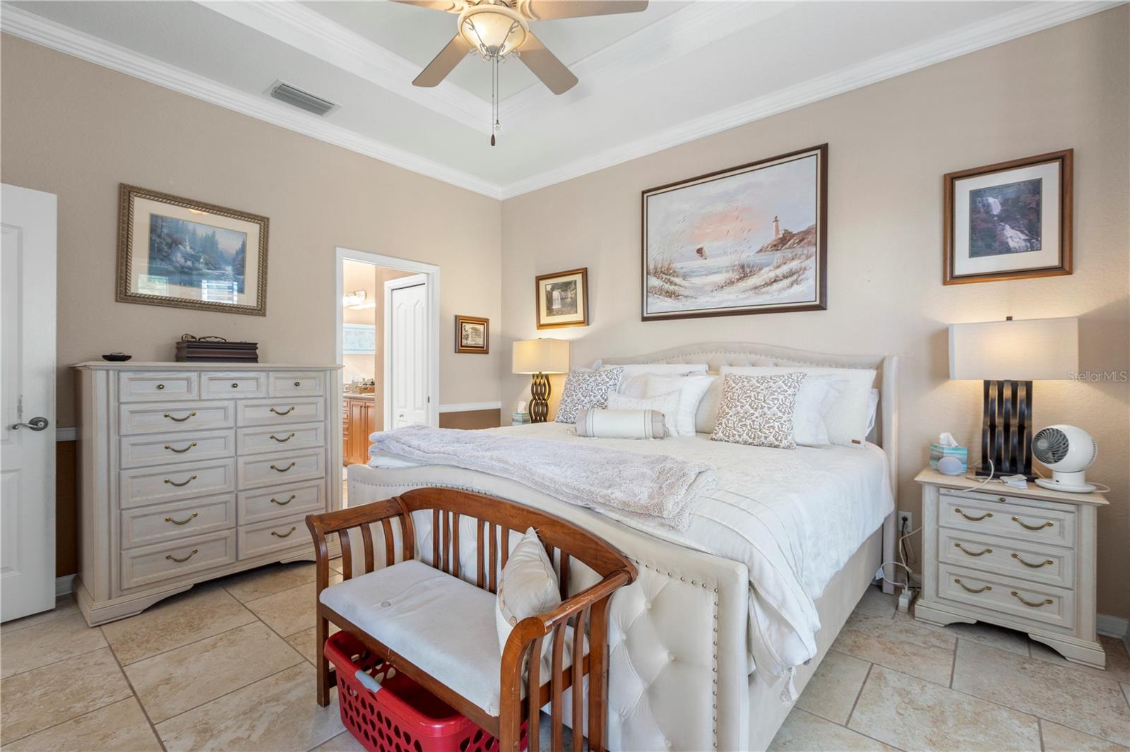 NEW ROOF with 150 MPH hurricane Shingles!! Absolutely pristine pool home with breathtaking GOLF COURSE and POND VIEWS in the exclusive Renaissance at Sun City Center, one of Florida’s top golf cart communities. This elegant 2-bedroom, 2-bathroom home with an oversized office/den sits on a PREMIUM LOT and embodies the best of Florida living. The expansive great room is a blend of thoughtful design and refined details, featuring 7-INCH CROWN MOLDING, PLANTATION SHUTTERS, and HIGH CEILINGS. POCKET SLIDERS lead to a HEATED SALTWATER POOL and lanai with PANORAMIC VIEWS of the golf course and pond, creating a seamless indoor-outdoor experience. Recent updates include a 2024 ELECTRIC POOL HEATER (93,000 BTU), POOL PUMP, CONTROL PANEL, and SALT GENERATOR (2020), ensuring low-maintenance operation. The chef’s kitchen boasts GRANITE COUNTERTOPS, 42-INCH CABINETRY, CUSTOM TILE ACCENTS, and a LARGE ISLAND, ideal for hosting gatherings or enjoying casual meals in the light-filled nook overlooking tranquil water views. The home is also PIPED FOR NATURAL GAS, offering energy-efficient options throughout. The primary suite is a serene retreat, featuring a BAY WINDOW with pond views, a WALK-IN CLOSET, and a SPA-LIKE ENSUITE with DOUBLE VANITIES, a HYDRO SPA/MASSAGE TUB, and a WALK-IN SHOWER. Guests will enjoy their own well-appointed bedroom, while the OVERSIZED OFFICE/DEN, easily converted into a third bedroom, is conveniently located near the guest bathroom. This home also includes SURGE PROTECTION, a living room TRAY CEILING with REMOTE-CONTROLLED RECESSED LIGHTING, BOSE SURROUND SOUND, and OUTDOOR PATIO SPEAKERS. NEUTRAL CERAMIC TILE FLOORING runs throughout, while a 6-YEAR-OLD HVAC SYSTEM with GAS HEATING ensures year-round comfort. The TANDEM GARAGE comes equipped with a SCREEN SHADE for added storage or golf cart parking, and the property features a GUARDIAN SECURITY SYSTEM with cameras and a 4-ZONE SPRINKLER SYSTEM to maintain the beautifully landscaped yard. As a Renaissance resident, you’ll enjoy exclusive access to CLUB RENAISSANCE, a Mediterranean-style clubhouse offering a RESORT-STYLE POOL, FULL-SERVICE SPA, FITNESS CENTER, and FINE DINING. This golf cart-friendly community promotes an active, social lifestyle with shopping, dining, heated pools, sports complexes, and over 150 social clubs just a short ride away. Whether relocating from out of state or seeking the perfect Florida home, this property offers unmatched convenience, comfort, and resort-style living. Located minutes from TAMPA, SARASOTA, and ST. PETERSBURG, you'll have easy access to Florida’s best beaches, entertainment, and cultural attractions. Schedule your private tour today and experience the lifestyle of Renaissance at Sun City Center.