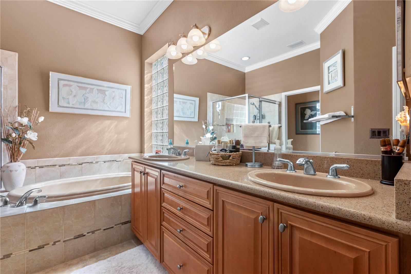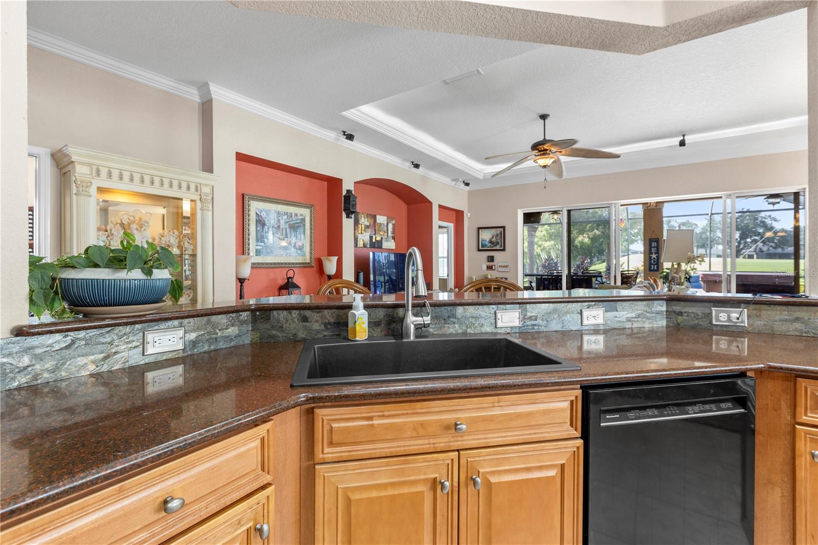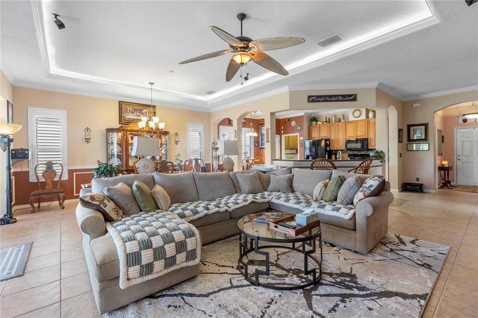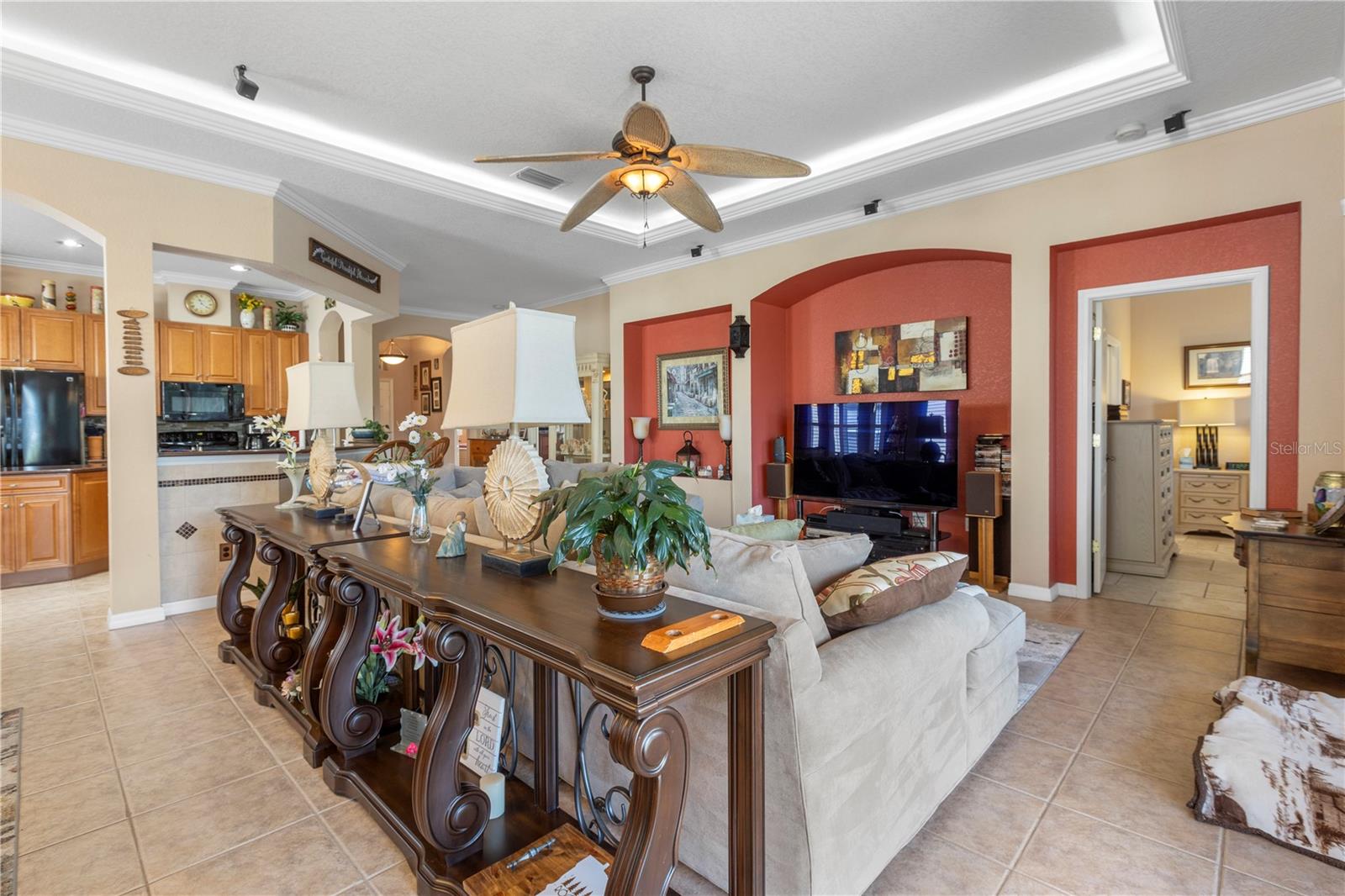 NEW ROOF with 150 MPH hurricane Shingles!! Absolutely pristine pool home with breathtaking GOLF COURSE and POND VIEWS in the exclusive Renaissance at Sun City Center, one of Florida’s top golf cart communities. This elegant 2-bedroom, 2-bathroom home with an oversized office/den sits on a PREMIUM LOT and embodies the best of Florida living. The expansive great room is a blend of thoughtful design and refined details, featuring 7-INCH CROWN MOLDING, PLANTATION SHUTTERS, and HIGH CEILINGS. POCKET SLIDERS lead to a HEATED SALTWATER POOL and lanai with PANORAMIC VIEWS of the golf course and pond, creating a seamless indoor-outdoor experience. Recent updates include a 2024 ELECTRIC POOL HEATER (93,000 BTU), POOL PUMP, CONTROL PANEL, and SALT GENERATOR (2020), ensuring low-maintenance operation. The chef’s kitchen boasts GRANITE COUNTERTOPS, 42-INCH CABINETRY, CUSTOM TILE ACCENTS, and a LARGE ISLAND, ideal for hosting gatherings or enjoying casual meals in the light-filled nook overlooking tranquil water views. The home is also PIPED FOR NATURAL GAS, offering energy-efficient options throughout. The primary suite is a serene retreat, featuring a BAY WINDOW with pond views, a WALK-IN CLOSET, and a SPA-LIKE ENSUITE with DOUBLE VANITIES, a HYDRO SPA/MASSAGE TUB, and a WALK-IN SHOWER. Guests will enjoy their own well-appointed bedroom, while the OVERSIZED OFFICE/DEN, easily converted into a third bedroom, is conveniently located near the guest bathroom. This home also includes SURGE PROTECTION, a living room TRAY CEILING with REMOTE-CONTROLLED RECESSED LIGHTING, BOSE SURROUND SOUND, and OUTDOOR PATIO SPEAKERS. NEUTRAL CERAMIC TILE FLOORING runs throughout, while a 6-YEAR-OLD HVAC SYSTEM with GAS HEATING ensures year-round comfort. The TANDEM GARAGE comes equipped with a SCREEN SHADE for added storage or golf cart parking, and the property features a GUARDIAN SECURITY SYSTEM with cameras and a 4-ZONE SPRINKLER SYSTEM to maintain the beautifully landscaped yard. As a Renaissance resident, you’ll enjoy exclusive access to CLUB RENAISSANCE, a Mediterranean-style clubhouse offering a RESORT-STYLE POOL, FULL-SERVICE SPA, FITNESS CENTER, and FINE DINING. This golf cart-friendly community promotes an active, social lifestyle with shopping, dining, heated pools, sports complexes, and over 150 social clubs just a short ride away. Whether relocating from out of state or seeking the perfect Florida home, this property offers unmatched convenience, comfort, and resort-style living. Located minutes from TAMPA, SARASOTA, and ST. PETERSBURG, you'll have easy access to Florida’s best beaches, entertainment, and cultural attractions. Schedule your private tour today and experience the lifestyle of Renaissance at Sun City Center.