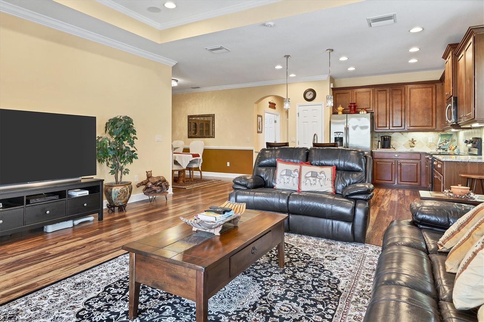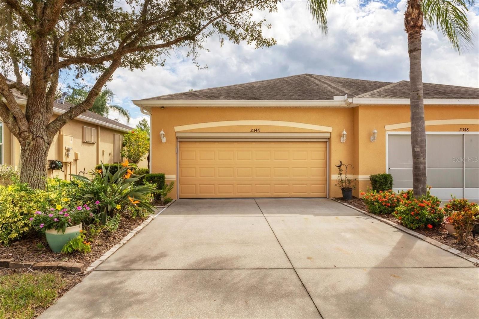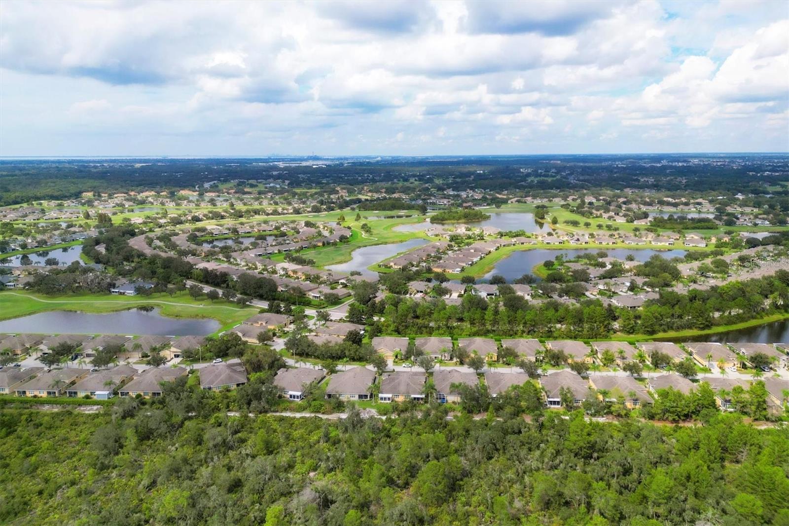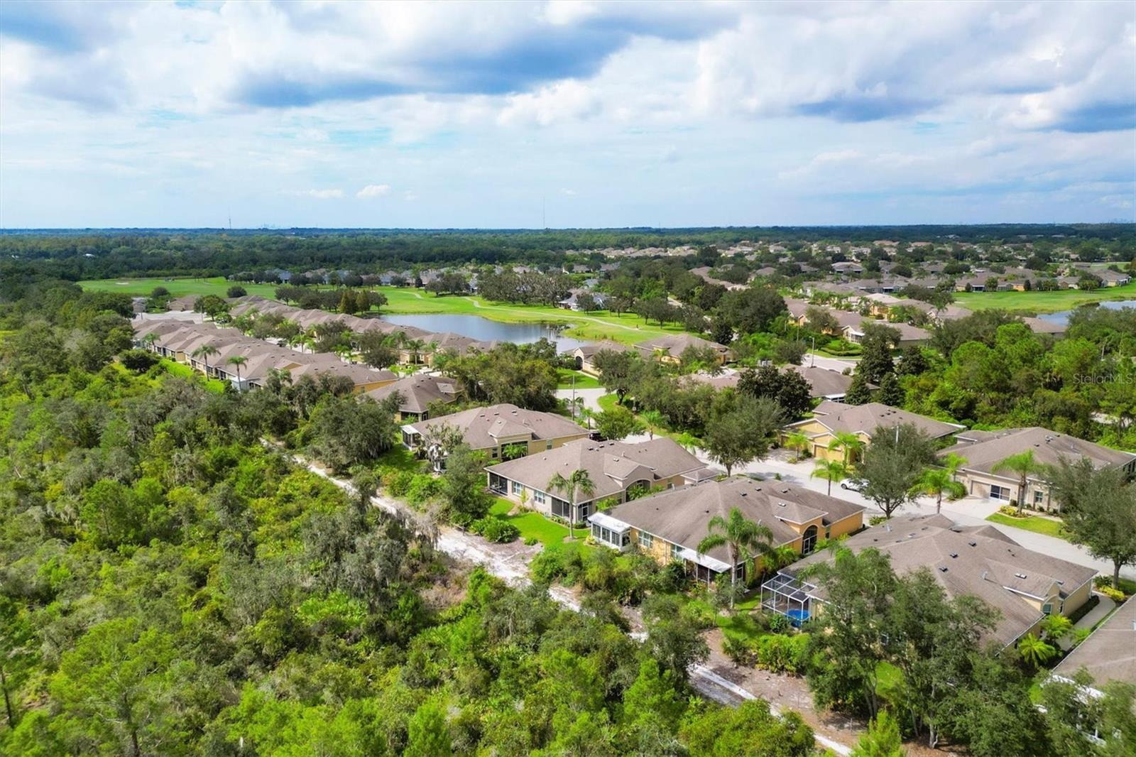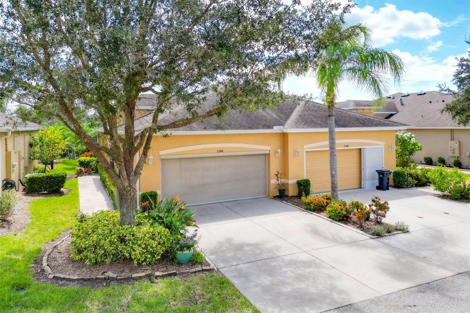 Lovely villa in the 55+ Kings Point community of Sun City Center. BRAND NEW ROOF! Situated on a dead-end street in the very back end of the community, this home abuts the Little Manatee State Park with privacy and natural beauty. This 2013 Mahogany model has high ceilings, crown moulding, knock-down ceilings, recessed lighting, granite countertops, and is completely carpet-free! Enter the front door through a screen enclosure into the stunning foyer. The chandelier, crown moulding, transom window, and high arched doorway welcome you. Straight ahead, double doors open to a den illuminated by a solatube. To the left, the open concept kitchen/living room and dining room await you. The dining room nook sparkles with chandelier and wainscoting. The kitchen boasts wood cabinetry with pull outs, under cabinet lighting, granite countertops, tile backsplash, island with sink and breakfast bar seating, recessed and pendant lighting overhead, and stainless steel appliances. Ahead, the living room sports a tray ceiling, ceiling fan, beautiful plantation shutters and a peaceful view through the sliders of the Little Manatee State Park conservancy. Pass through the sliders to a spacious screened lanai. Lanai is tiled and has a ceiling fan for comfort and practicality. The primary bedroom has plantation shutters and a view of the conservancy. Overhead, is a tray ceiling and fan. Continue to the primary ensuite bathroom which has tall vanity, dual sinks, granite countertop, walk-in shower, and private toilet room. The bathroom opens to a good-sized primary walk-in closet. Cross over to second bedroom on the opposite end of the home. Find a comfortable space with built-in closet, overhead lighted fan, and plantation shutters. Move just down the hall to find a linen closet outside a second bathroom. The guest bath has tall vanity, granite counter, and tiled shower over tub area. On this end, find the nice-size laundry room with plenty of overhead cabinetry. Washer and dryer included! Now, enter the two car garage. You see an epoxy floor, overhead storage, a utility sink, and an extra refrigerator (included). The garage space is enhanced with the inclusion of an overhead automatic screen door. Think of how versatile this space is! If all that weren't enough, this property also has a Platinum KPW warranty in place. That means no worries about a/c, water heater, or appliances. They are covered! KPW can be transferred to new owner. All exterior paint, roofing, lawn, landscaping, irrigation, roads, recreational facilities, restaurant, cafe and clubhouses are maintained by the community. One monthly fee gets you all that PLUS cable tv, internet, and water. Explore the wide variety of cubs and activities which have nominal annual fees. Pickleball, cornhole, tennis, lawn bowling, swimming, model trains, art, dance, theater, book club, bridge, mahjong, travel clubs, mini-bus tours, golf .....and so much more! Don't let this time in your life pass you by. Come and enjoy a maintenance-free life!