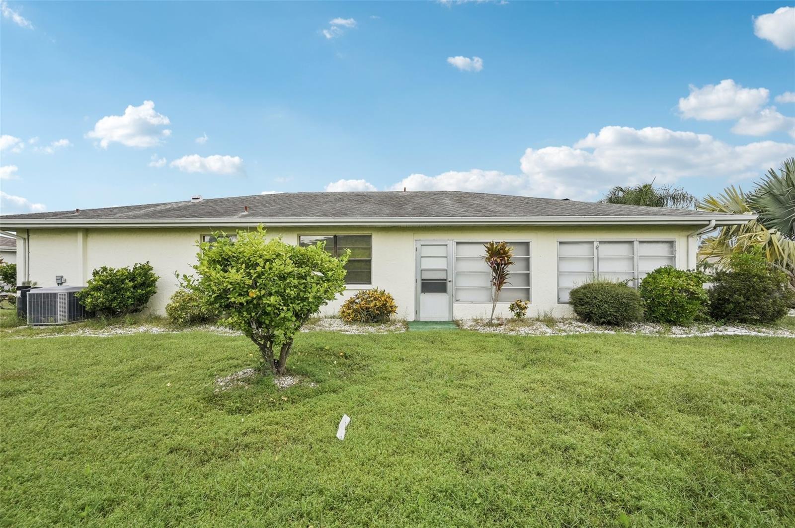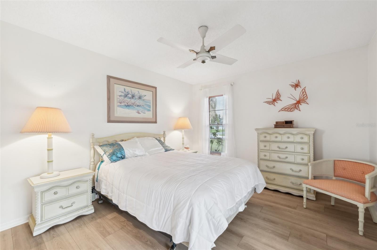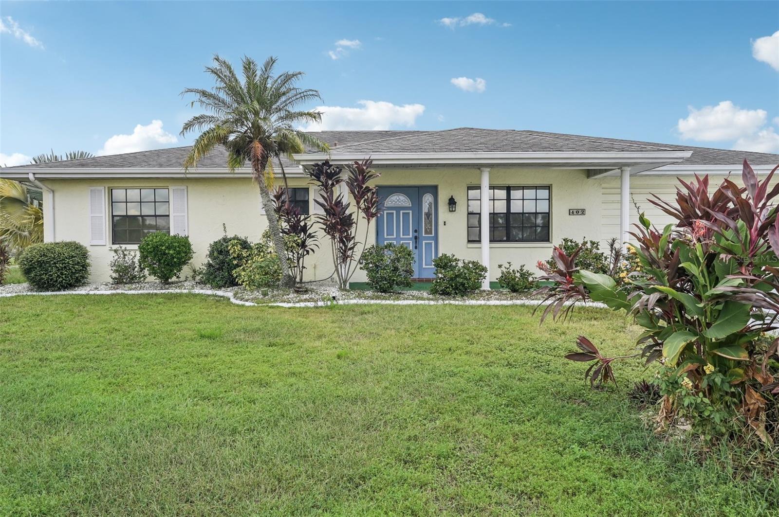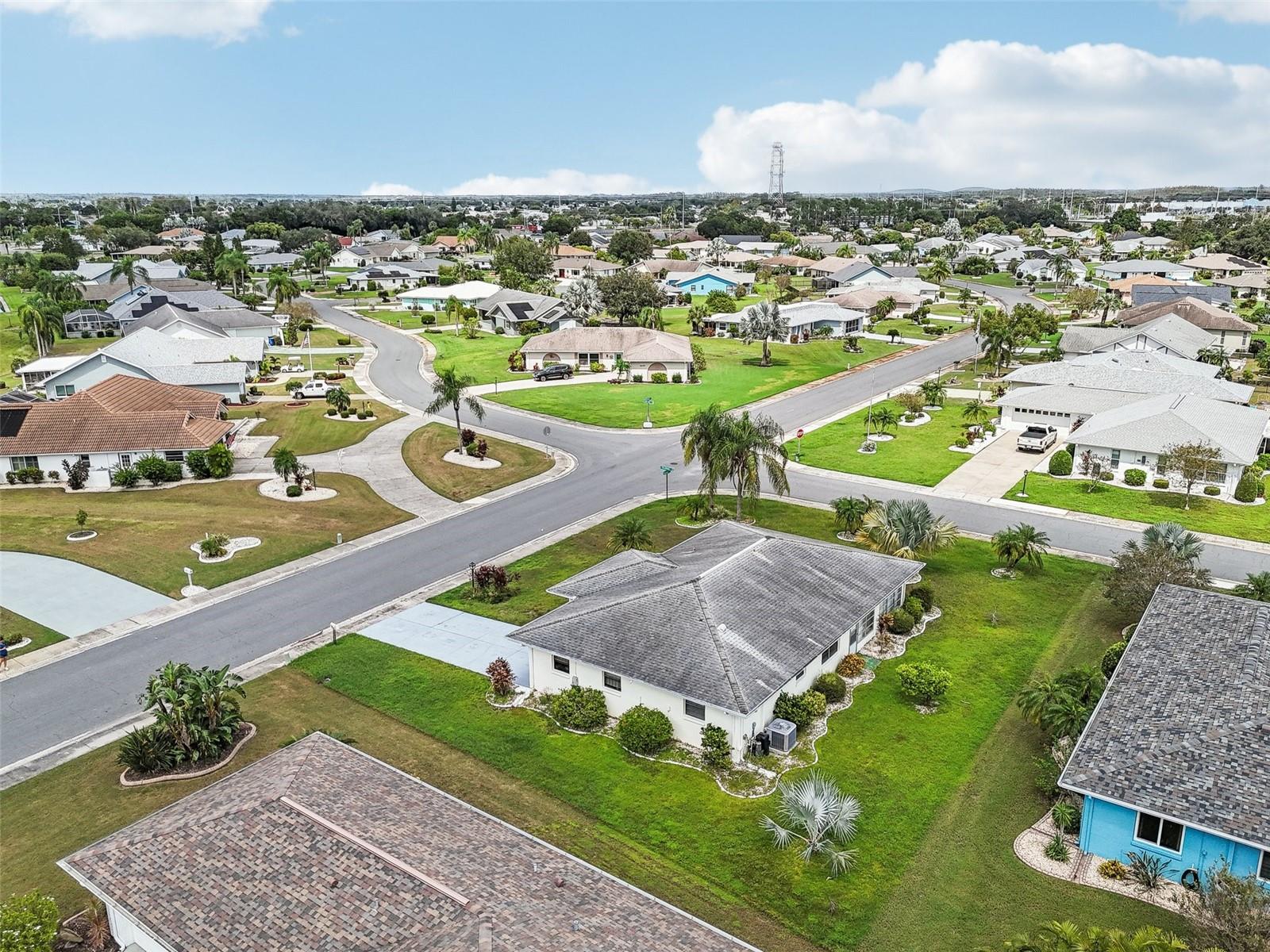 This 2-bedroom, 2-bathroom, 1,404 sq. ft. home is located in the desirable St. Andrews neighborhood of 55+ Sun City Center. With its large lot and low HOA fees, this property offers plenty of potential for comfortable living in a well-established community. As you approach, you'll notice the covered entryway and open front porch, perfect for enjoying the Florida weather. The home also features gutters and downspouts to help manage rainwater. Inside, the living room flows into the dining room, with laminate flooring throughout the main areas and neutral white walls that make it easy to decorate. The dining room has a large window providing lots of natural light. The eat-in kitchen offers a cozy space for casual dining. Just off the kitchen, you'll find a laundry room with additional storage cabinets and double doors to the garage, which has enough space for a car and a golf cart. The primary bedroom includes sliding doors open to an enclosed, carpeted lanai—extra-large and ideal for entertaining or a hobby room. The second bedroom, currently used as a den or office, provides flexibility to suit your needs. The first bathroom has a shower, while the second bathroom features a tub for relaxing. The neighborhood offers sidewalks for easy walks and is conveniently located near major grocery and department stores, making everyday errands a breeze. You’ll love Sun City Center with its amazing facilities, pools, and clubs just waiting for you to enjoy. Between Sarasota and Tampa, it is the perfect location for a convenient ride to airports, great shopping, dining, and professional entertainment. With easy access to award-winning, sandy beaches, this is the best of all worlds, but without the stress of big city life. Leave it all behind and enjoy your new life here in one of Florida’s most affordable 55 and better communities!