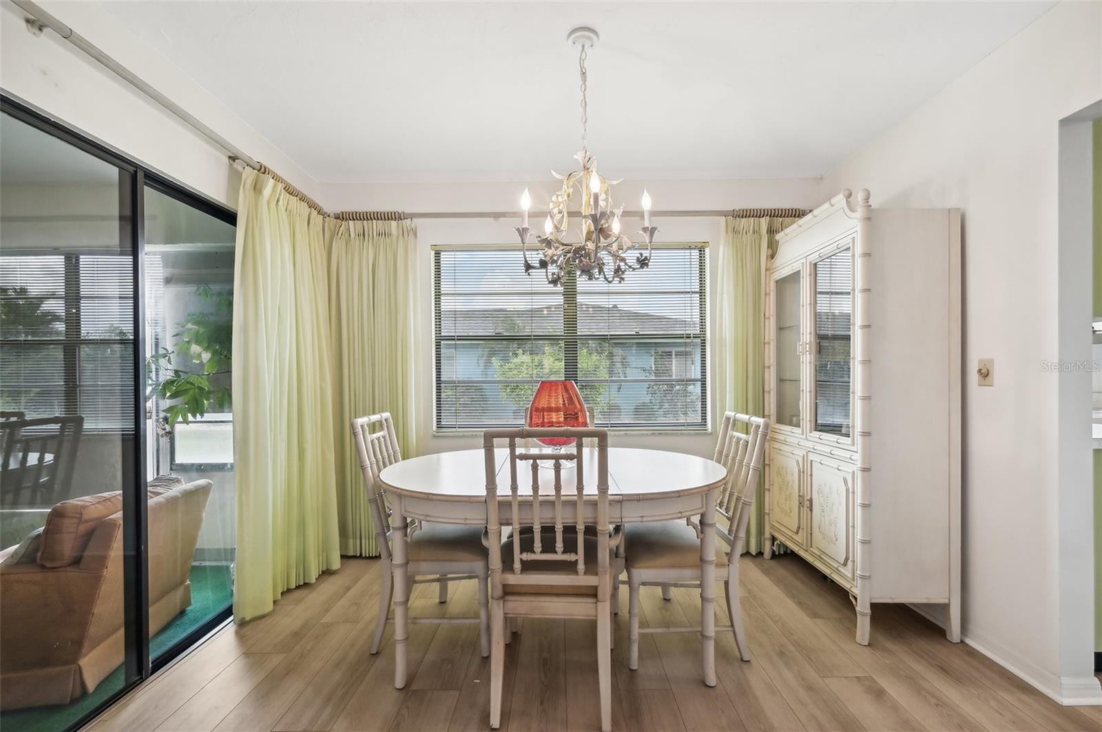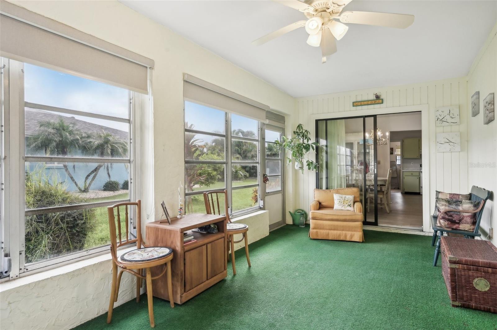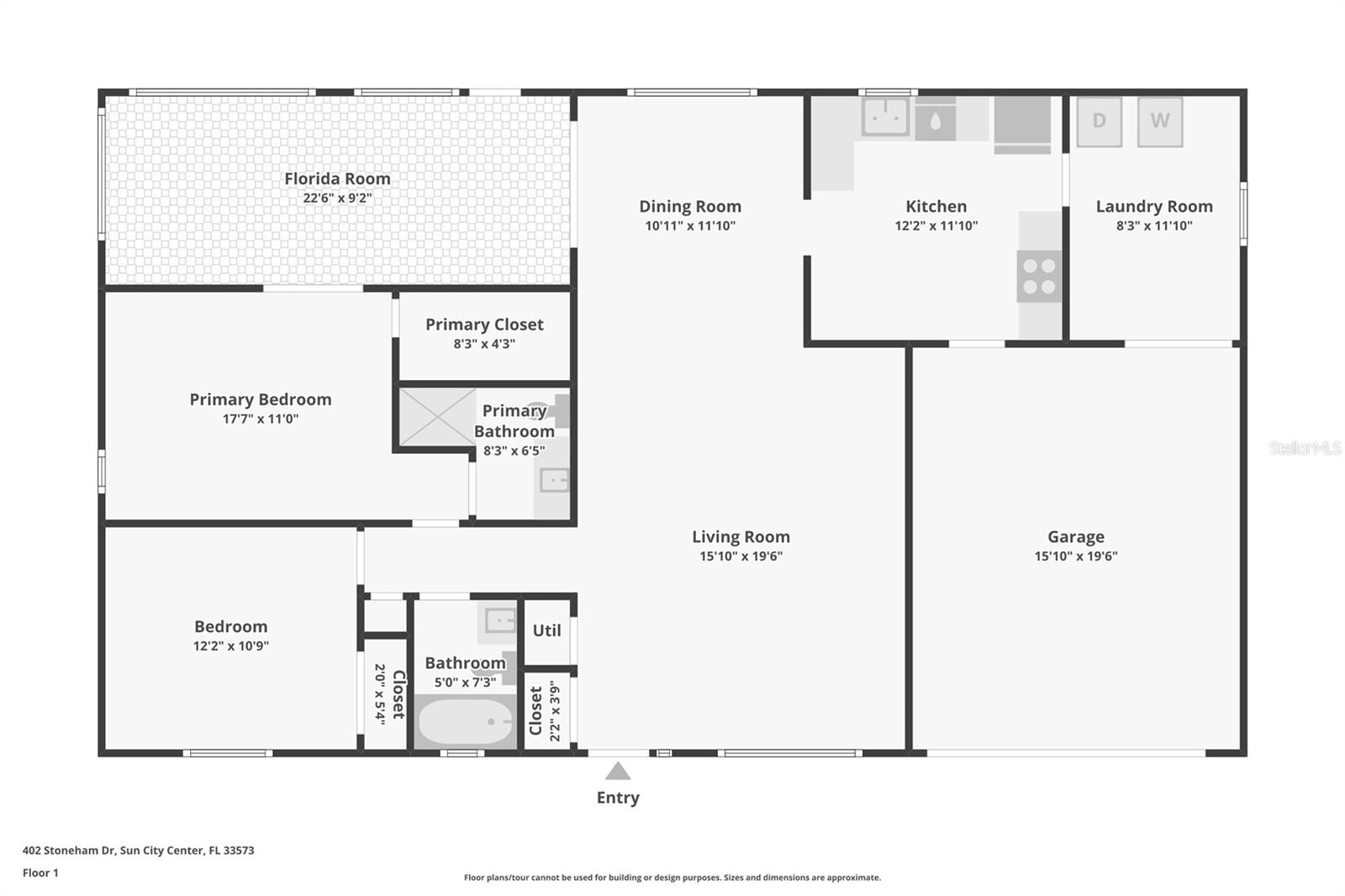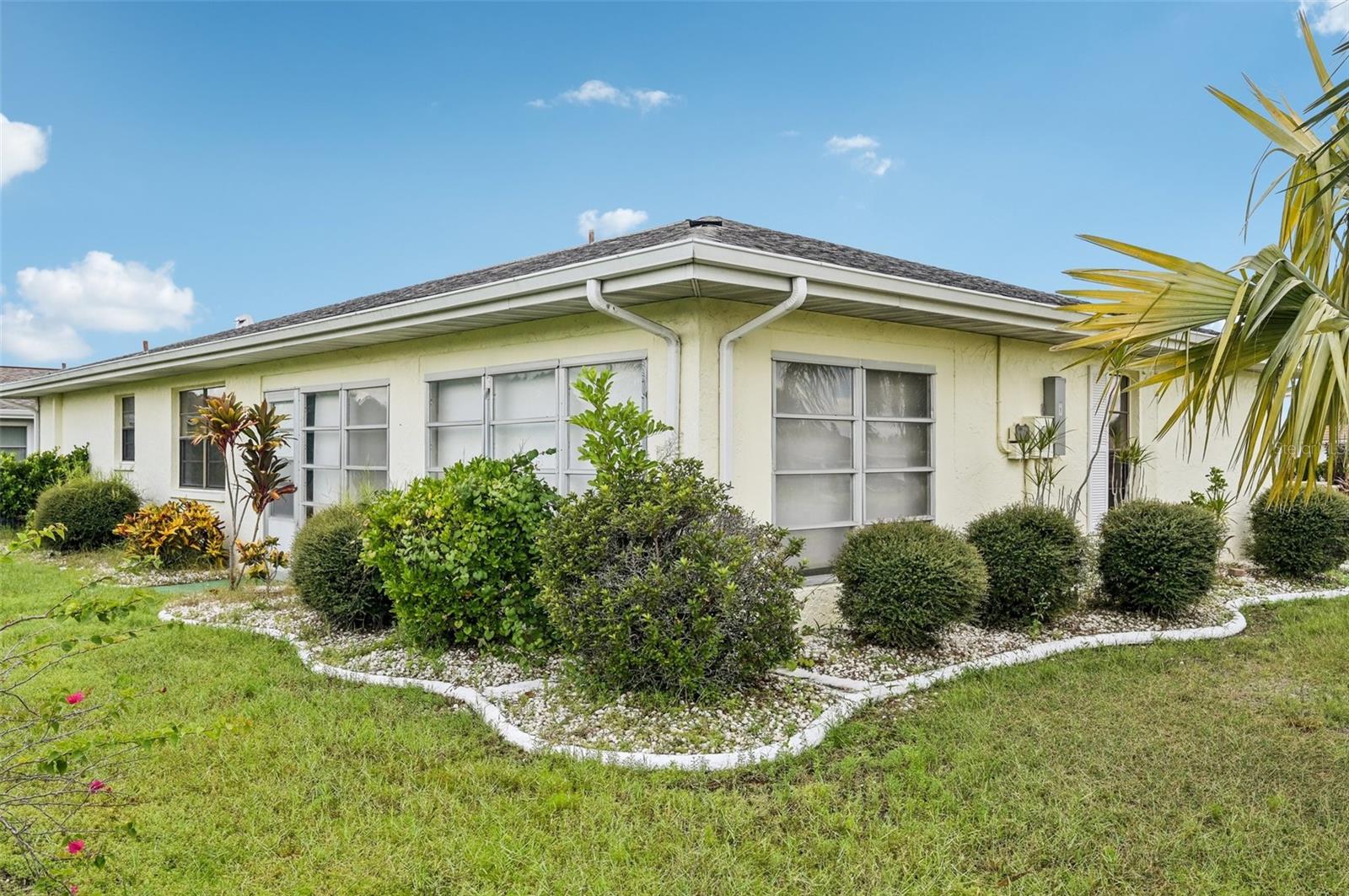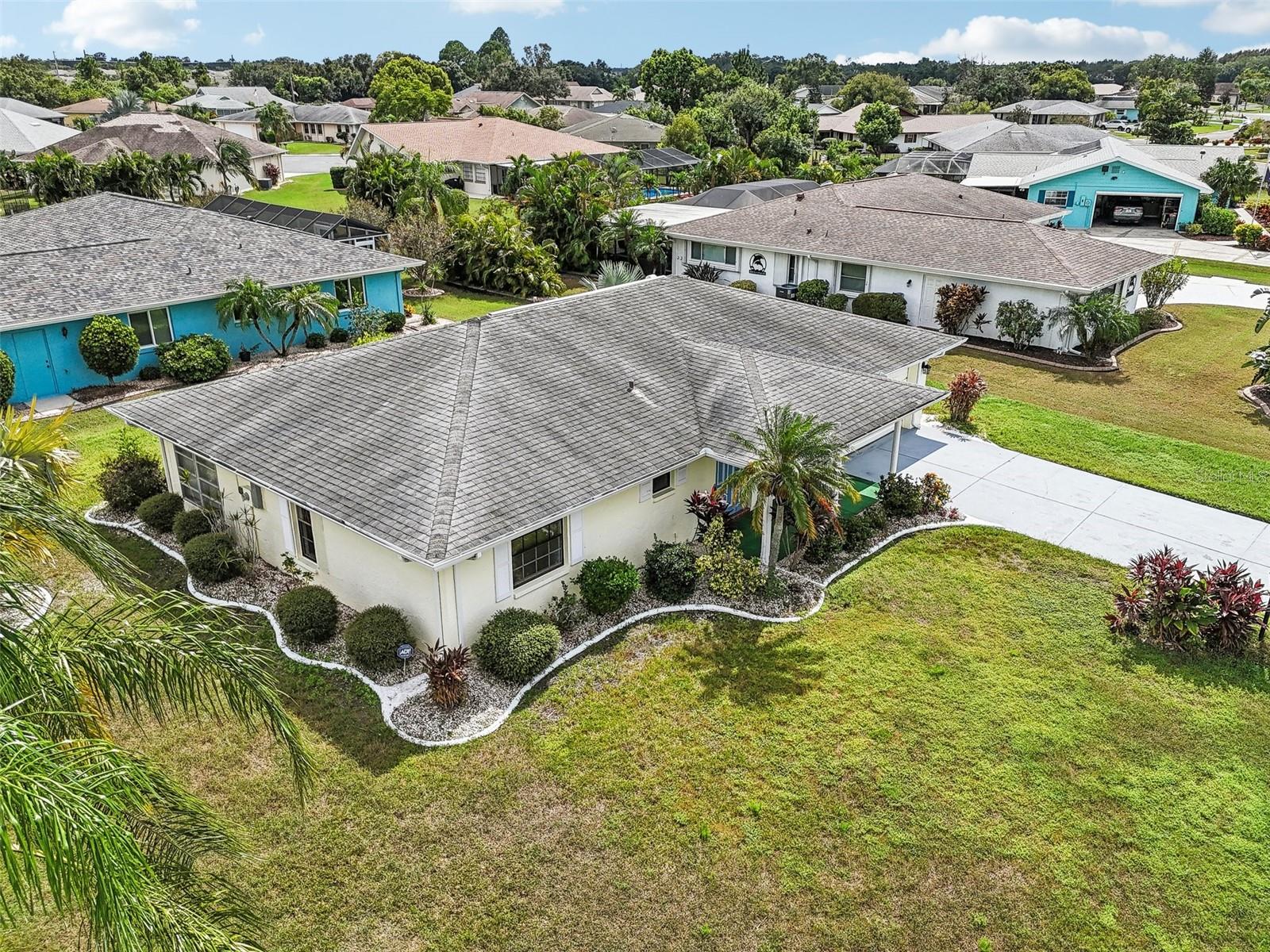 This 2-bedroom, 2-bathroom, 1,404 sq. ft. home is located in the desirable St. Andrews neighborhood of 55+ Sun City Center. With its large lot and low HOA fees, this property offers plenty of potential for comfortable living in a well-established community. As you approach, you'll notice the covered entryway and open front porch, perfect for enjoying the Florida weather. The home also features gutters and downspouts to help manage rainwater. Inside, the living room flows into the dining room, with laminate flooring throughout the main areas and neutral white walls that make it easy to decorate. The dining room has a large window providing lots of natural light. The eat-in kitchen offers a cozy space for casual dining. Just off the kitchen, you'll find a laundry room with additional storage cabinets and double doors to the garage, which has enough space for a car and a golf cart. The primary bedroom includes sliding doors open to an enclosed, carpeted lanai—extra-large and ideal for entertaining or a hobby room. The second bedroom, currently used as a den or office, provides flexibility to suit your needs. The first bathroom has a shower, while the second bathroom features a tub for relaxing. The neighborhood offers sidewalks for easy walks and is conveniently located near major grocery and department stores, making everyday errands a breeze. You’ll love Sun City Center with its amazing facilities, pools, and clubs just waiting for you to enjoy. Between Sarasota and Tampa, it is the perfect location for a convenient ride to airports, great shopping, dining, and professional entertainment. With easy access to award-winning, sandy beaches, this is the best of all worlds, but without the stress of big city life. Leave it all behind and enjoy your new life here in one of Florida’s most affordable 55 and better communities!