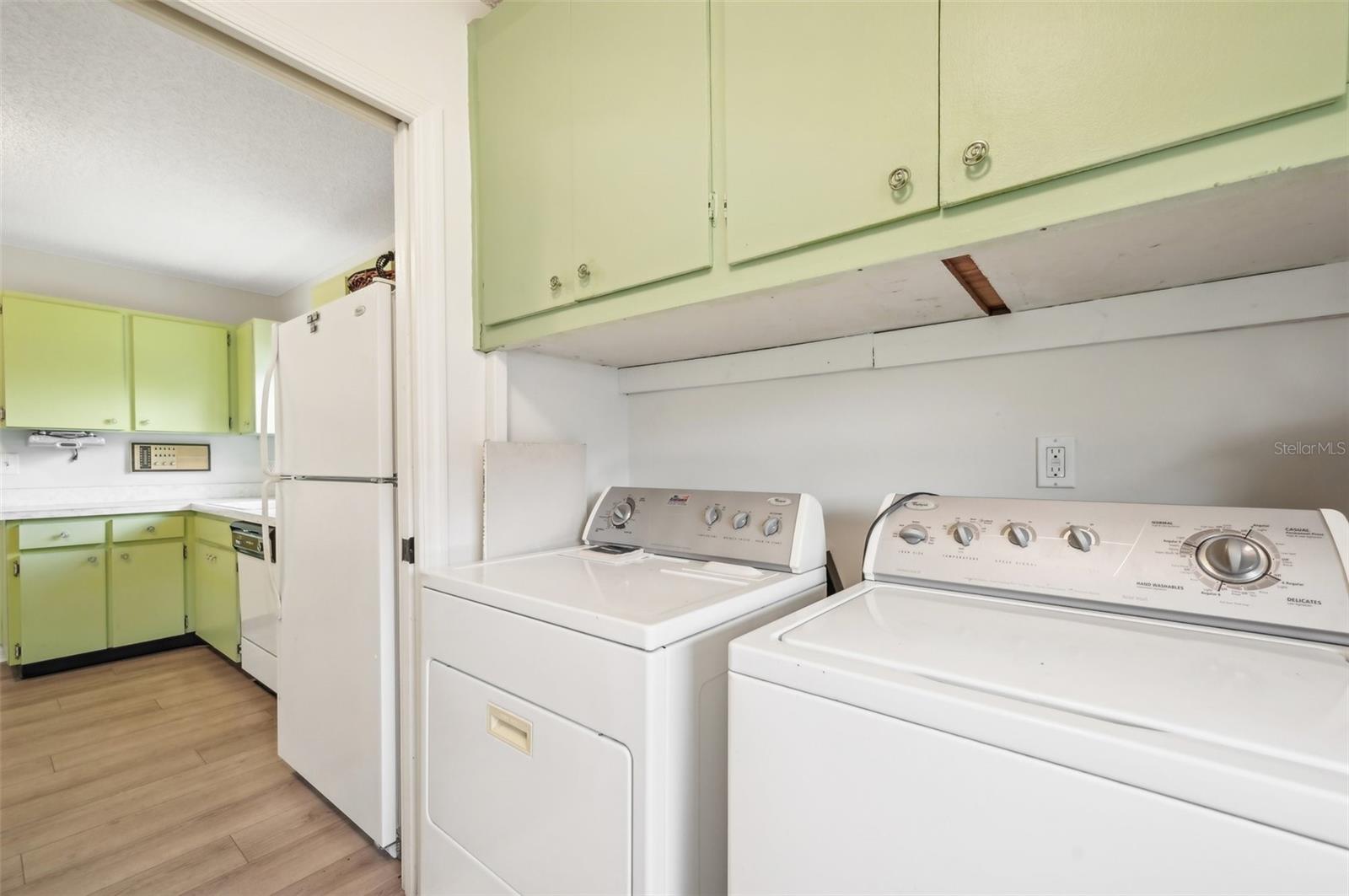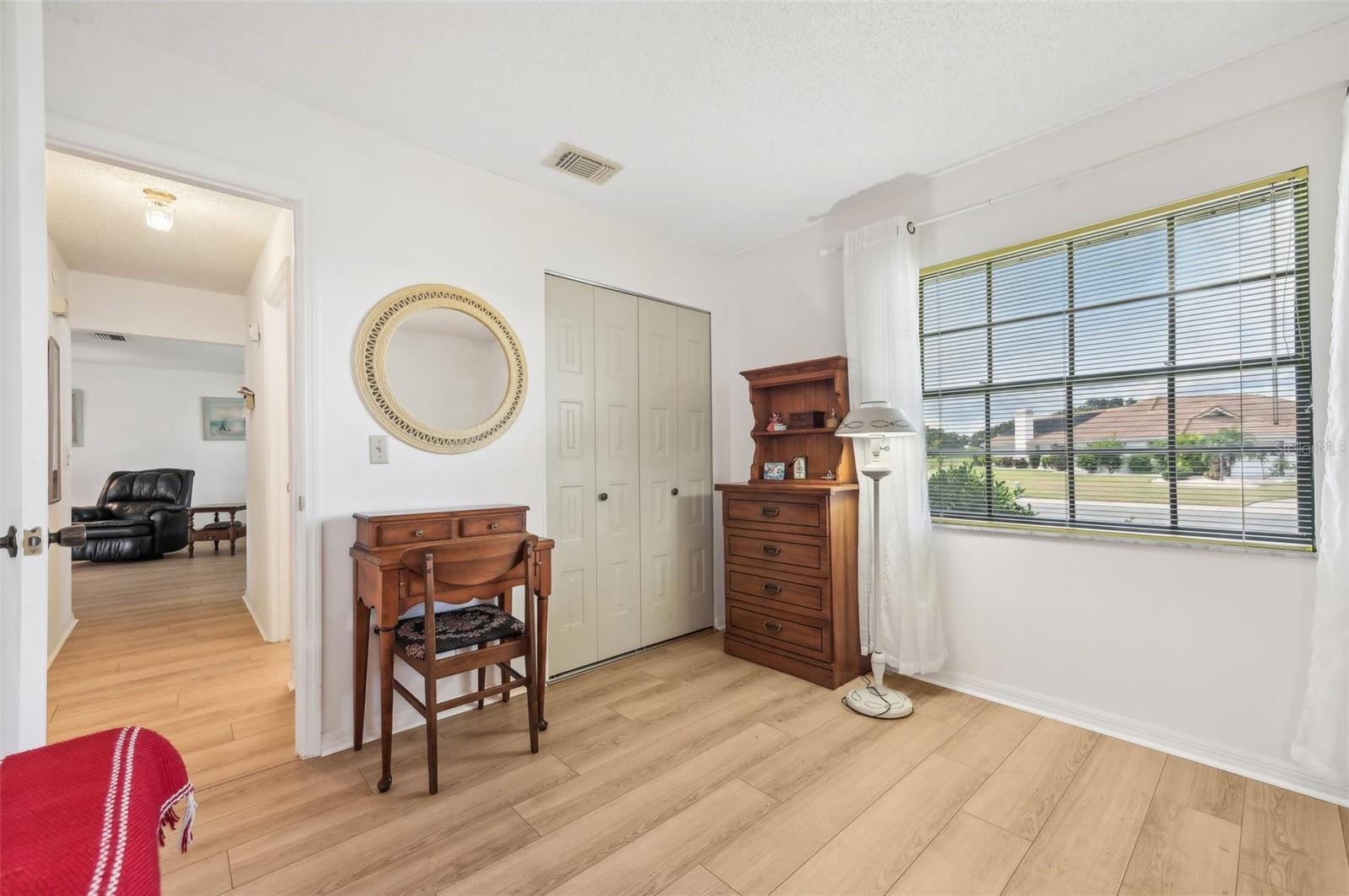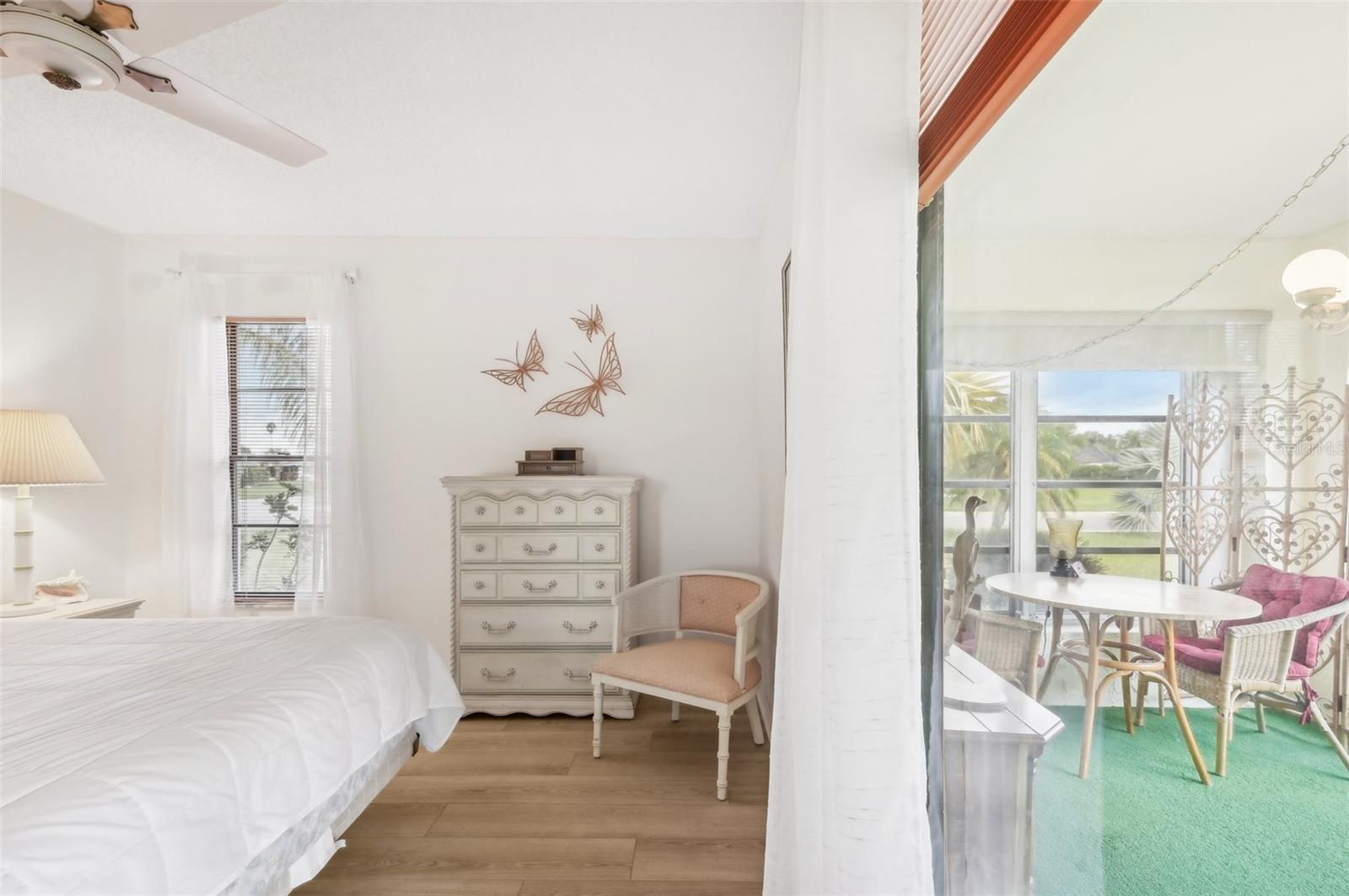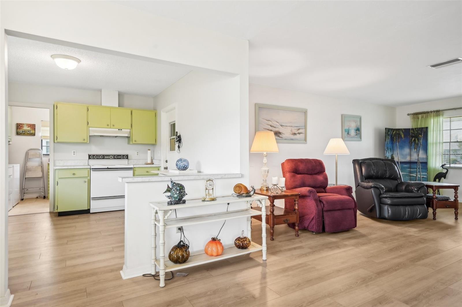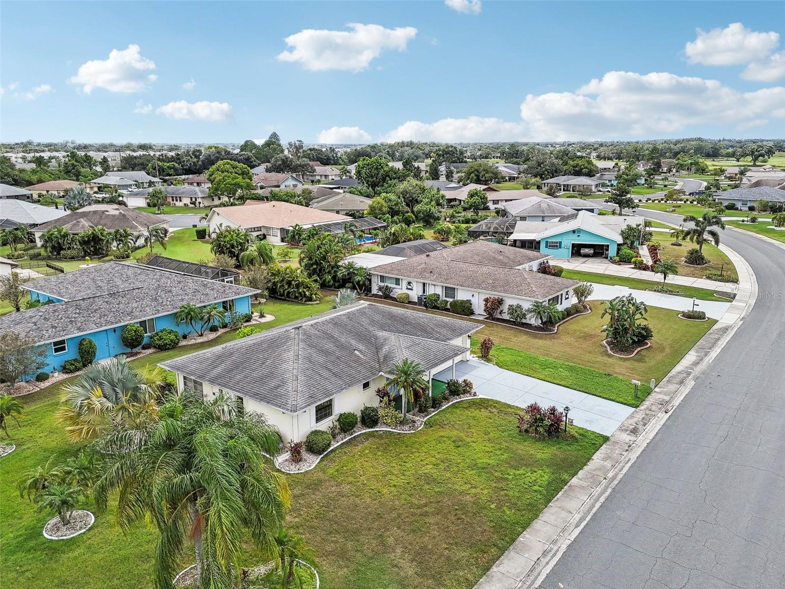 This 2-bedroom, 2-bathroom, 1,404 sq. ft. home is located in the desirable St. Andrews neighborhood of 55+ Sun City Center. With its large lot and low HOA fees, this property offers plenty of potential for comfortable living in a well-established community. As you approach, you'll notice the covered entryway and open front porch, perfect for enjoying the Florida weather. The home also features gutters and downspouts to help manage rainwater. Inside, the living room flows into the dining room, with laminate flooring throughout the main areas and neutral white walls that make it easy to decorate. The dining room has a large window providing lots of natural light. The eat-in kitchen offers a cozy space for casual dining. Just off the kitchen, you'll find a laundry room with additional storage cabinets and double doors to the garage, which has enough space for a car and a golf cart. The primary bedroom includes sliding doors open to an enclosed, carpeted lanai—extra-large and ideal for entertaining or a hobby room. The second bedroom, currently used as a den or office, provides flexibility to suit your needs. The first bathroom has a shower, while the second bathroom features a tub for relaxing. The neighborhood offers sidewalks for easy walks and is conveniently located near major grocery and department stores, making everyday errands a breeze. You’ll love Sun City Center with its amazing facilities, pools, and clubs just waiting for you to enjoy. Between Sarasota and Tampa, it is the perfect location for a convenient ride to airports, great shopping, dining, and professional entertainment. With easy access to award-winning, sandy beaches, this is the best of all worlds, but without the stress of big city life. Leave it all behind and enjoy your new life here in one of Florida’s most affordable 55 and better communities!
