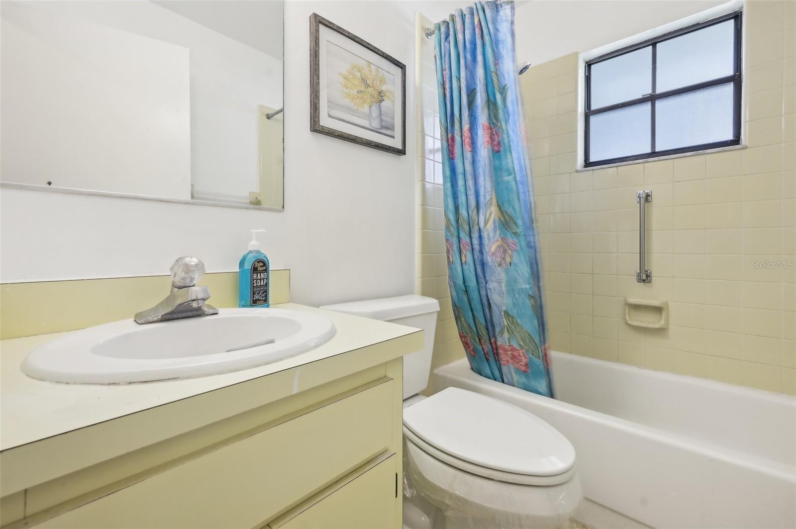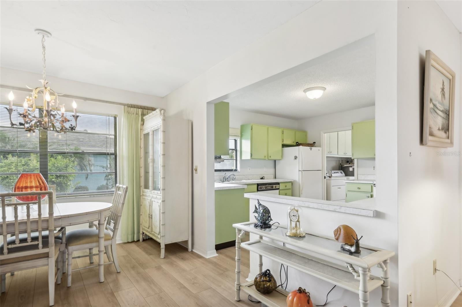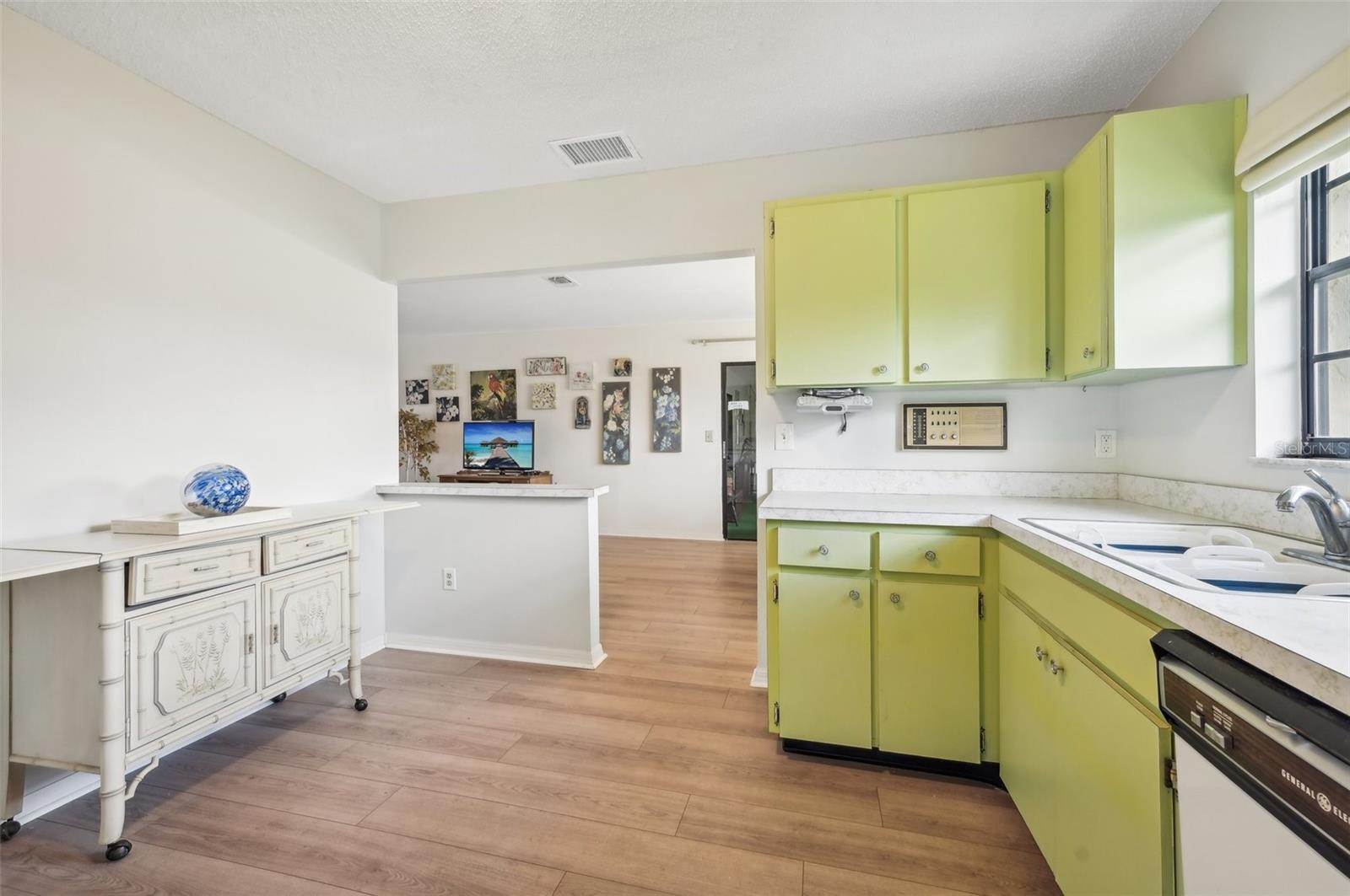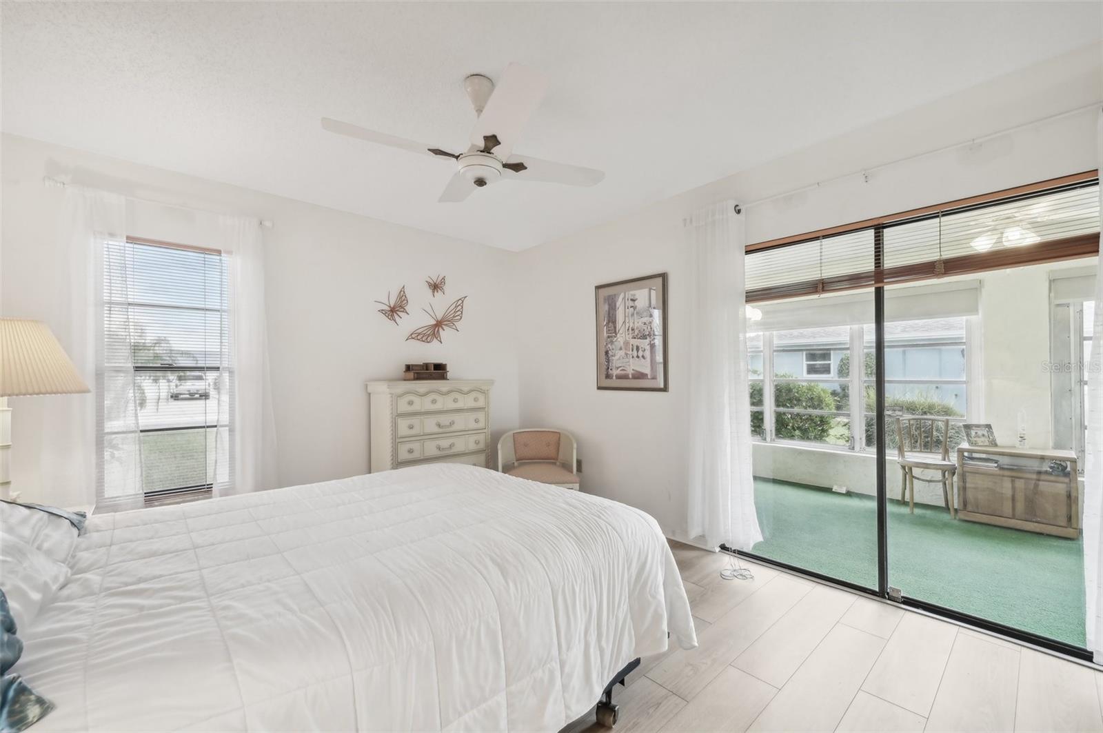 This 2-bedroom, 2-bathroom, 1,404 sq. ft. home is located in the desirable St. Andrews neighborhood of 55+ Sun City Center. With its large lot and low HOA fees, this property offers plenty of potential for comfortable living in a well-established community. As you approach, you'll notice the covered entryway and open front porch, perfect for enjoying the Florida weather. The home also features gutters and downspouts to help manage rainwater. Inside, the living room flows into the dining room, with laminate flooring throughout the main areas and neutral white walls that make it easy to decorate. The dining room has a large window providing lots of natural light. The eat-in kitchen offers a cozy space for casual dining. Just off the kitchen, you'll find a laundry room with additional storage cabinets and double doors to the garage, which has enough space for a car and a golf cart. The primary bedroom includes sliding doors open to an enclosed, carpeted lanai—extra-large and ideal for entertaining or a hobby room. The second bedroom, currently used as a den or office, provides flexibility to suit your needs. The first bathroom has a shower, while the second bathroom features a tub for relaxing. The neighborhood offers sidewalks for easy walks and is conveniently located near major grocery and department stores, making everyday errands a breeze. You’ll love Sun City Center with its amazing facilities, pools, and clubs just waiting for you to enjoy. Between Sarasota and Tampa, it is the perfect location for a convenient ride to airports, great shopping, dining, and professional entertainment. With easy access to award-winning, sandy beaches, this is the best of all worlds, but without the stress of big city life. Leave it all behind and enjoy your new life here in one of Florida’s most affordable 55 and better communities!