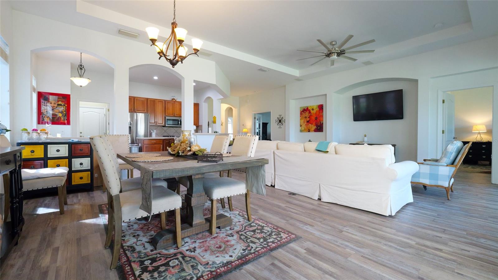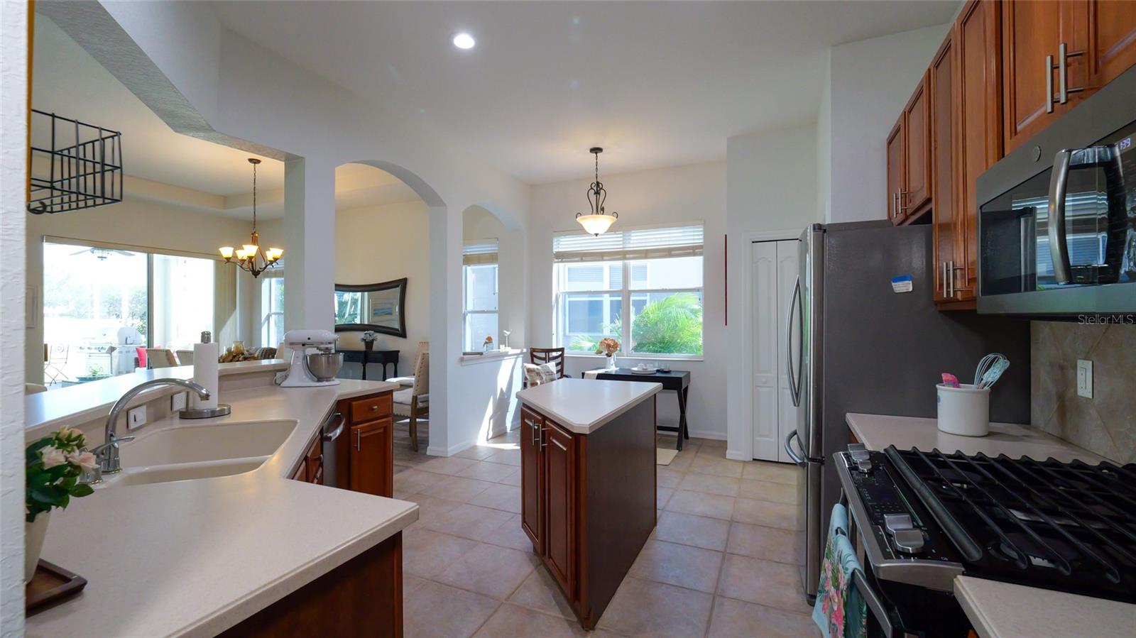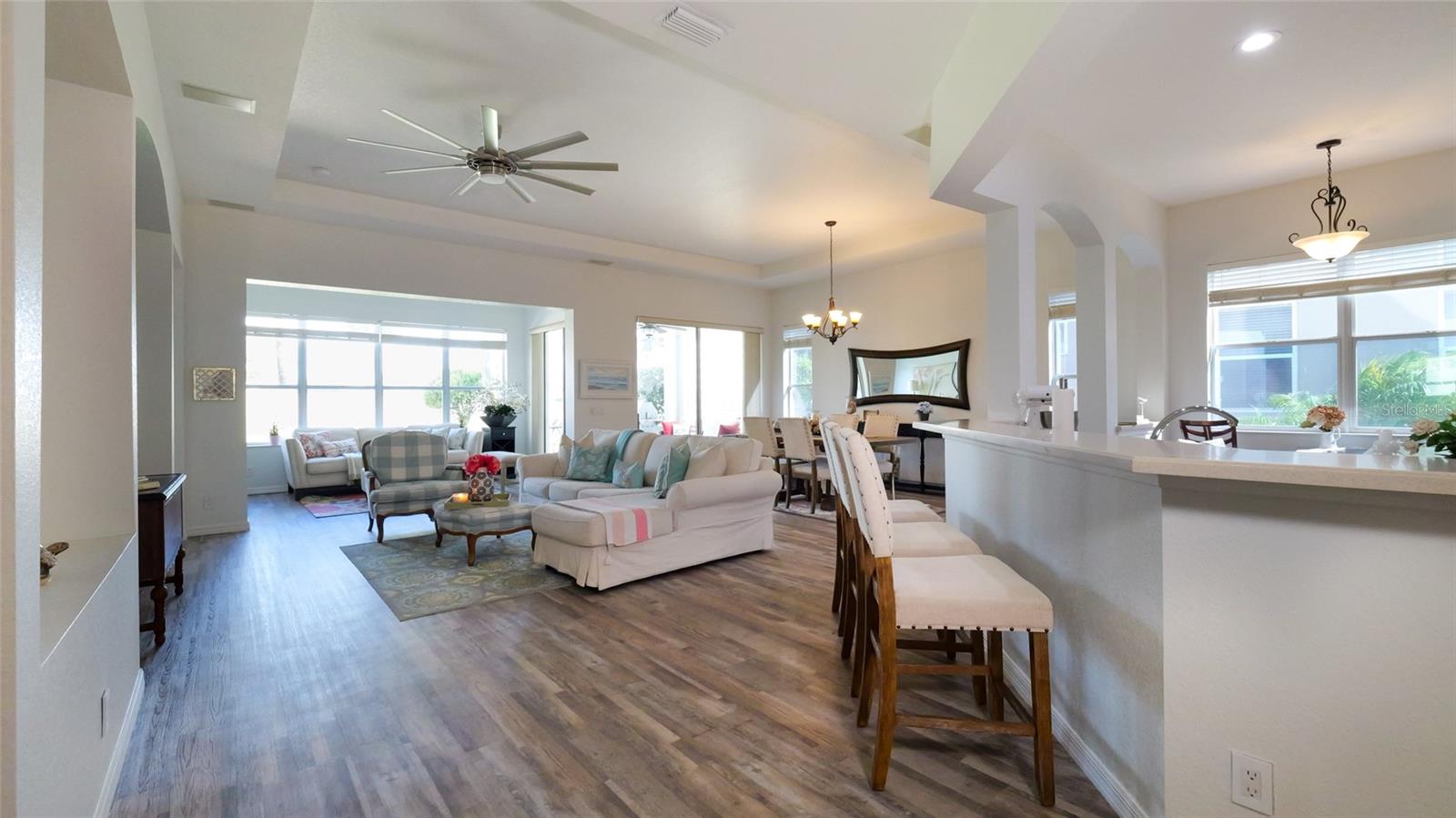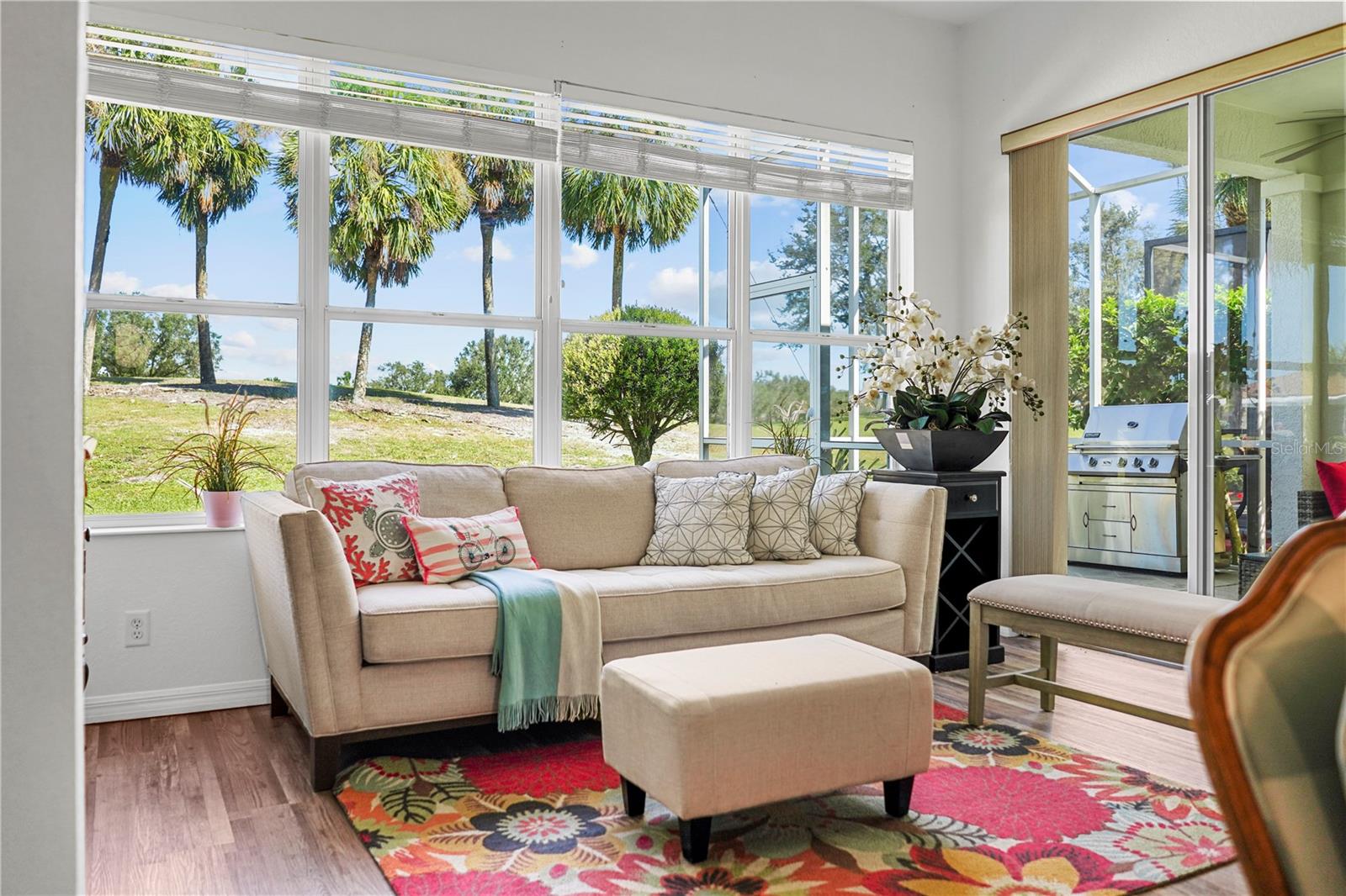 Move-In Ready Home with Stunning Golf Course Views! Welcome to your new home in Sun City Center, an exclusive 55+ community offering a vibrant, active lifestyle. This beautiful, freshly updated home features two spacious bedrooms, a versatile office space, and stunning views of the Renaissance Golf Course. The master suite boasts golf course views, a luxurious en-suite bathroom with dual sinks, a wooden vanity, a jacuzzi, and a large shower. The bright and airy living and dining areas are perfect for relaxing or entertaining, with floor-to-ceiling windows that bring in natural light and provide uninterrupted views of the course. The modern kitchen is equipped with stainless steel appliances, a gas stove, and a cozy breakfast nook, ideal for enjoying your morning coffee. The home also includes a gas system, water heater, softener, and purifier. The laundry area is complete with a large-capacity washer and dryer for your convenience. Step outside to the screened-in patio, perfect for grilling and enjoying sunsets with a glass of wine. This home has been meticulously maintained, with a new roof and upgraded flooring, paint, and air conditioning, all completed in the past month. Sun City Center offers a range of amenities, including pools, gyms, tennis, pickleball, golf, and social clubs. The community is pet-friendly and has its own dog park. Shopping, dining, healthcare, and recreational options are all nearby, ensuring convenience at every turn. Don’t miss this opportunity to live in a beautifully updated home where every day feels like a vacation. Schedule your visit today!