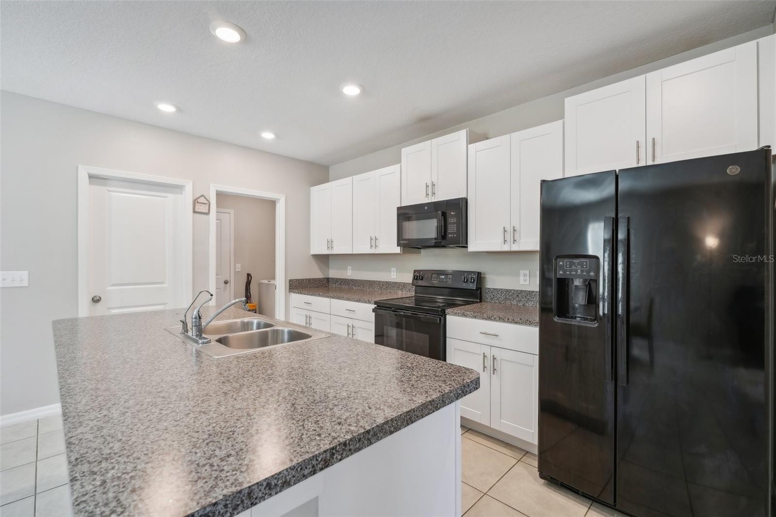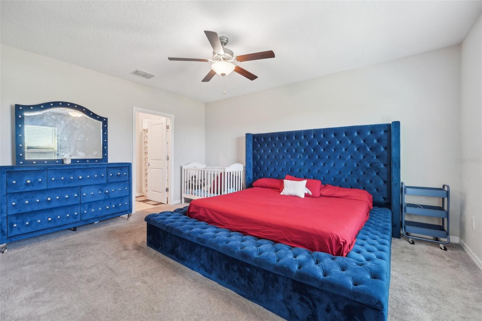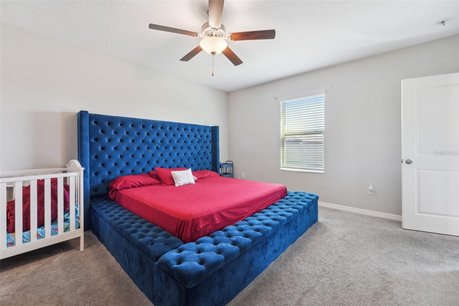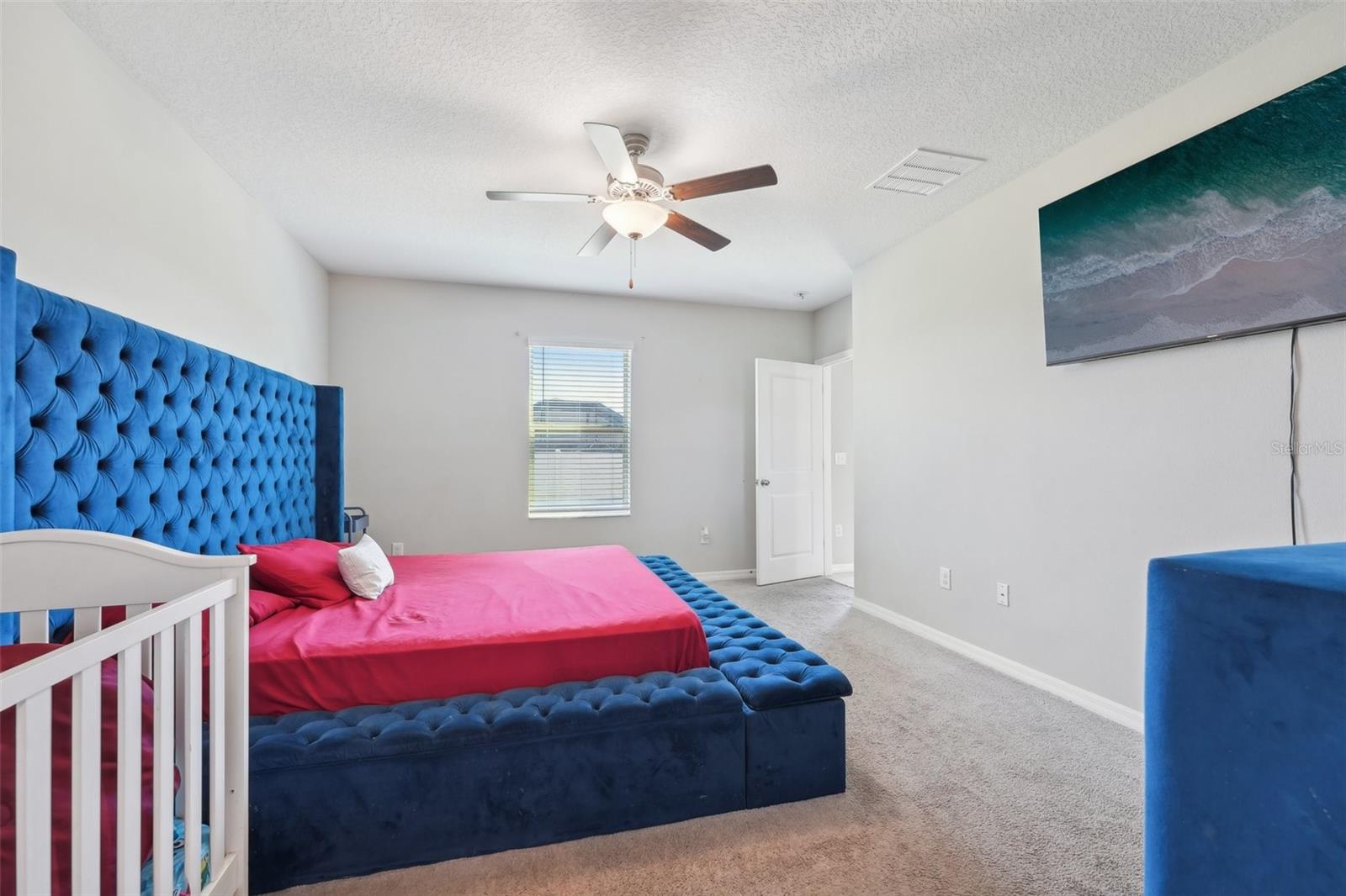 Gorgeous Contemporary style home with a fabulous curb appeal. This 5 bedroom, 2.5 bath & 2-car home is ready for you! Starting with the extensive landscaping package & elevation details. The interior of the home is light & airy neutral colors to accommodate many color schemes. Spacious entertaining & dining area. Fabulous kitchen with gorgeous white cabinets, BLACK appliances, & easy to keep formica countertops accompanied with a closet pantry. Convenient Powder Bath on first floor, perfect for guest. Primary bedroom on first floor with en-suite & huge walk-in closet. All secondary bedrooms are located on the second floor along with a secondary bath. 2nd floor loft space perfect for homework stations, gaming area, media room, play room crafting & much more! Separate laundry room with upper shelving. Spacious rear yard perfect for family fun, 4 legged family members & enough room to add a pool! Perfect home to raise a nice size family! Not far from the community amenities! Call today for your PRIVATE showing!